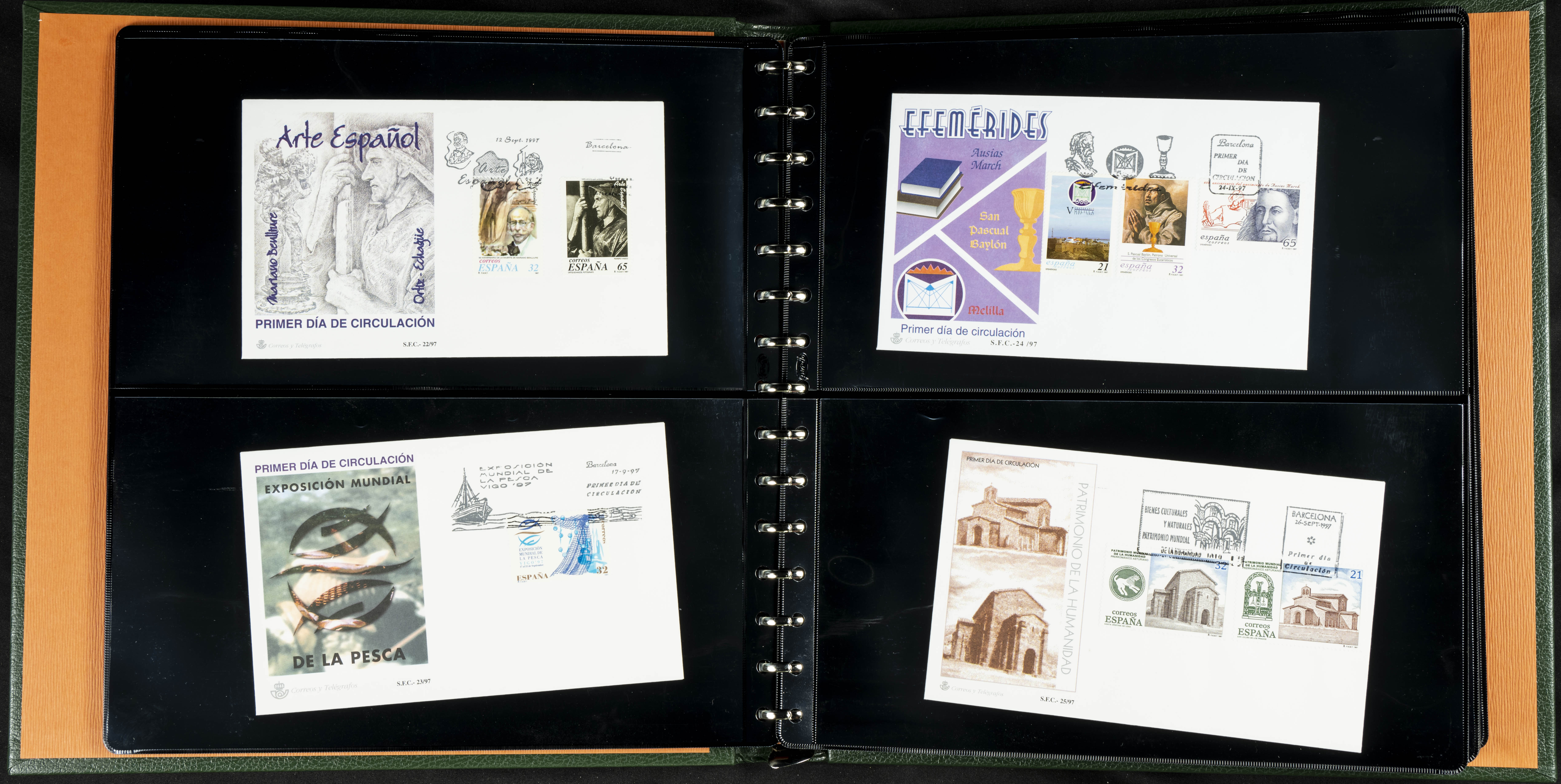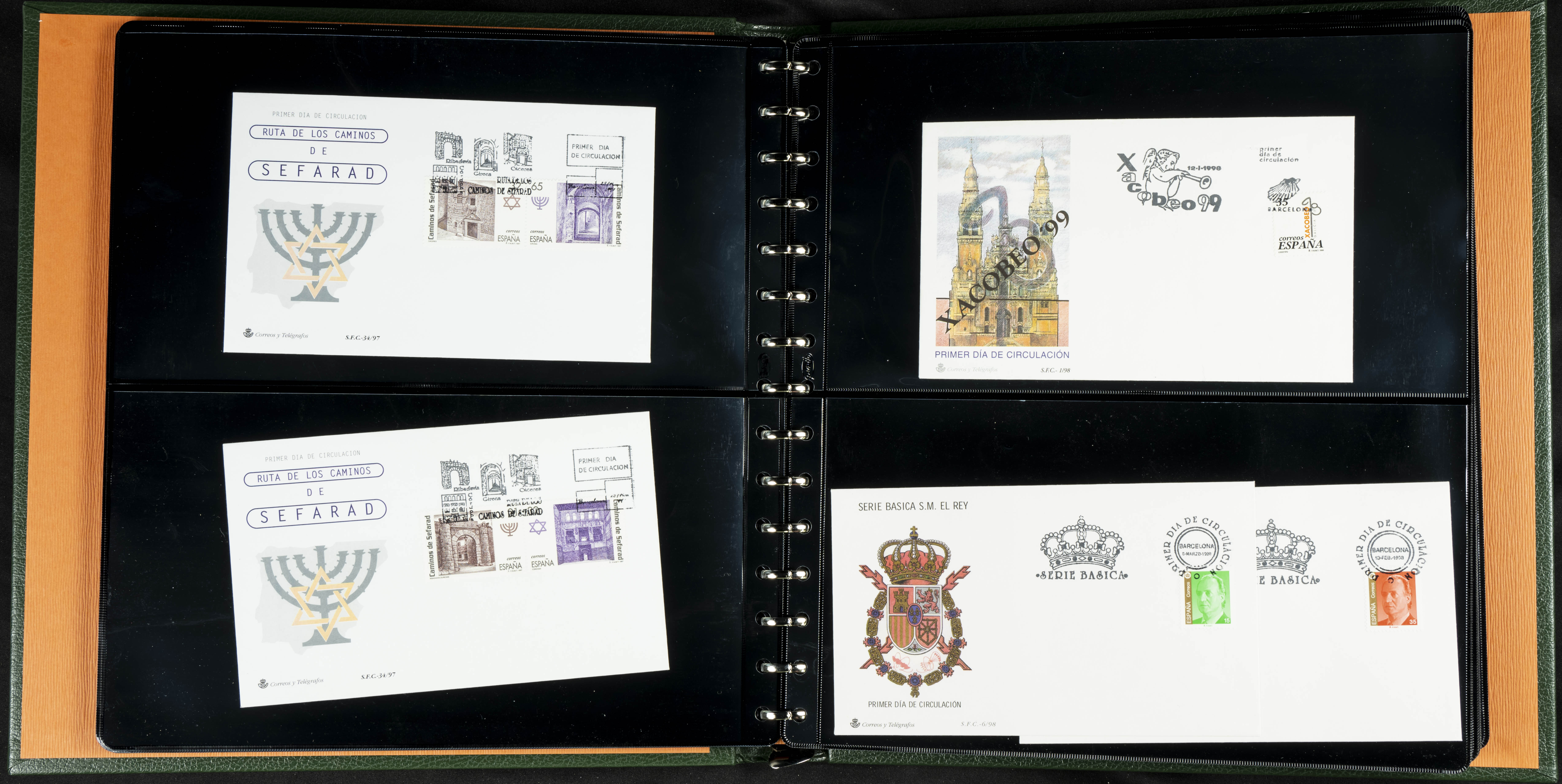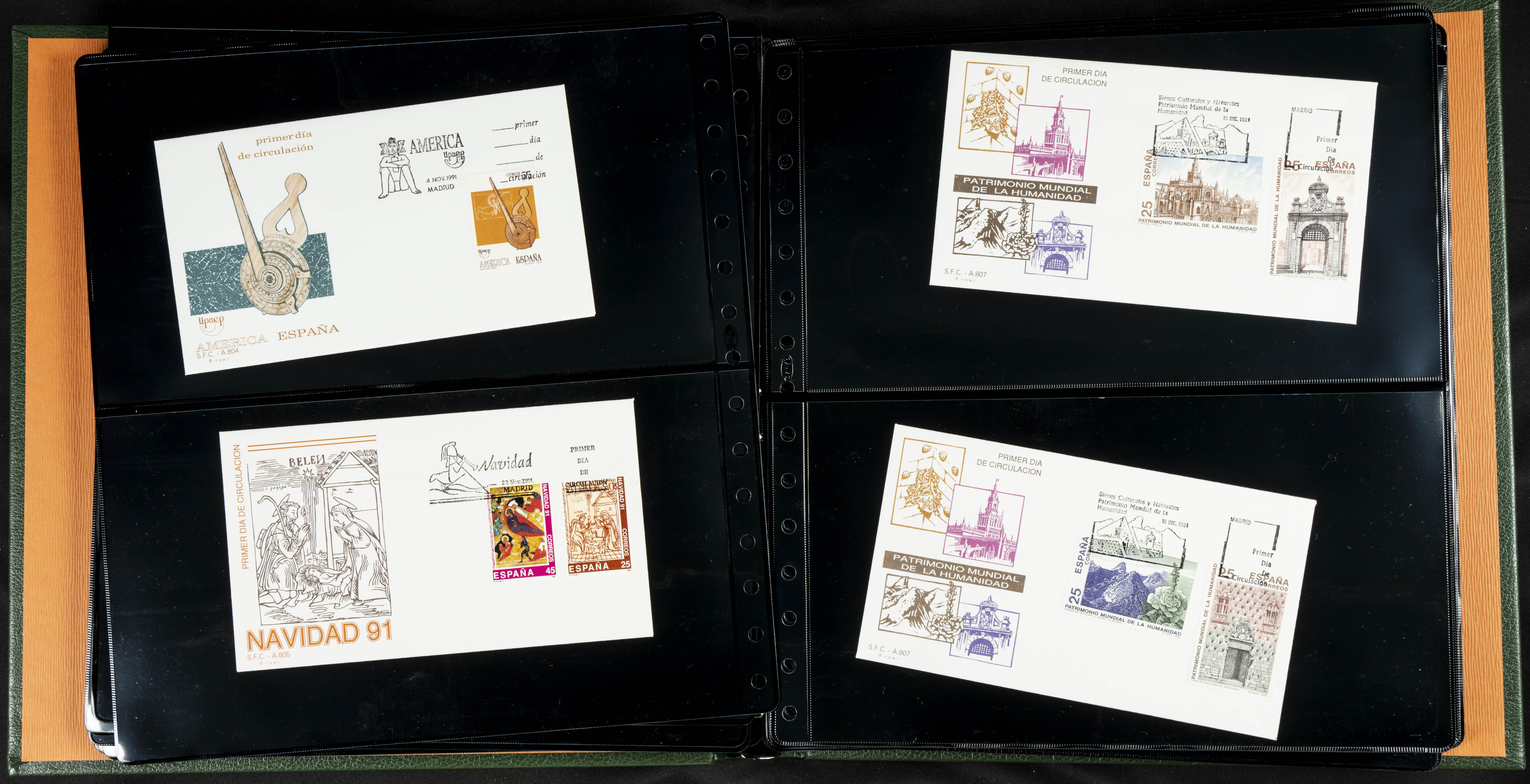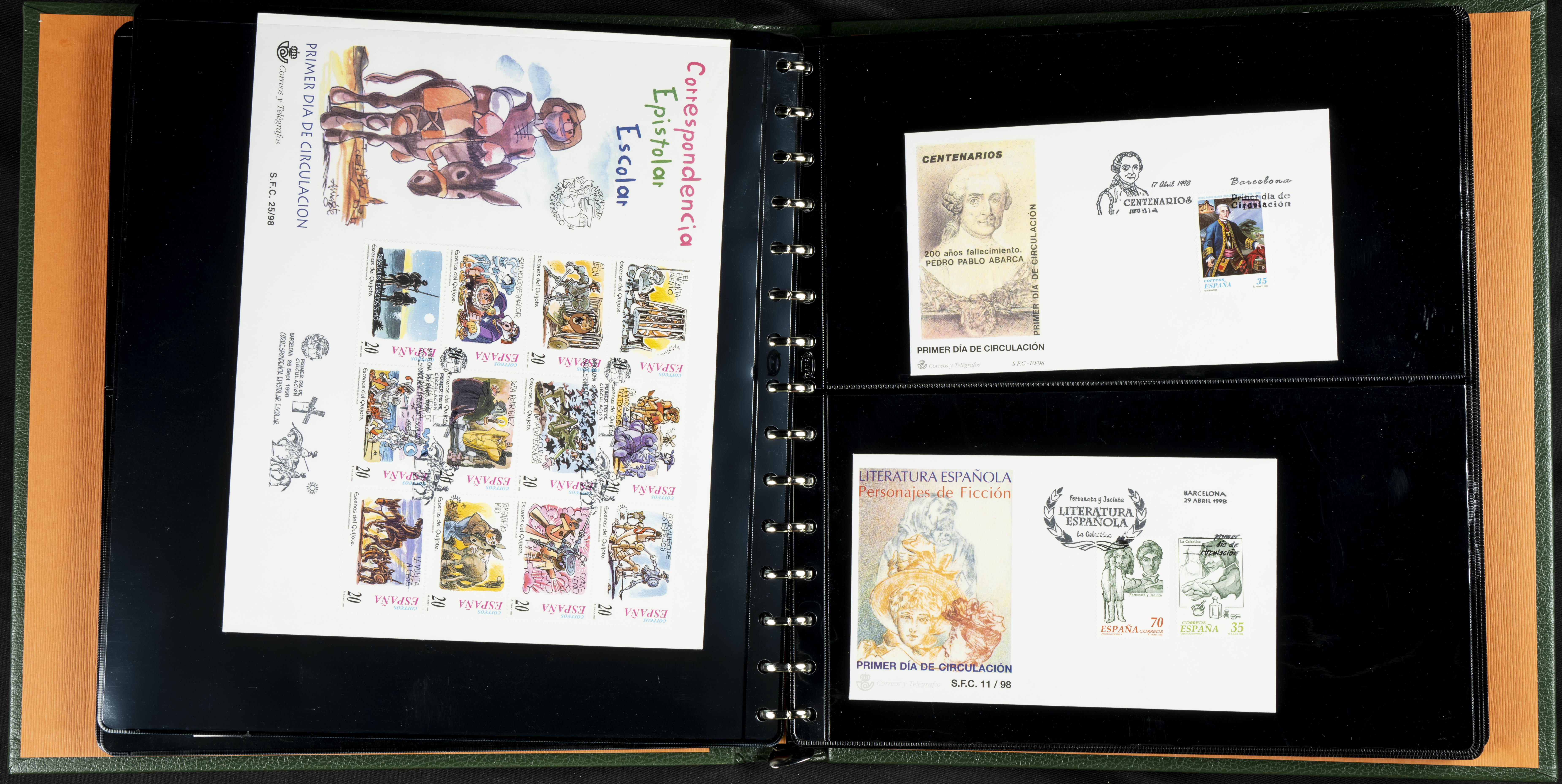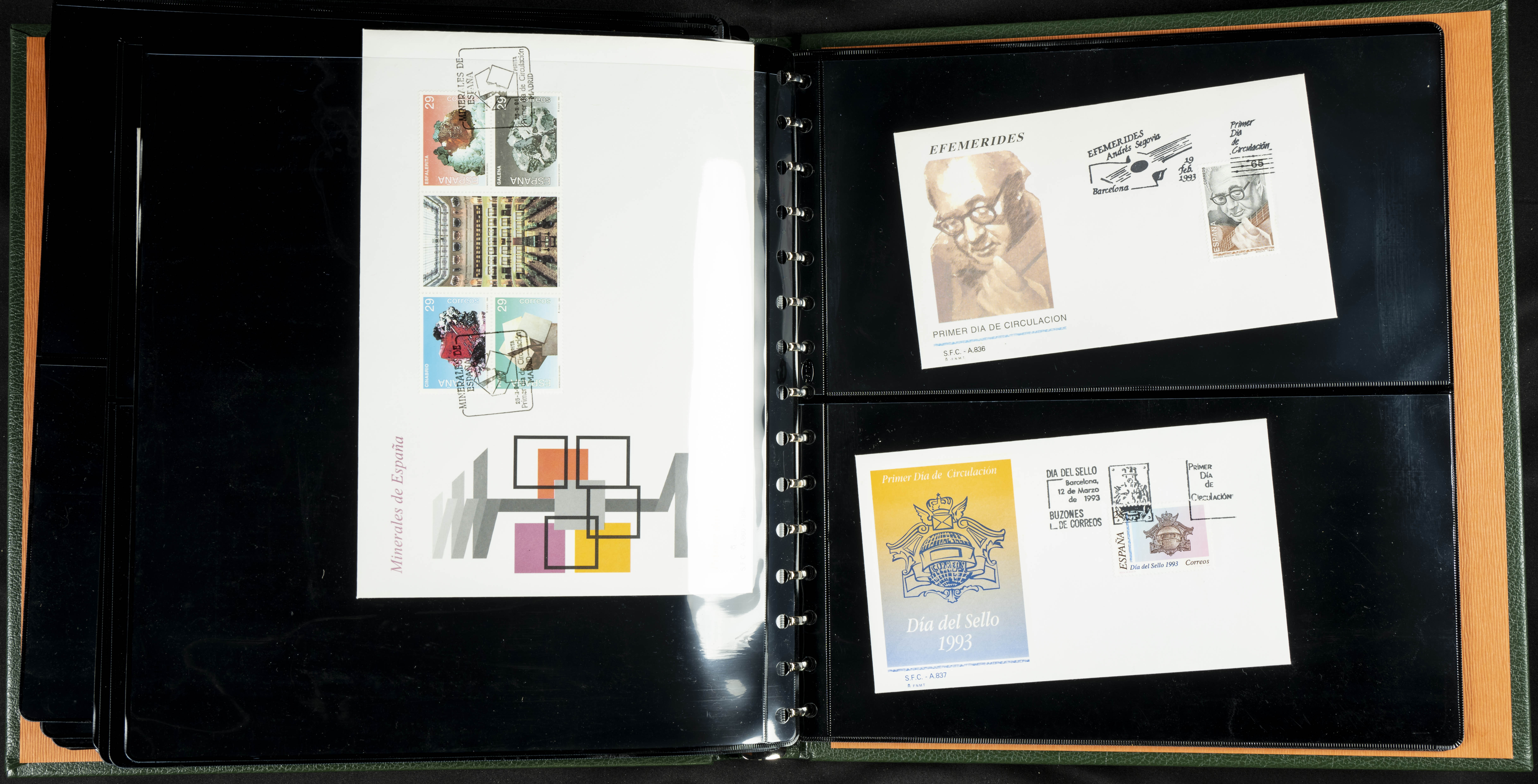 English (1990ca). Collection of First Day Covers between 1990 and 2001, includes large formats, some covers from previous years (Suits and World Cup 82) and Spanish Andorra between 1980 and 1994. TO BE EXAMINED.