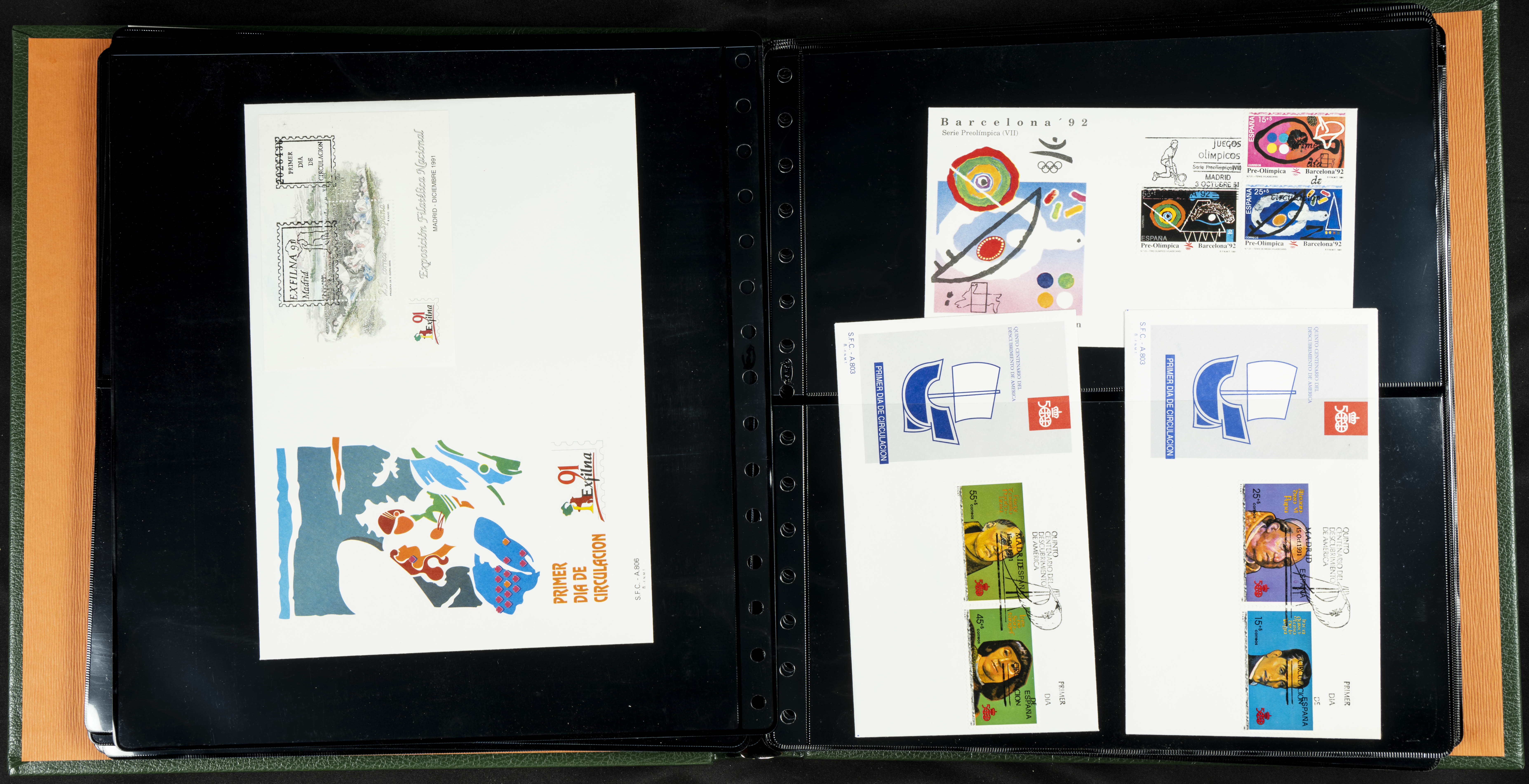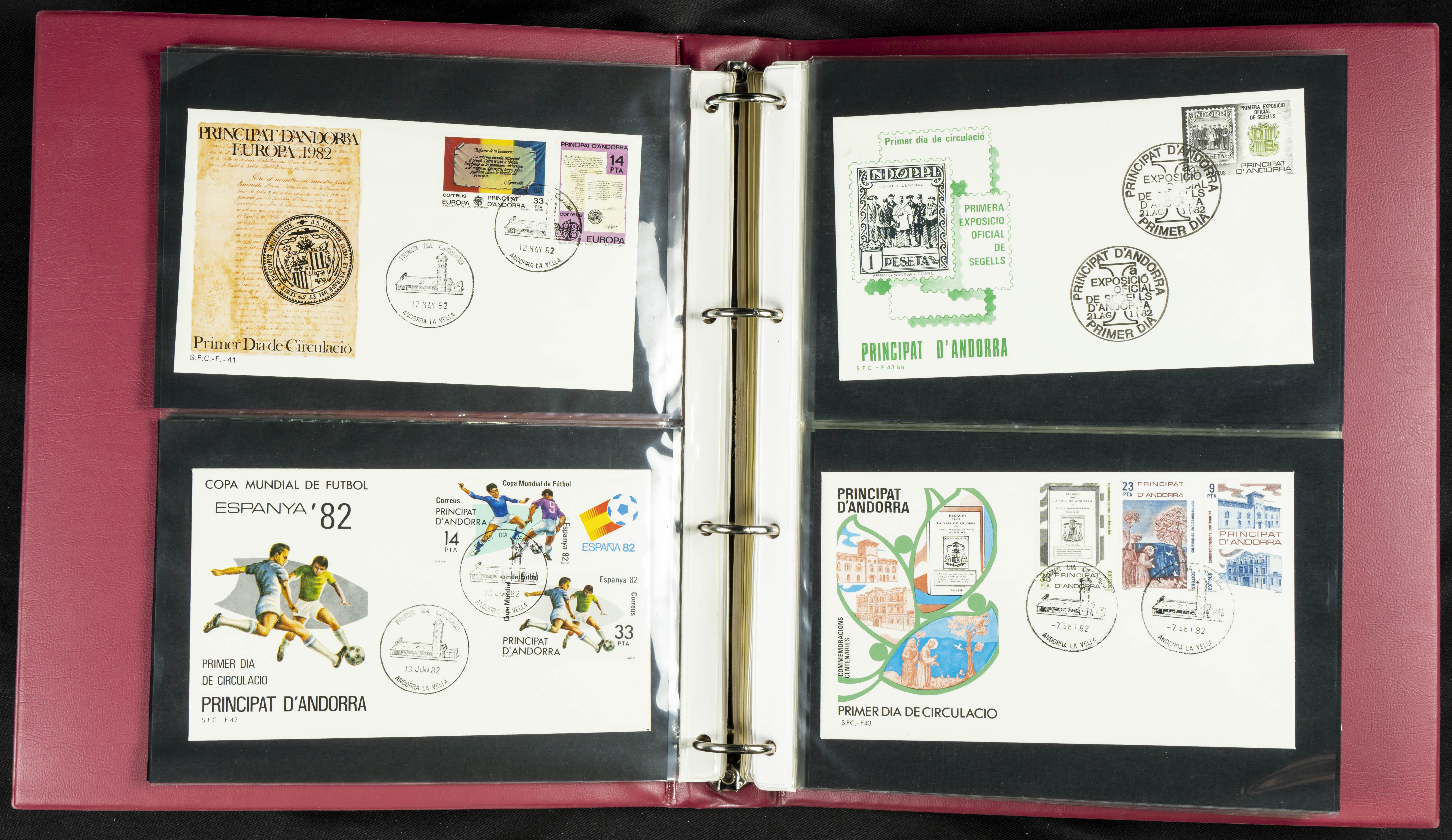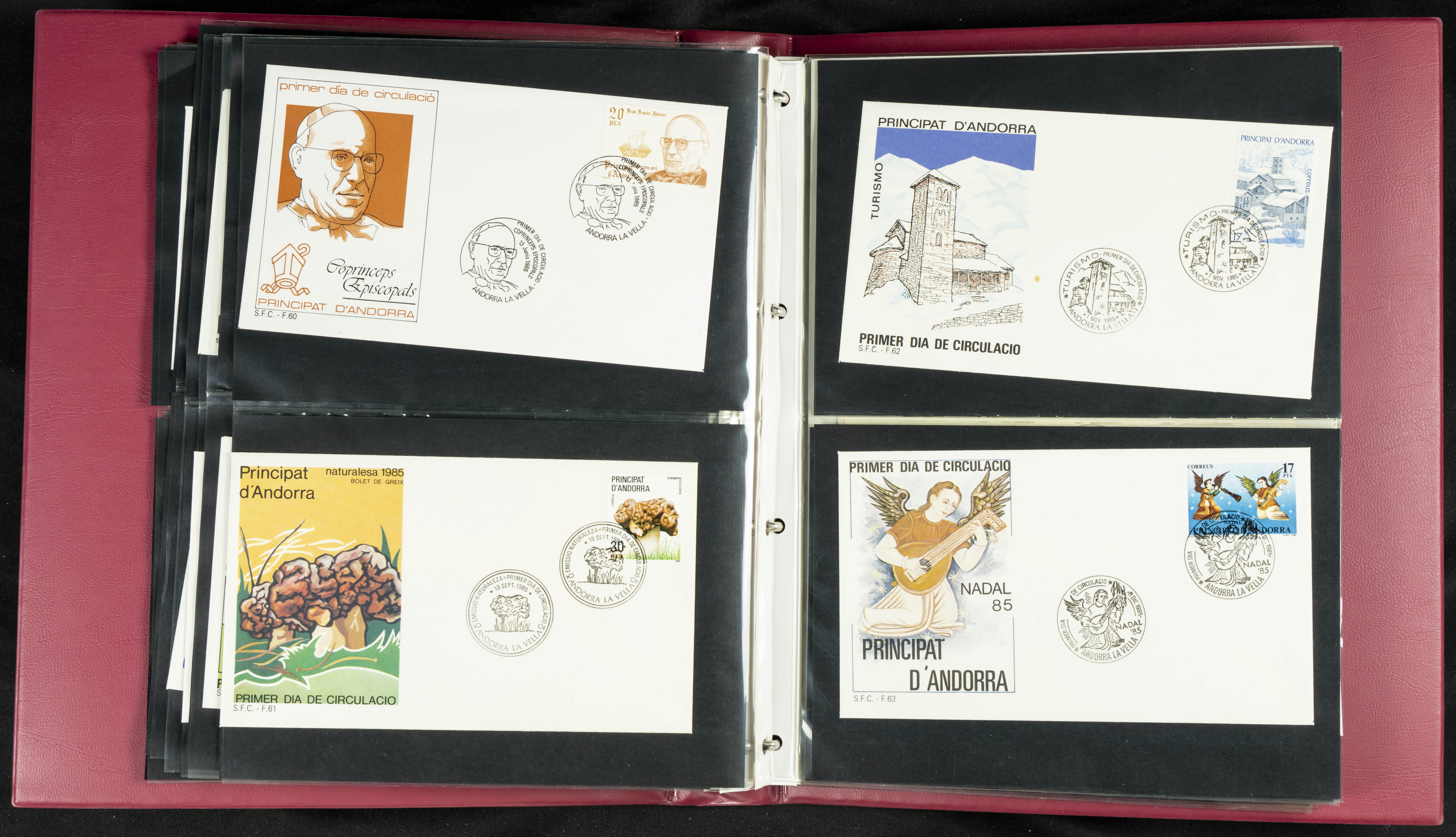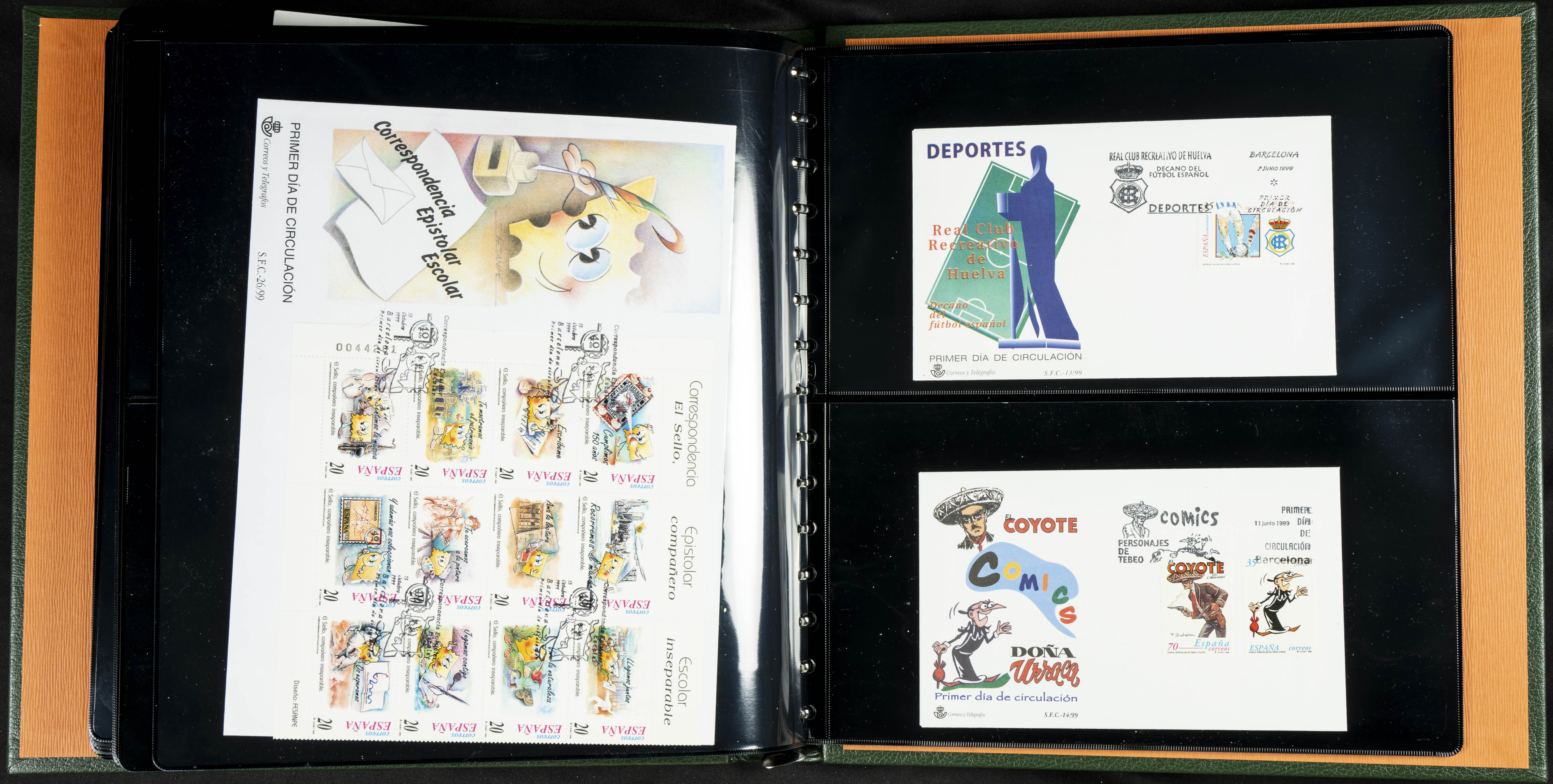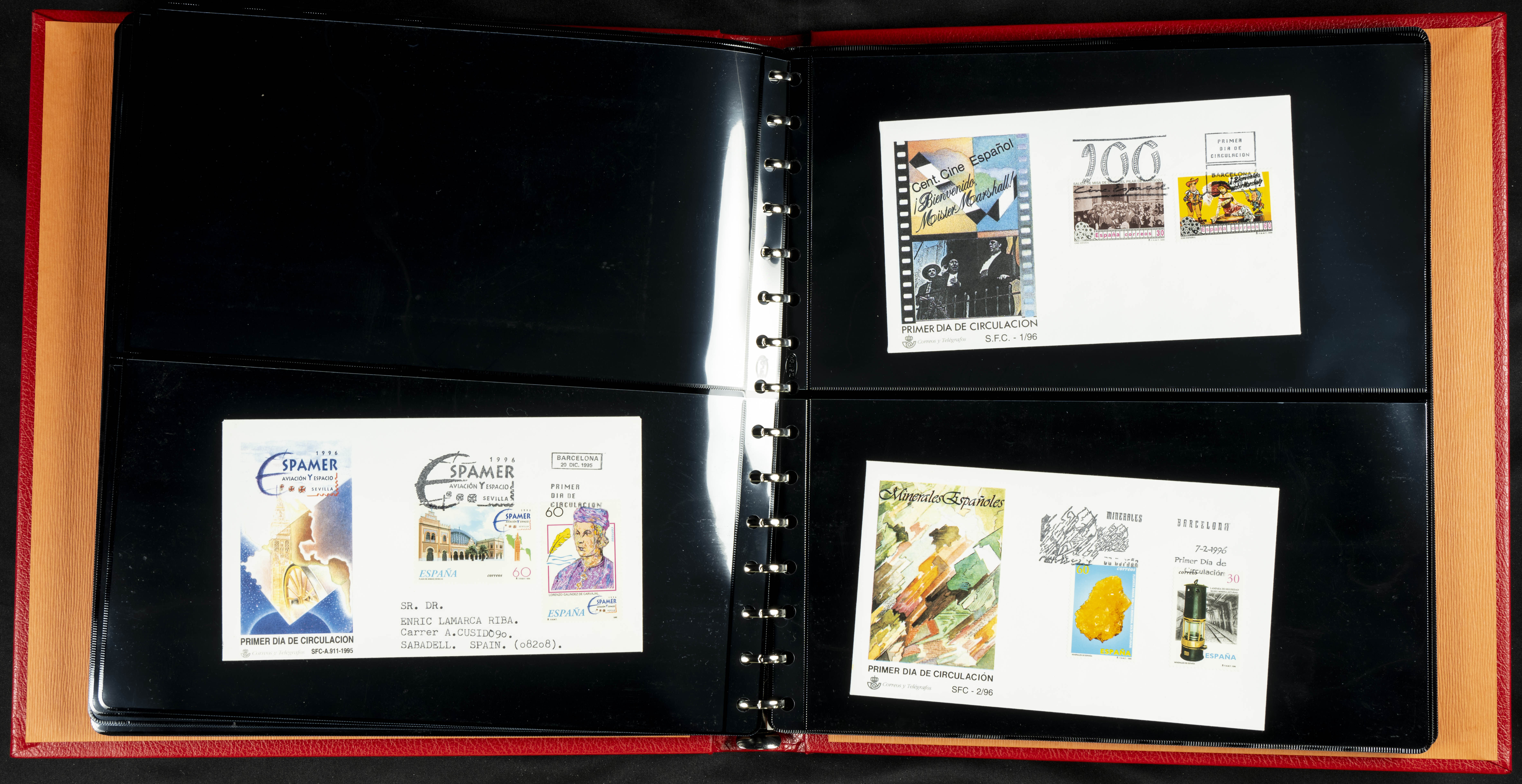 English (1990ca). Collection of First Day Covers between 1990 and 2001, includes large formats, some covers from previous years (Suits and World Cup 82) and Spanish Andorra between 1980 and 1994. TO BE EXAMINED.