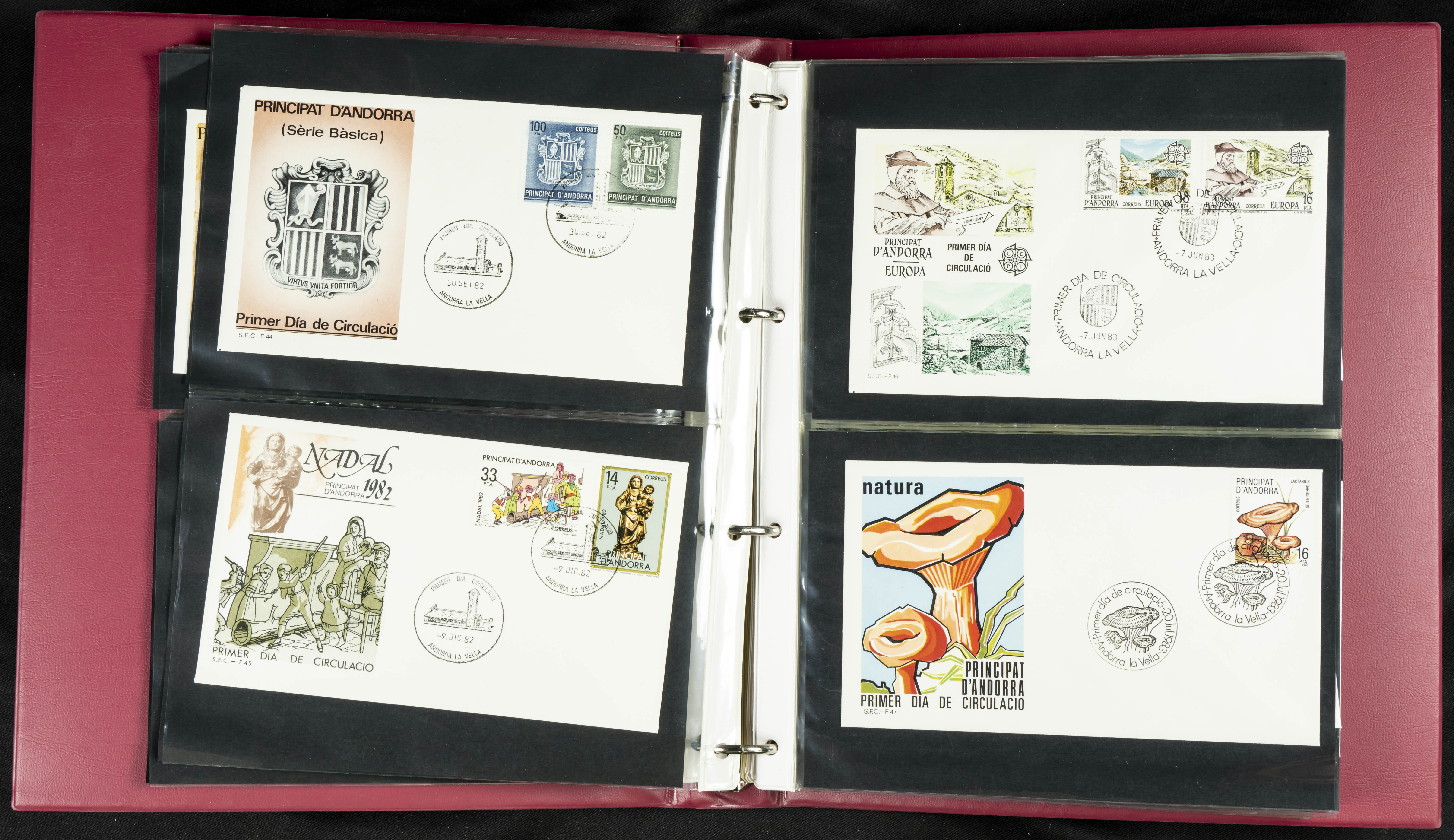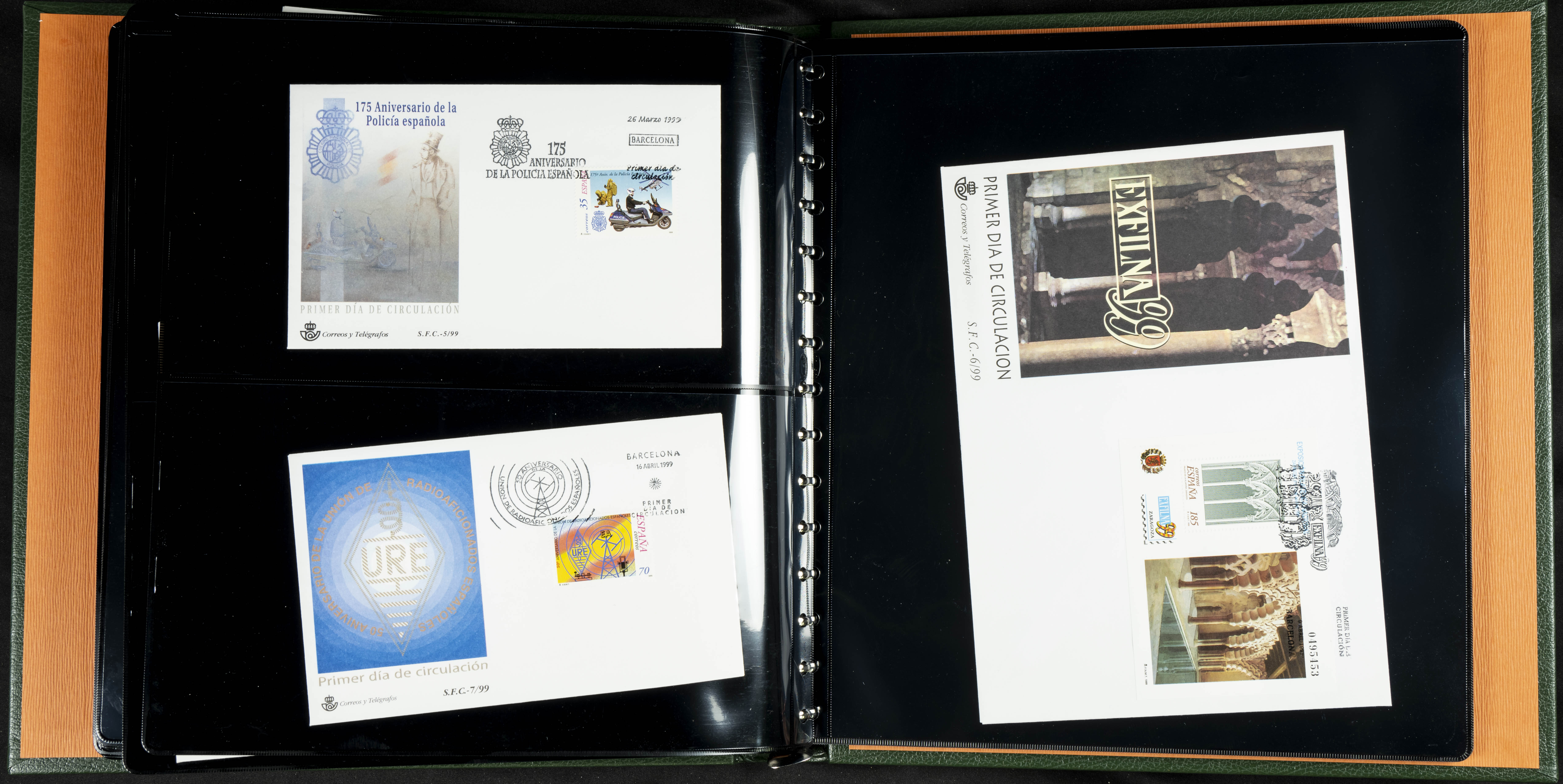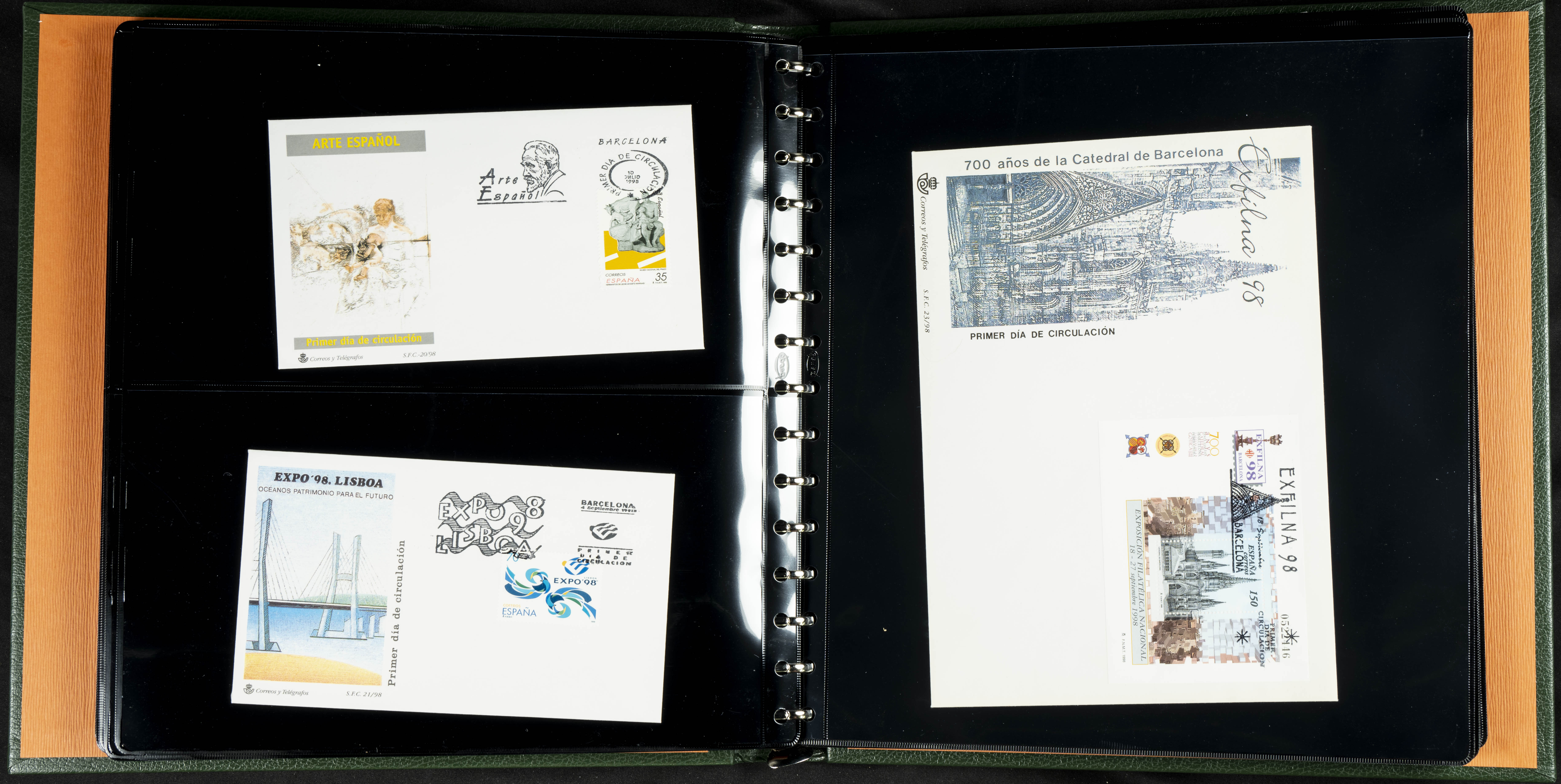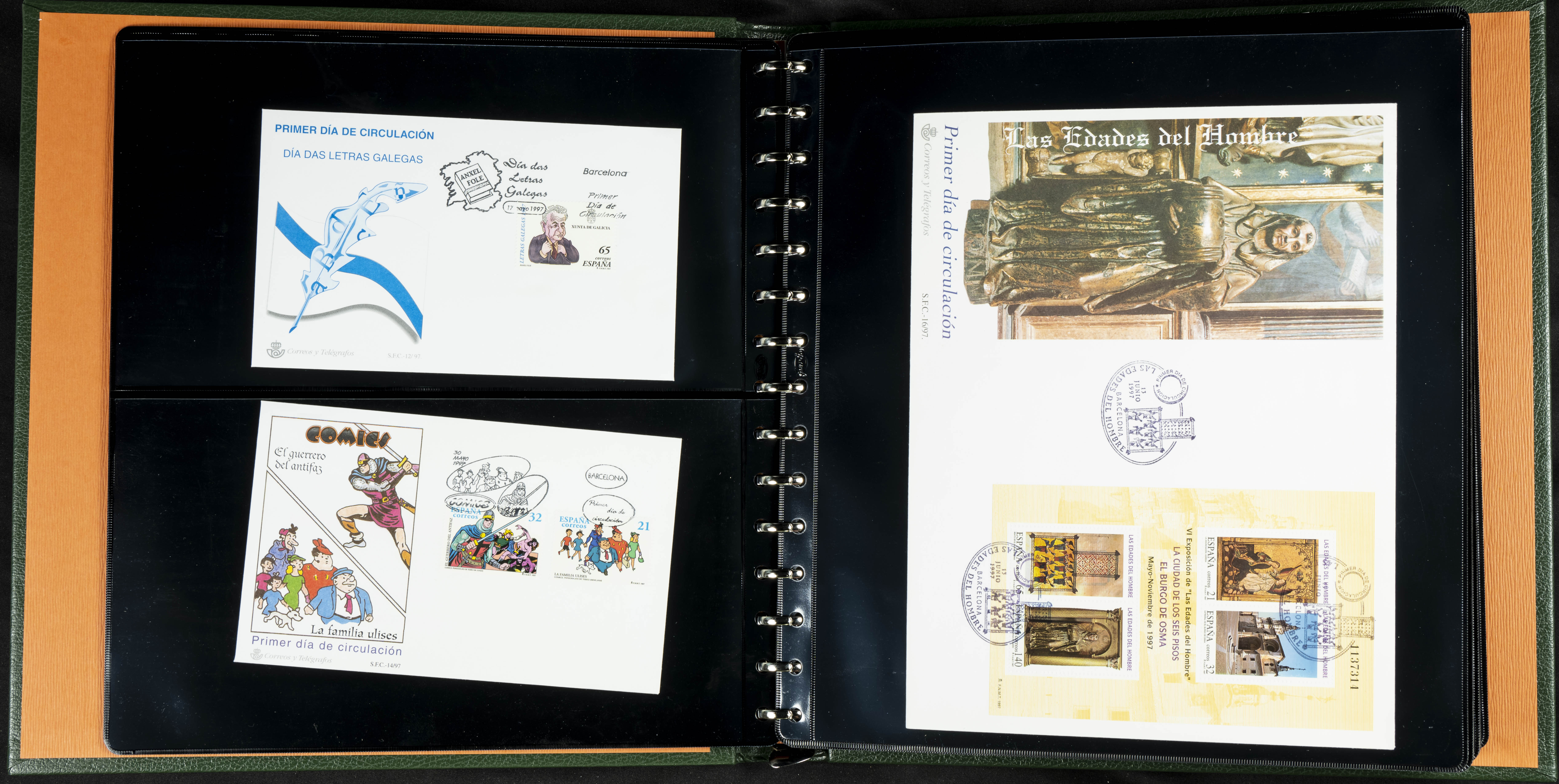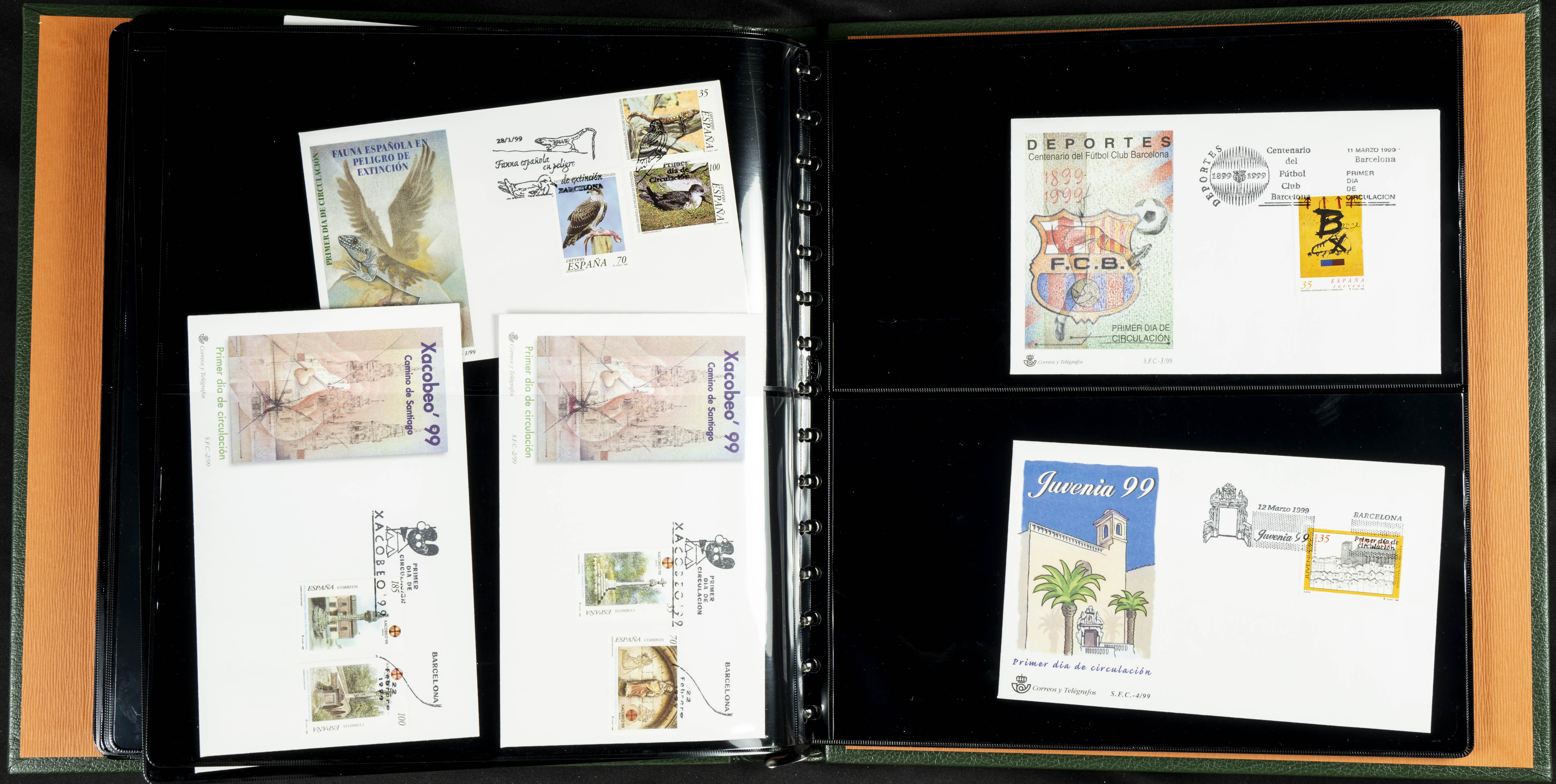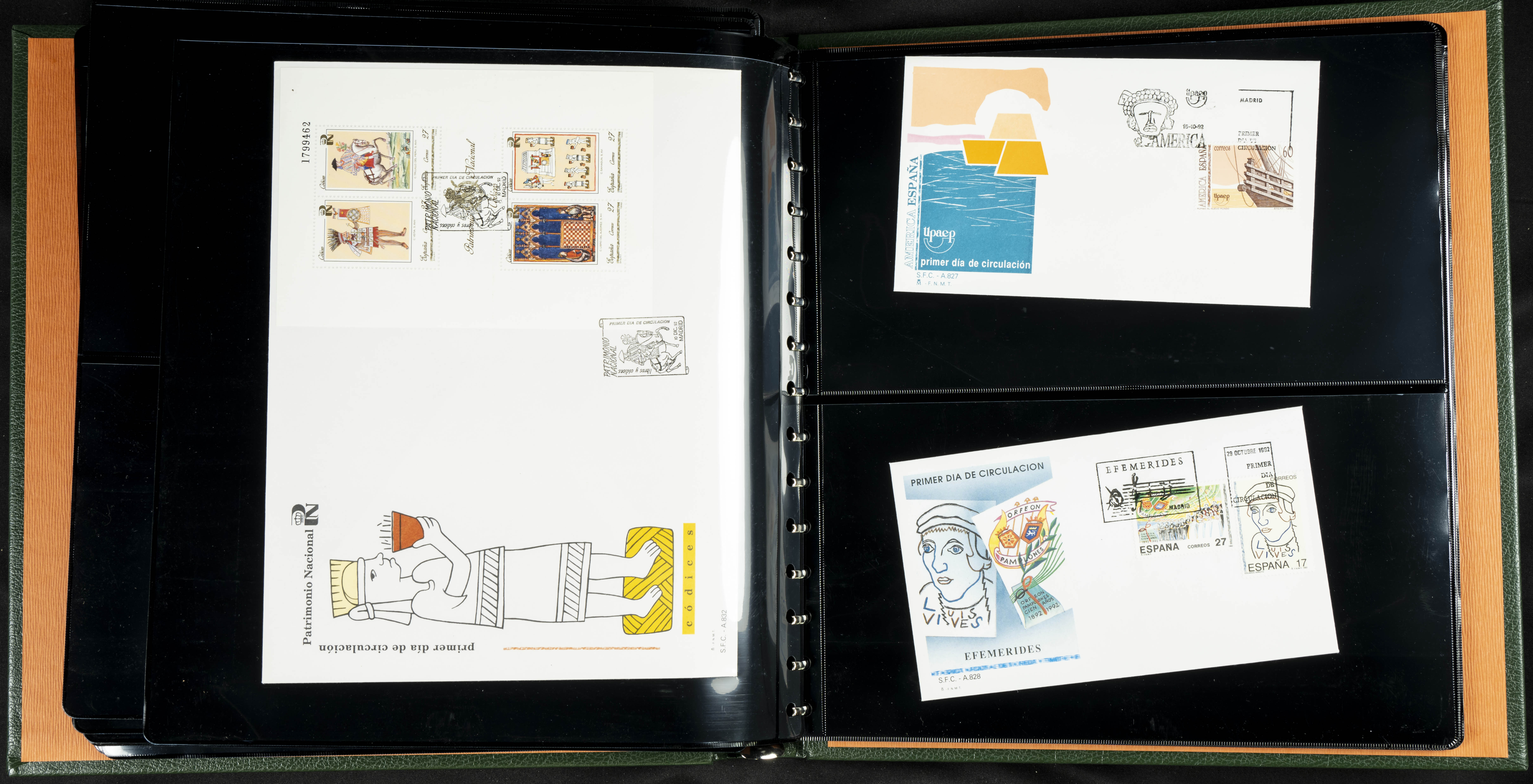 English (1990ca). Collection of First Day Covers between 1990 and 2001, includes large formats, some covers from previous years (Suits and World Cup 82) and Spanish Andorra between 1980 and 1994. TO BE EXAMINED.