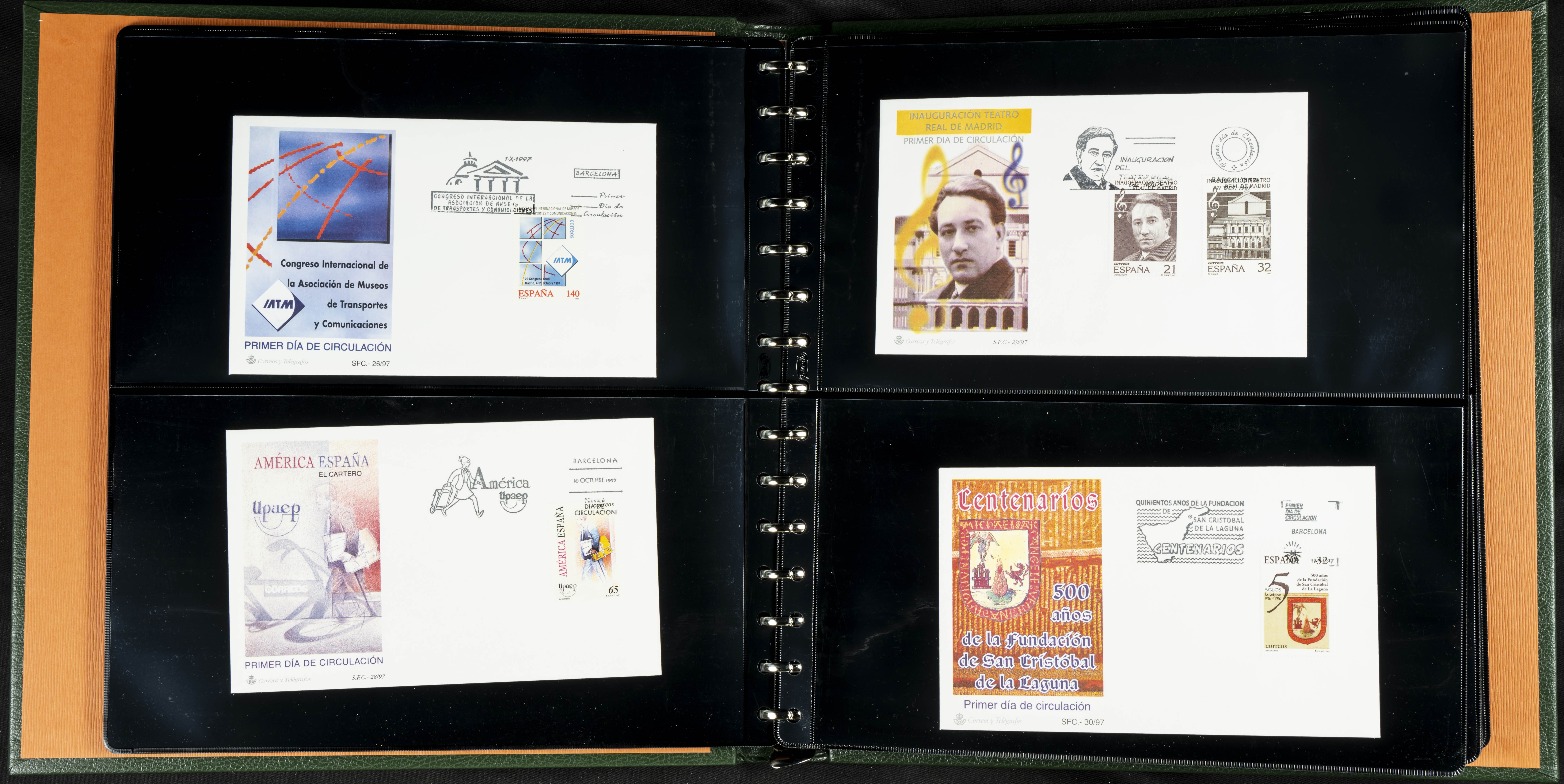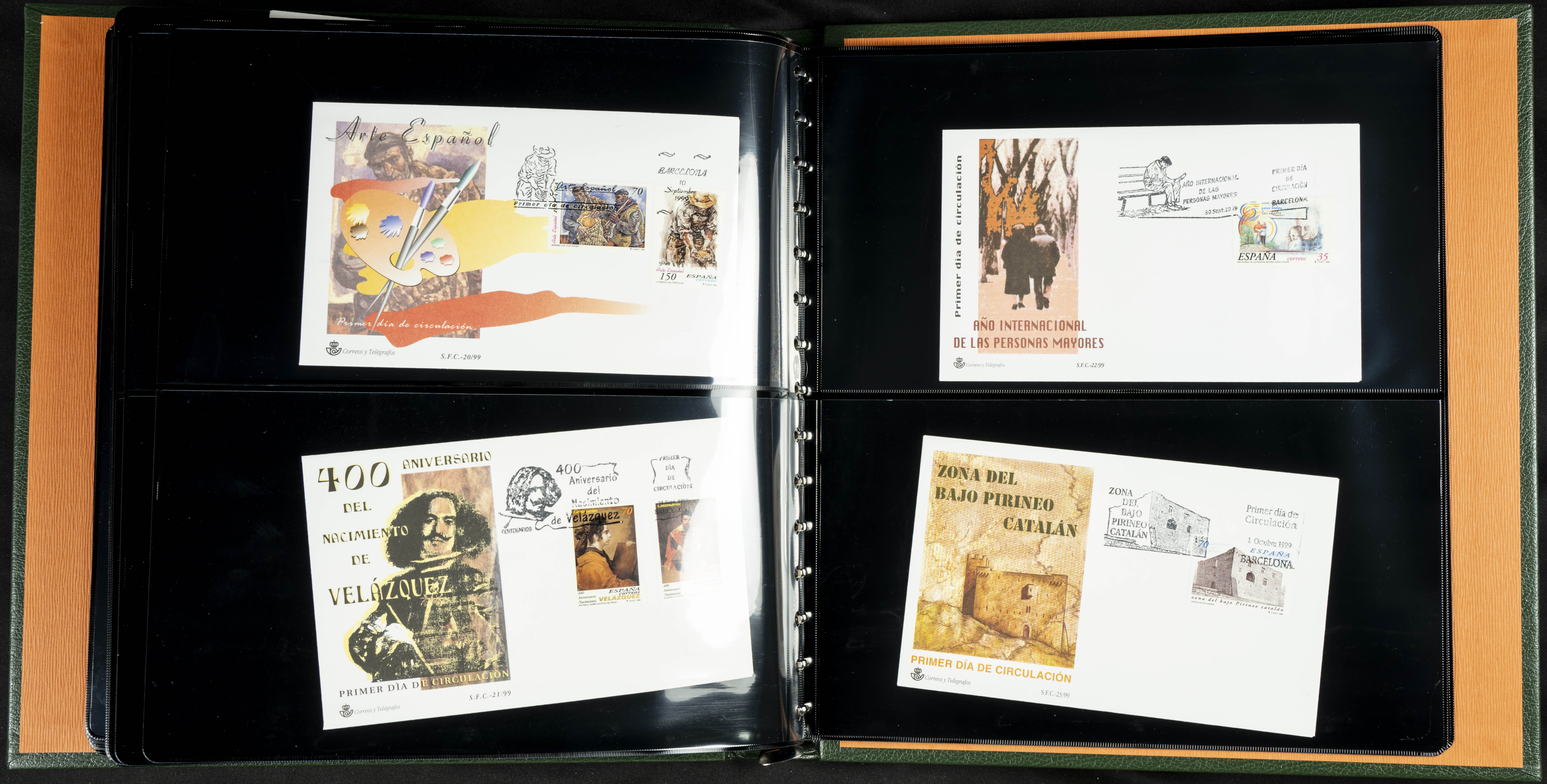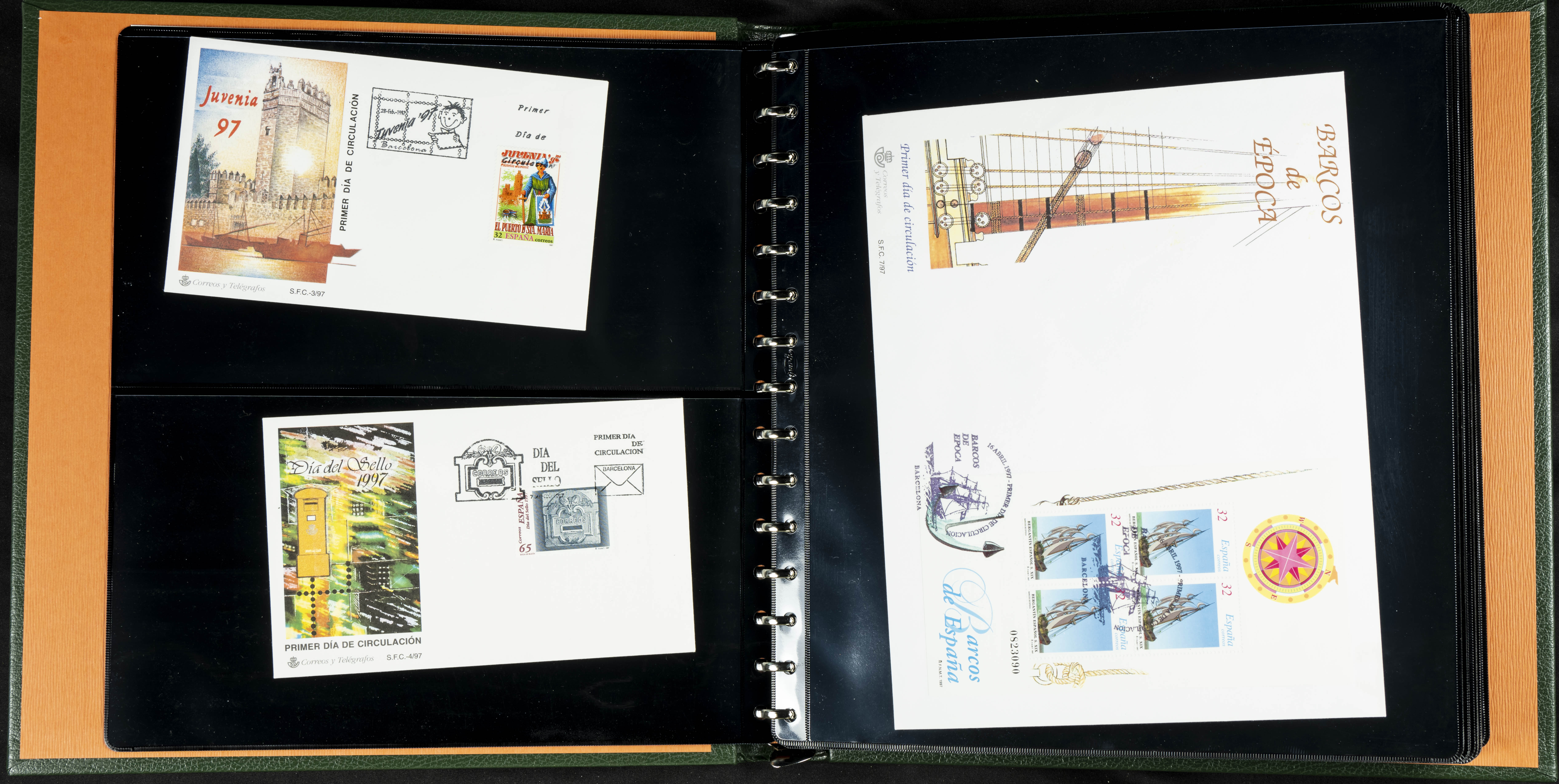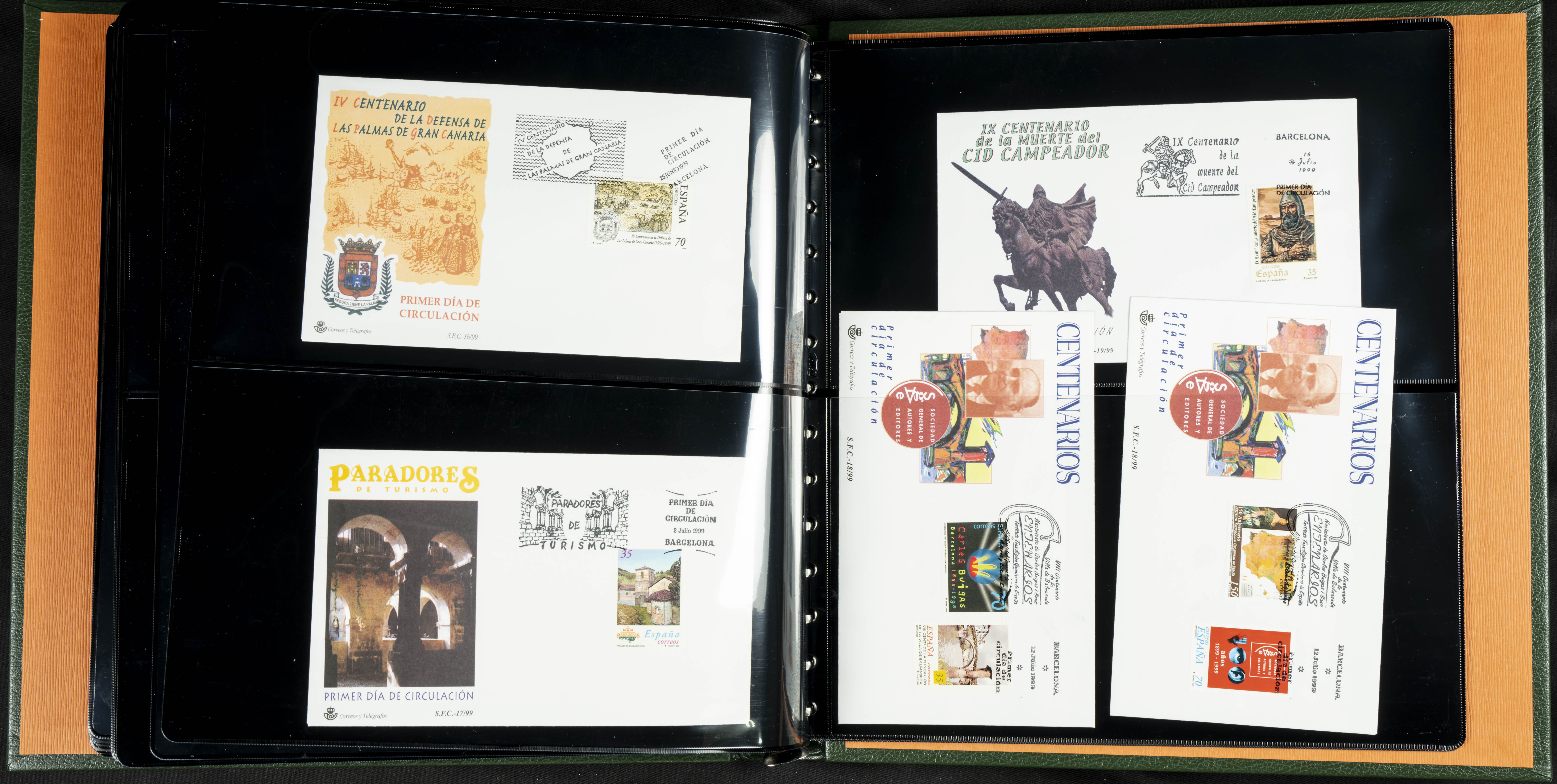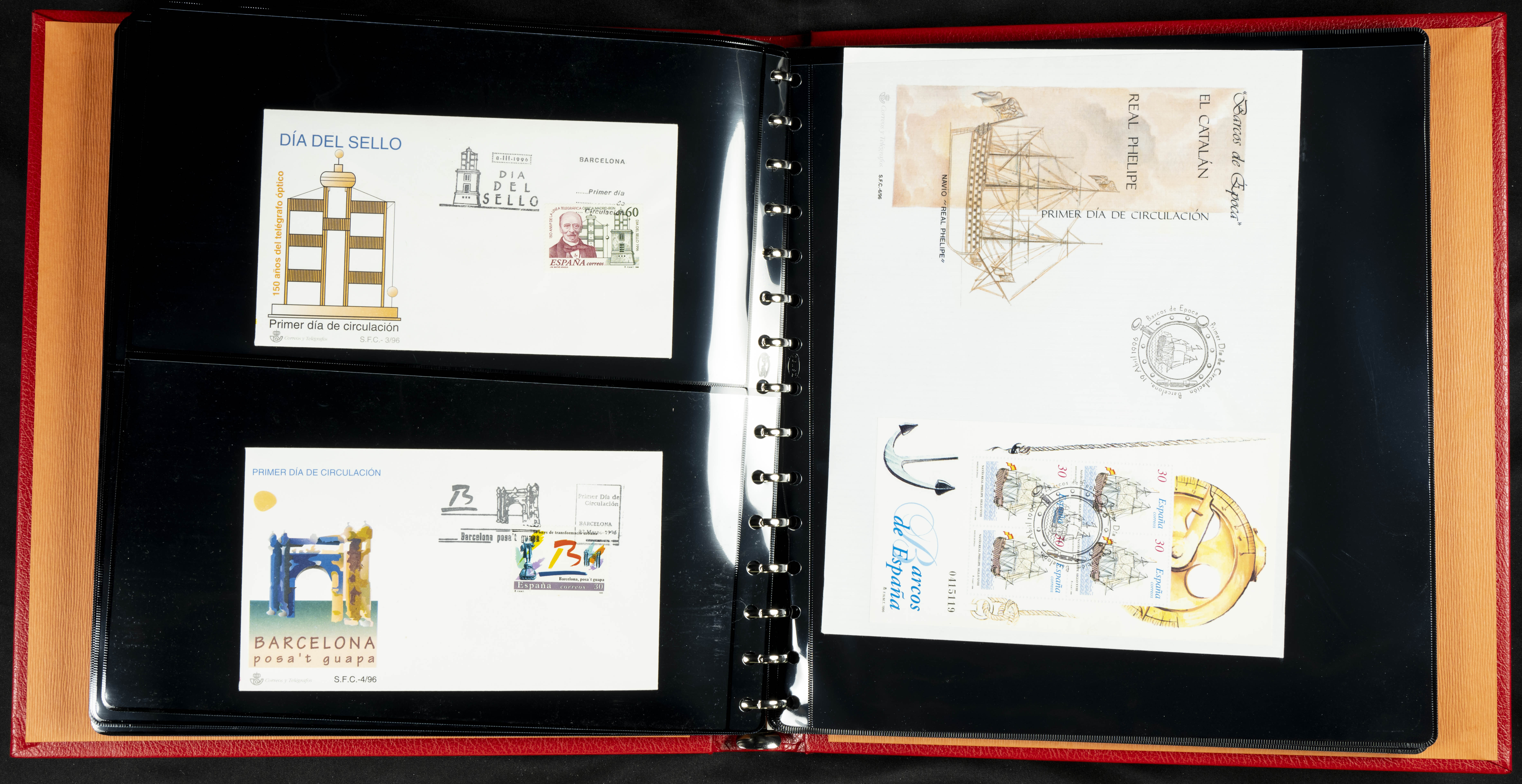 English (1990ca). Collection of First Day Covers between 1990 and 2001, includes large formats, some covers from previous years (Suits and World Cup 82) and Spanish Andorra between 1980 and 1994. TO BE EXAMINED.