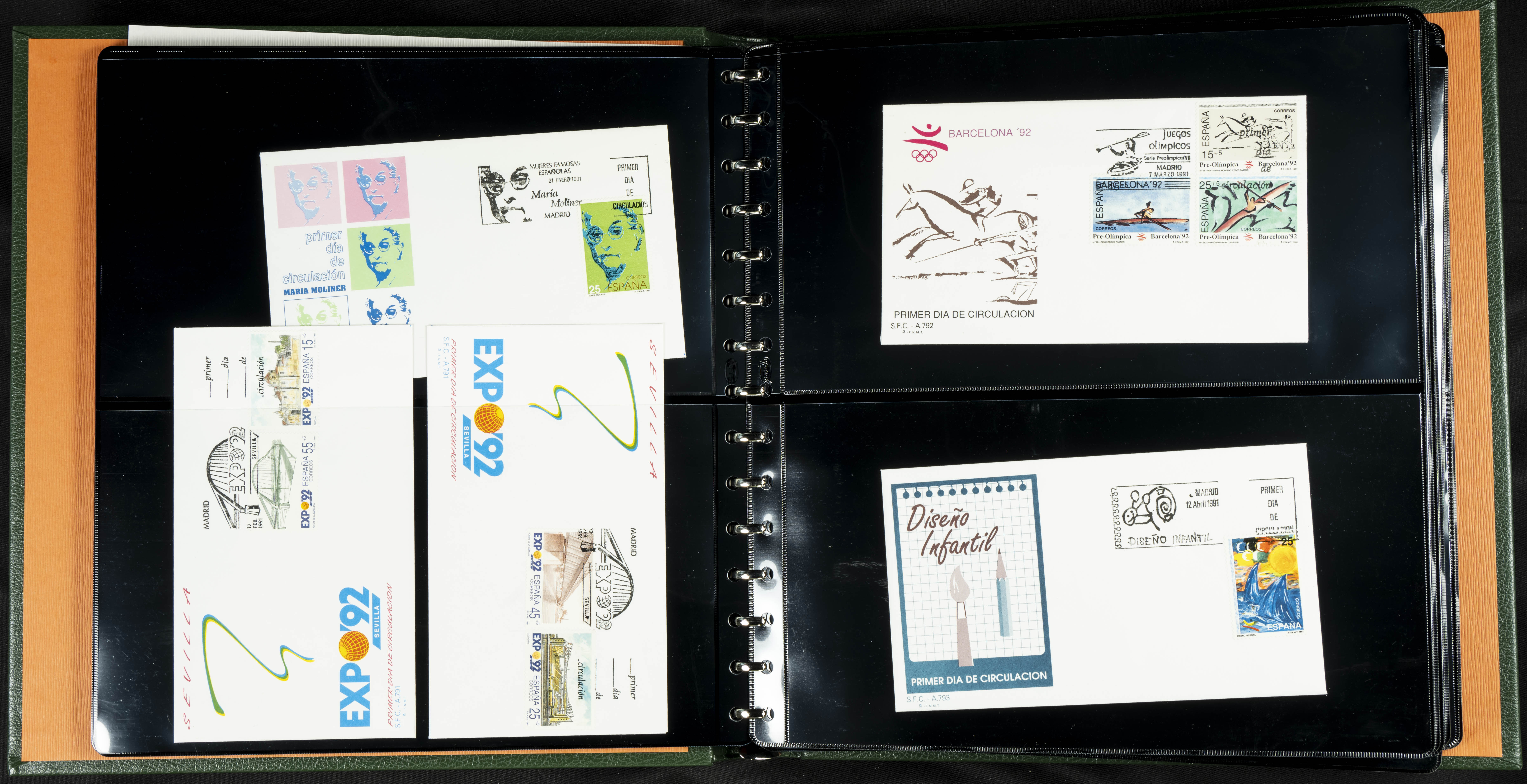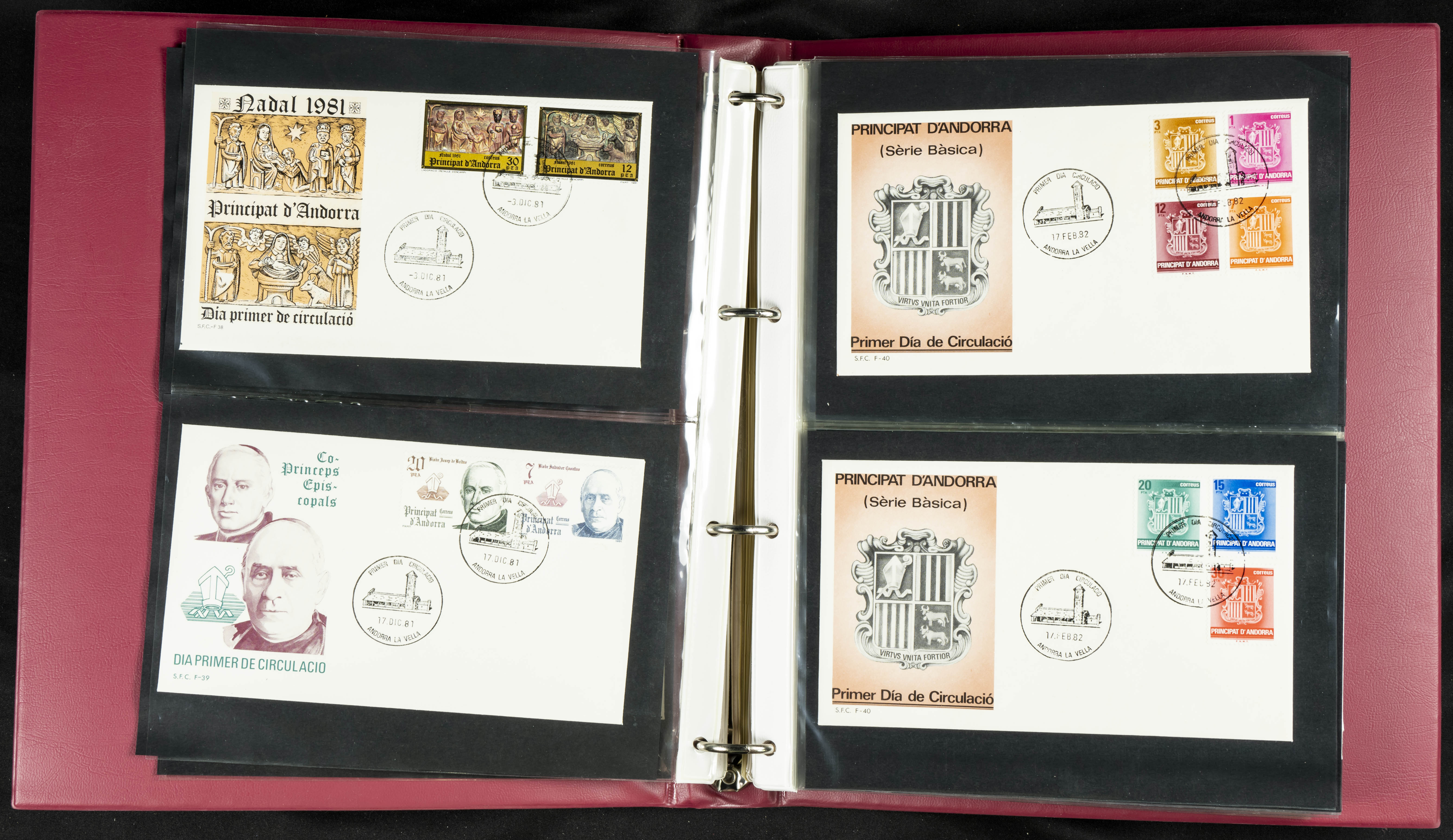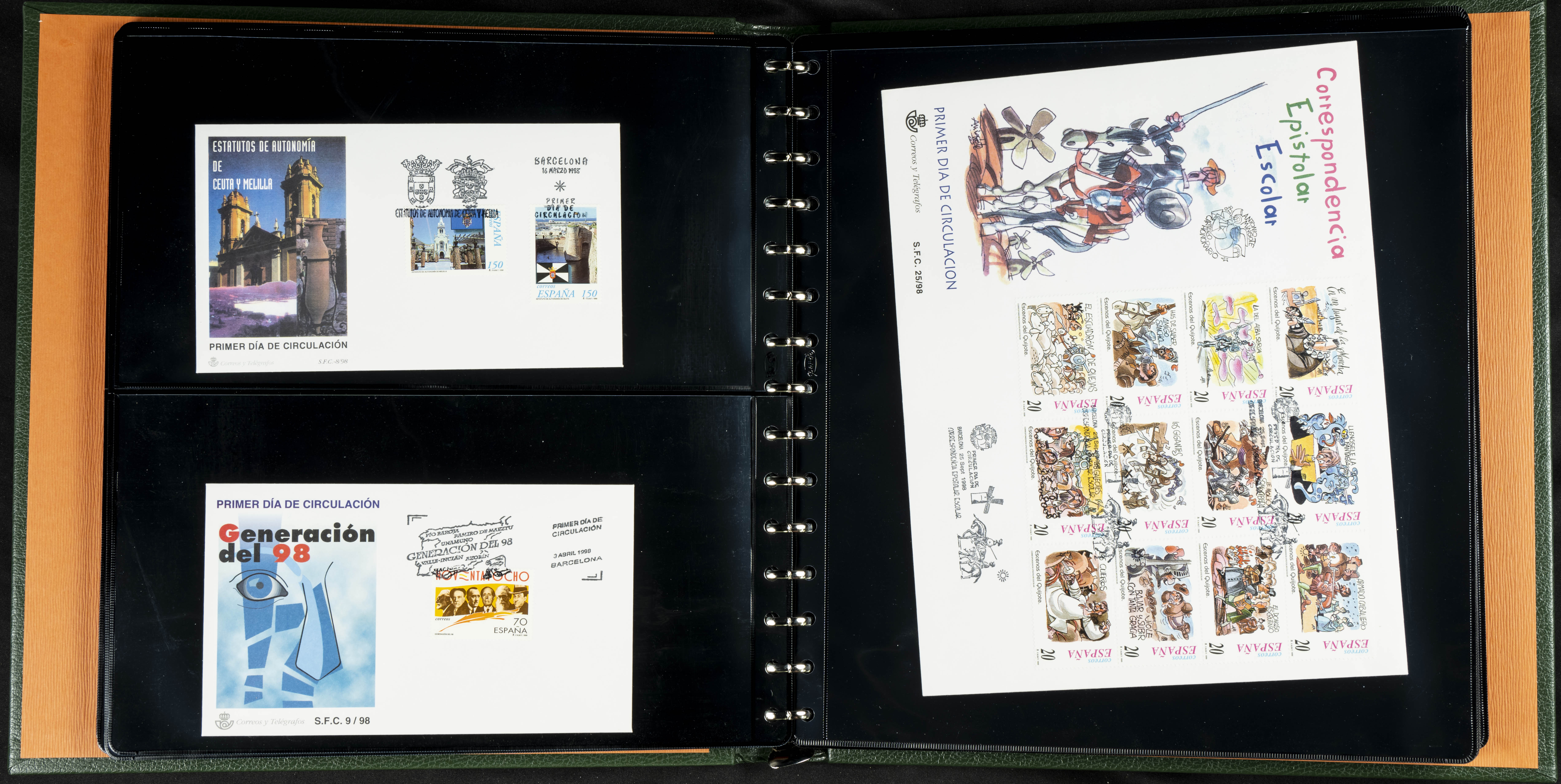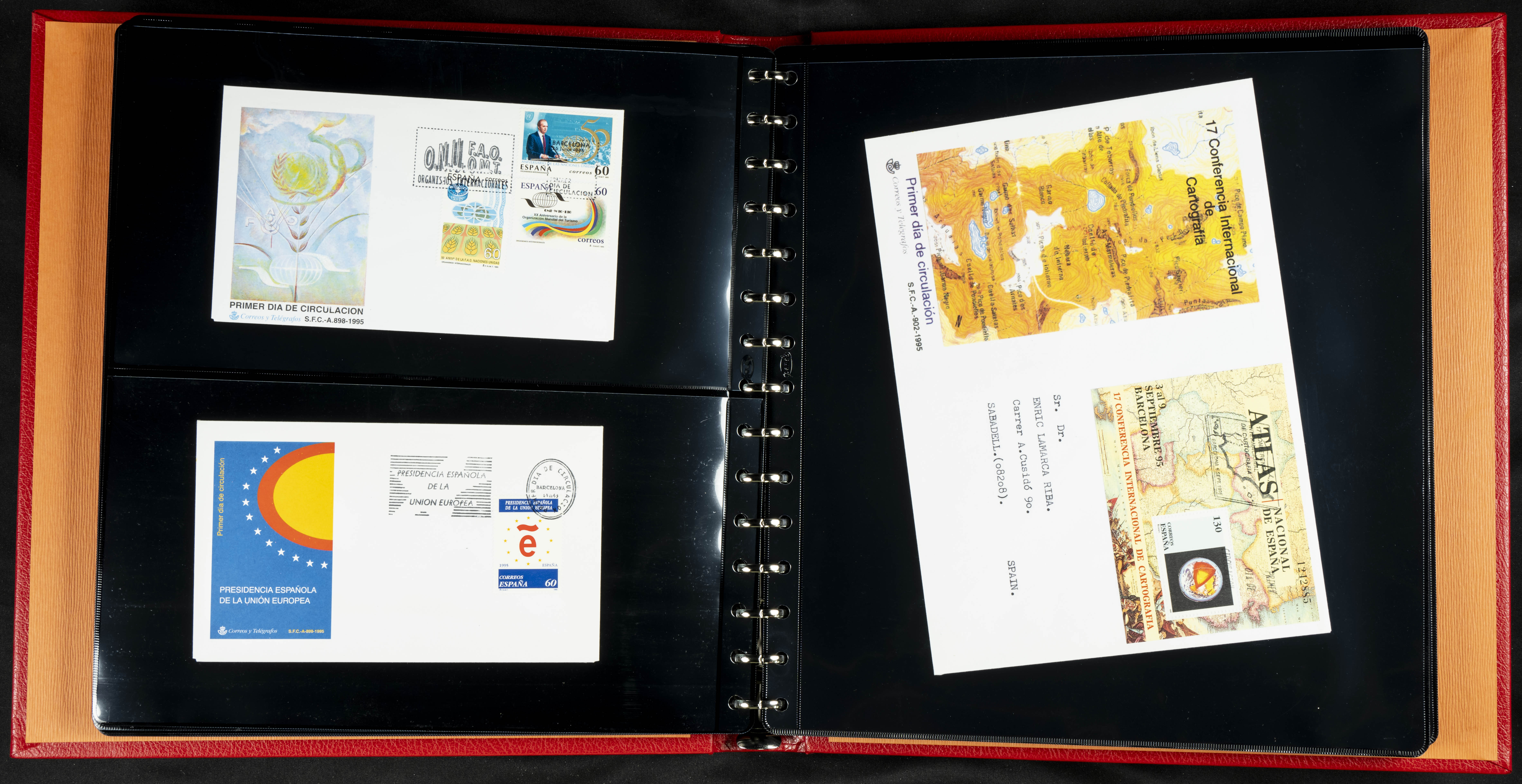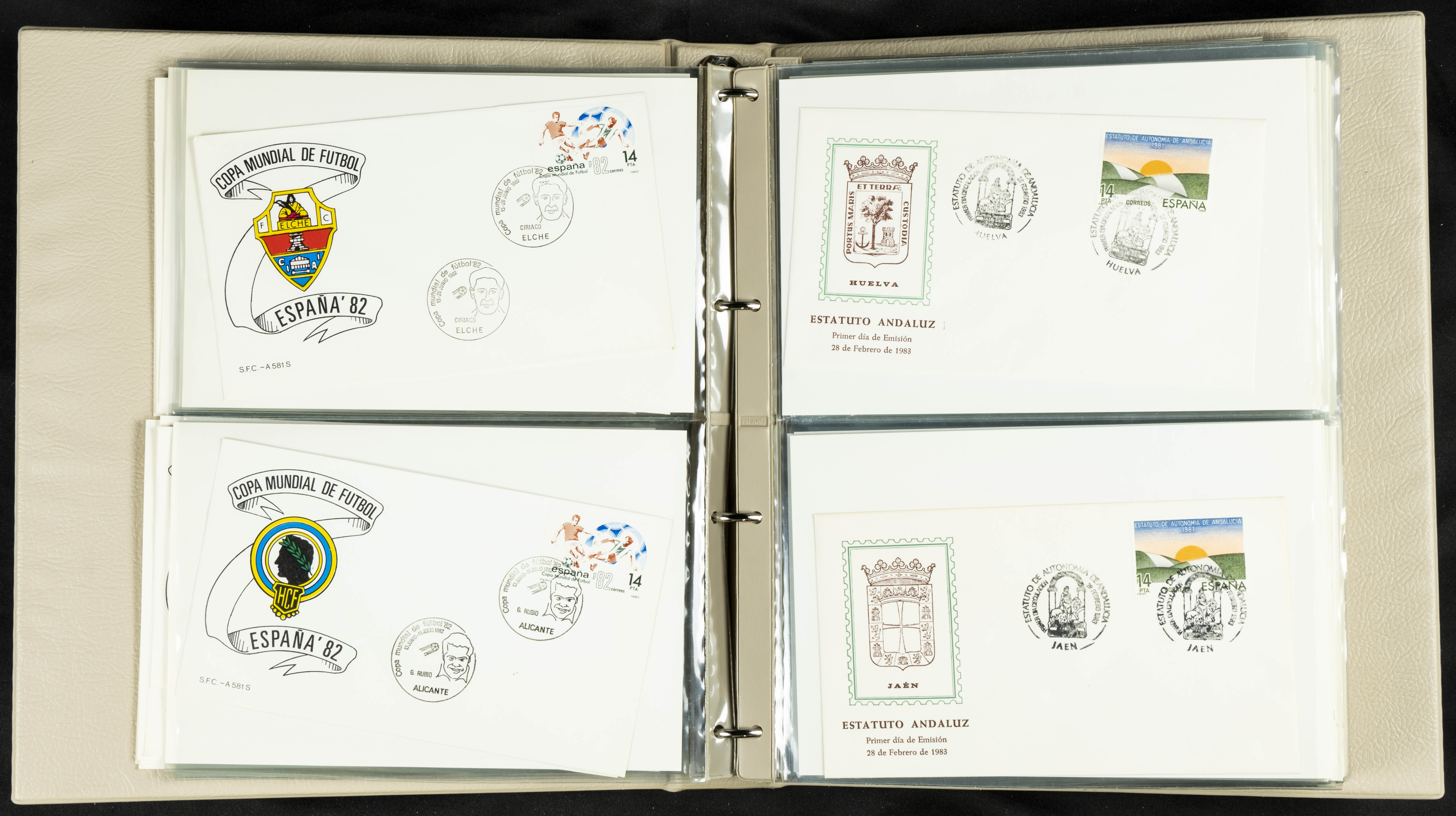English (1990ca). Collection of First Day Covers between 1990 and 2001, includes large formats, some covers from previous years (Suits and World Cup 82) and Spanish Andorra between 1980 and 1994. TO BE EXAMINED.