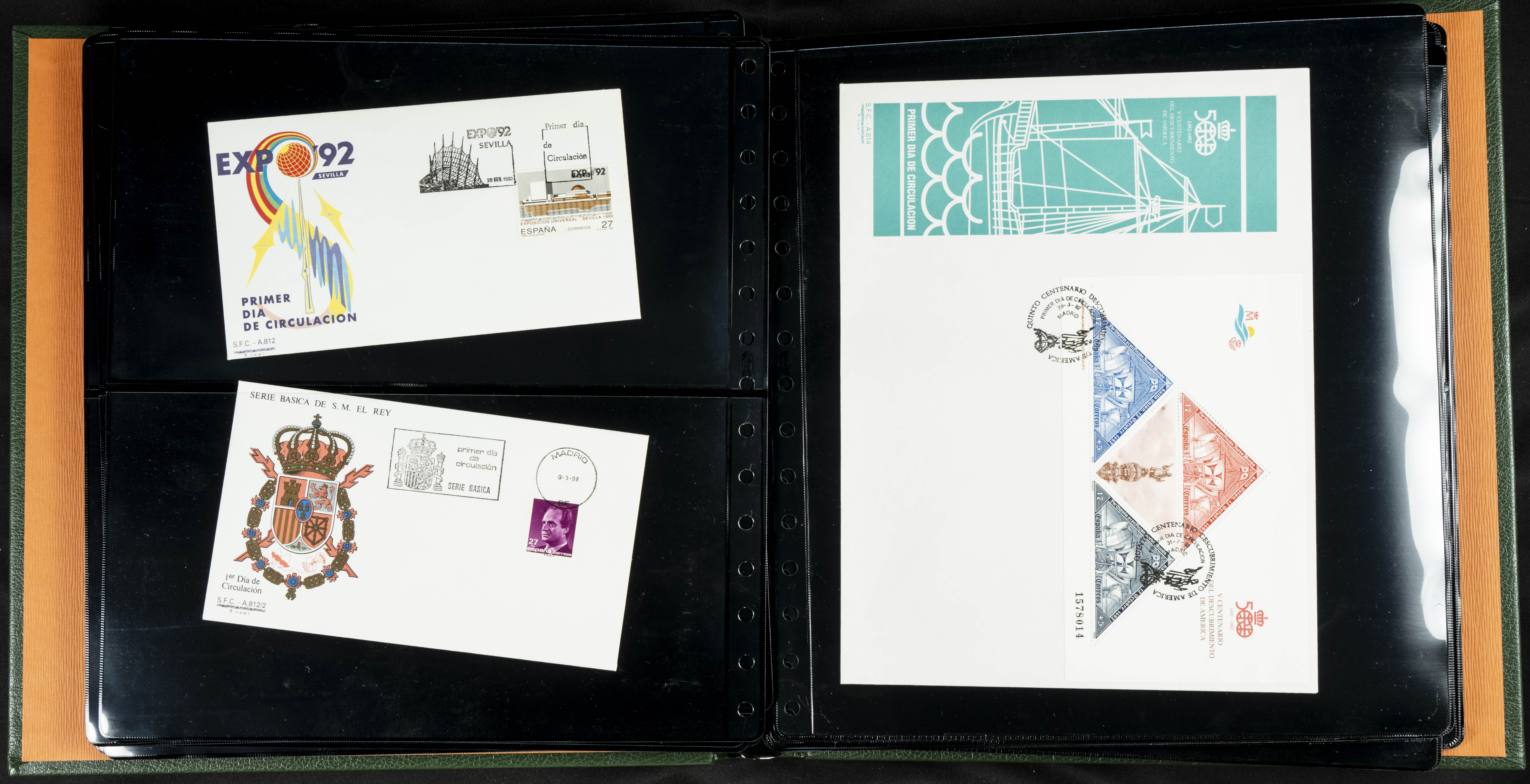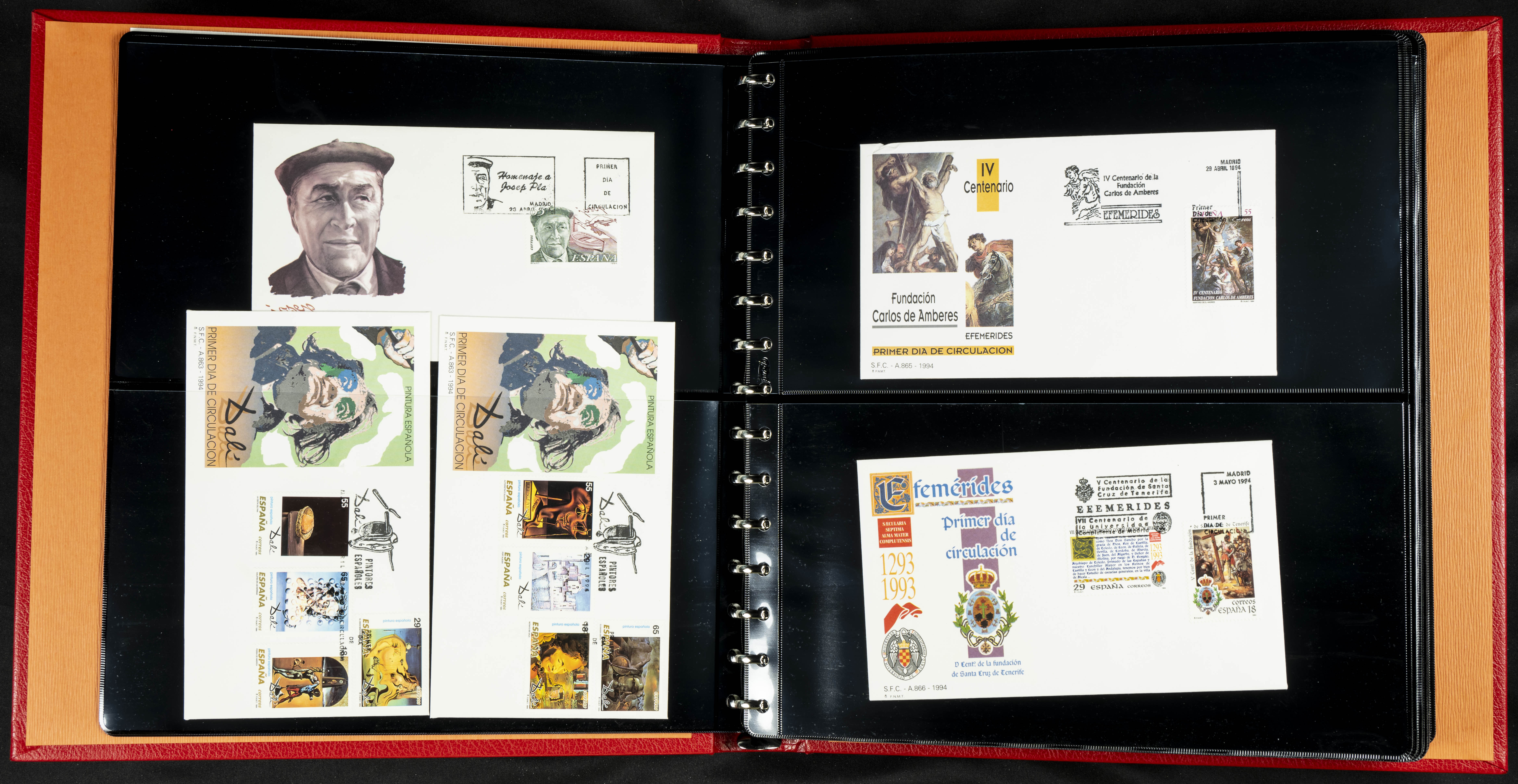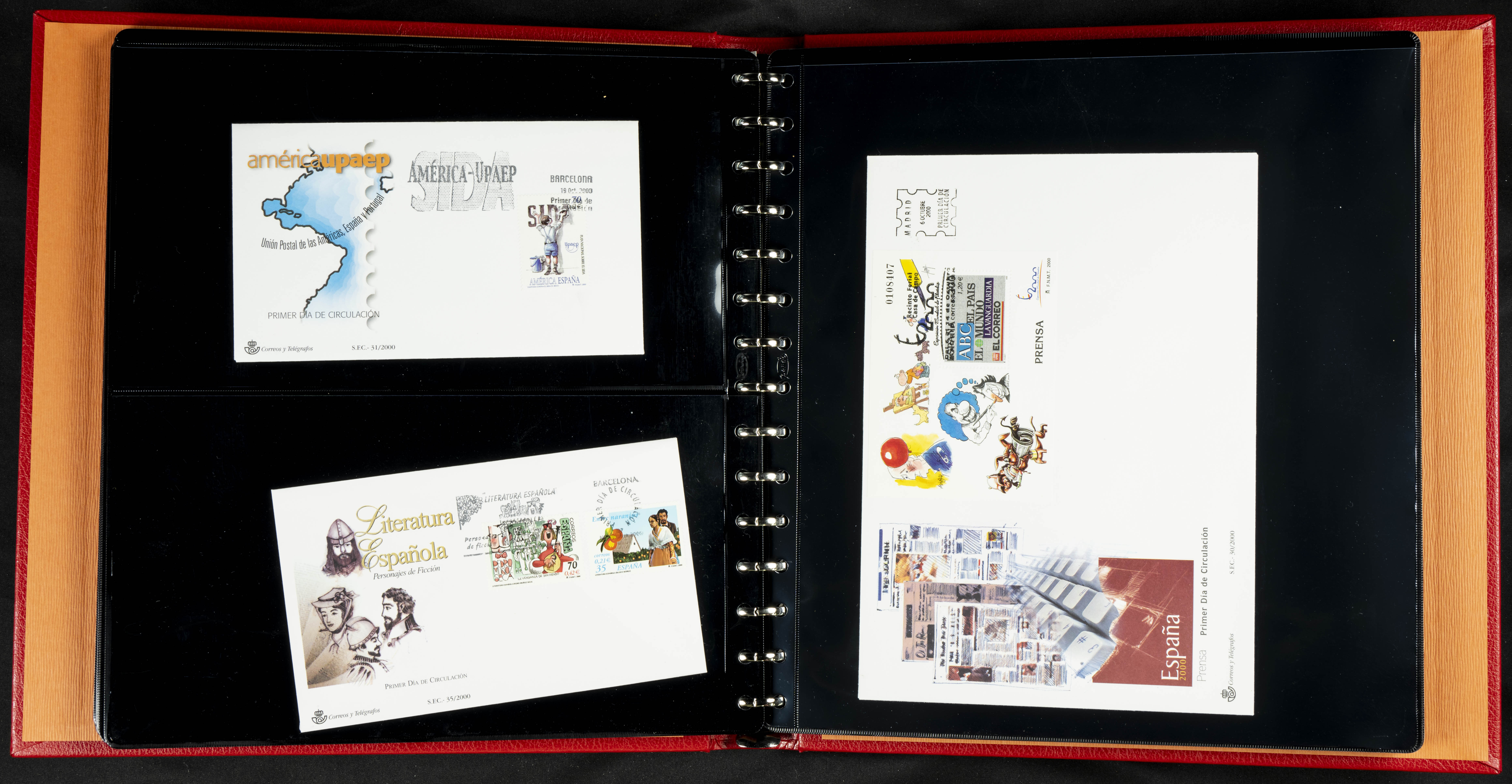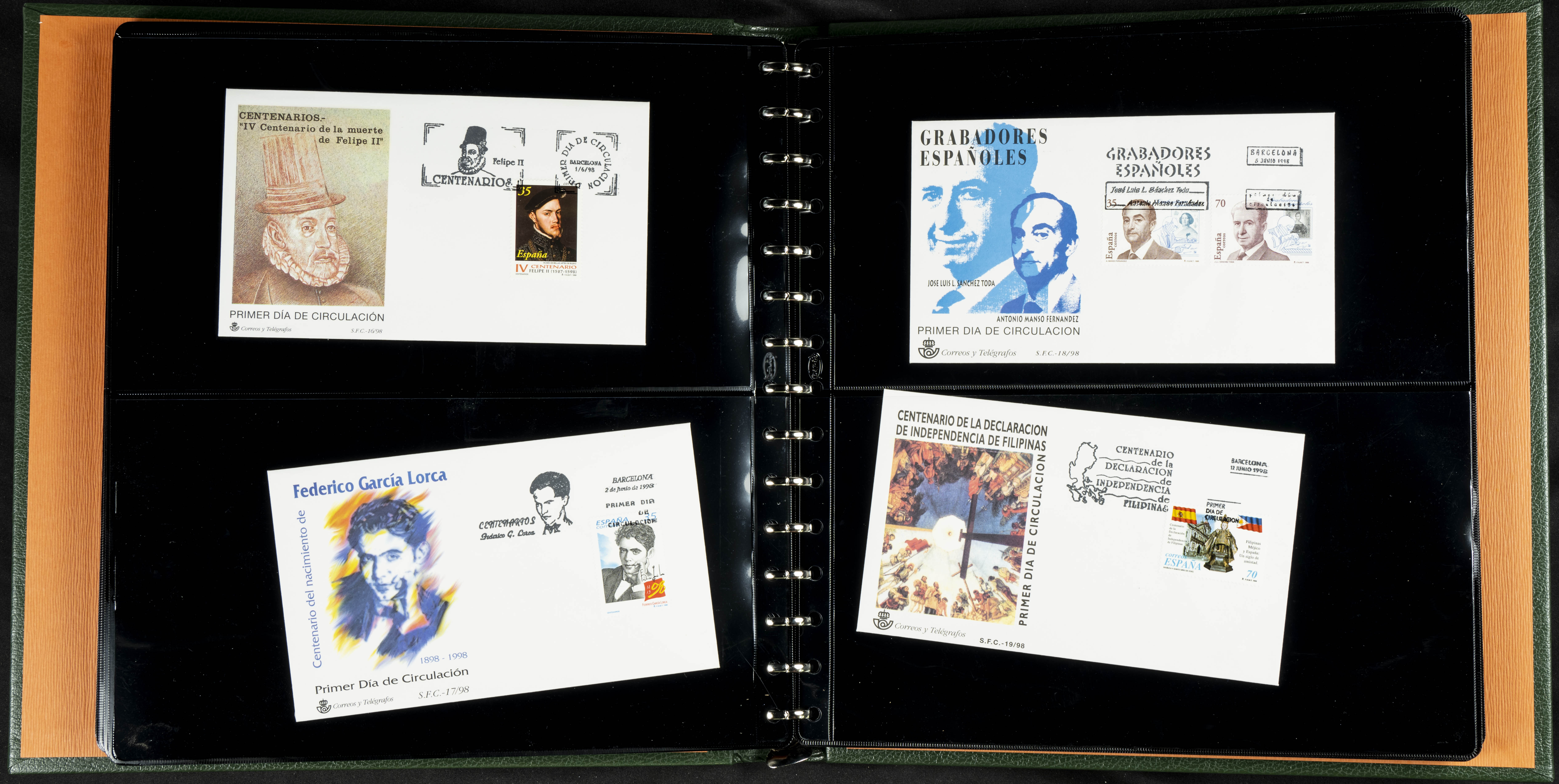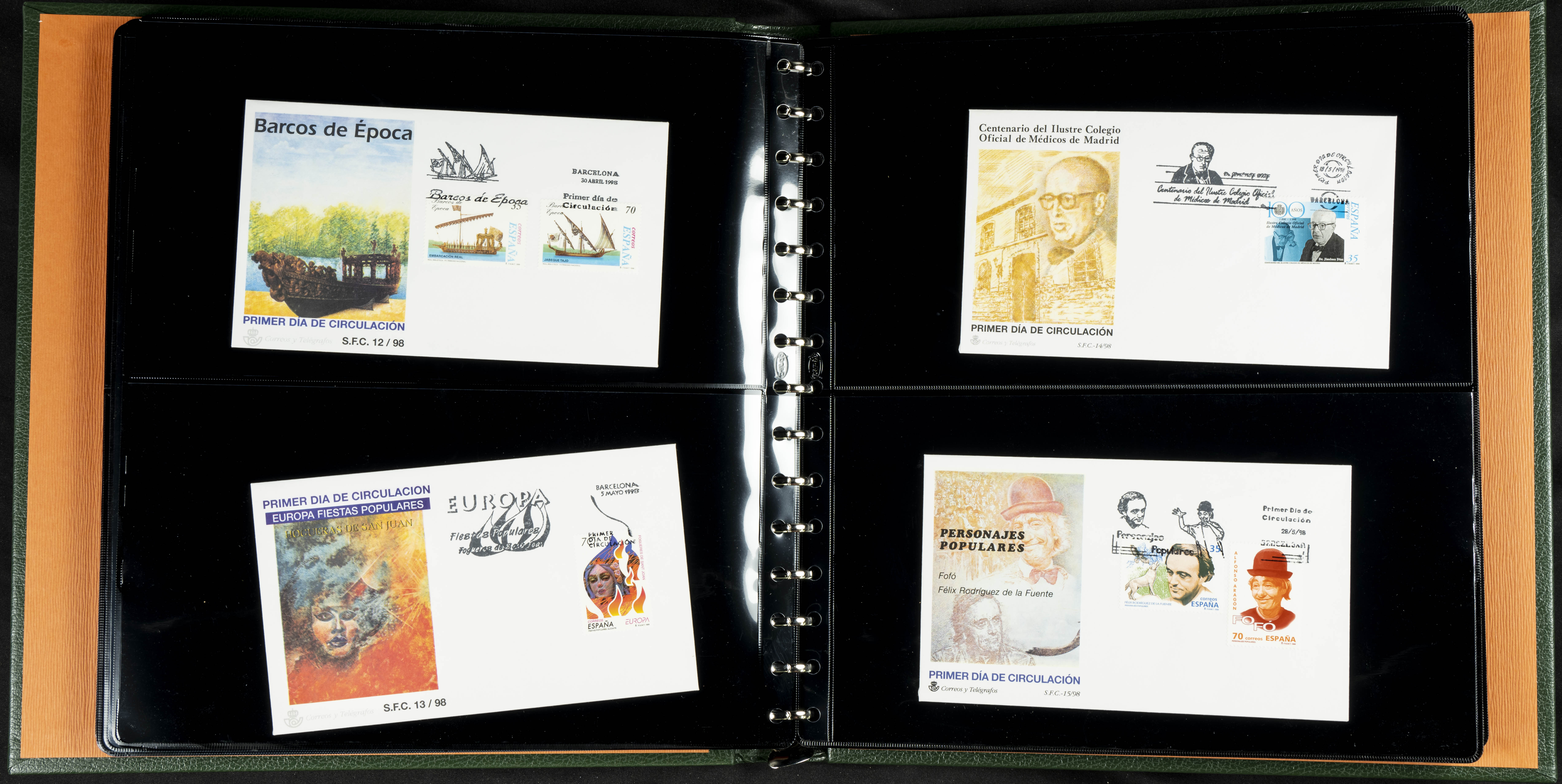 English (1990ca). Collection of First Day Covers between 1990 and 2001, includes large formats, some covers from previous years (Suits and World Cup 82) and Spanish Andorra between 1980 and 1994. TO BE EXAMINED.