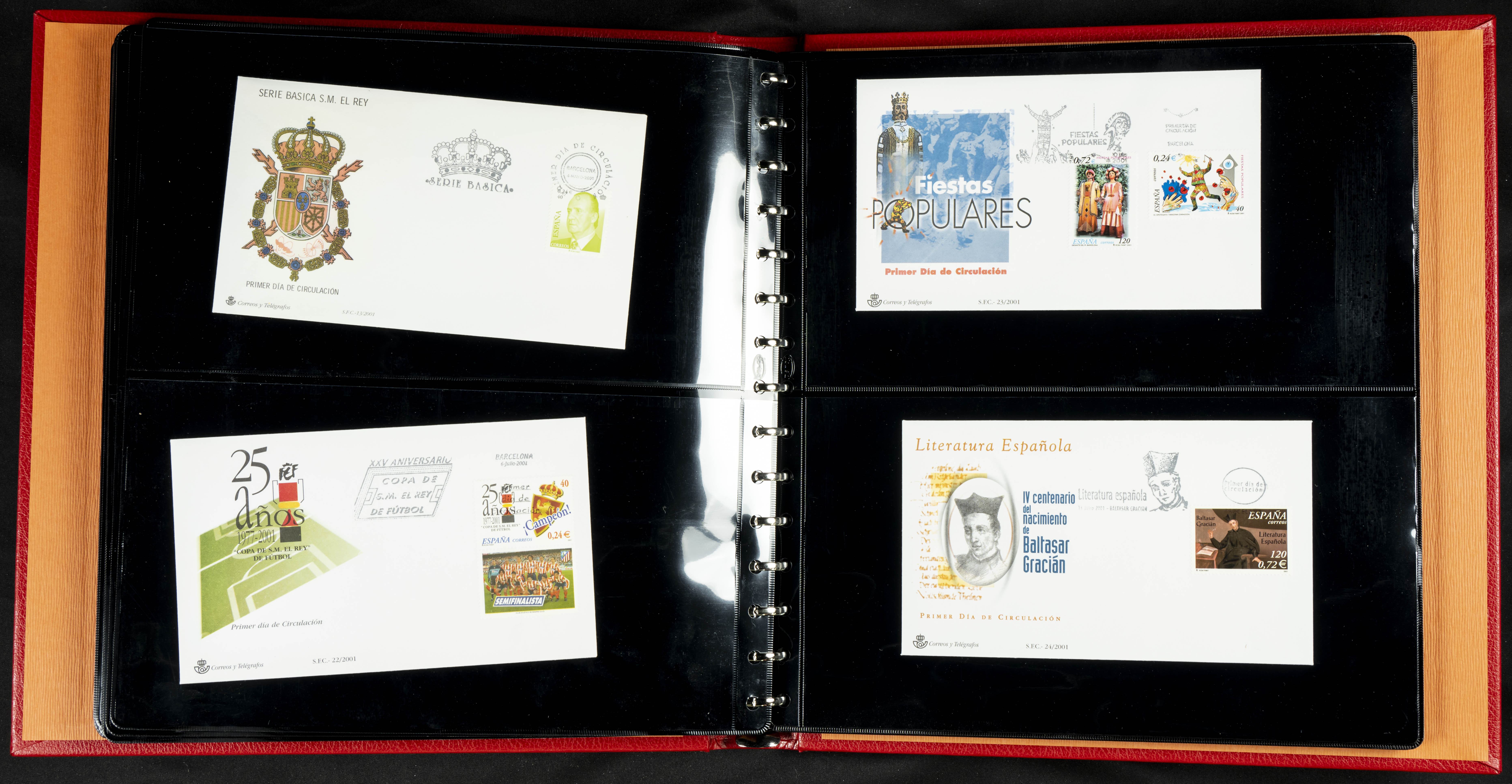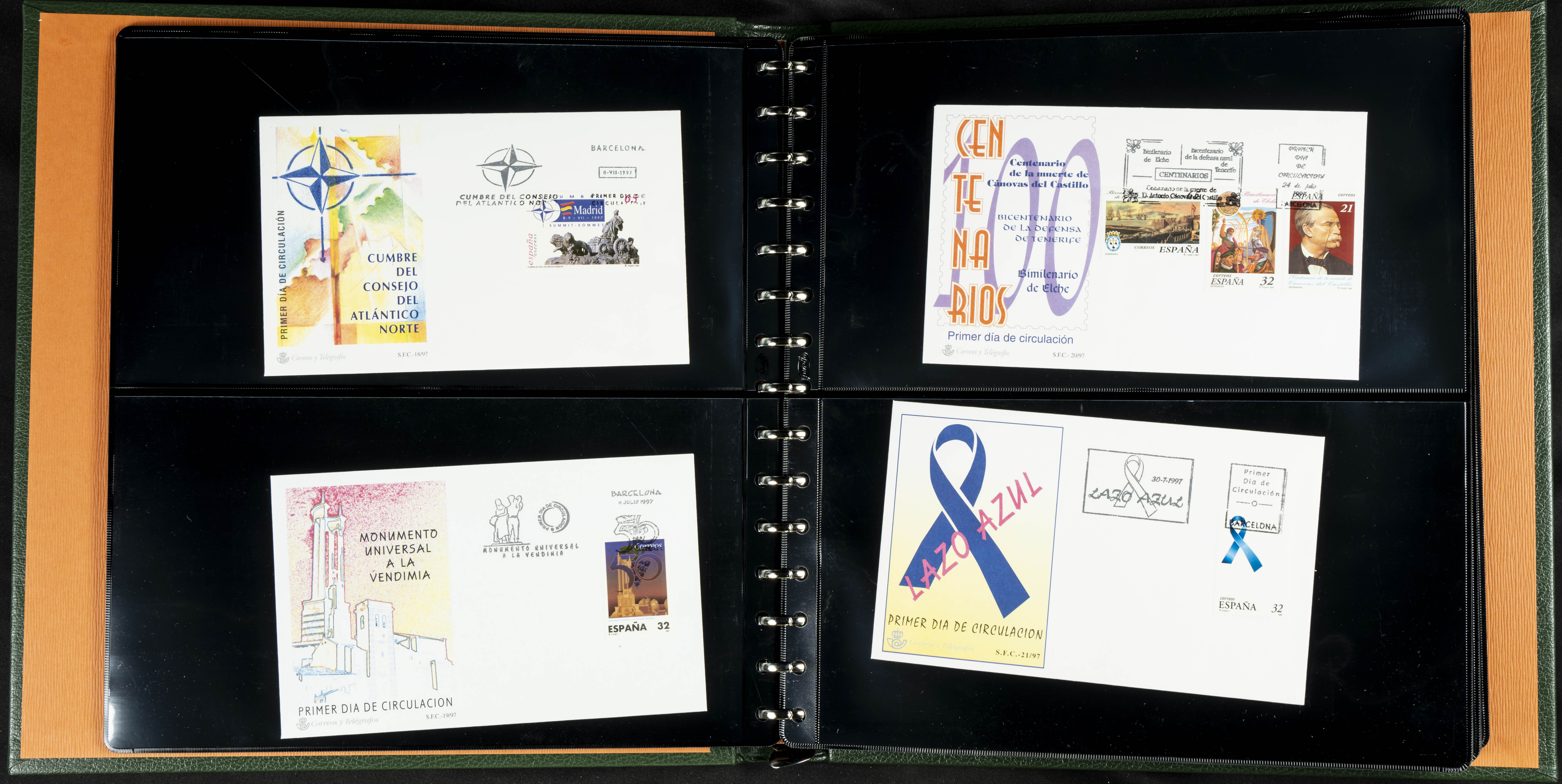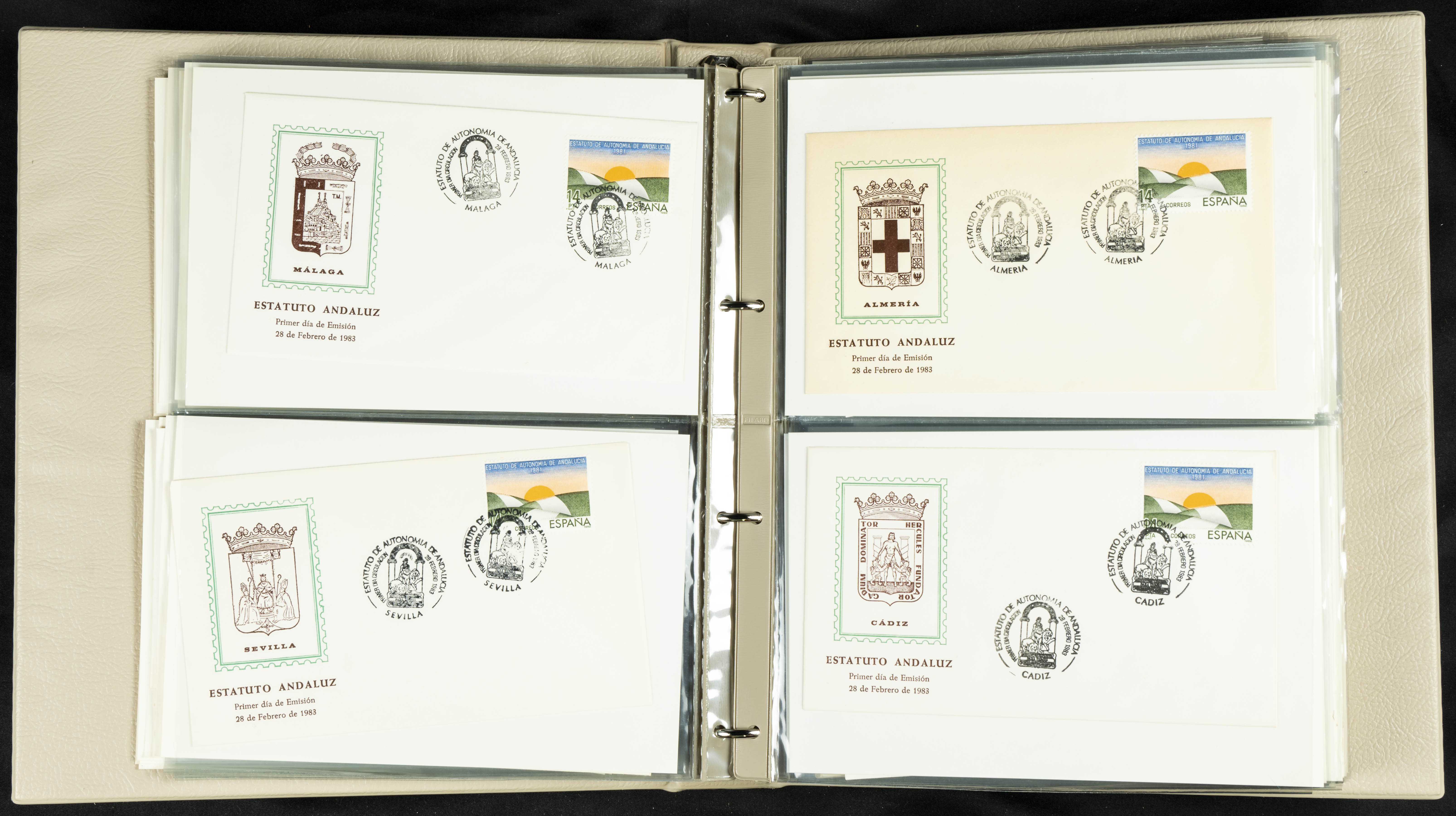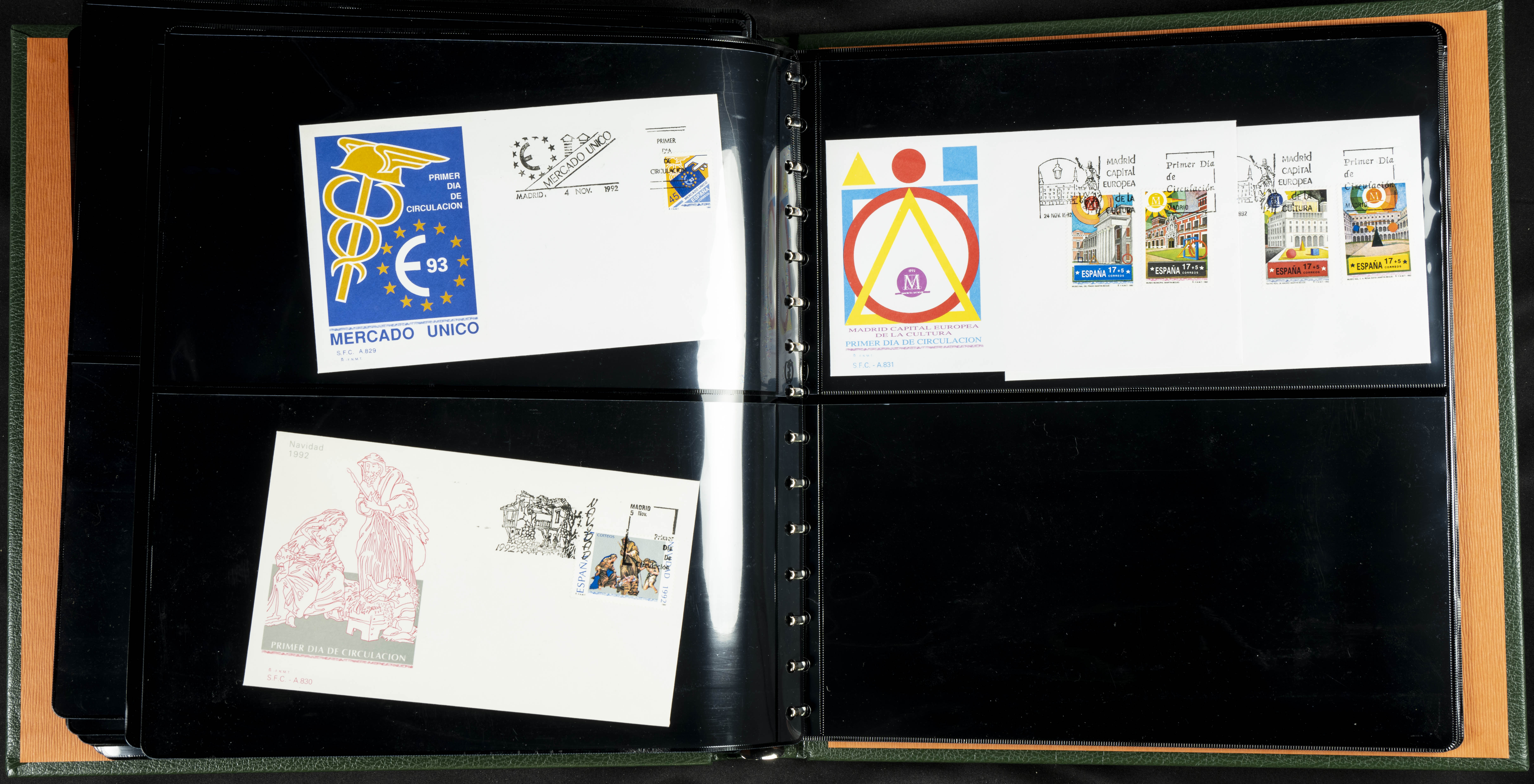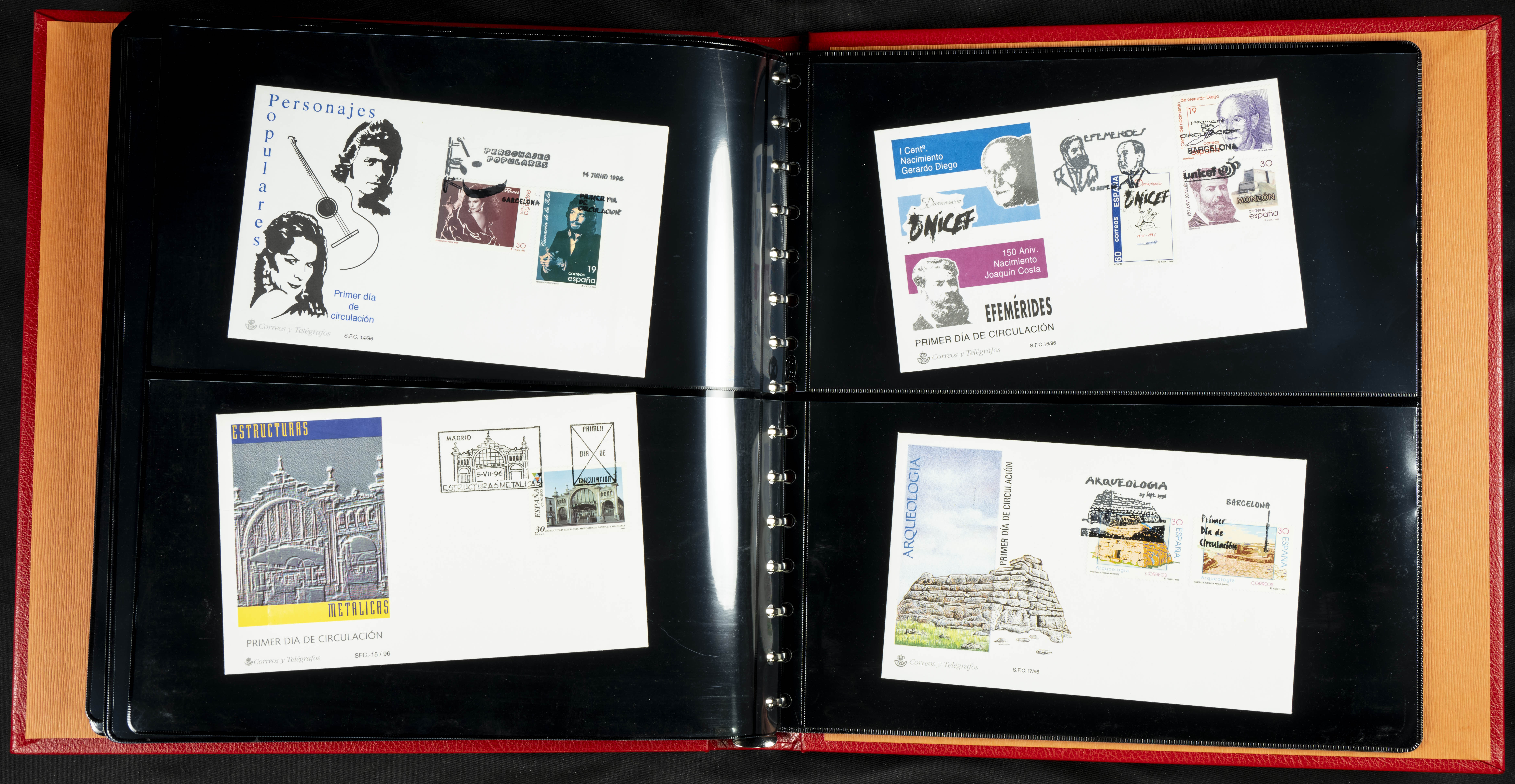 English (1990ca). Collection of First Day Covers between 1990 and 2001, includes large formats, some covers from previous years (Suits and World Cup 82) and Spanish Andorra between 1980 and 1994. TO BE EXAMINED.
