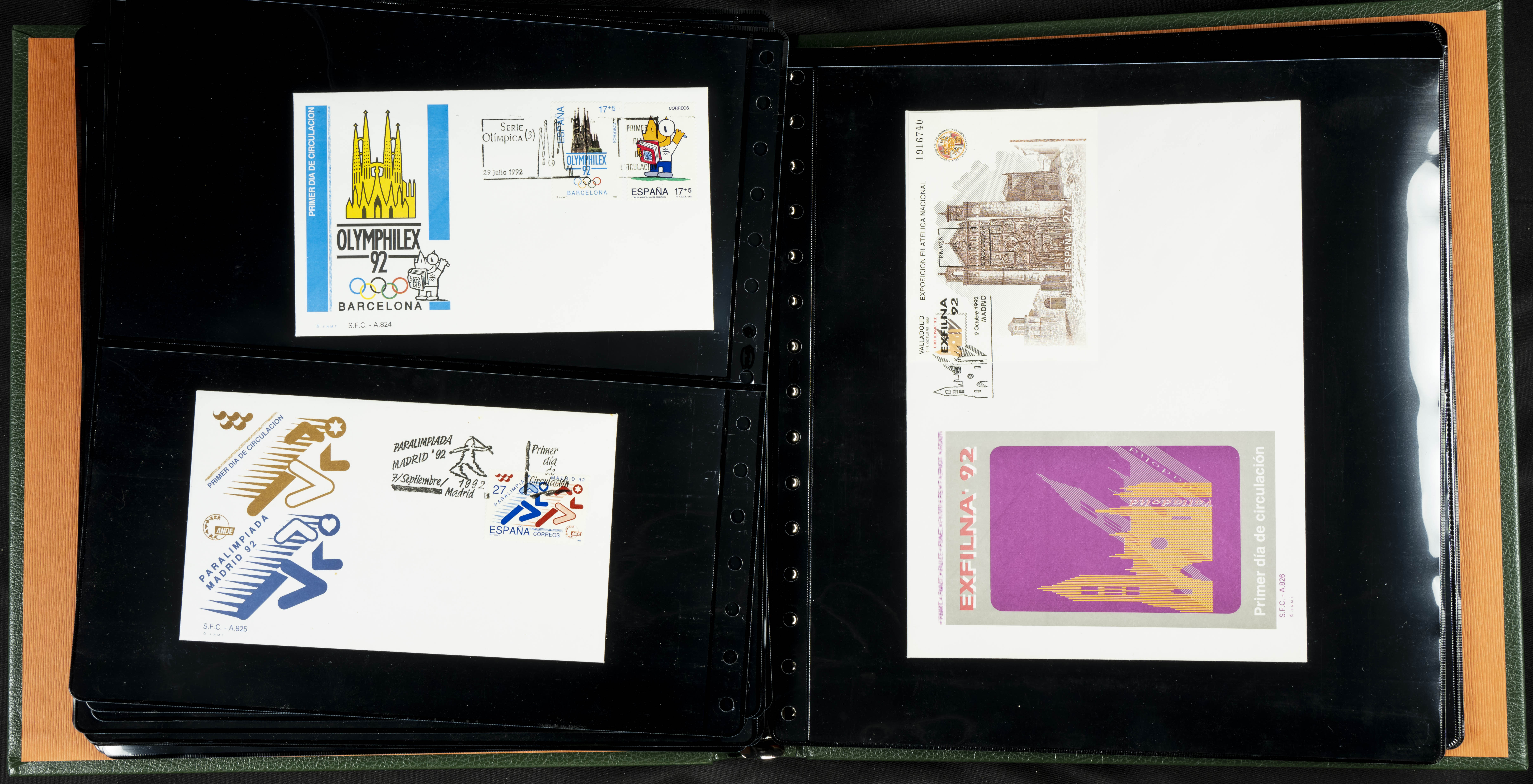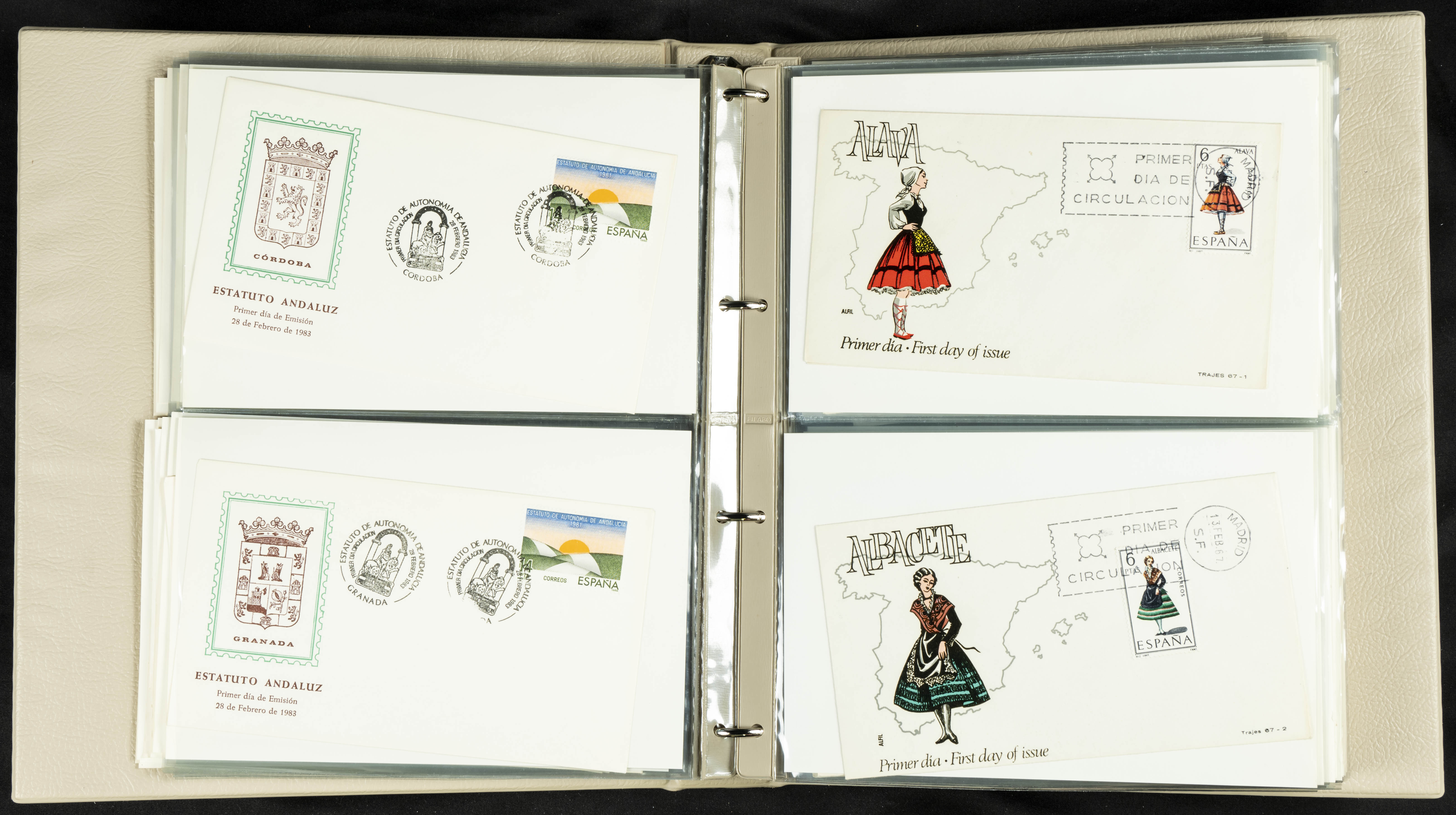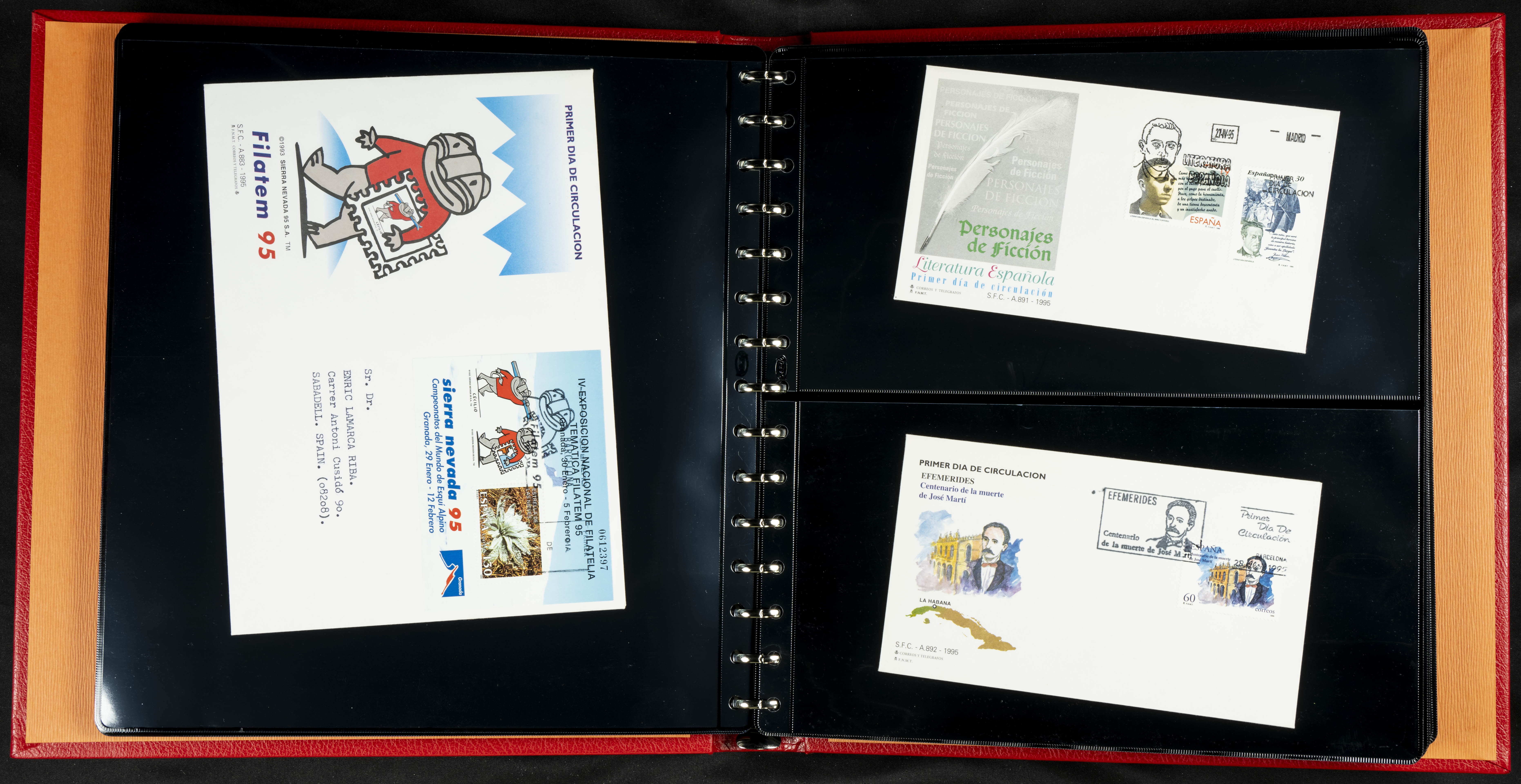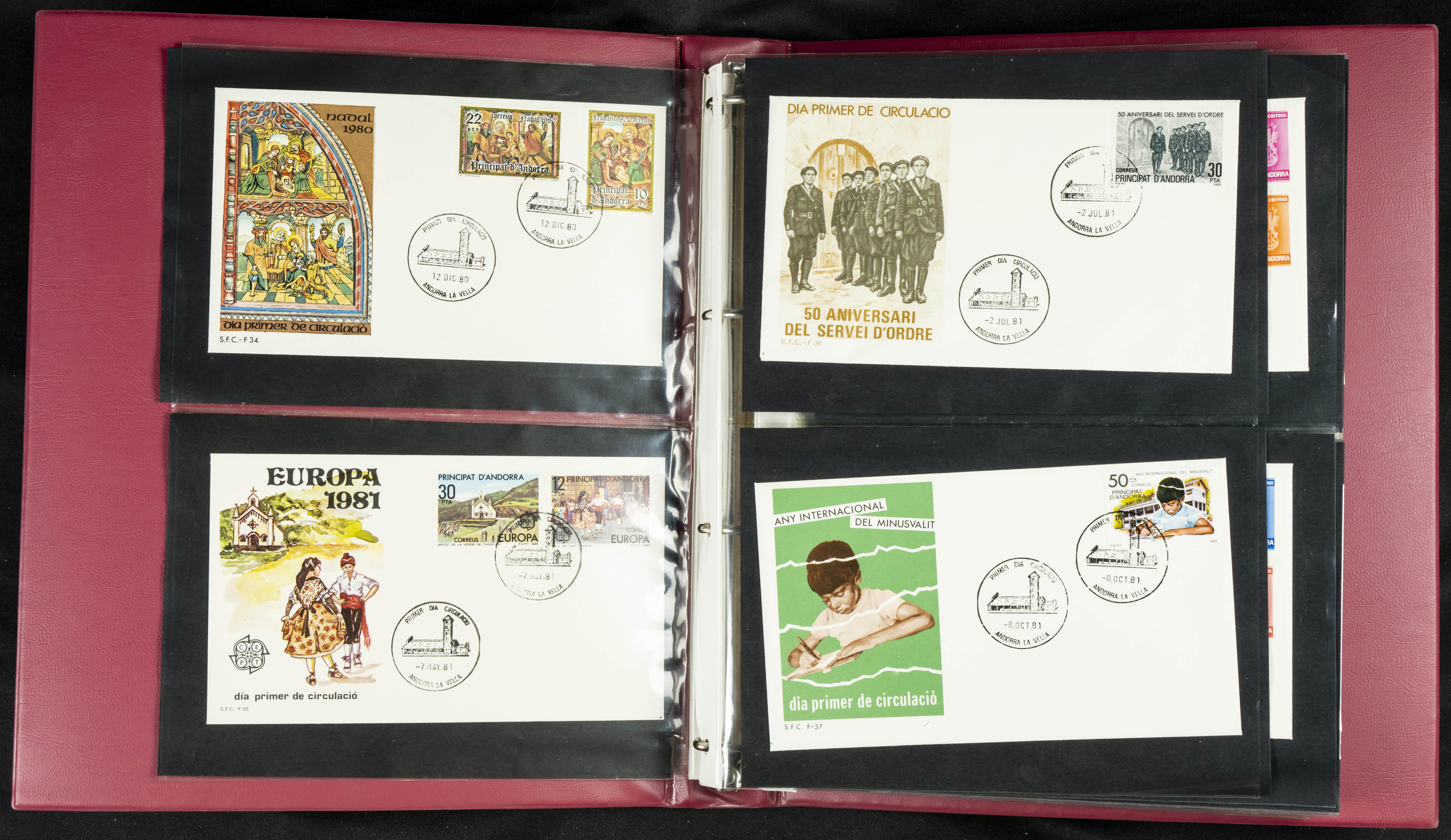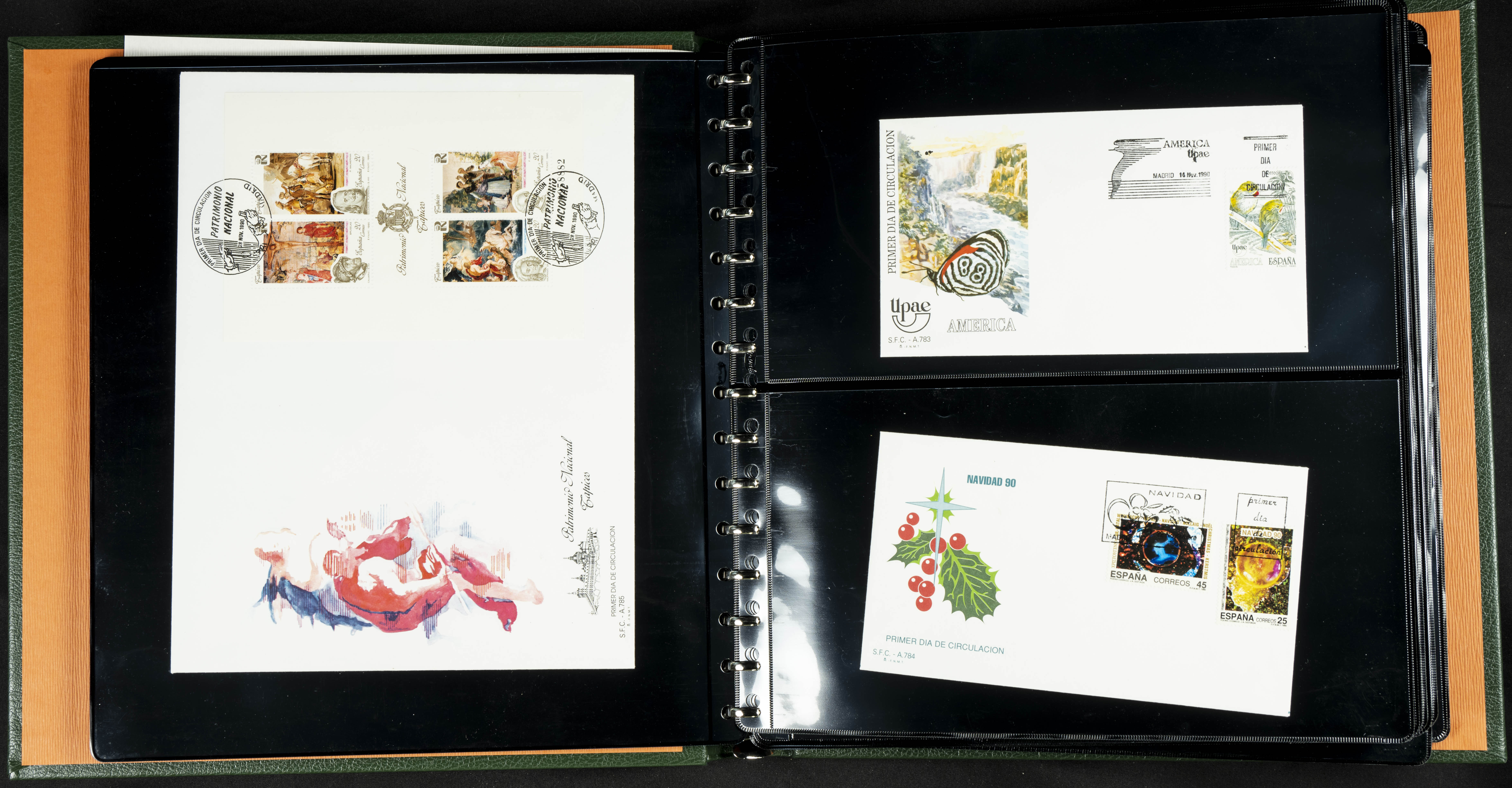 English (1990ca). Collection of First Day Covers between 1990 and 2001, includes large formats, some covers from previous years (Suits and World Cup 82) and Spanish Andorra between 1980 and 1994. TO BE EXAMINED.