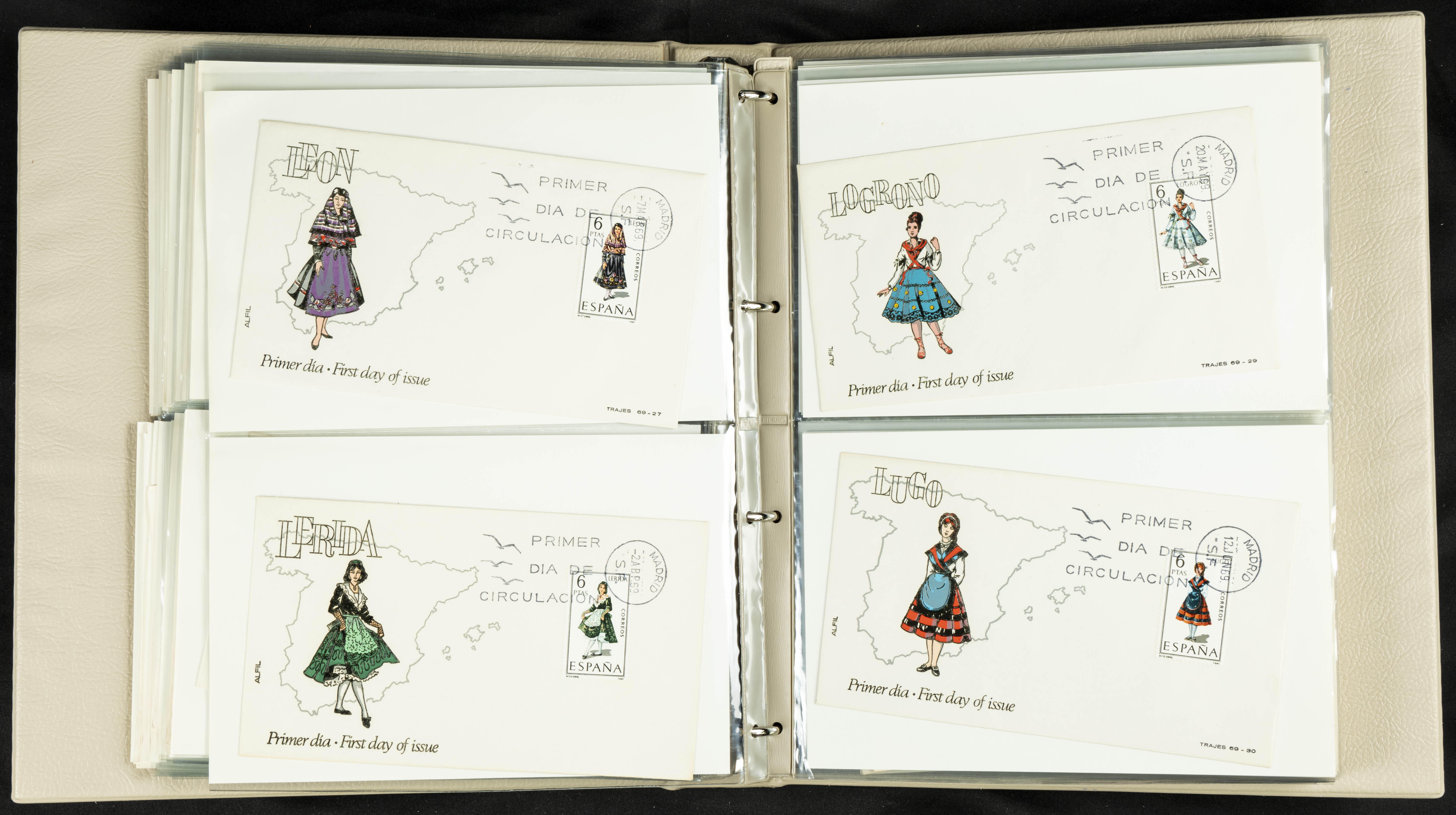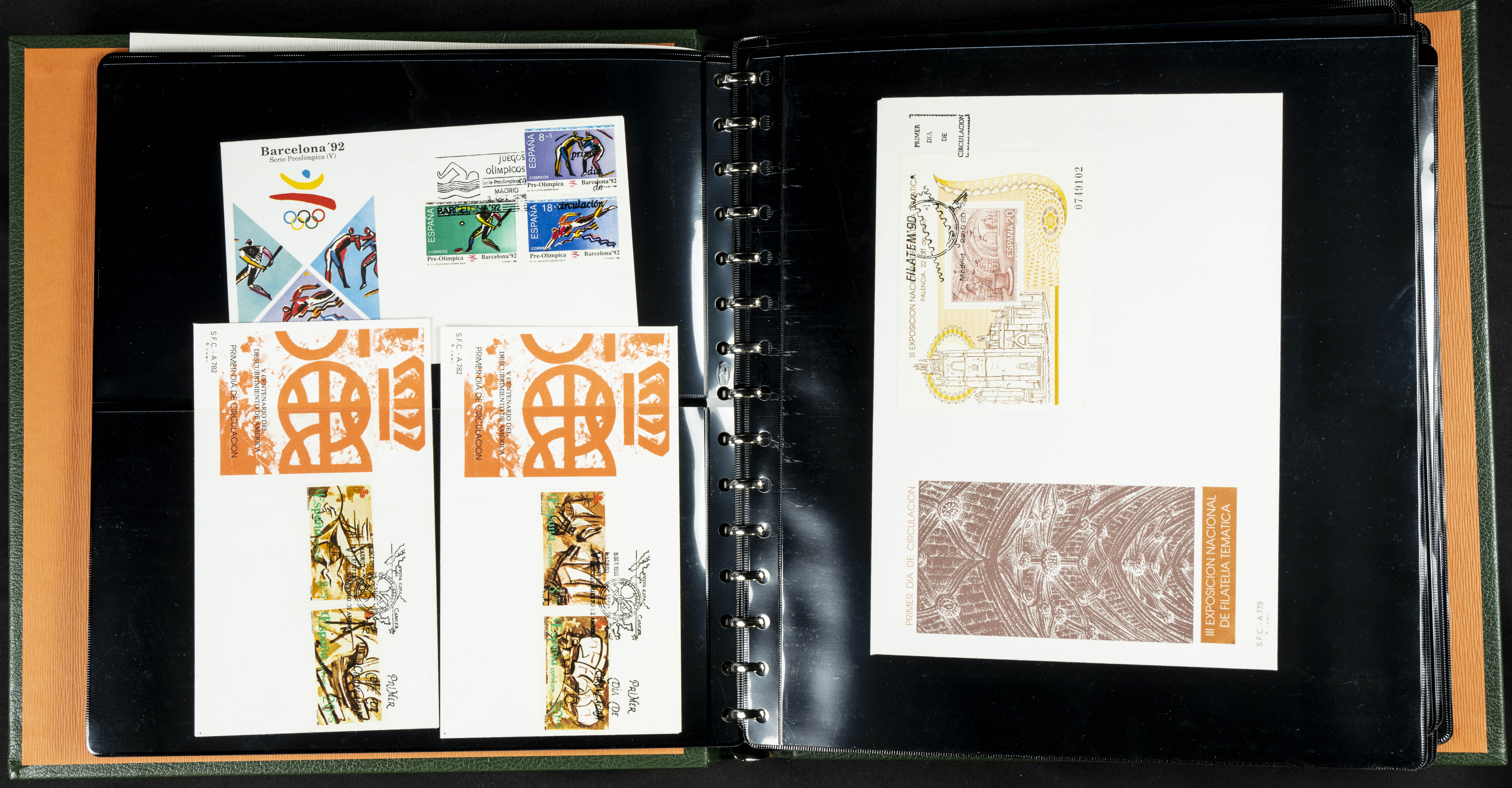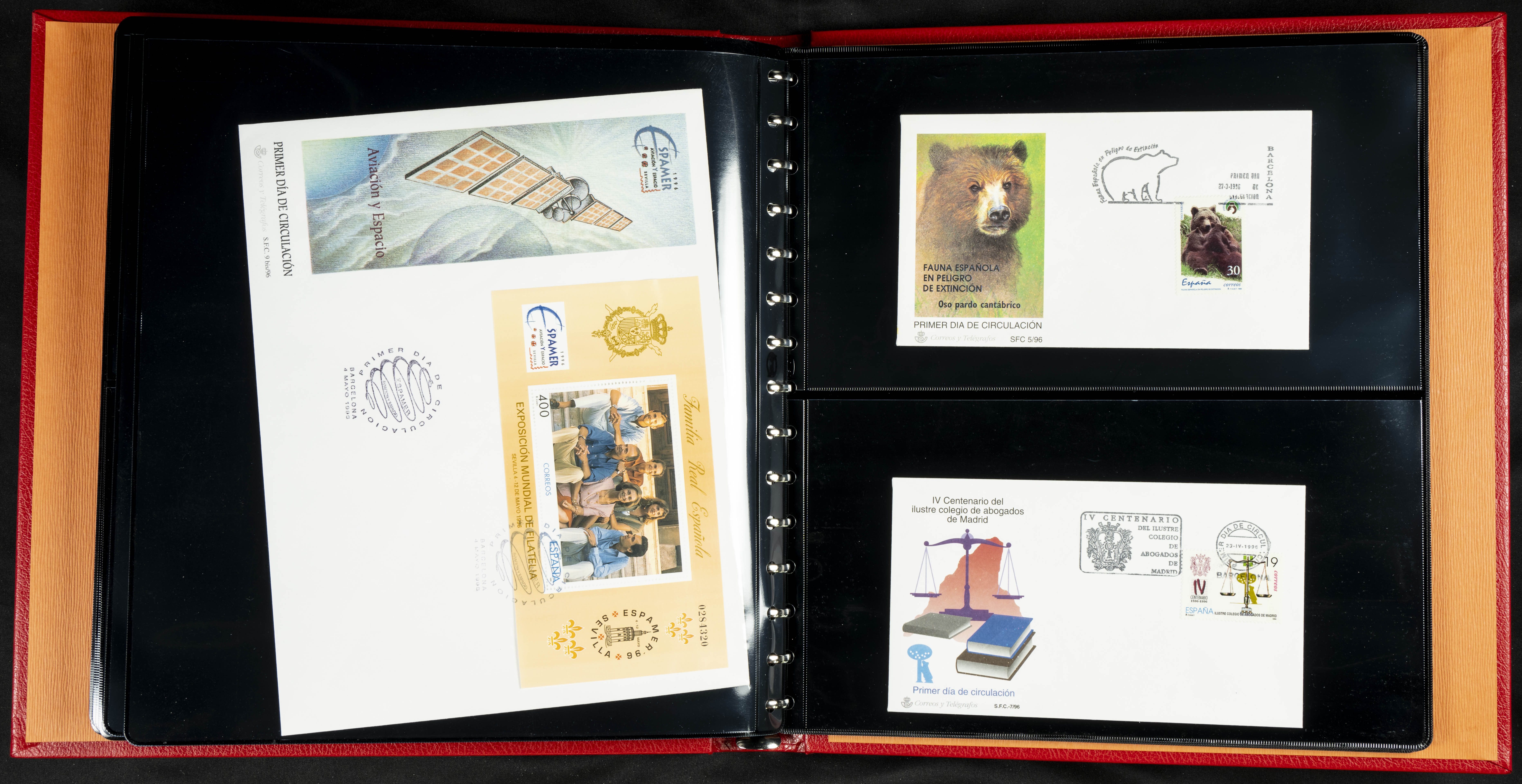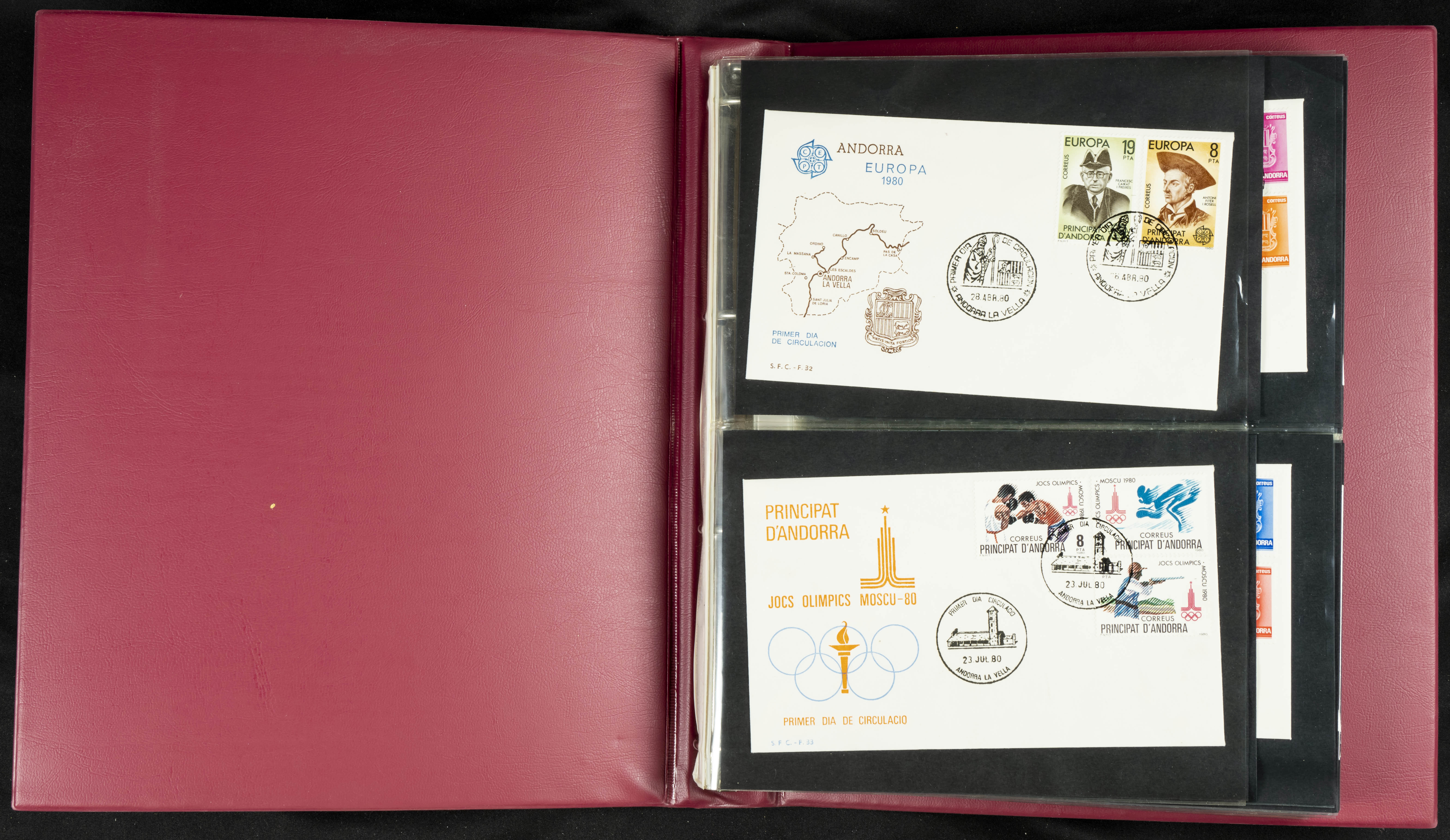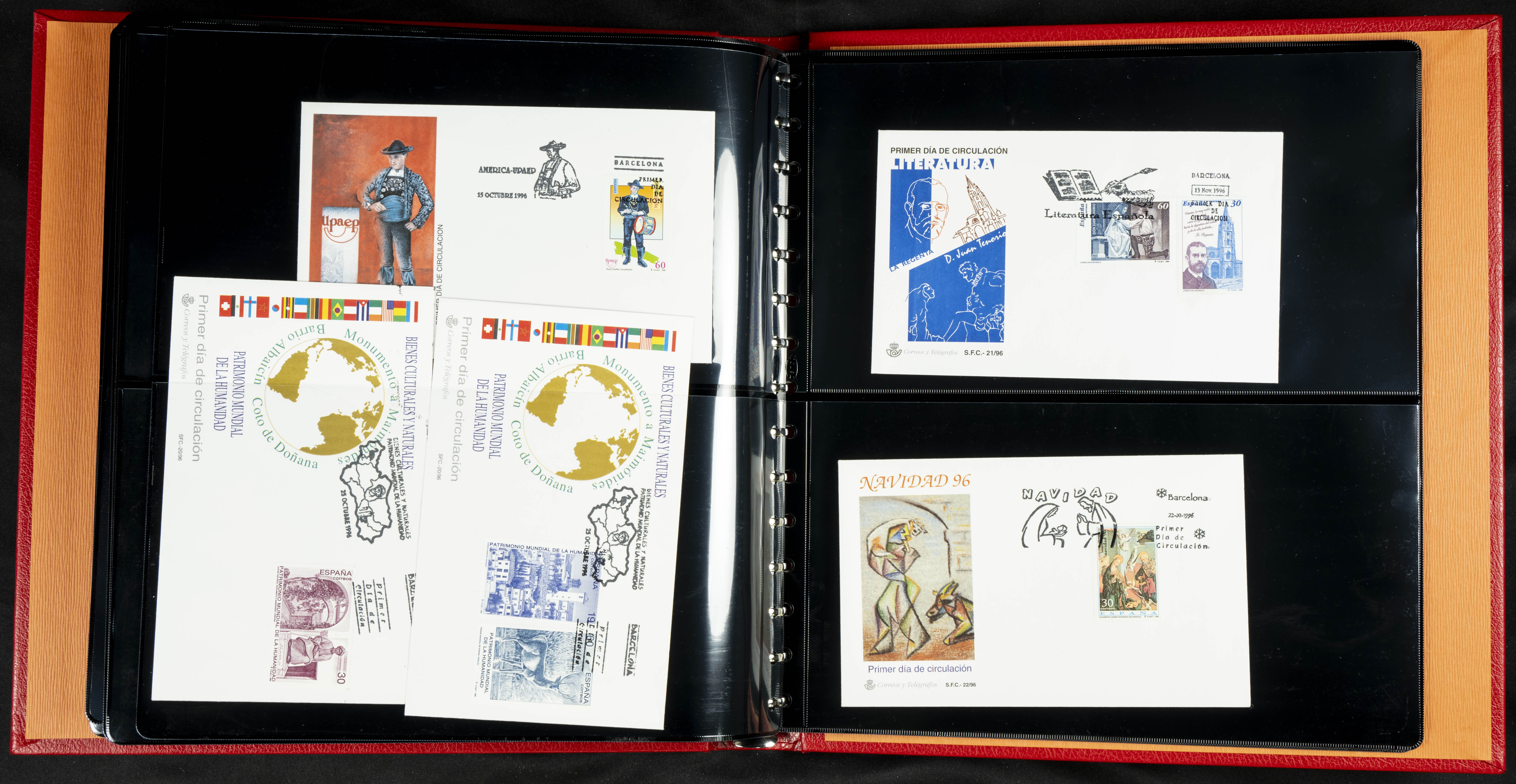 English (1990ca). Collection of First Day Covers between 1990 and 2001, includes large formats, some covers from previous years (Suits and World Cup 82) and Spanish Andorra between 1980 and 1994. TO BE EXAMINED.