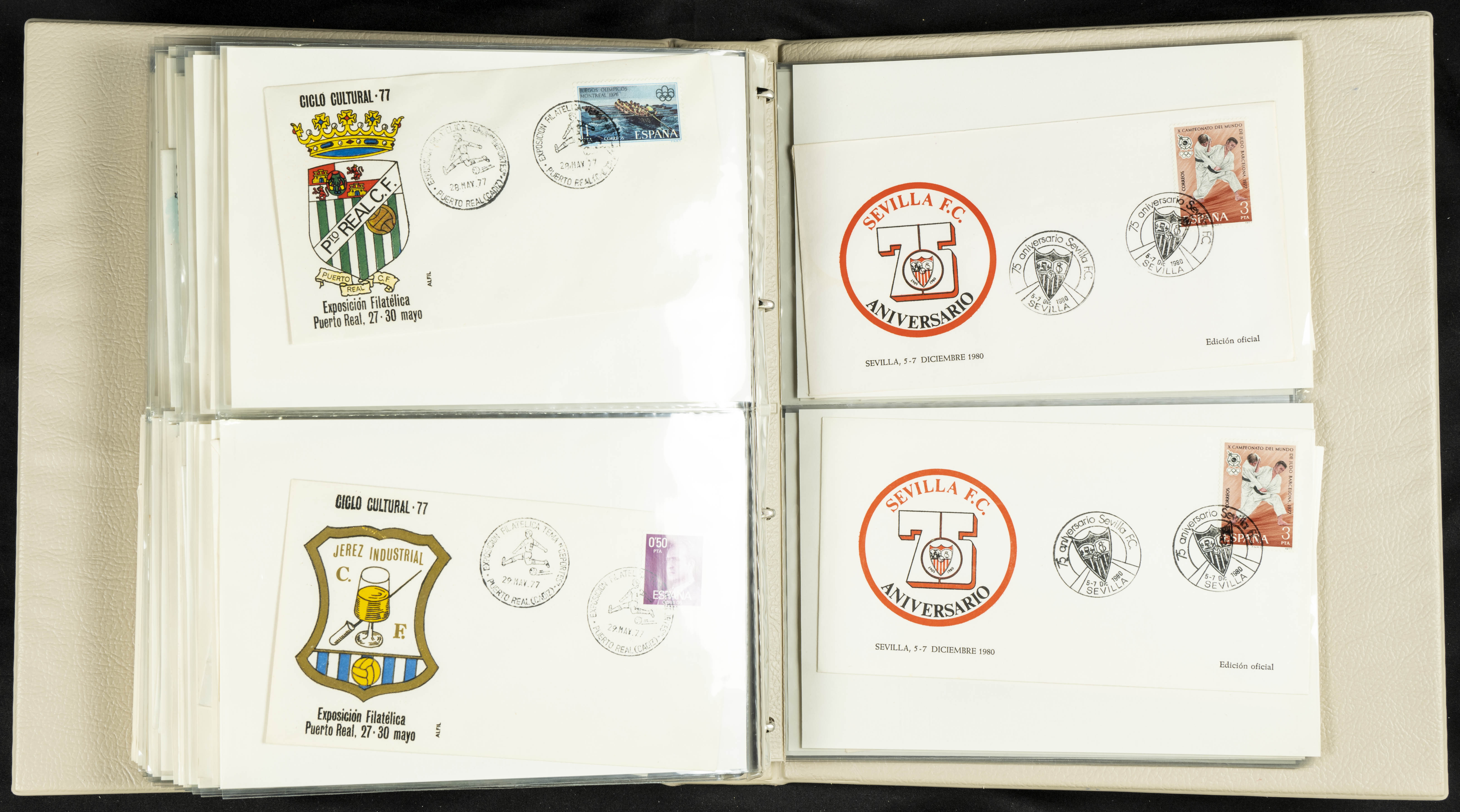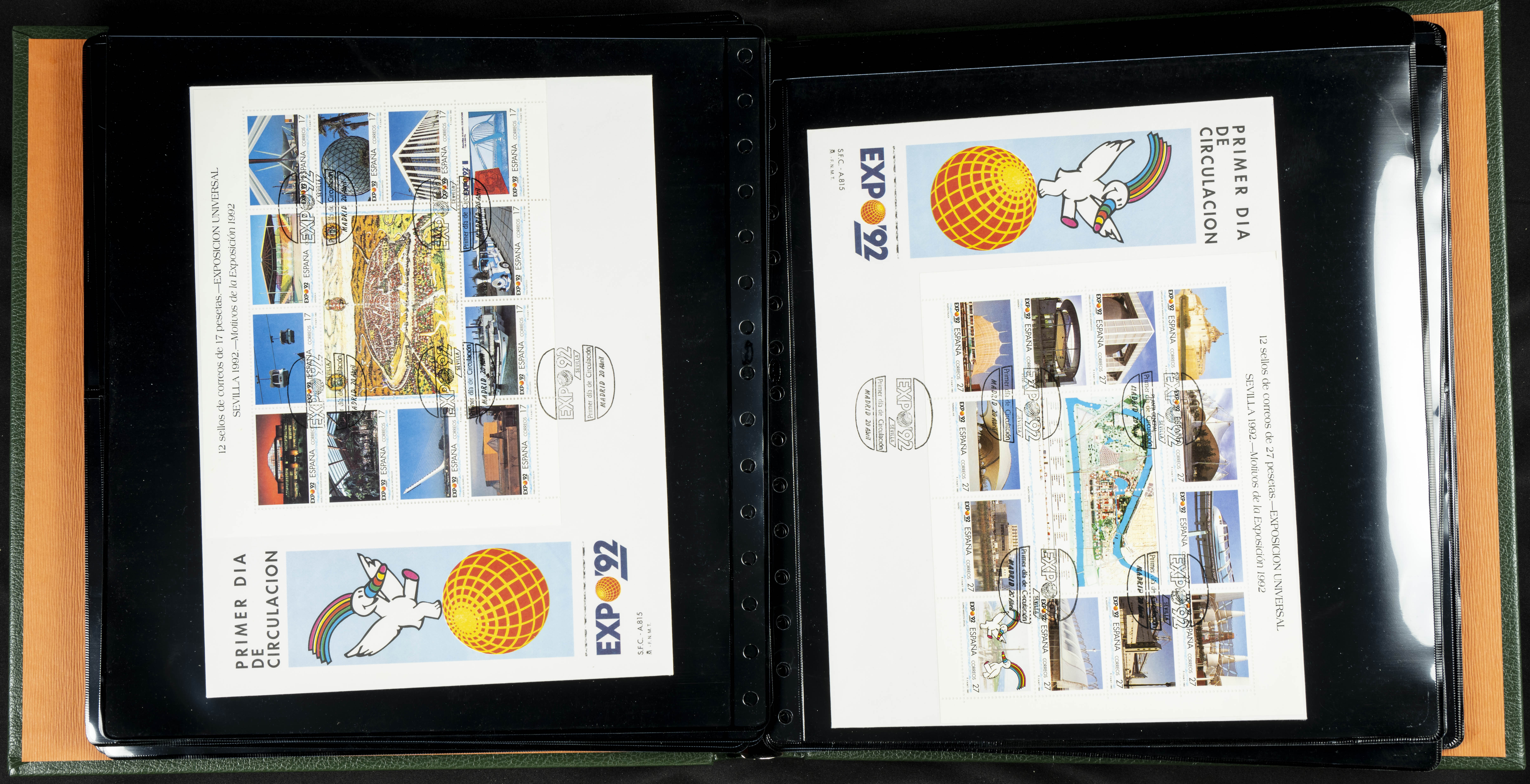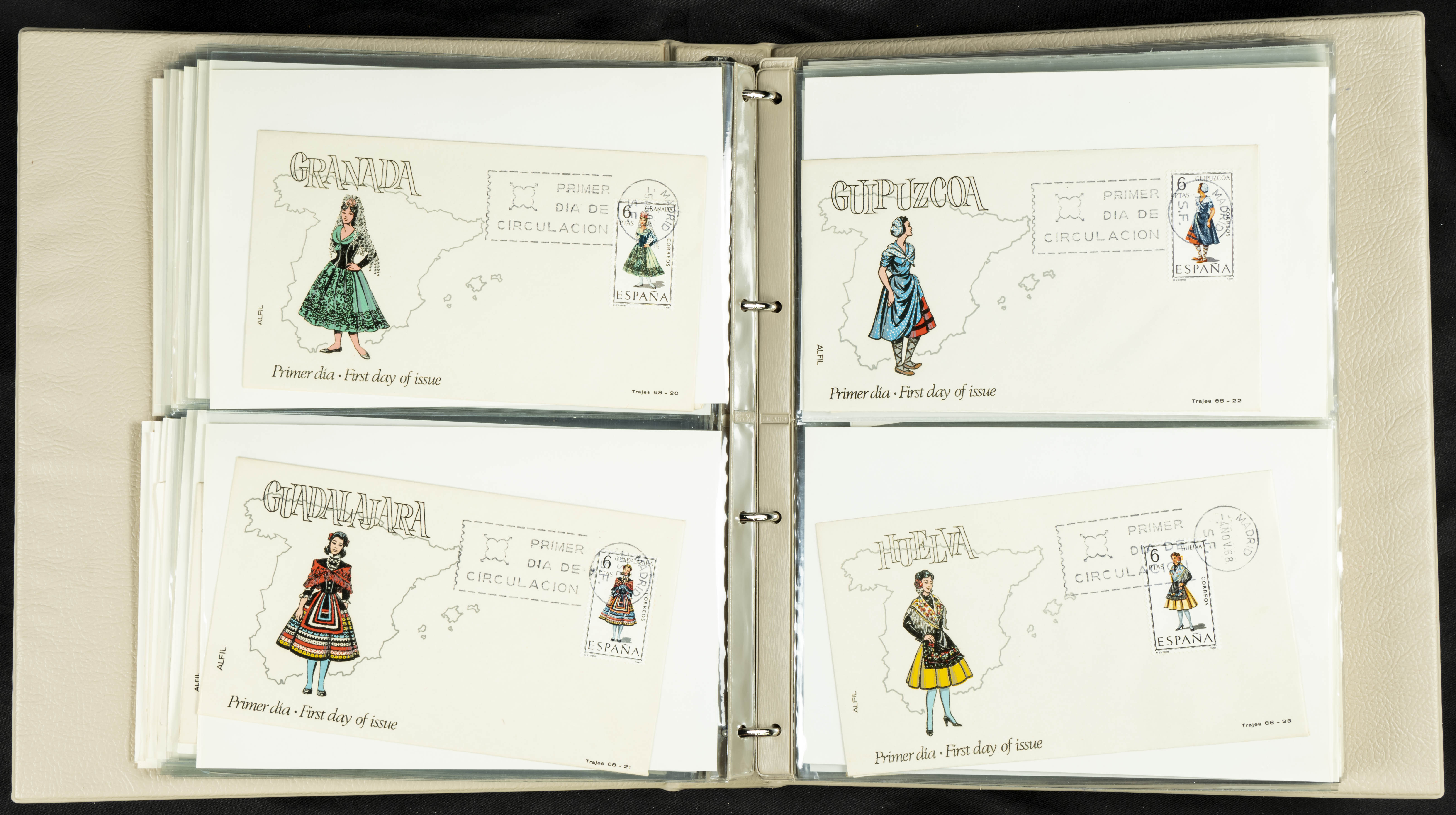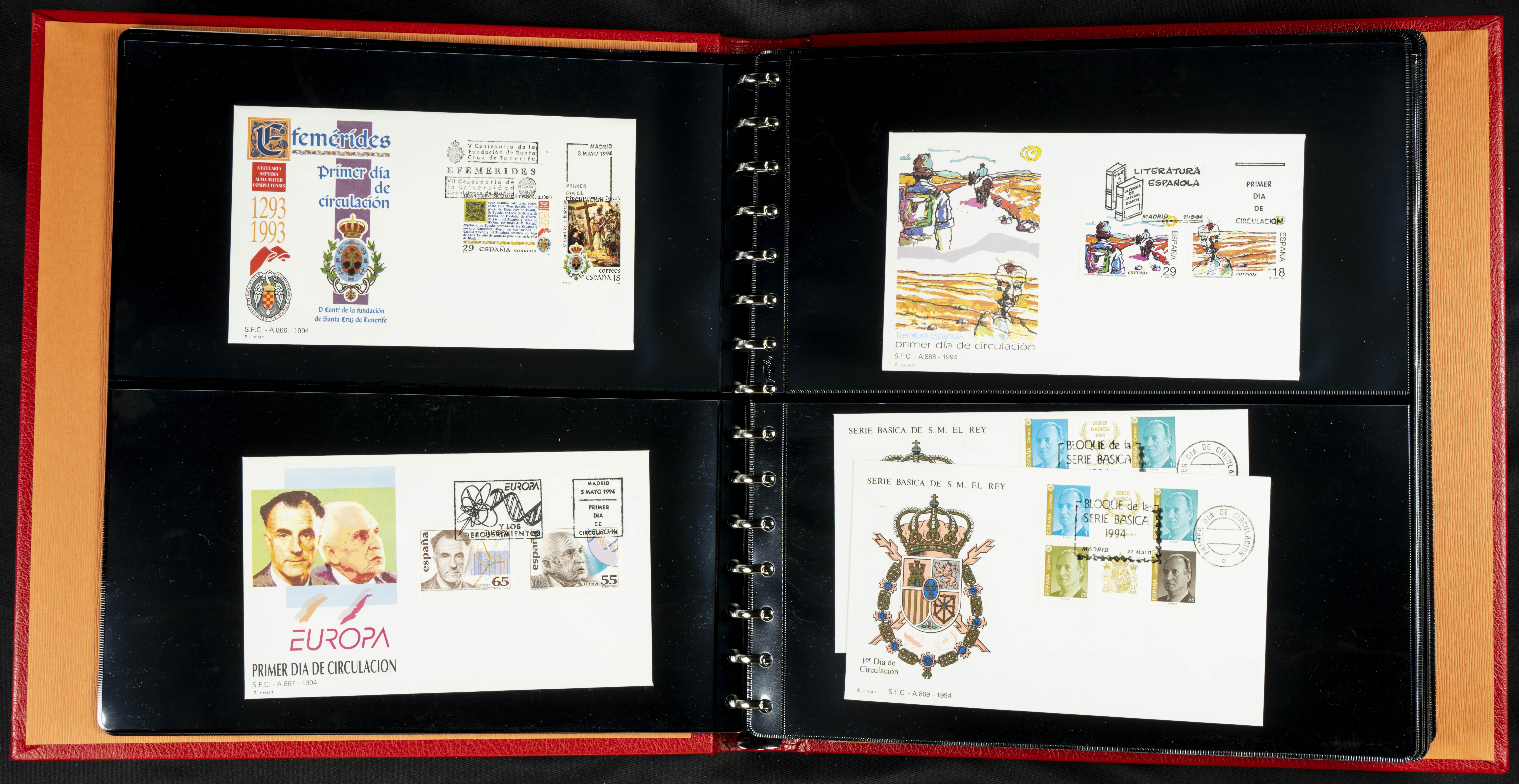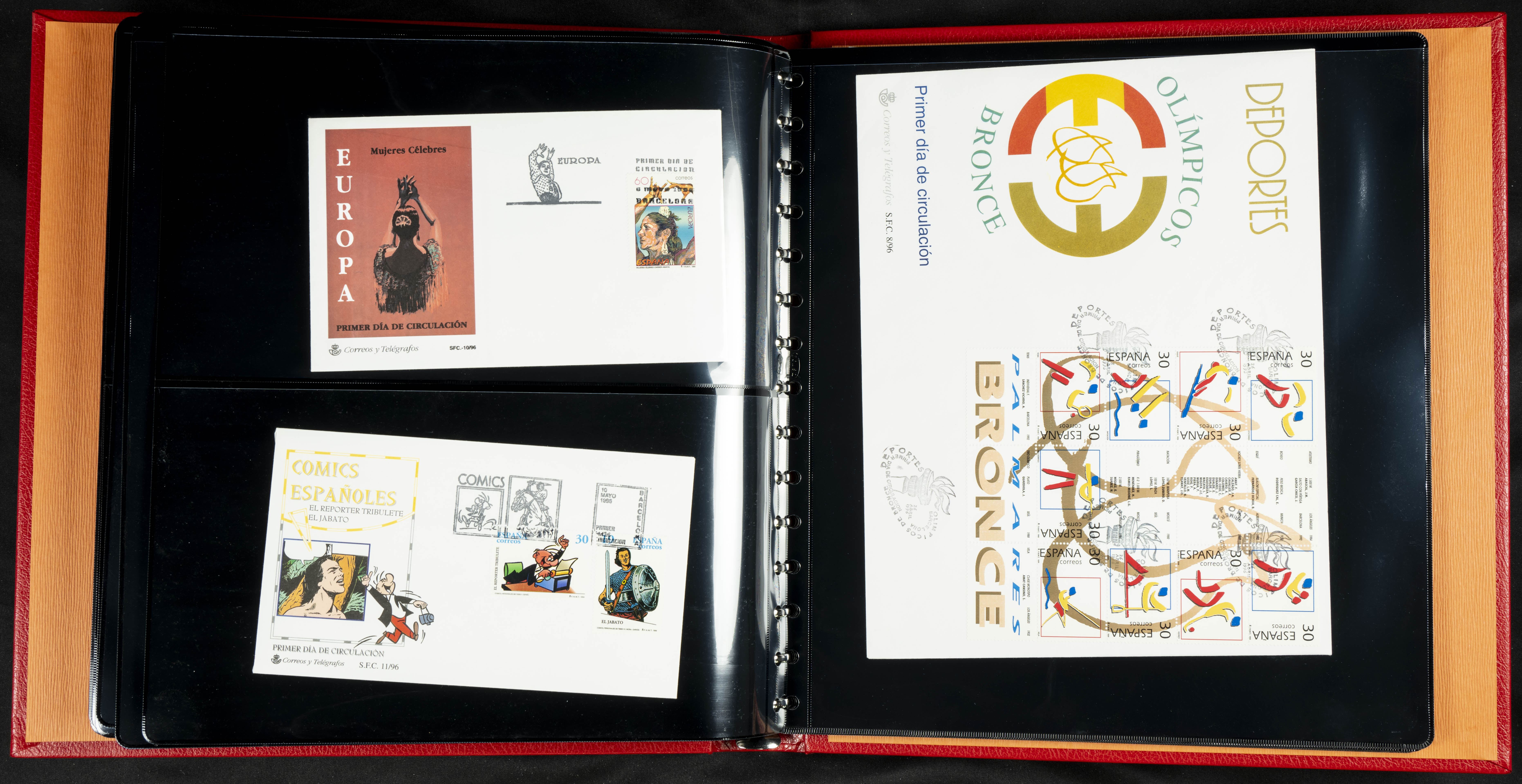 English (1990ca). Collection of First Day Covers between 1990 and 2001, includes large formats, some covers from previous years (Suits and World Cup 82) and Spanish Andorra between 1980 and 1994. TO BE EXAMINED.