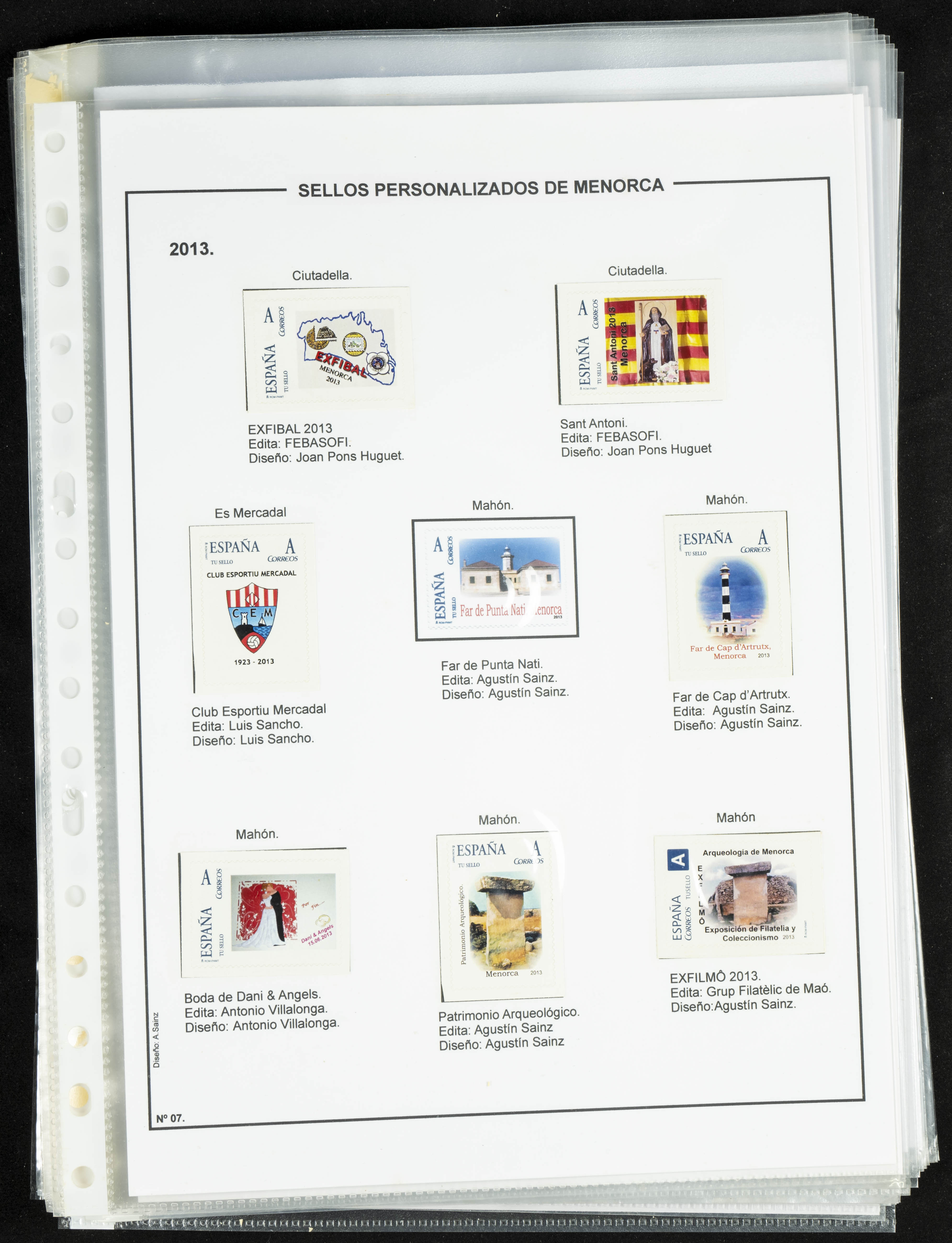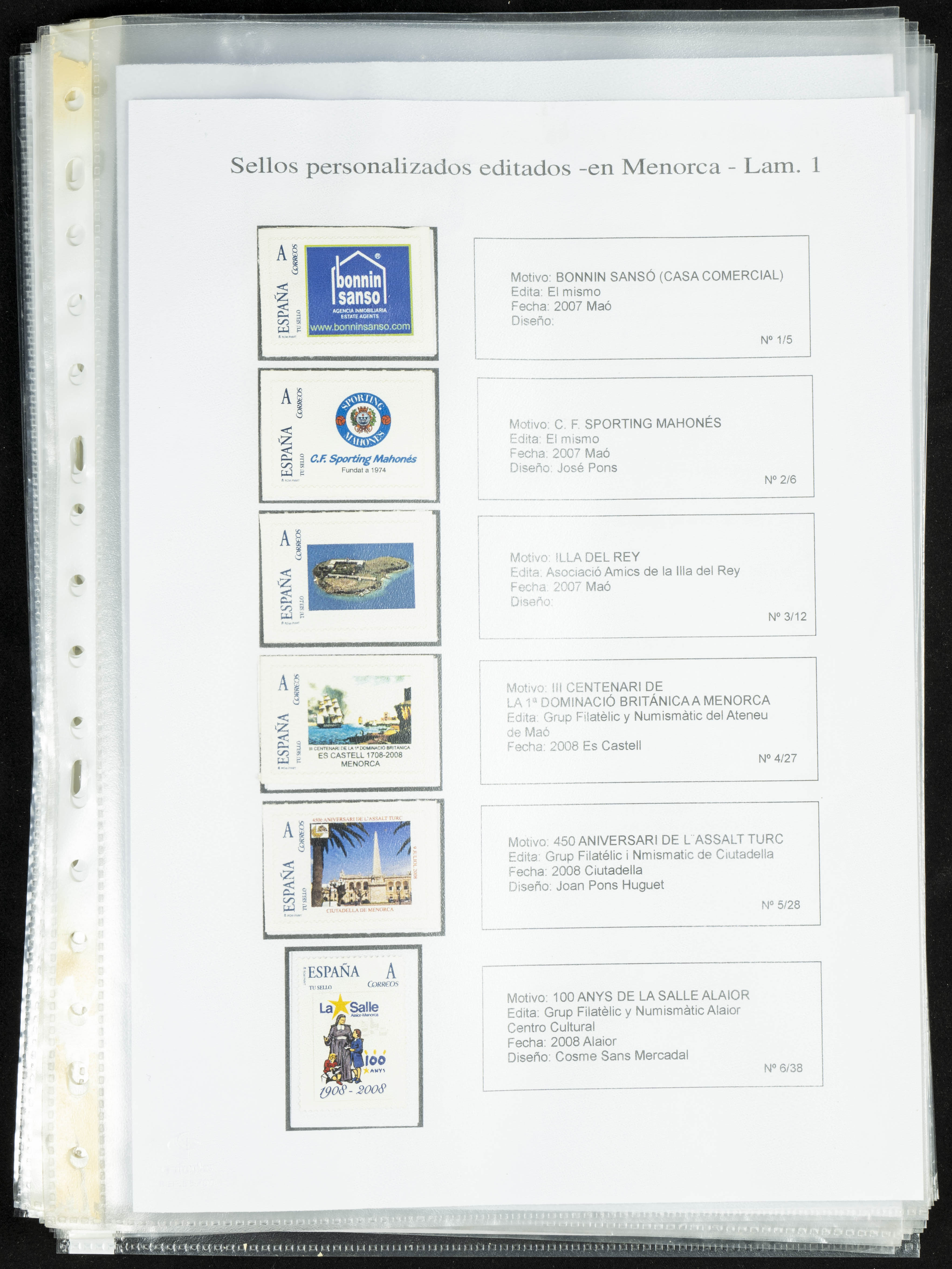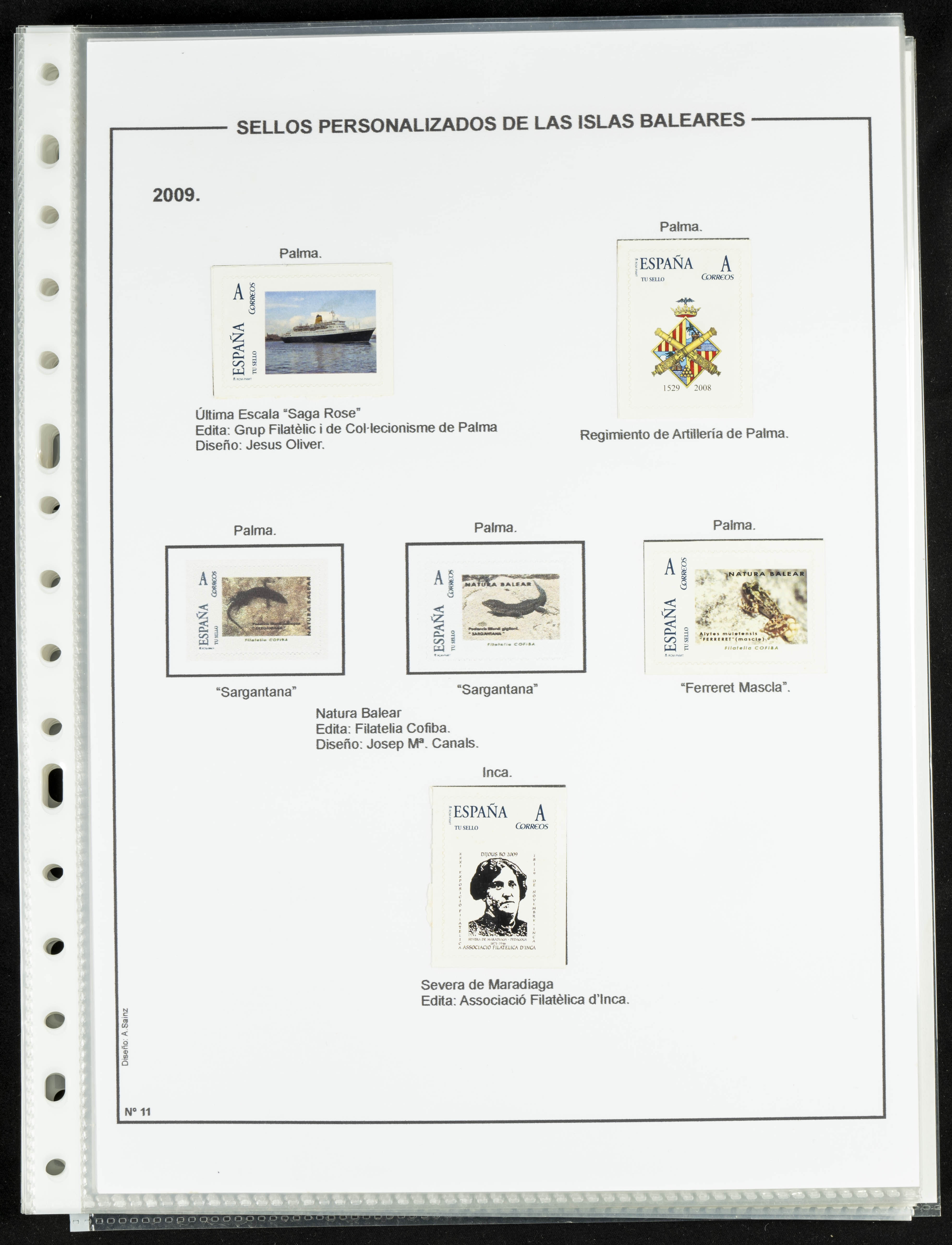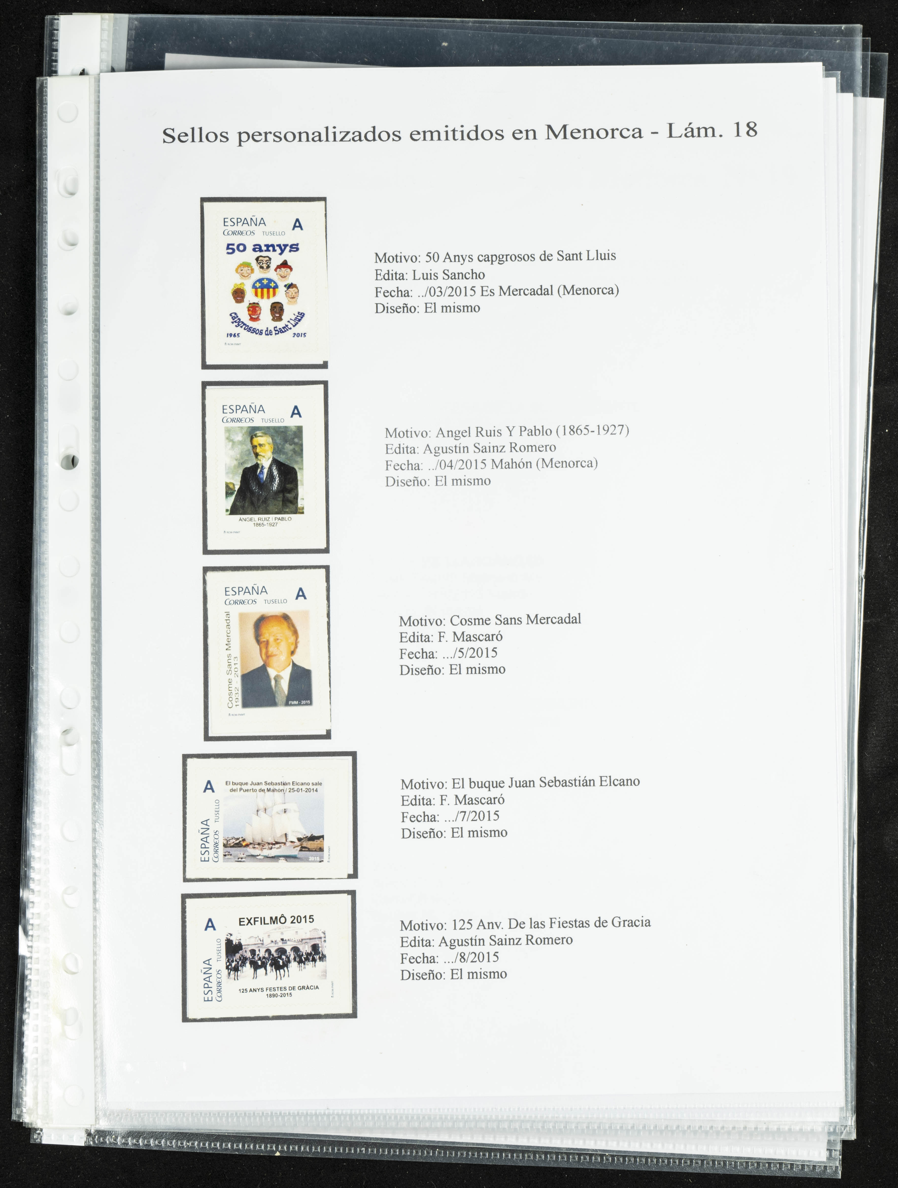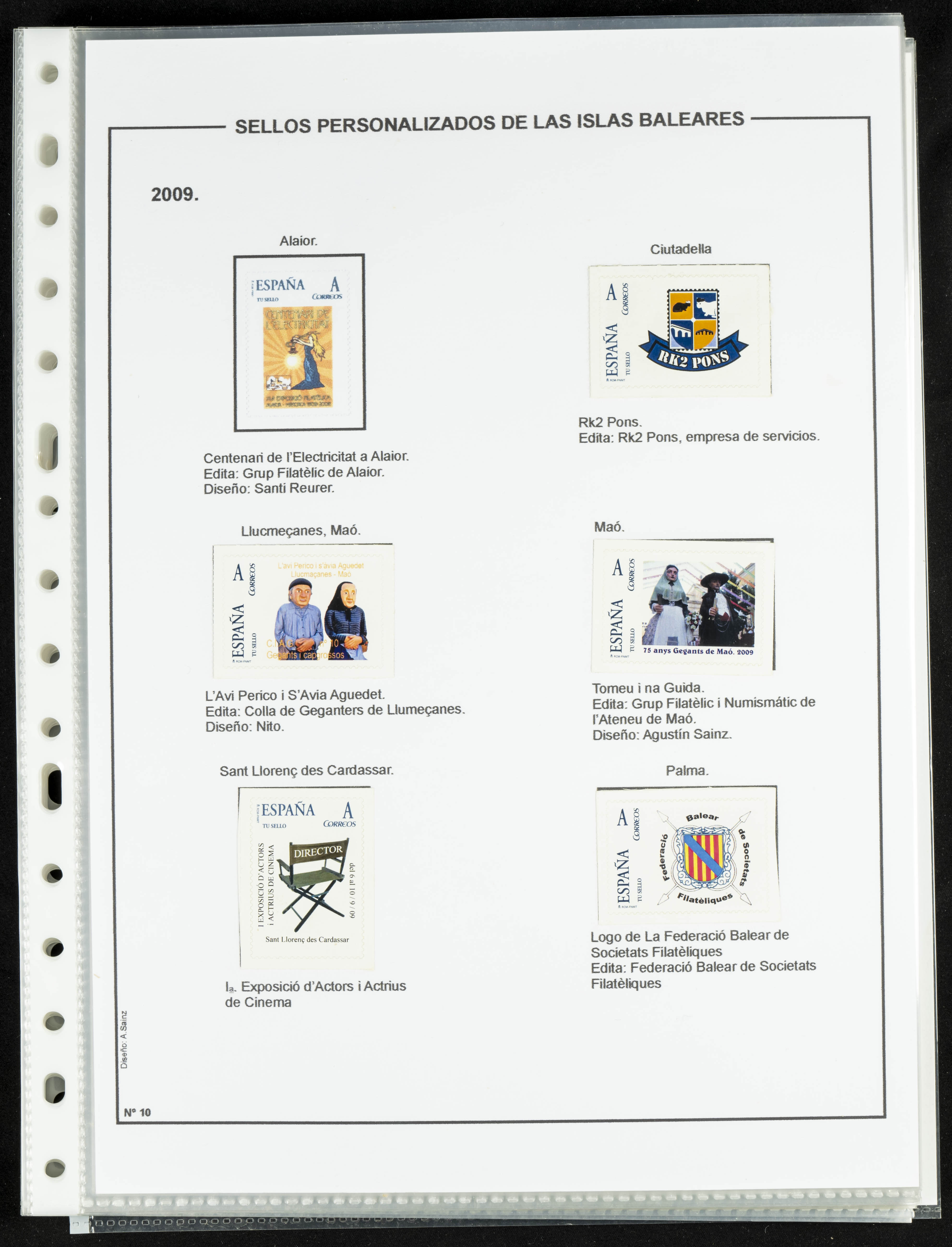 ★★(2007ca). Interesting collection of approximately 350 personalized self-adhesive stamps (Tariff A) featuring motifs and commemorations of the Balearic Islands, some with collectible photographs, issued between 2007 and 2018. (Face value: +300 Euros). TO BE EXAMINED.