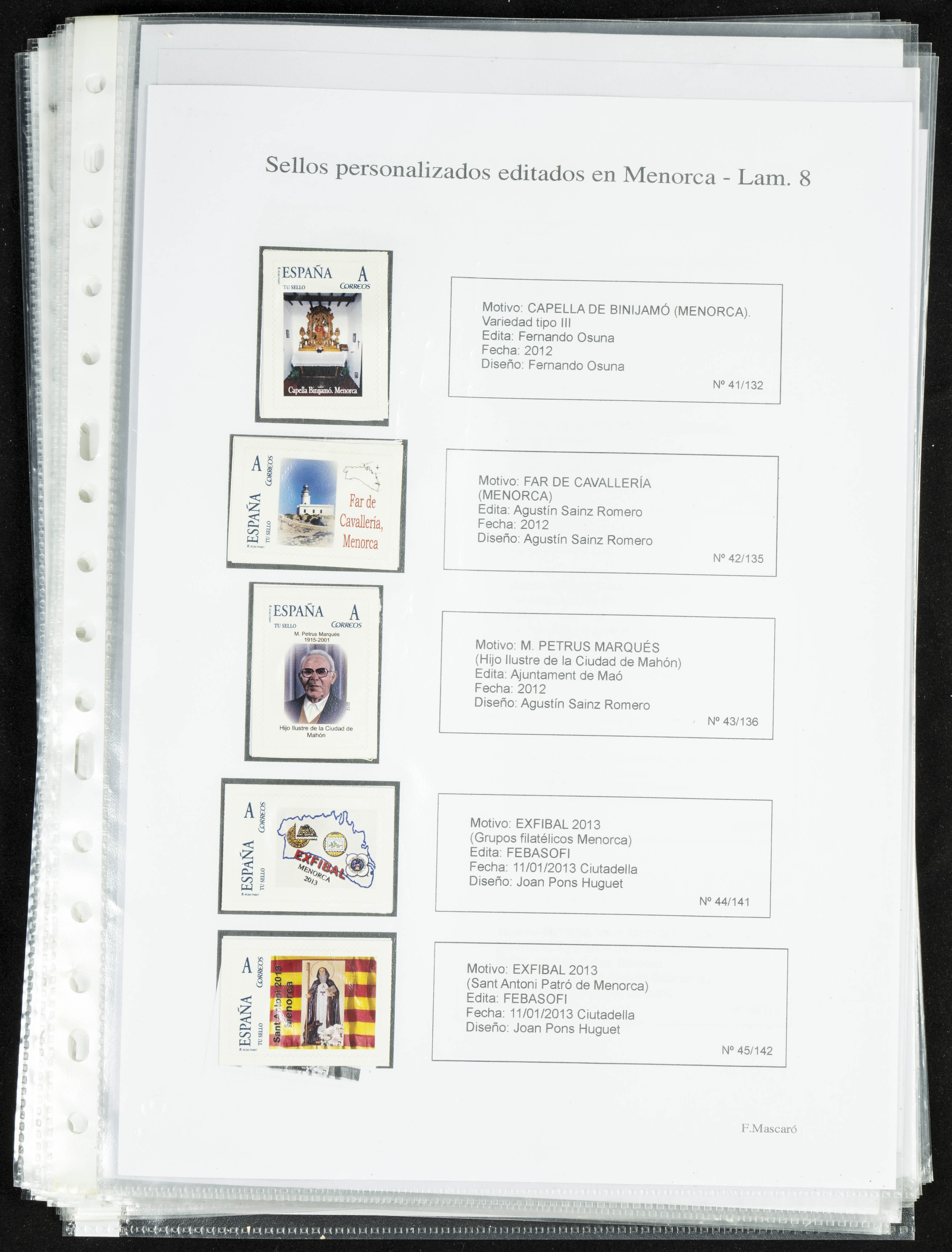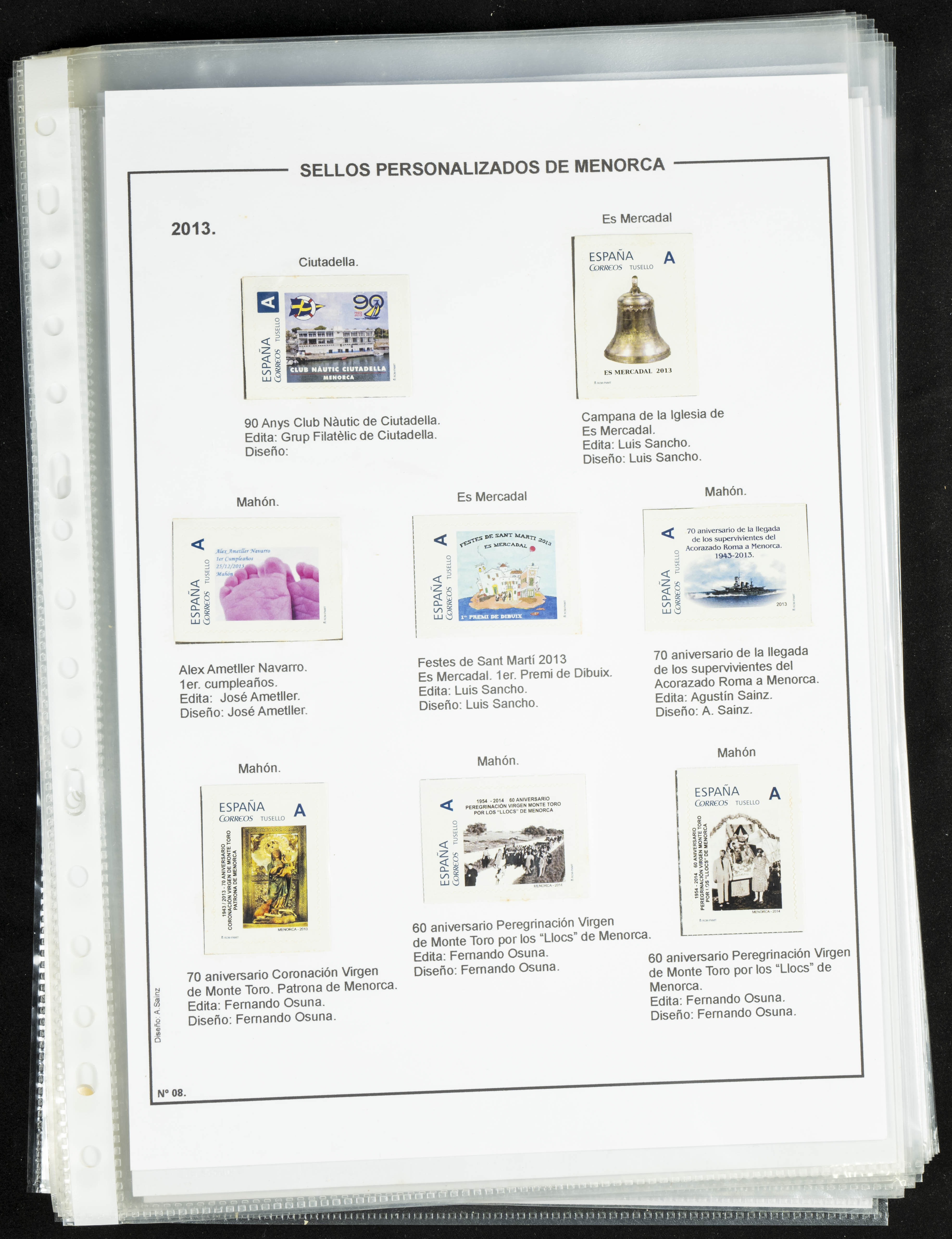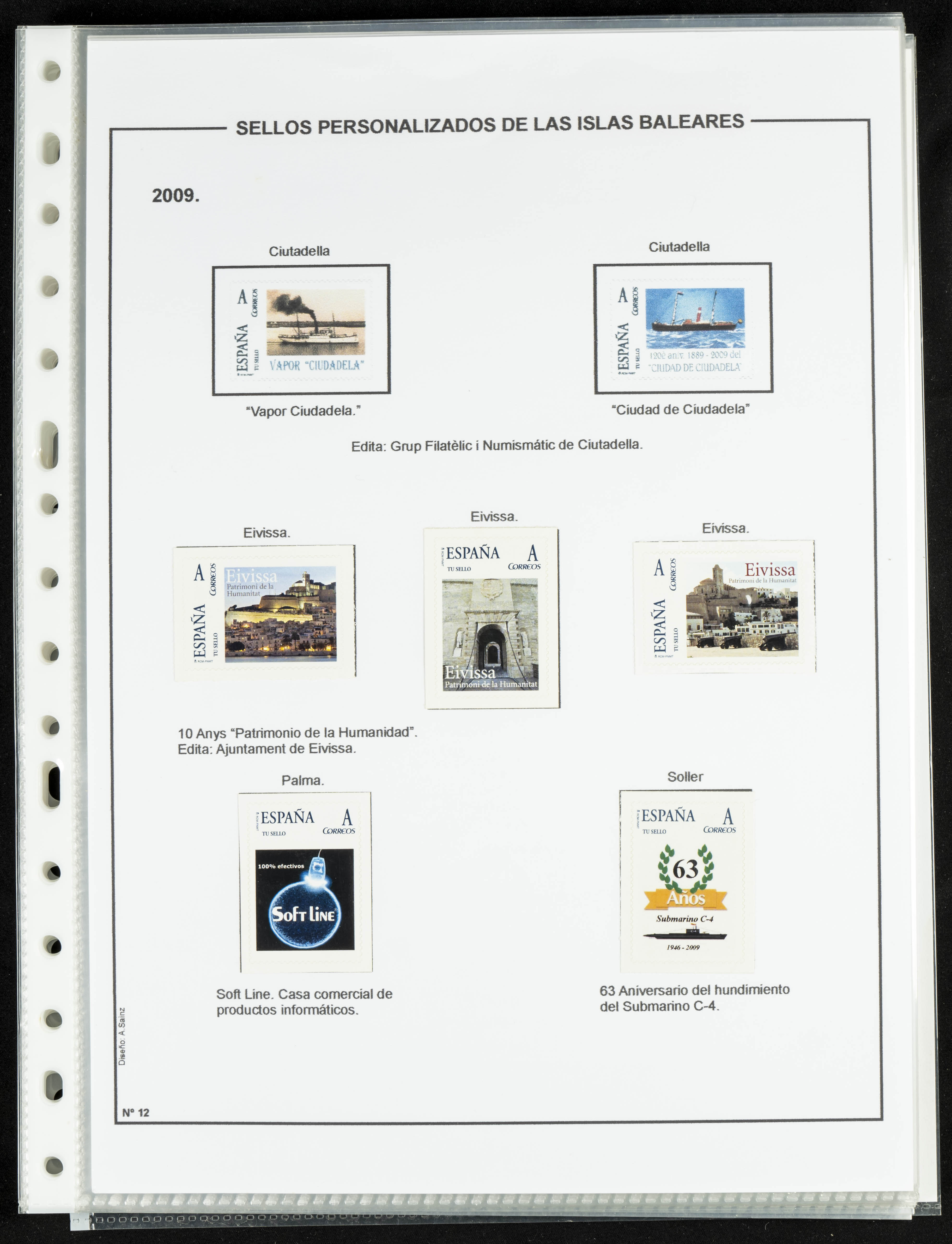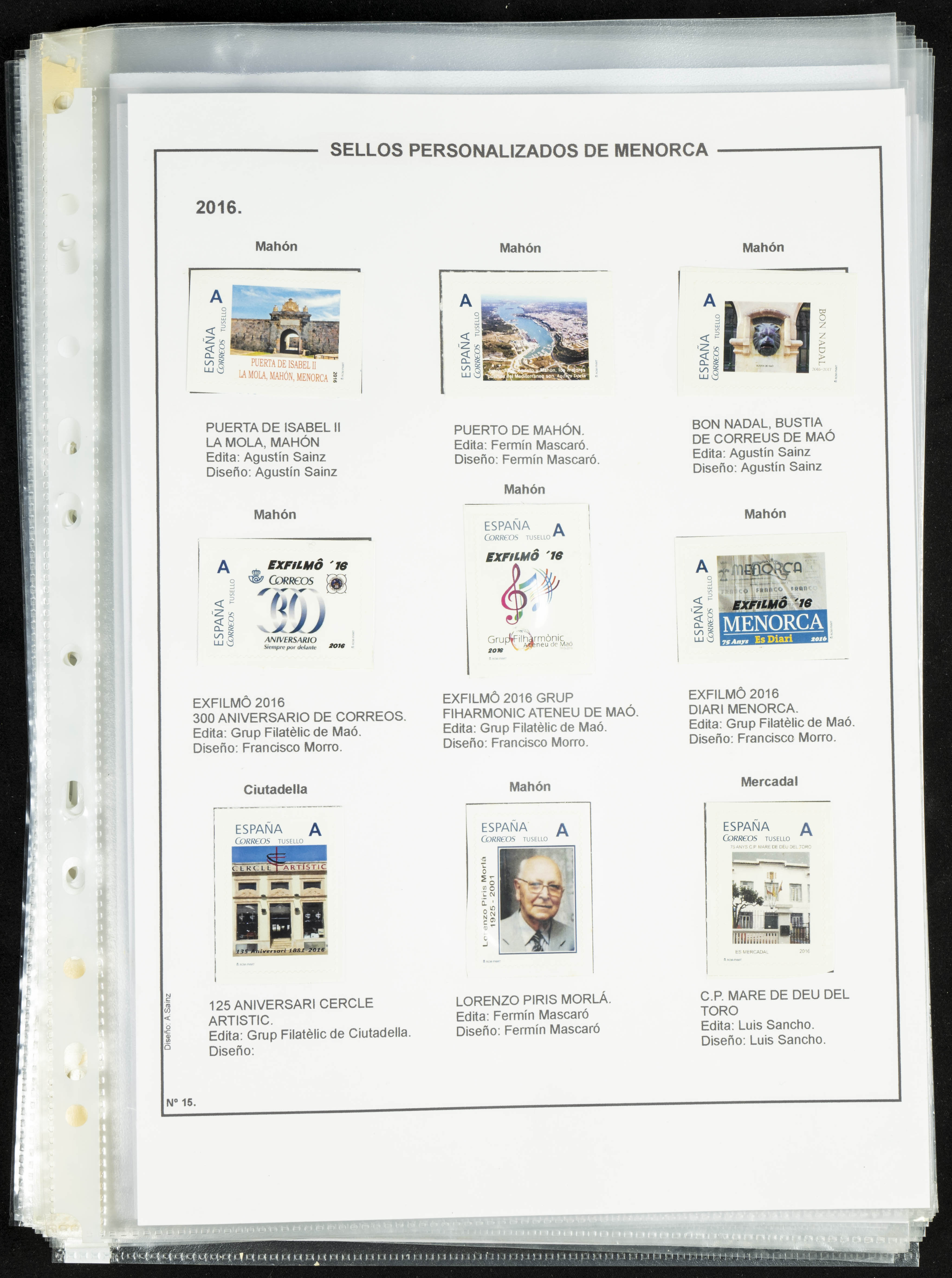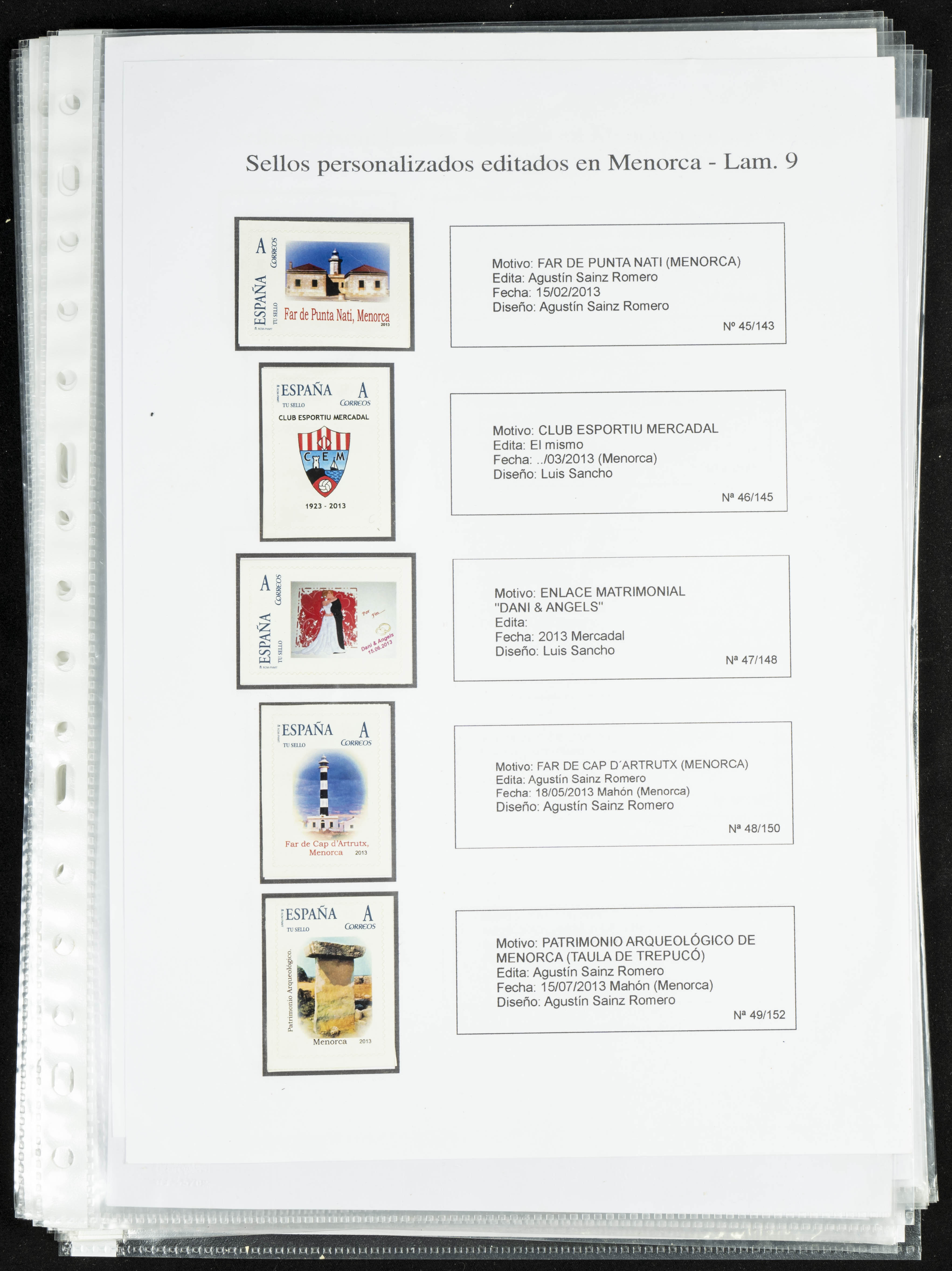 ★★(2007ca). Interesting collection of approximately 350 personalized self-adhesive stamps (Tariff A) featuring motifs and commemorations of the Balearic Islands, some with collectible photographs, issued between 2007 and 2018. (Face value: +300 Euros). TO BE EXAMINED.