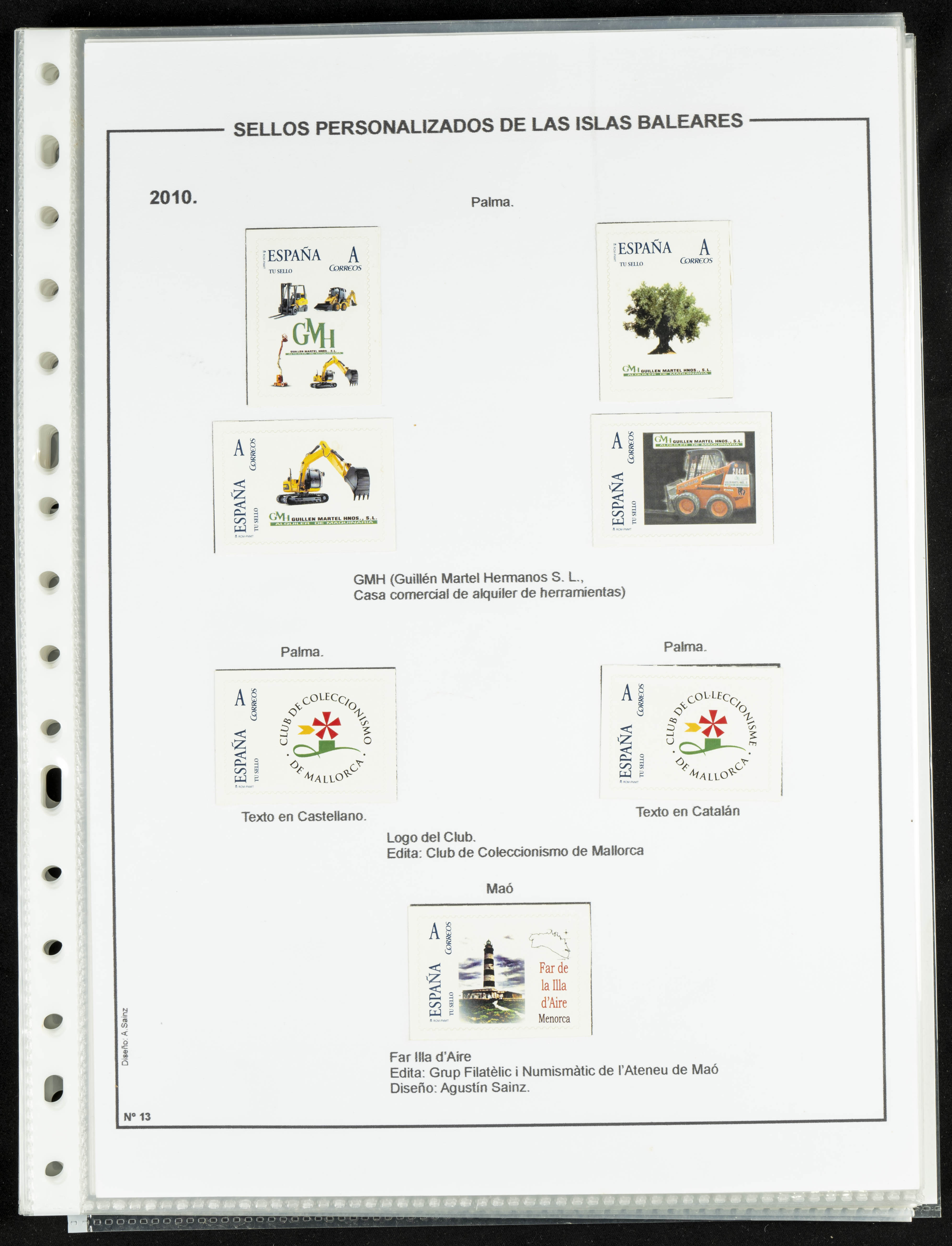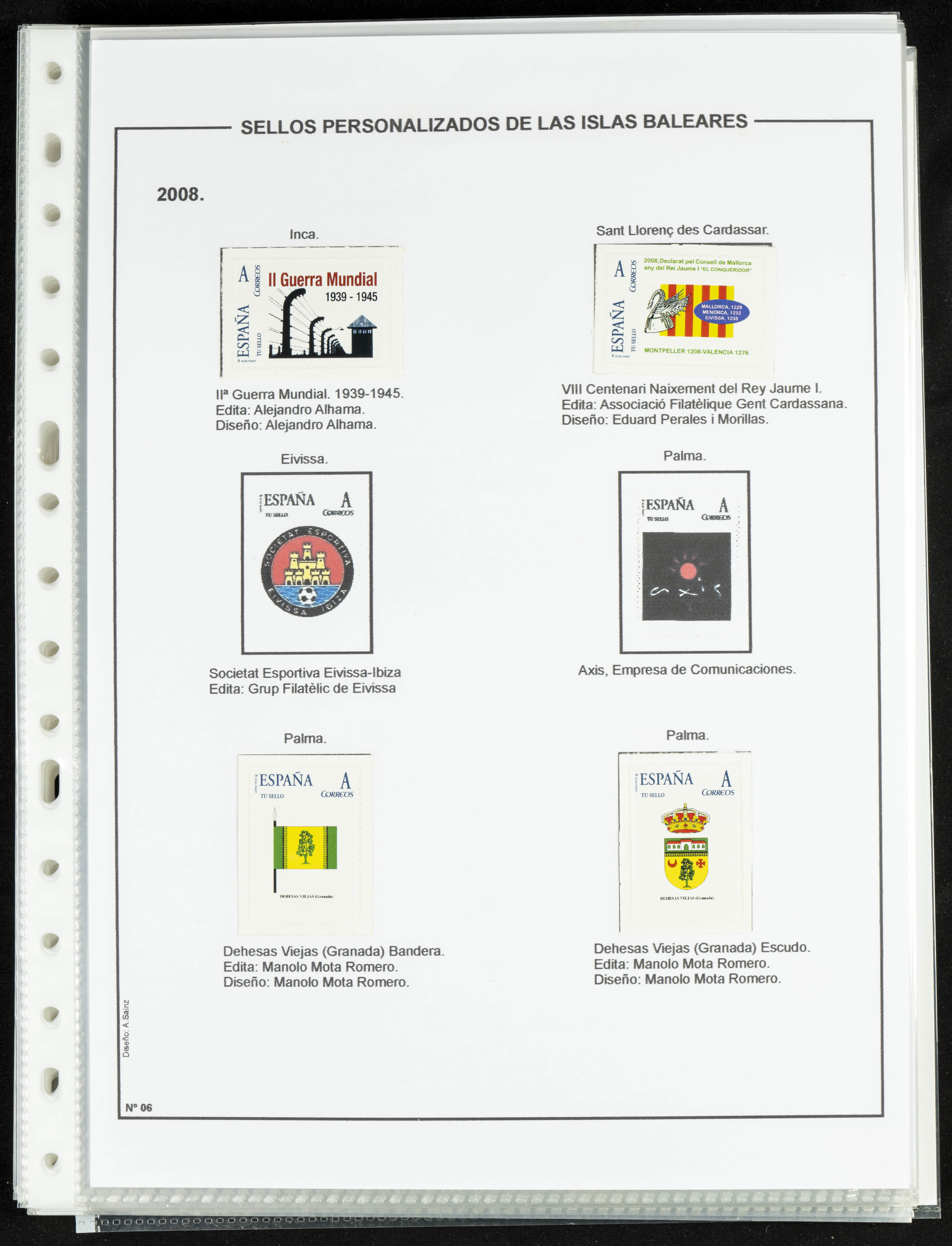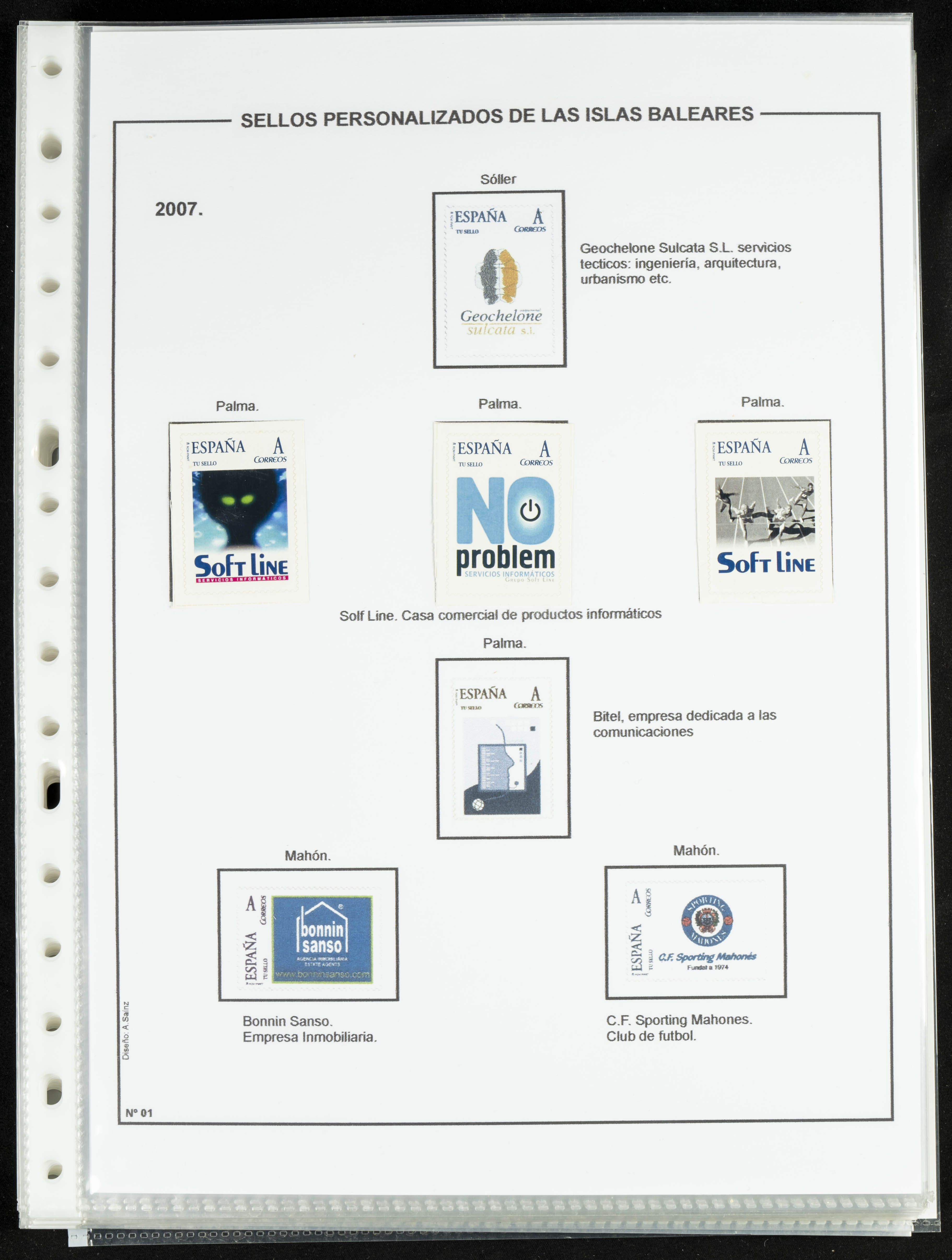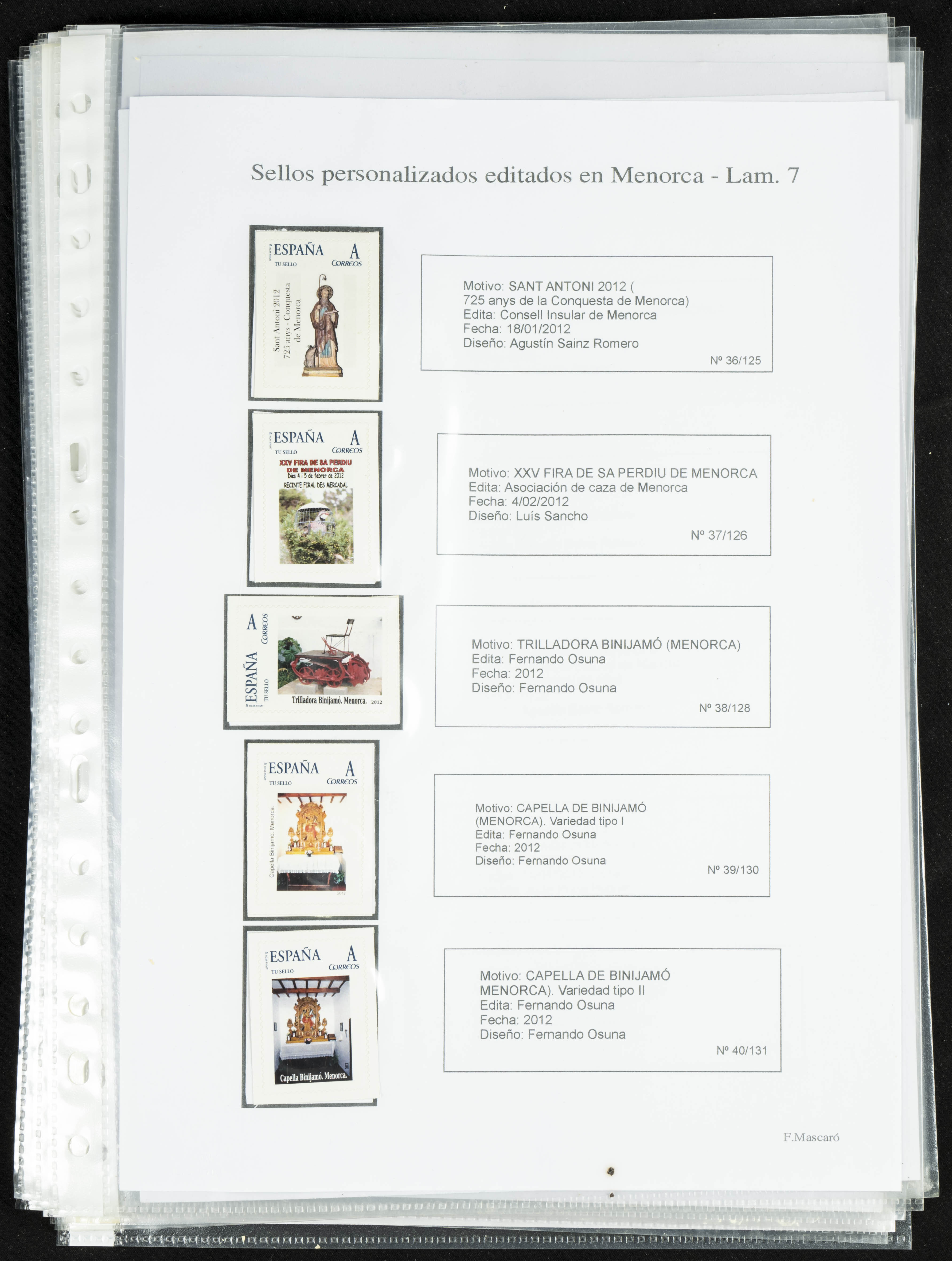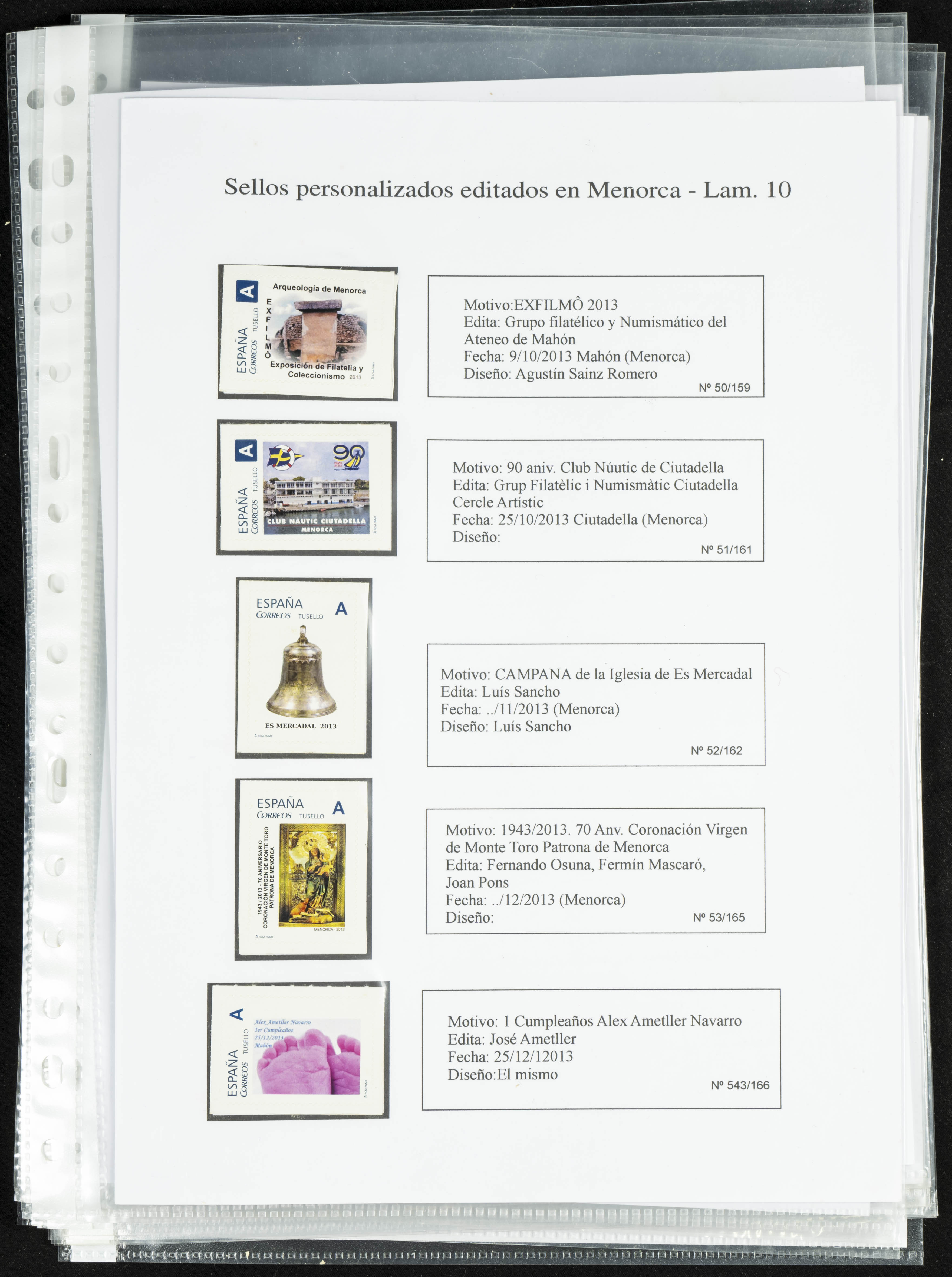 ★★(2007ca). Interesting collection of approximately 350 personalized self-adhesive stamps (Tariff A) featuring motifs and commemorations of the Balearic Islands, some with collectible photographs, issued between 2007 and 2018. (Face value: +300 Euros). TO BE EXAMINED.