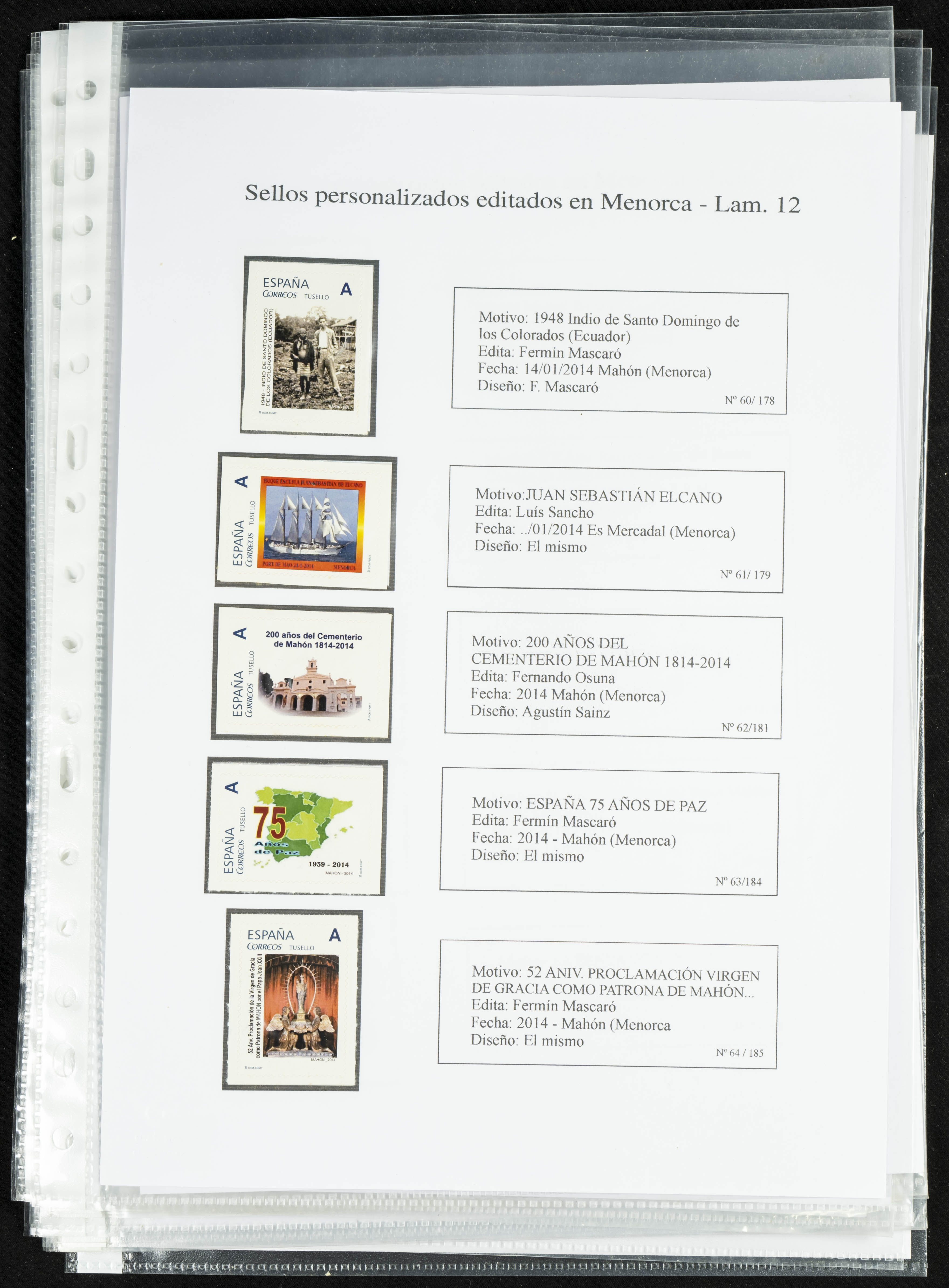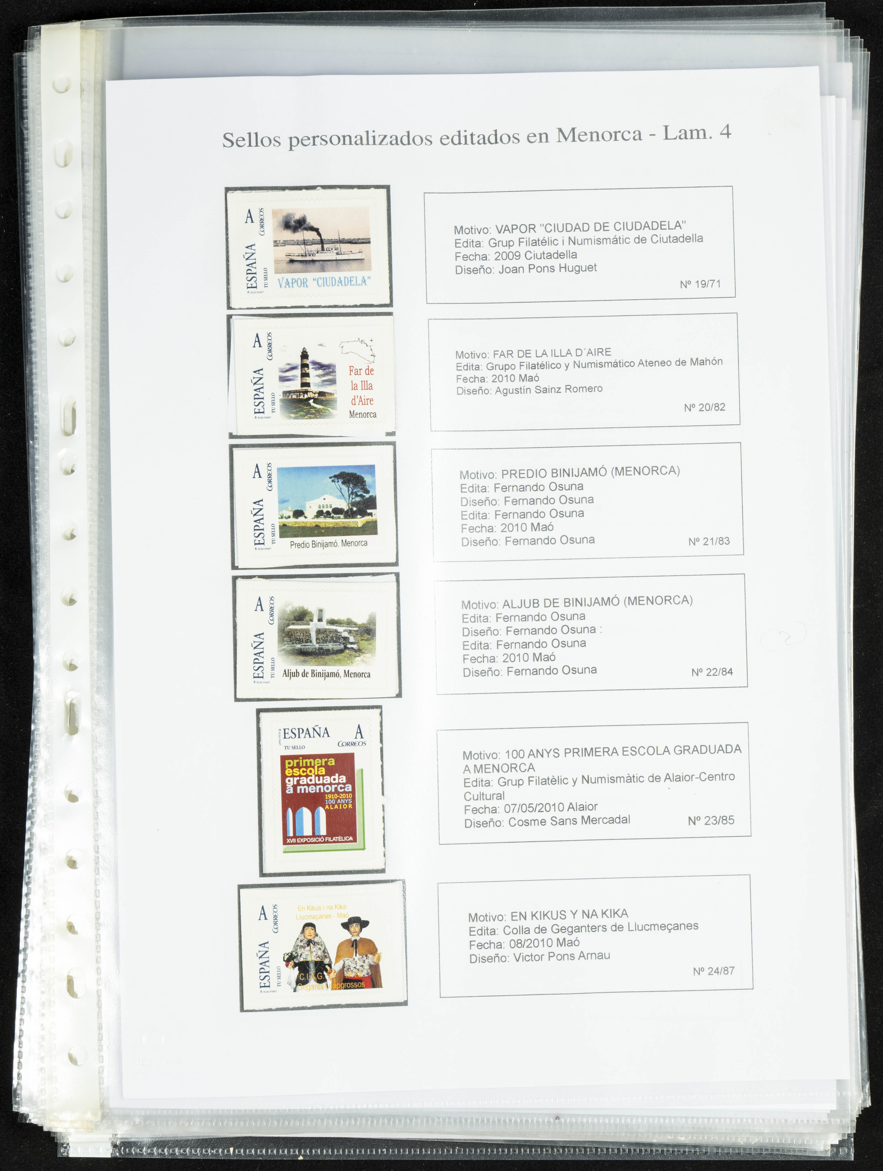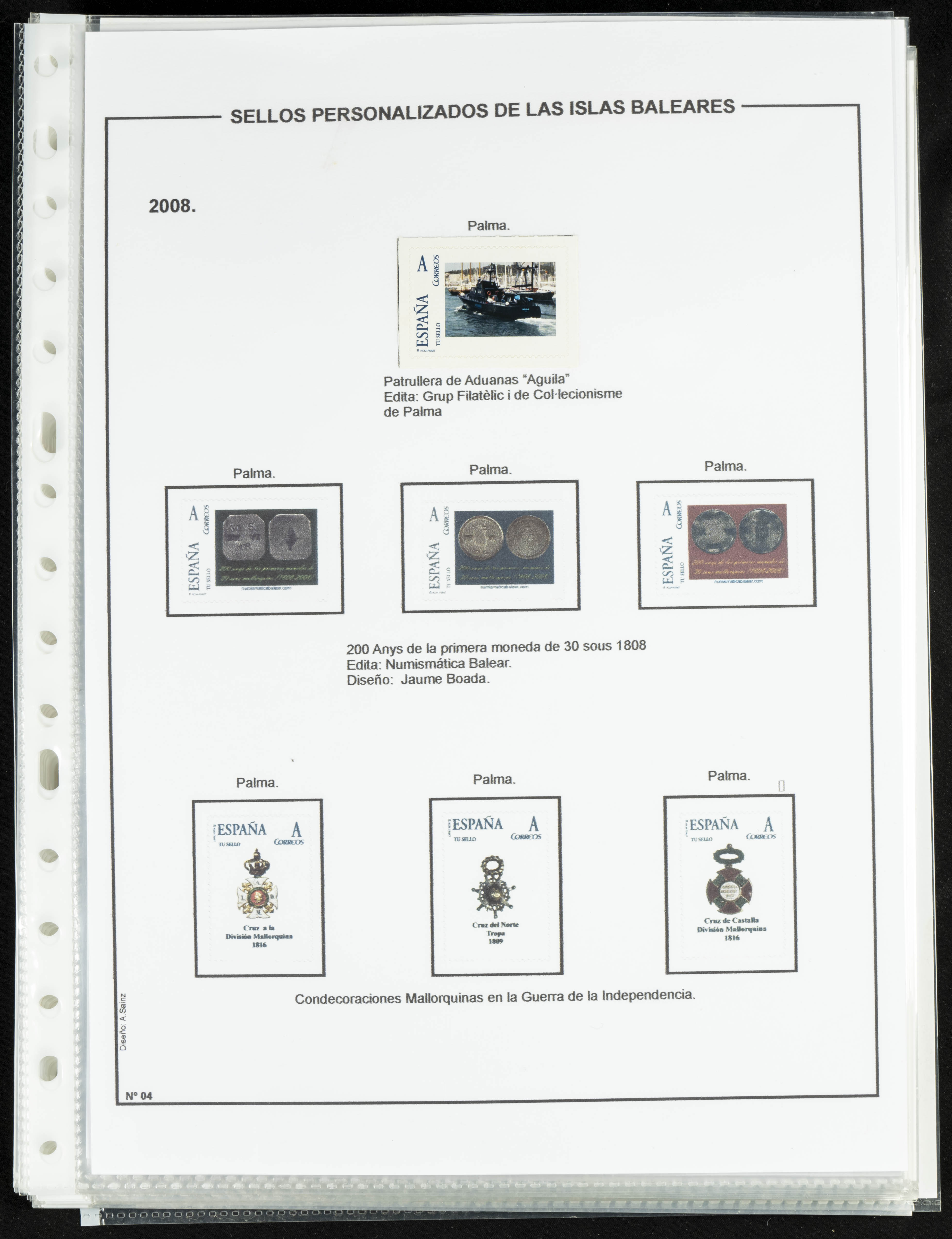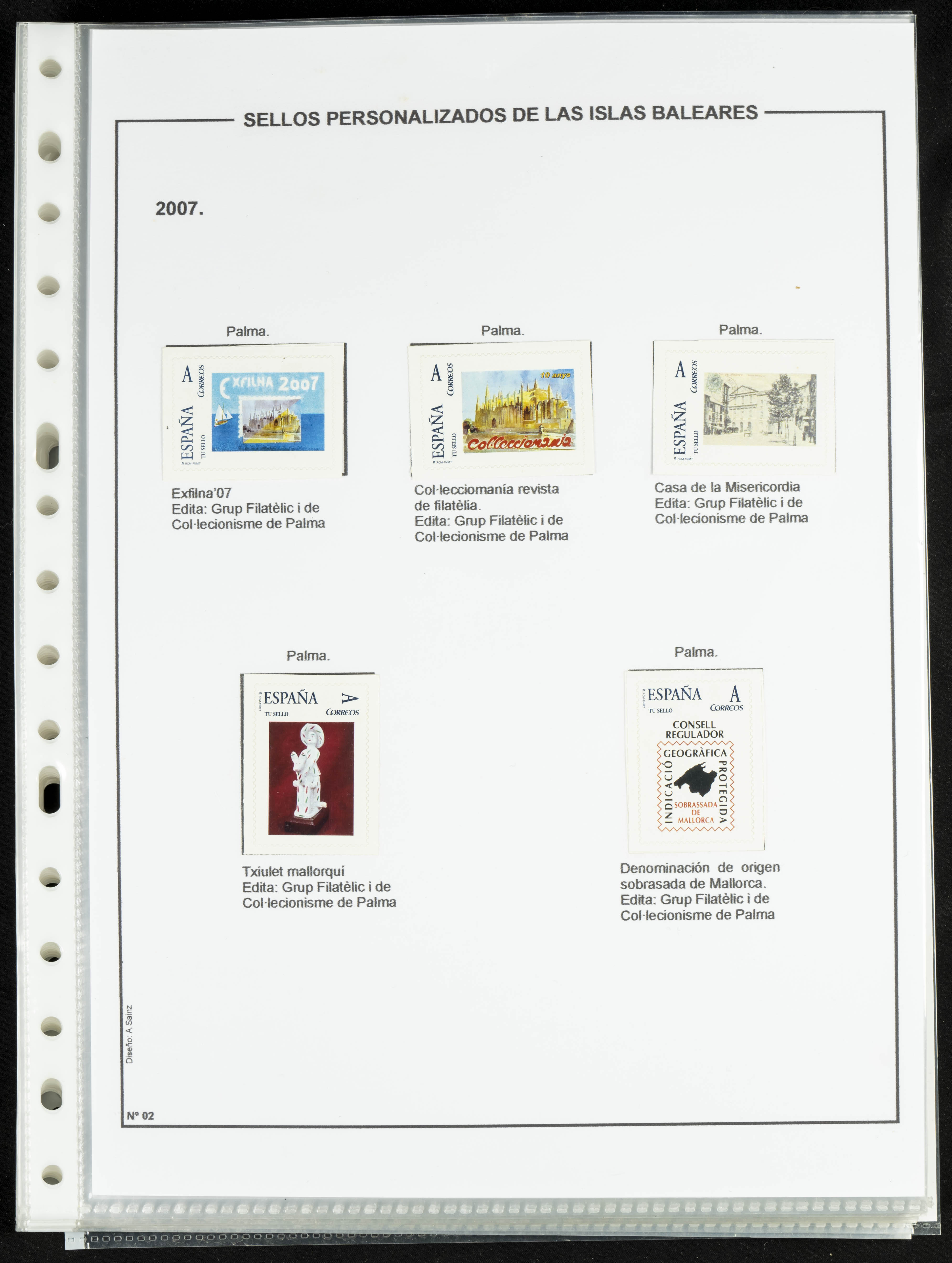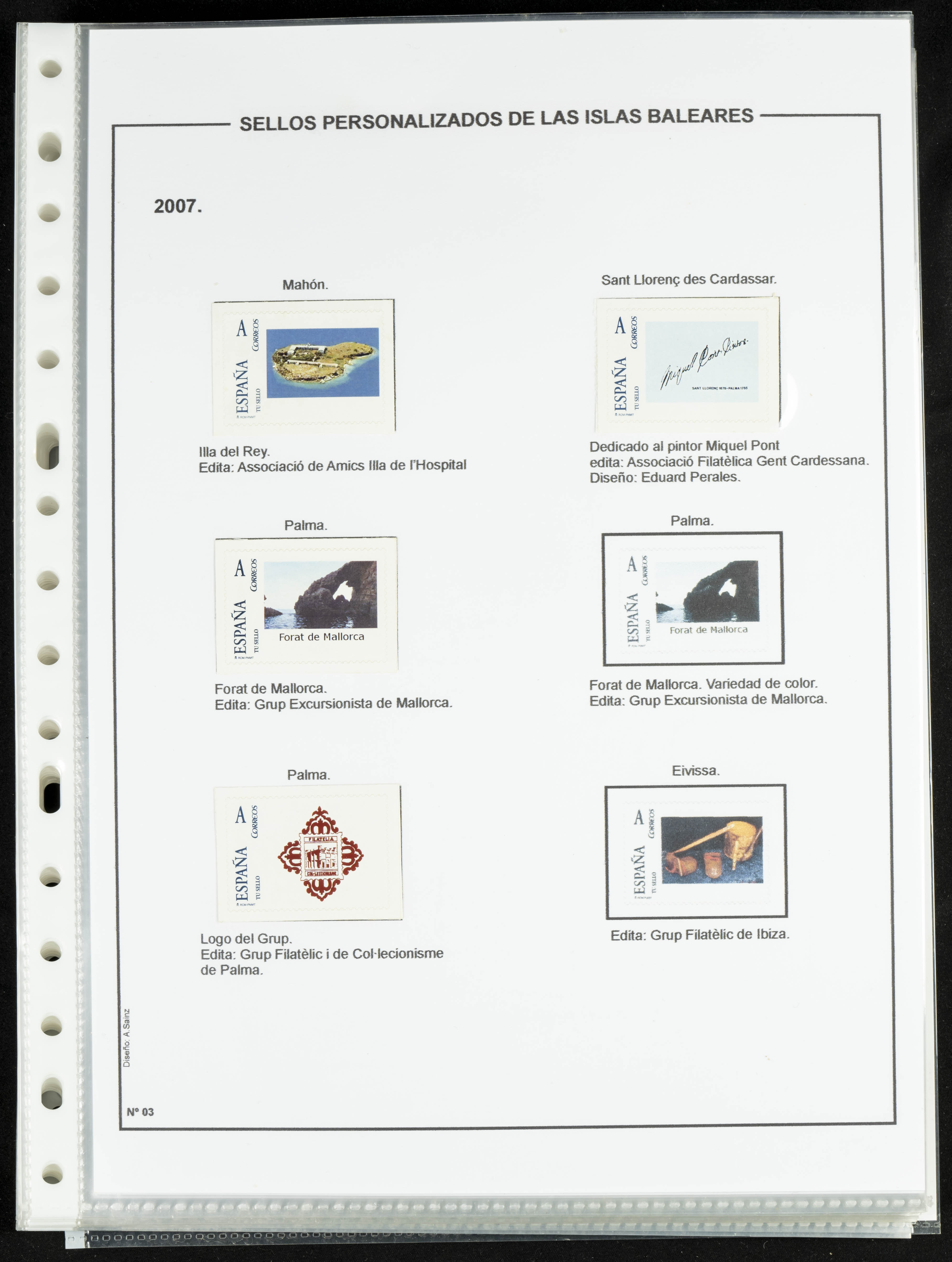 ★★(2007ca). Interesting collection of approximately 350 personalized self-adhesive stamps (Tariff A) featuring motifs and commemorations of the Balearic Islands, some with collectible photographs, issued between 2007 and 2018. (Face value: +300 Euros). TO BE EXAMINED.