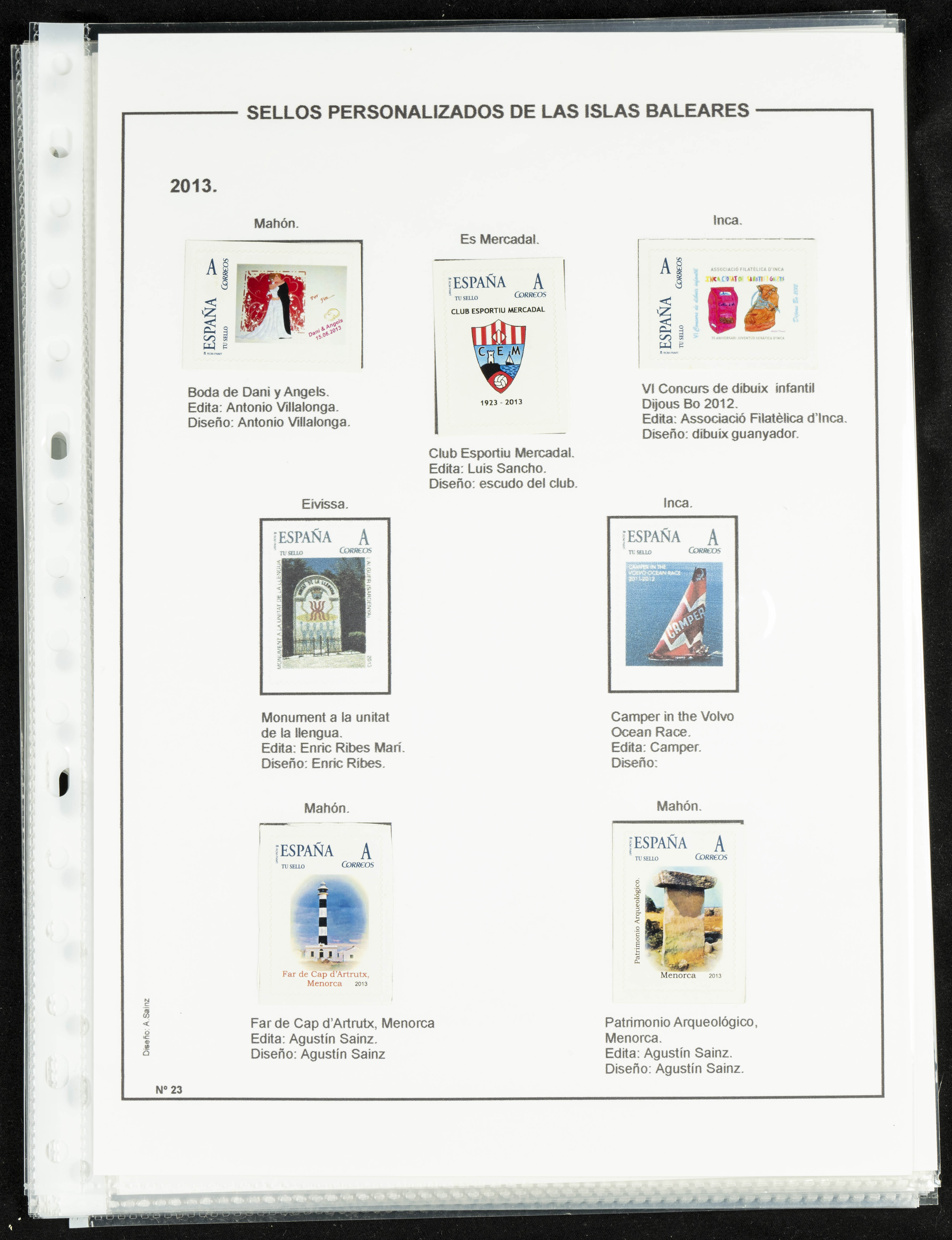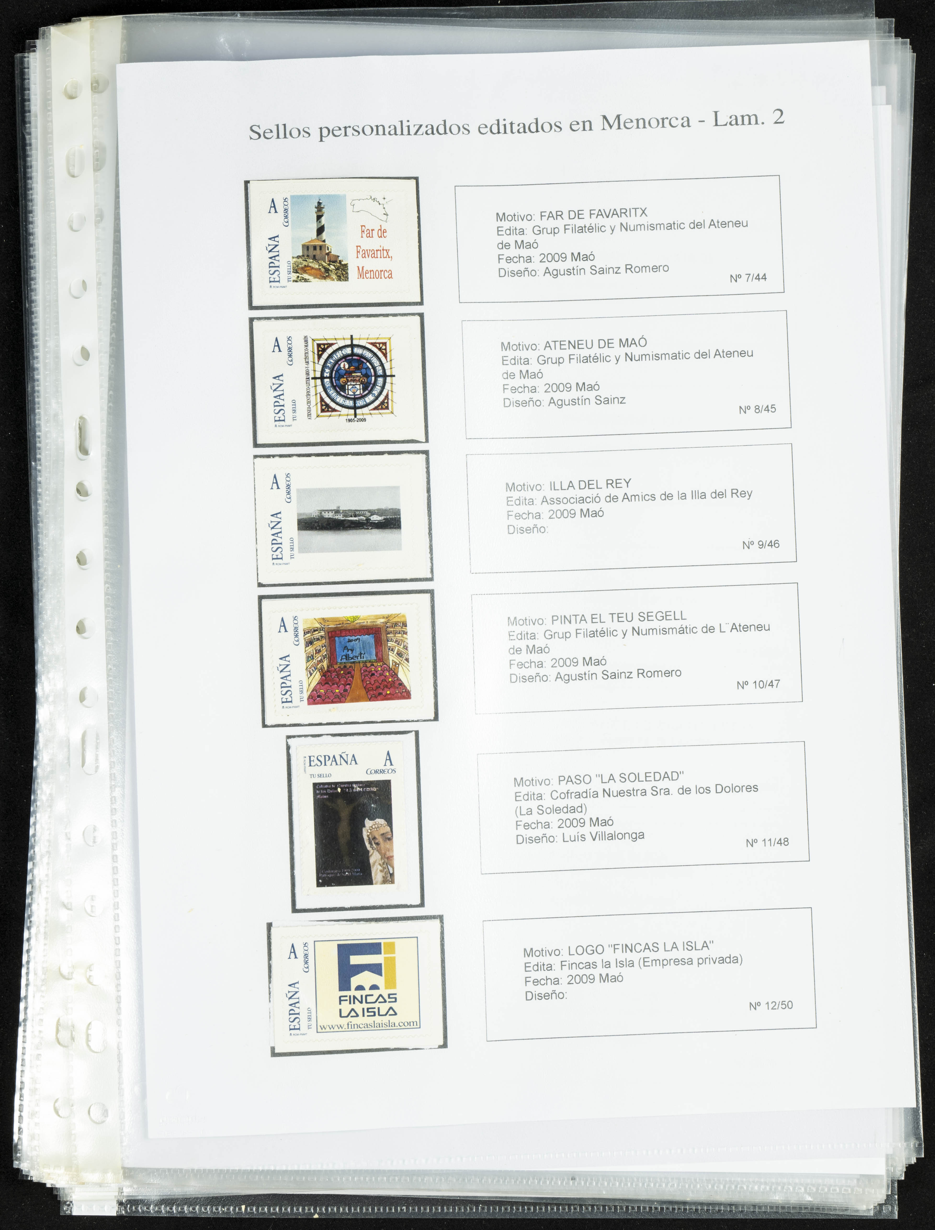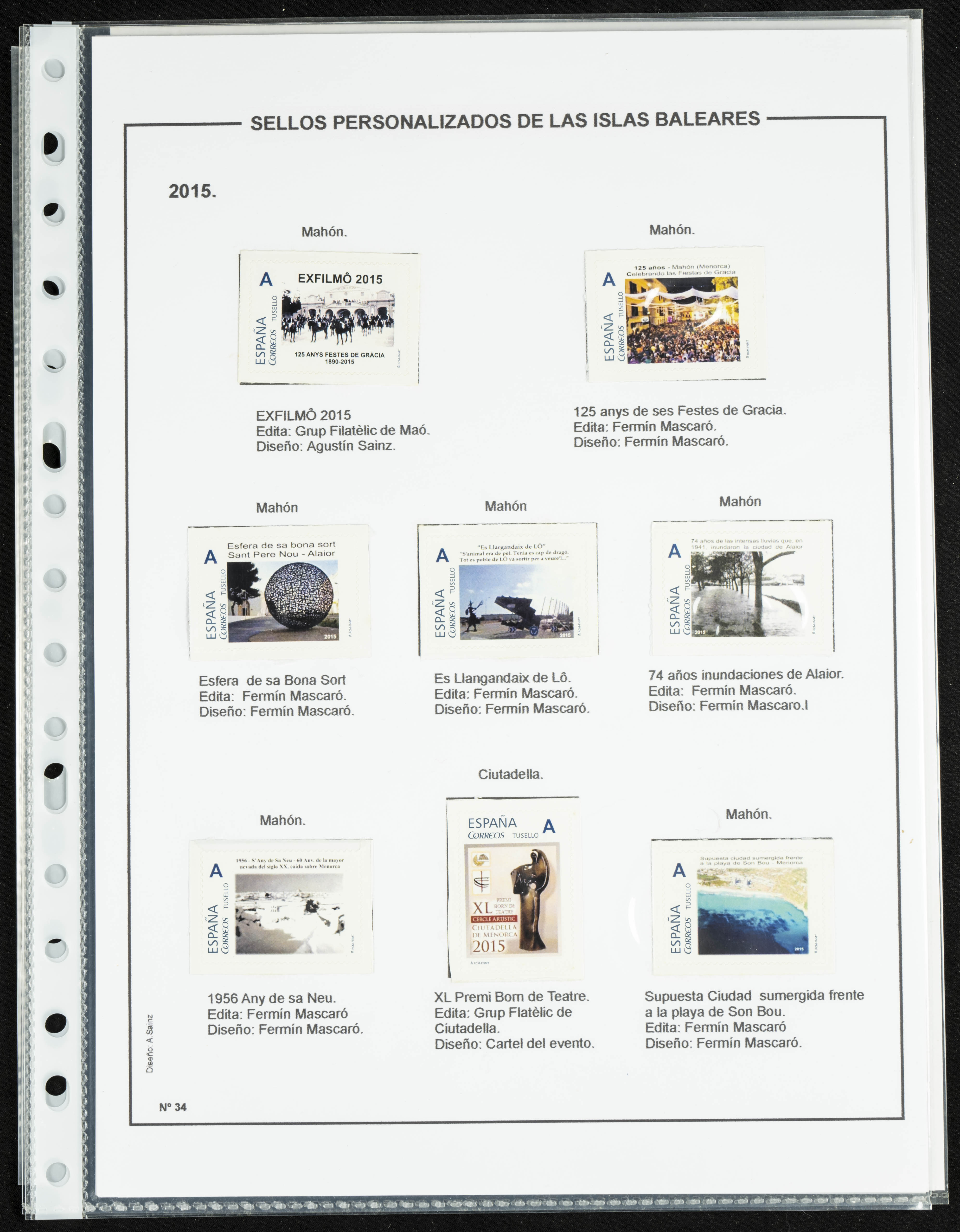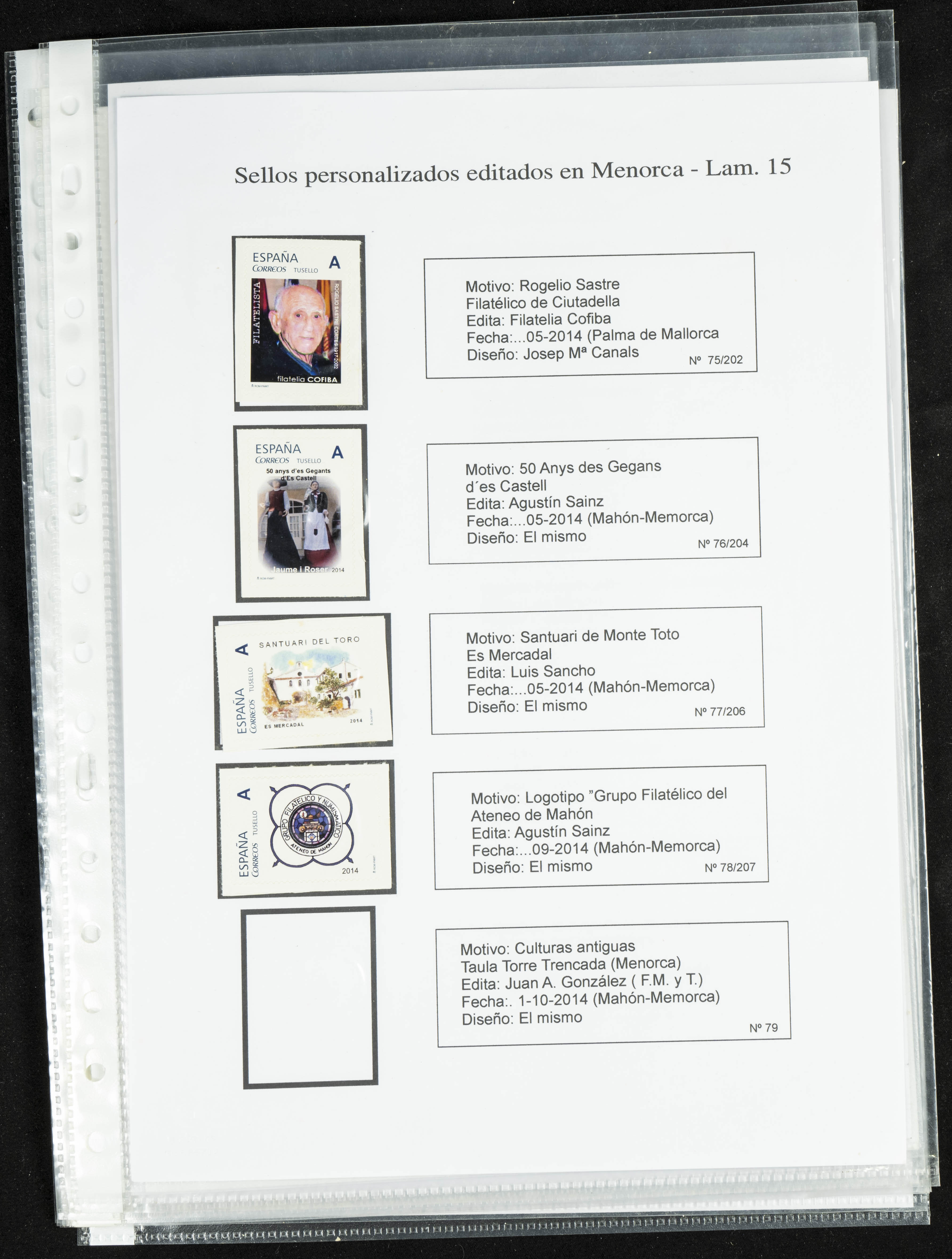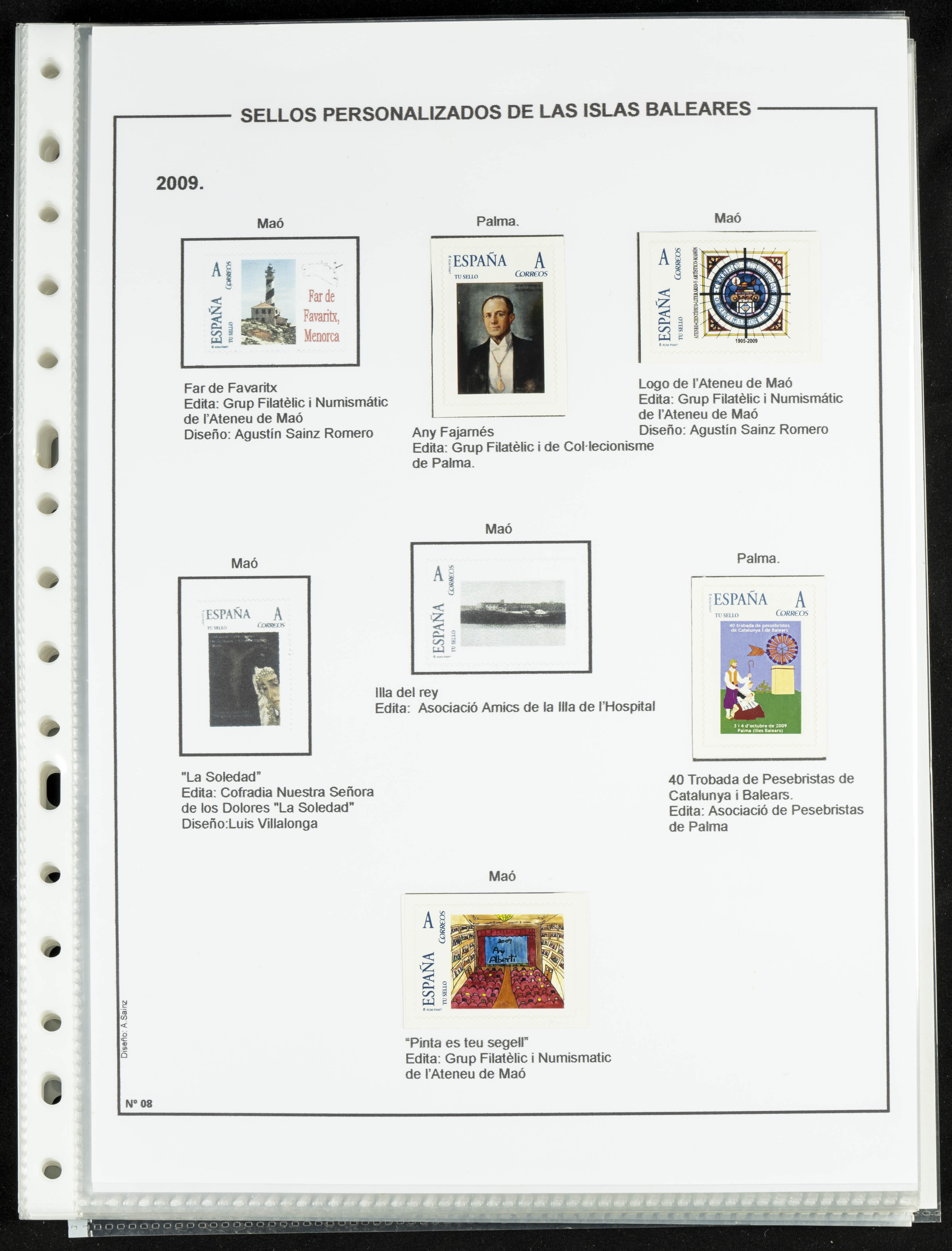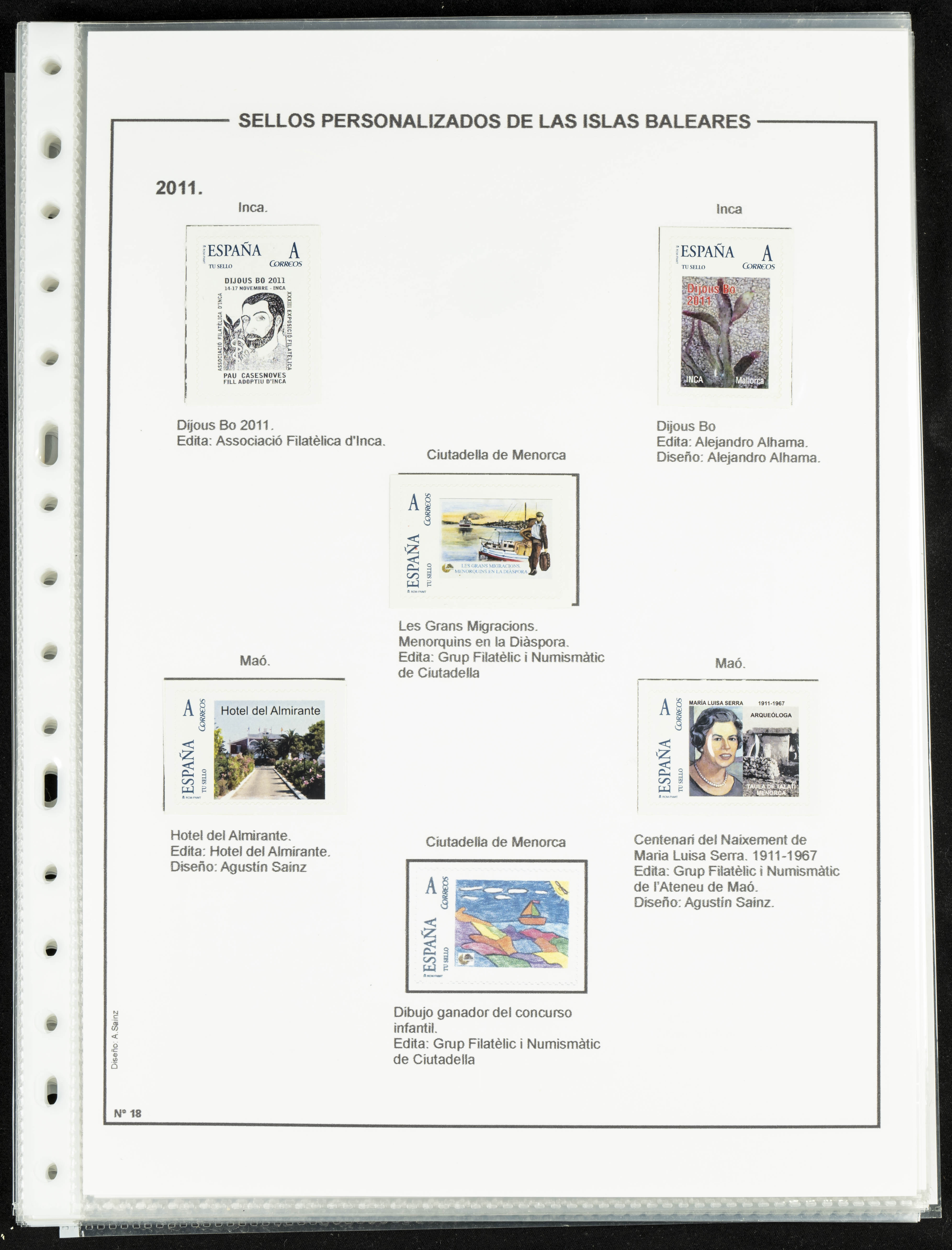 ★★(2007ca). Interesting collection of approximately 350 personalized self-adhesive stamps (Tariff A) featuring motifs and commemorations of the Balearic Islands, some with collectible photographs, issued between 2007 and 2018. (Face value: +300 Euros). TO BE EXAMINED.
