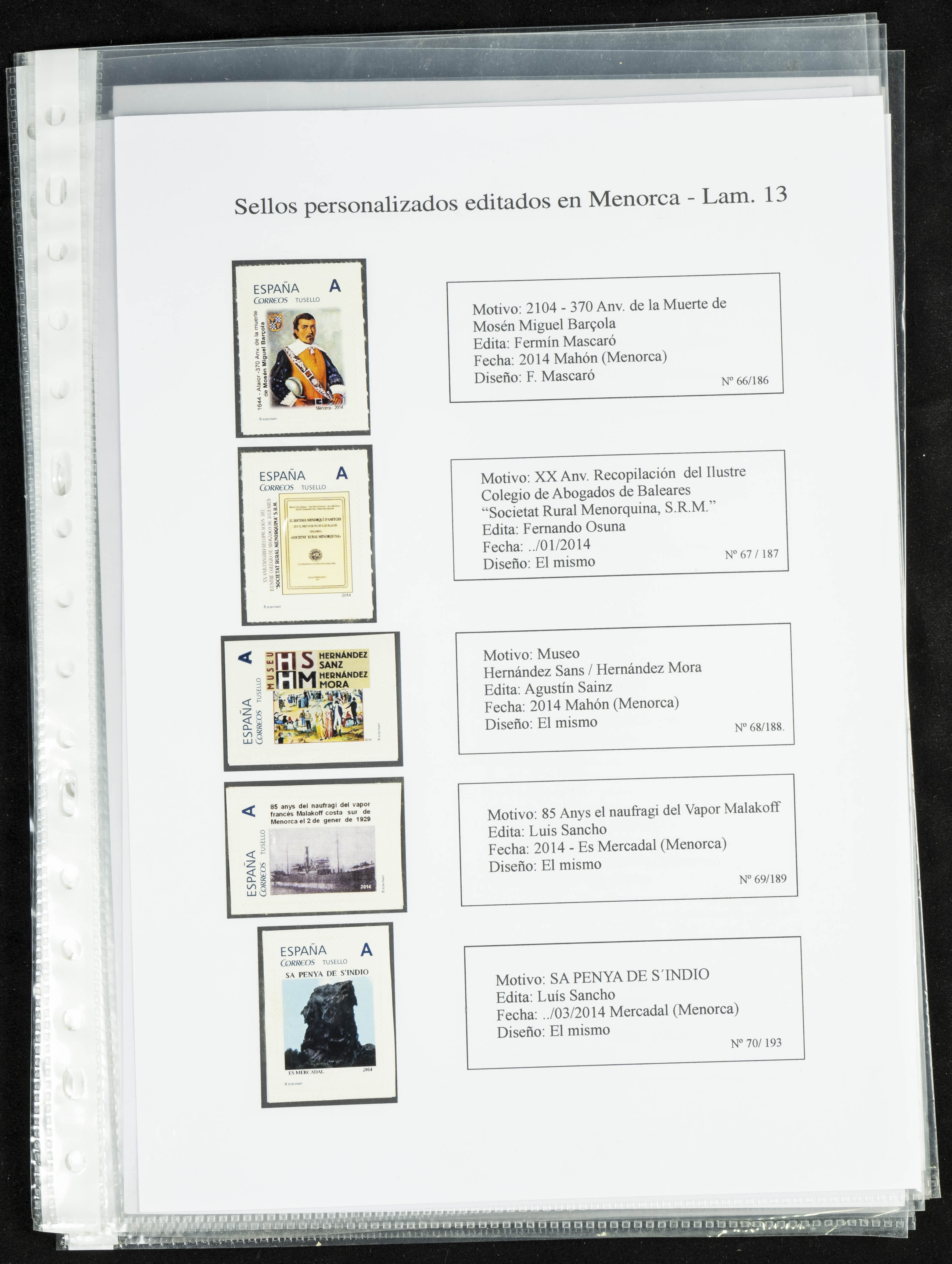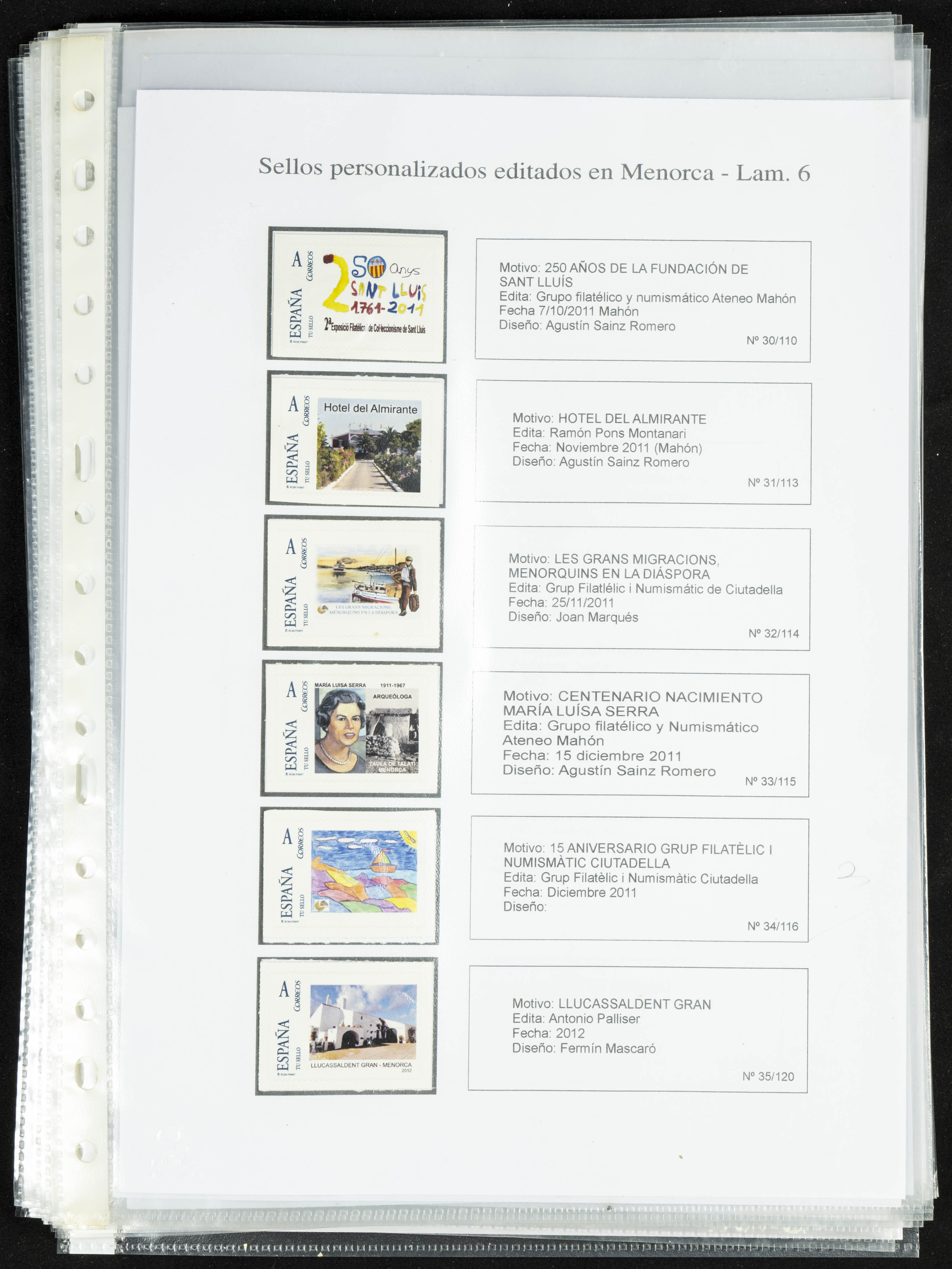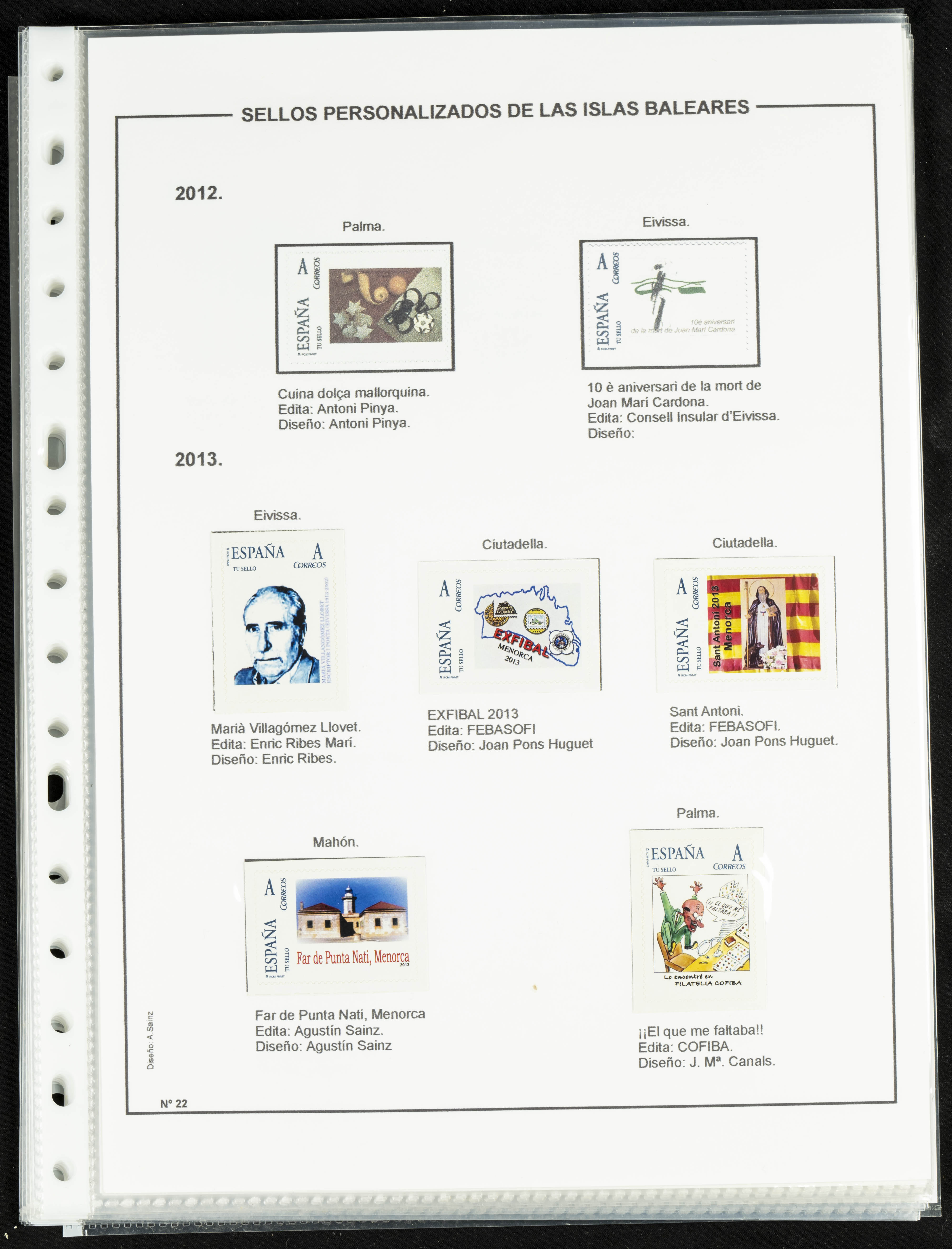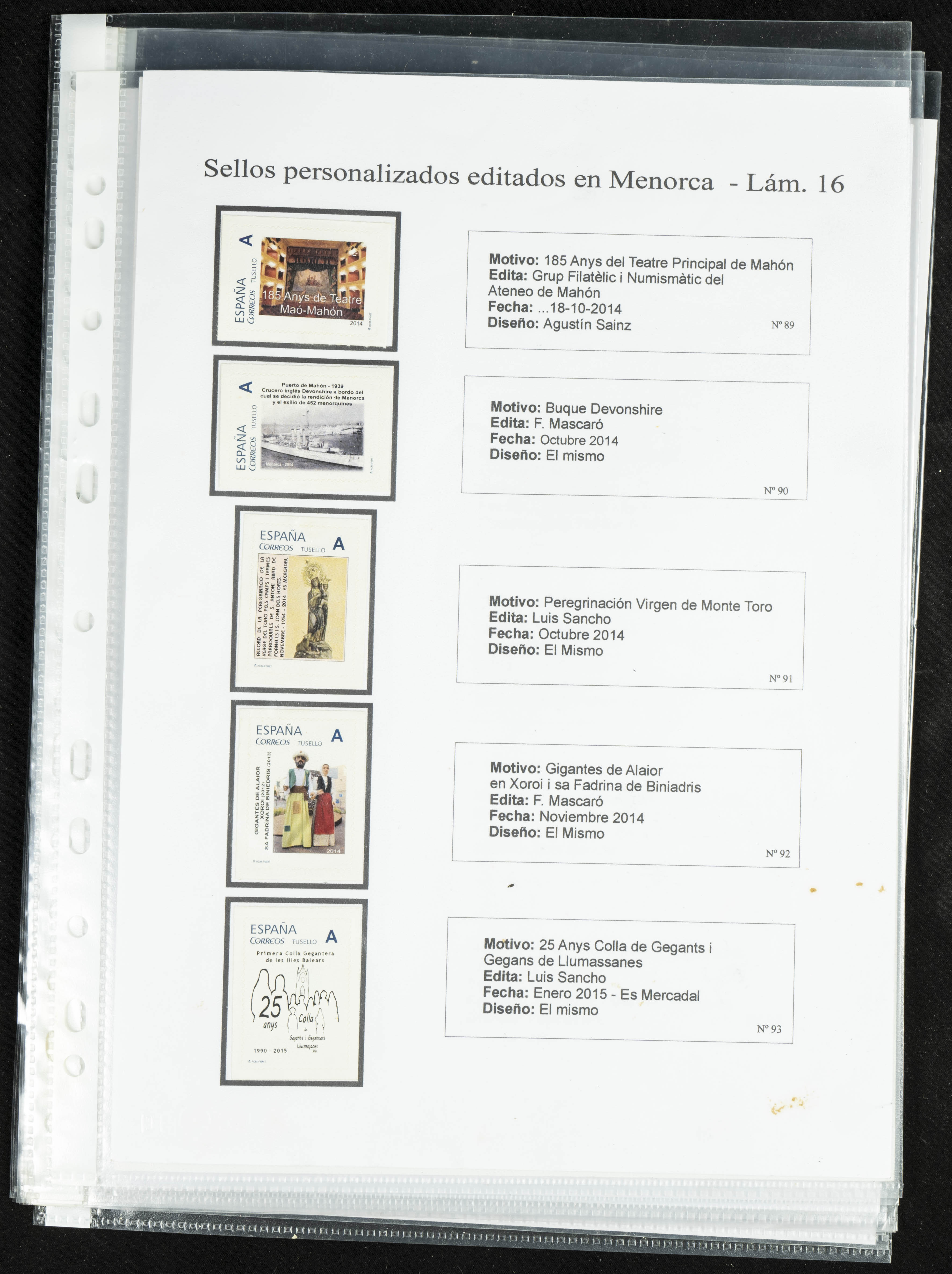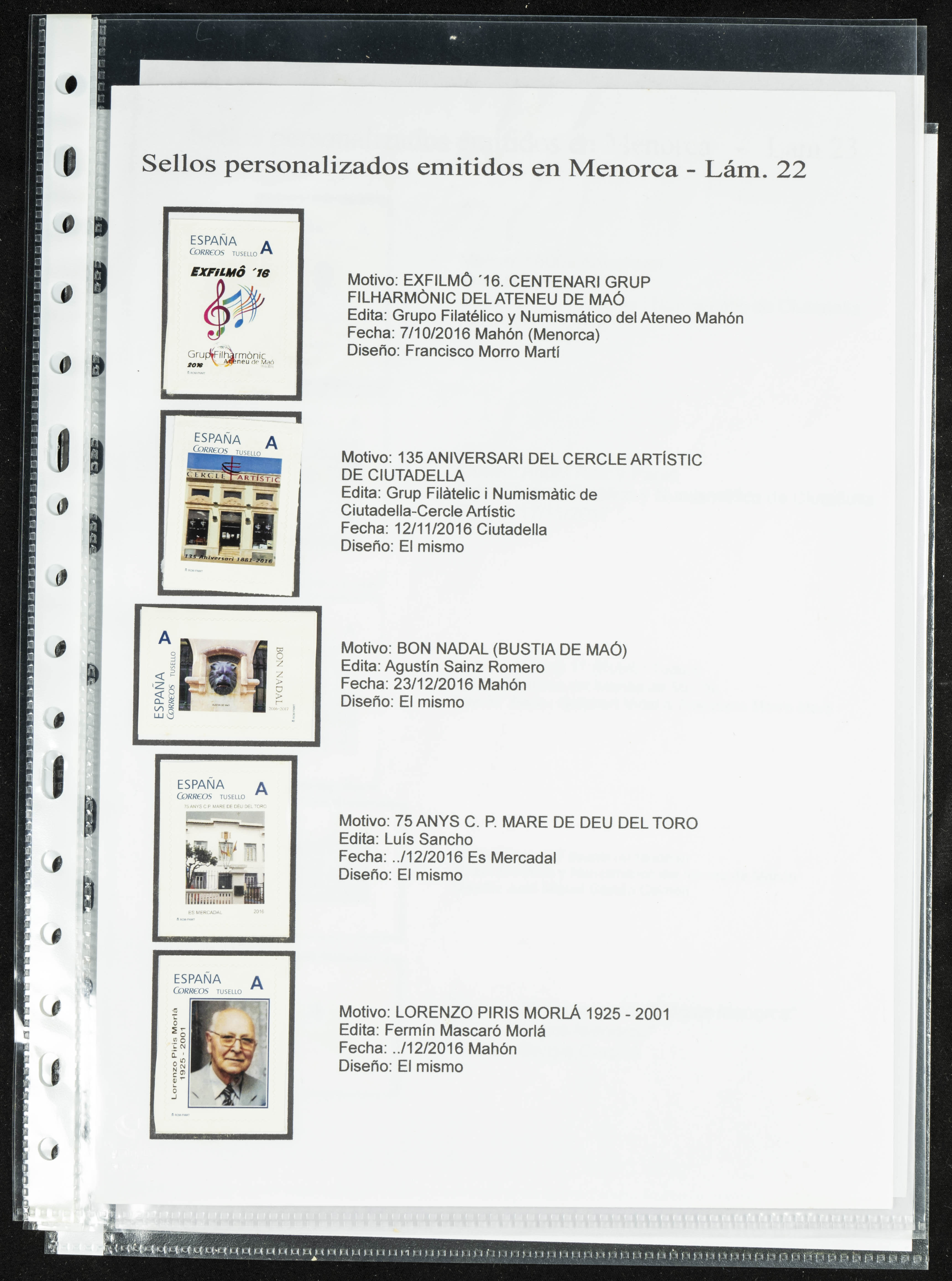 ★★(2007ca). Interesting collection of approximately 350 personalized self-adhesive stamps (Tariff A) featuring motifs and commemorations of the Balearic Islands, some with collectible photographs, issued between 2007 and 2018. (Face value: +300 Euros). TO BE EXAMINED.