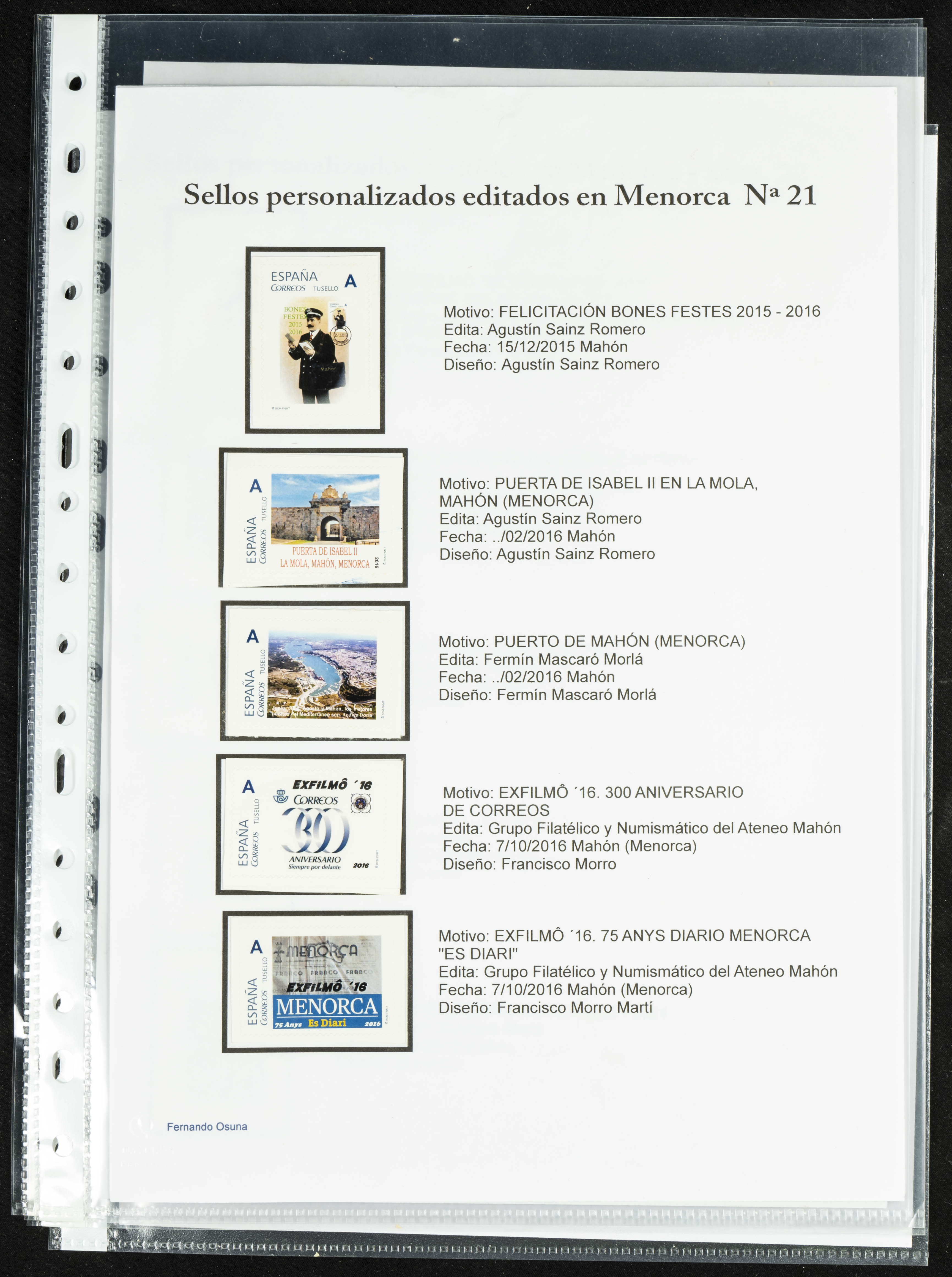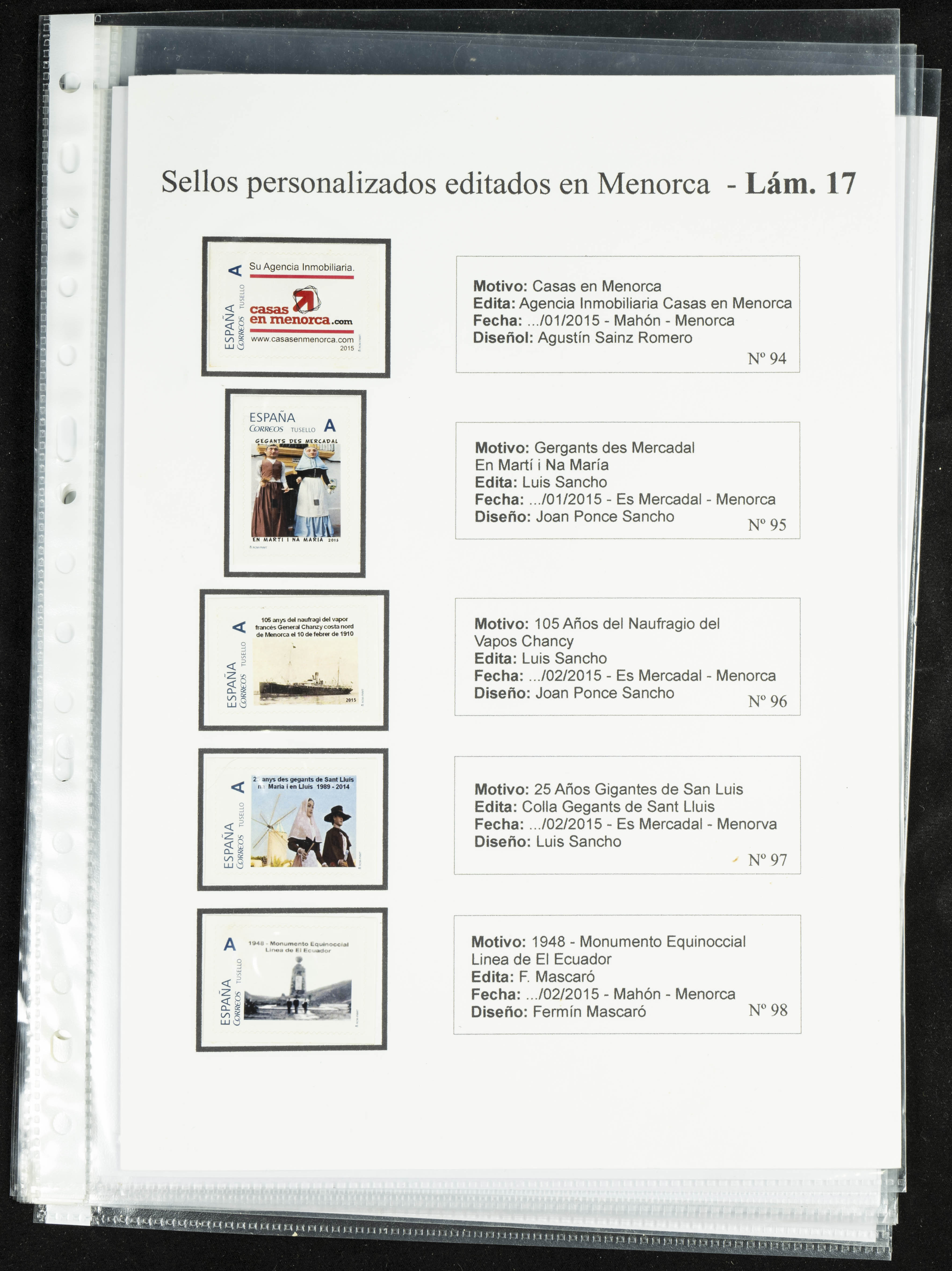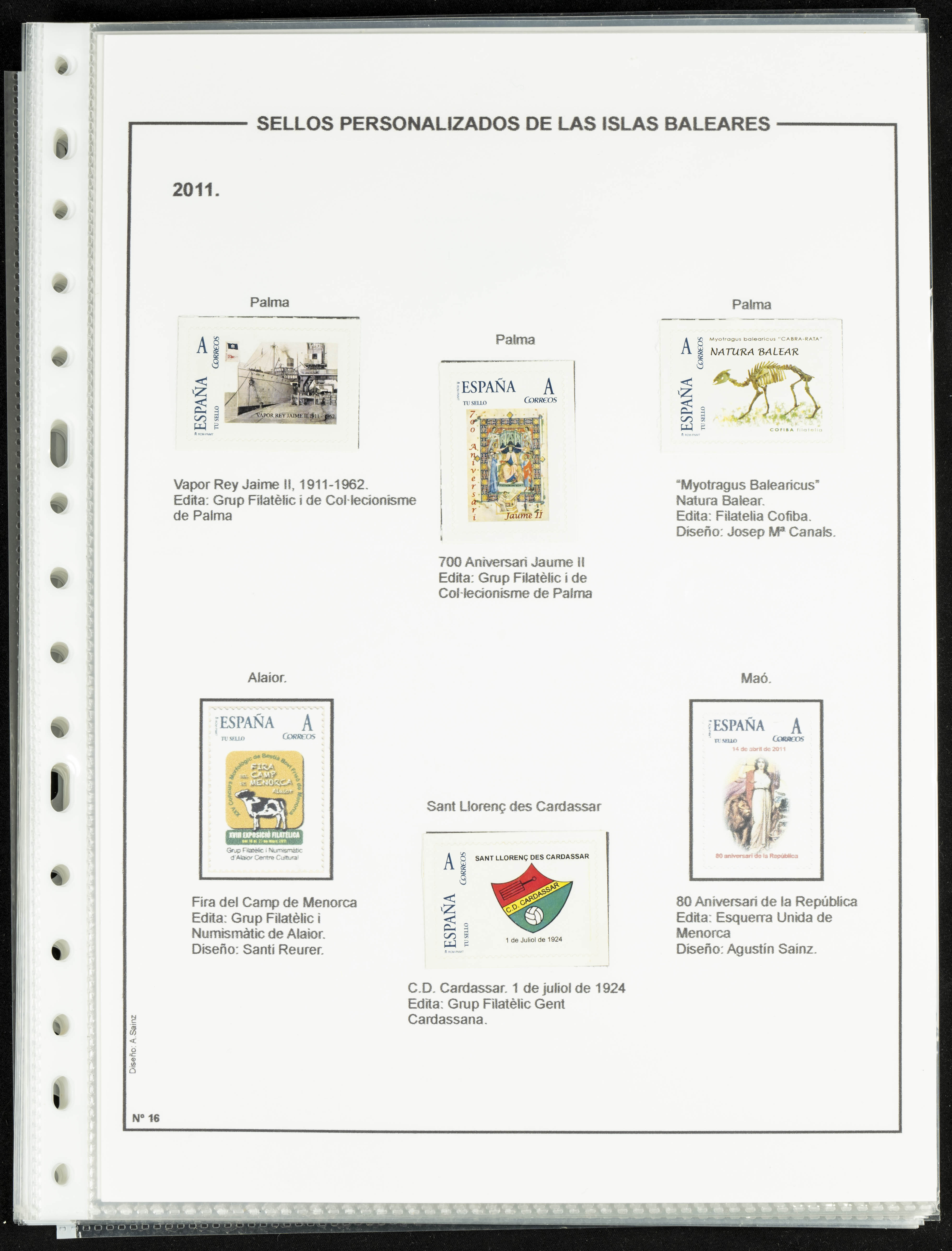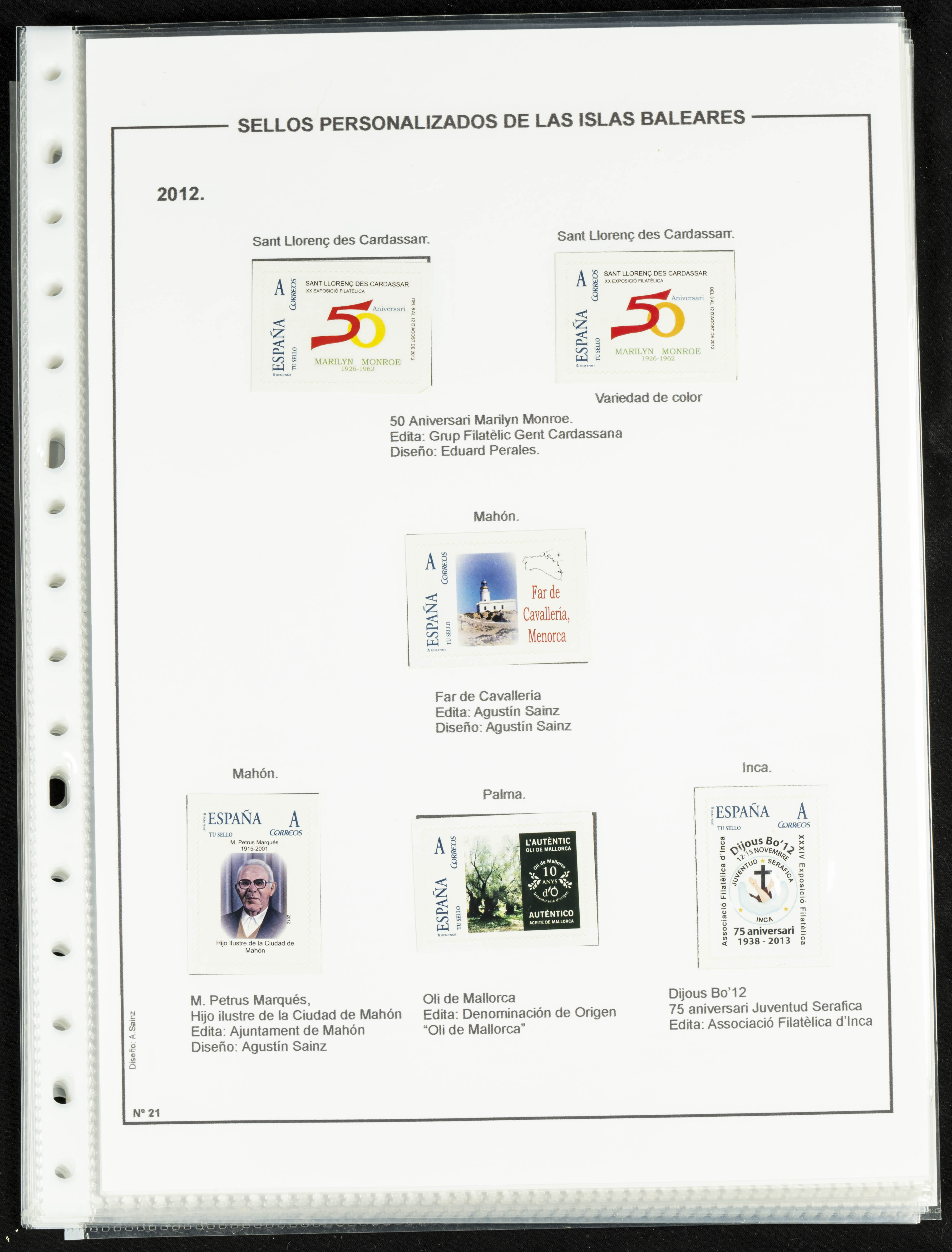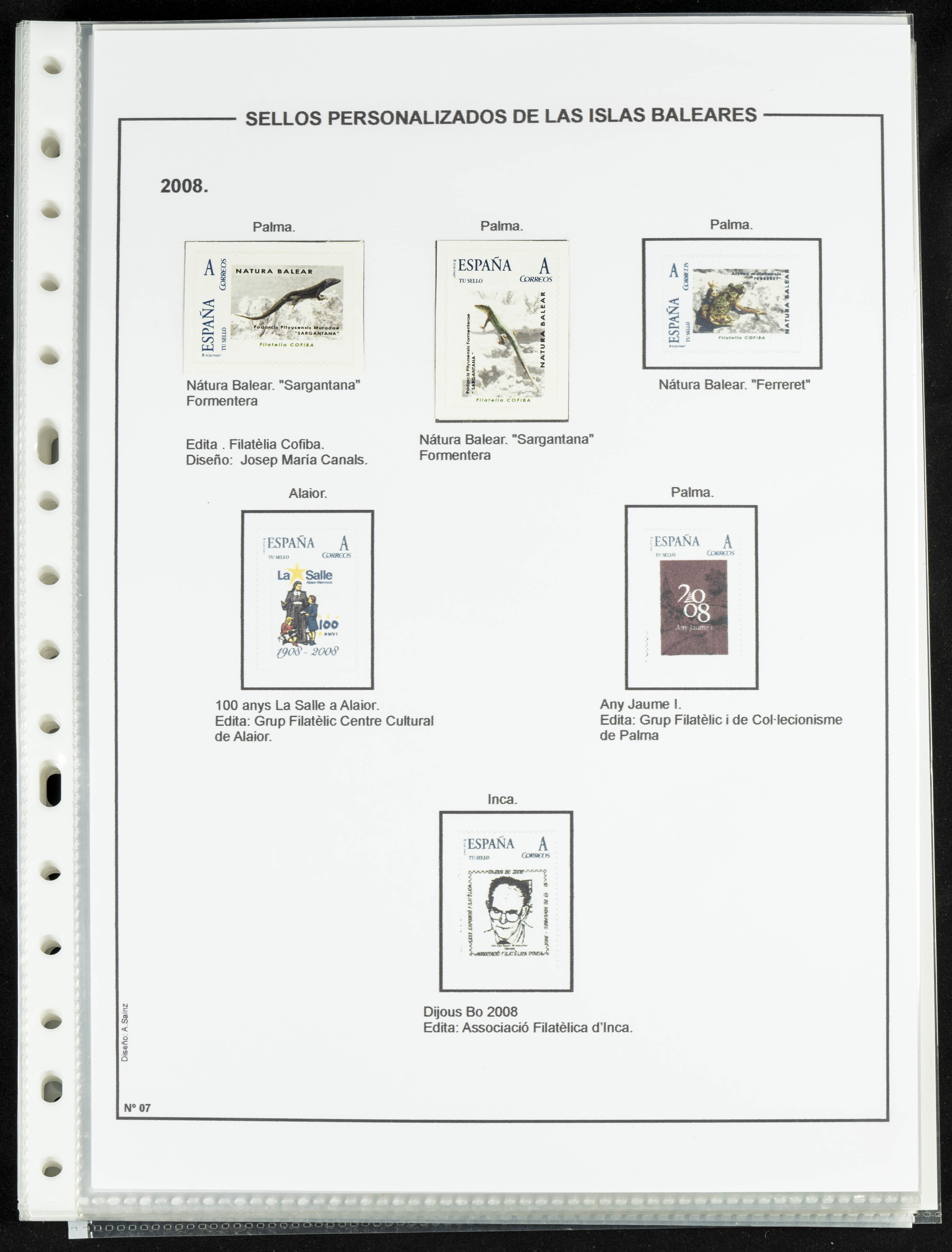 ★★(2007ca). Interesting collection of approximately 350 personalized self-adhesive stamps (Tariff A) featuring motifs and commemorations of the Balearic Islands, some with collectible photographs, issued between 2007 and 2018. (Face value: +300 Euros). TO BE EXAMINED.