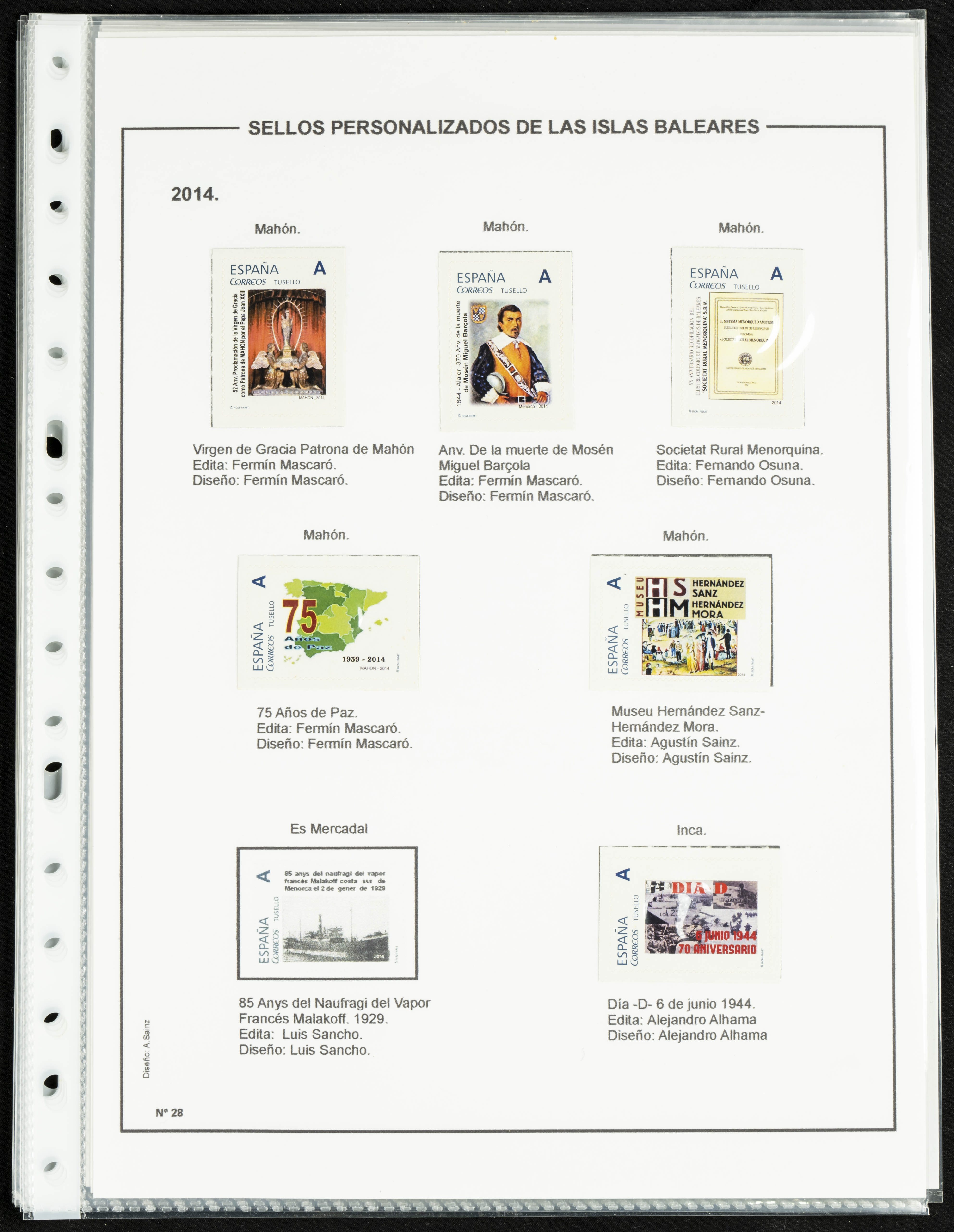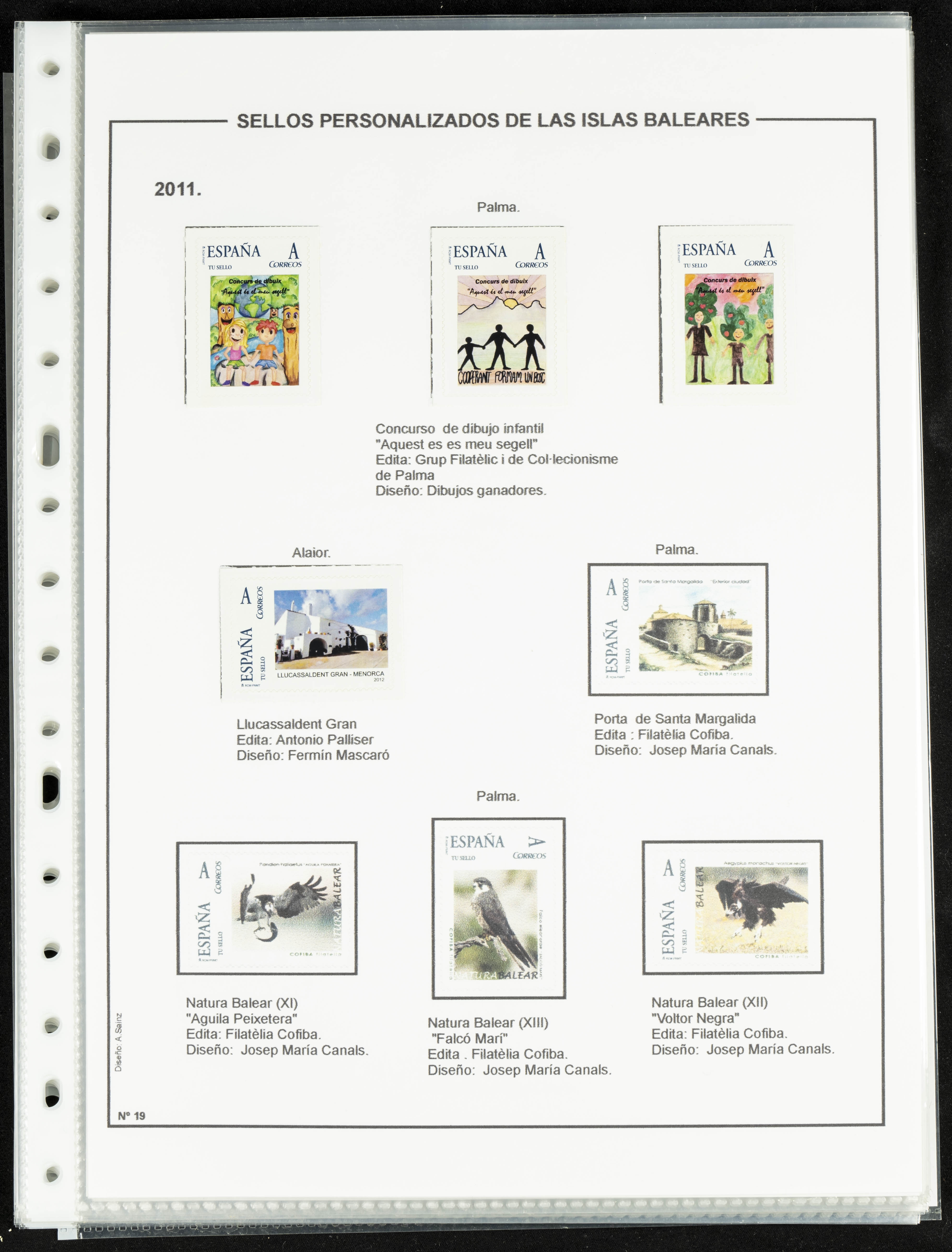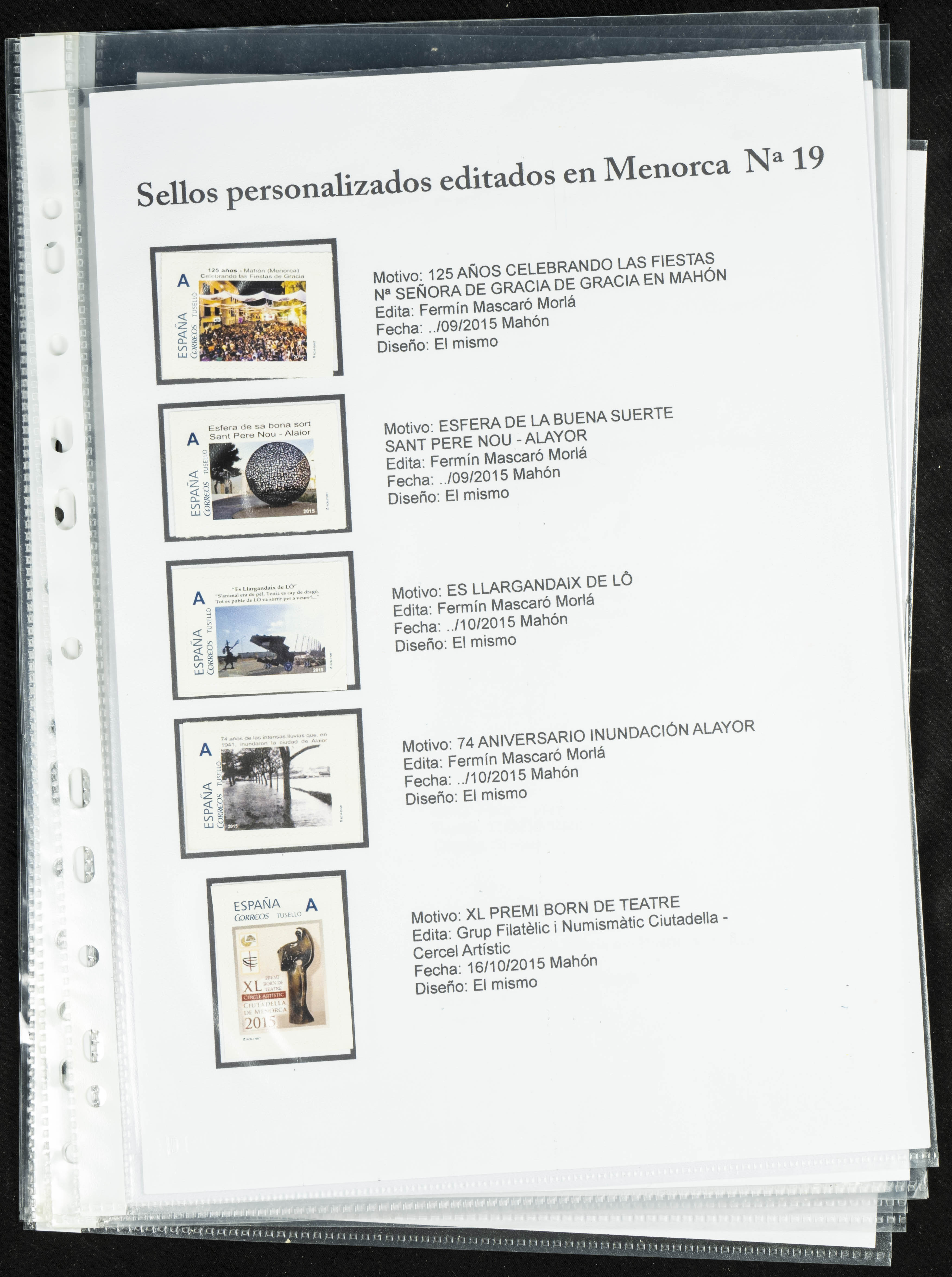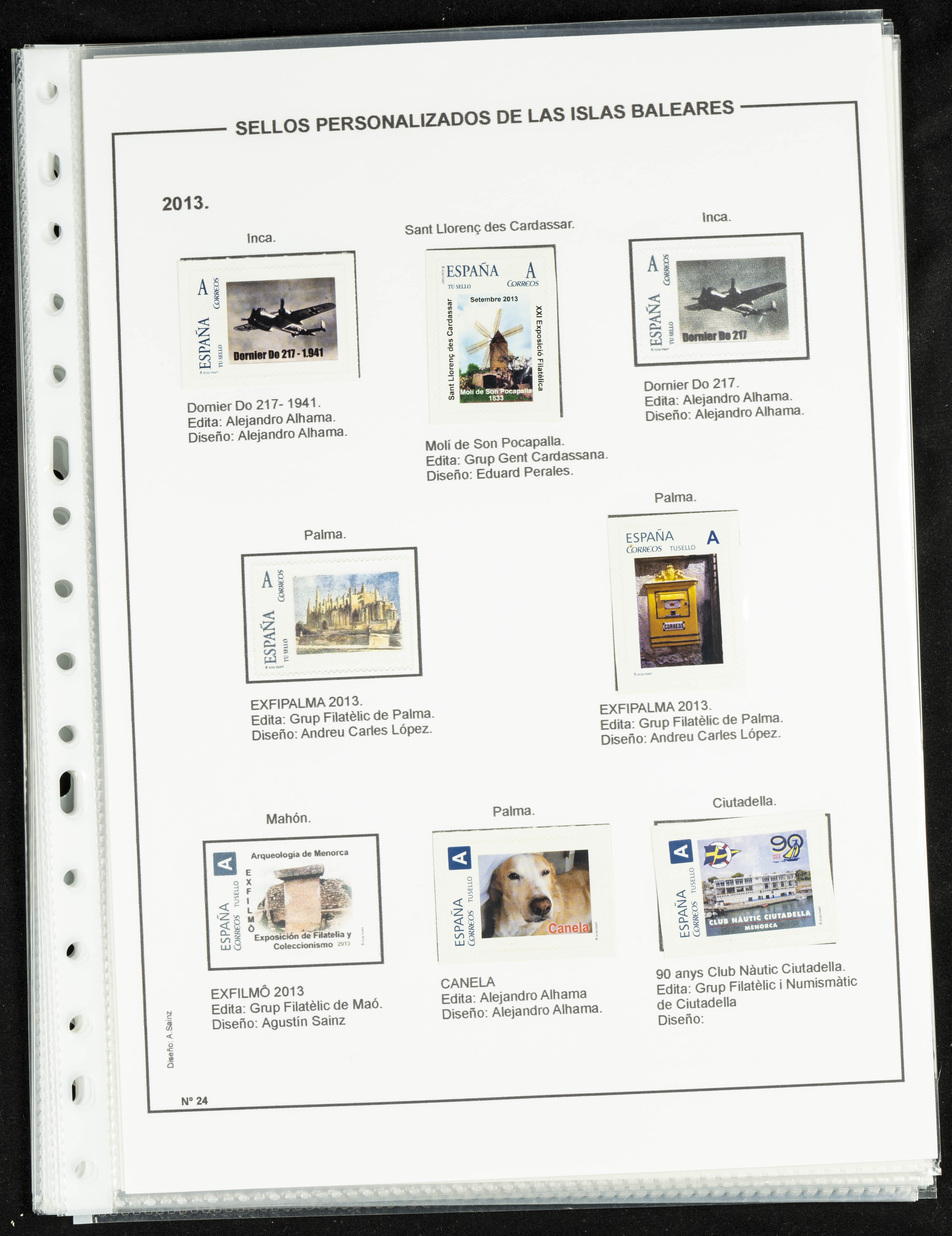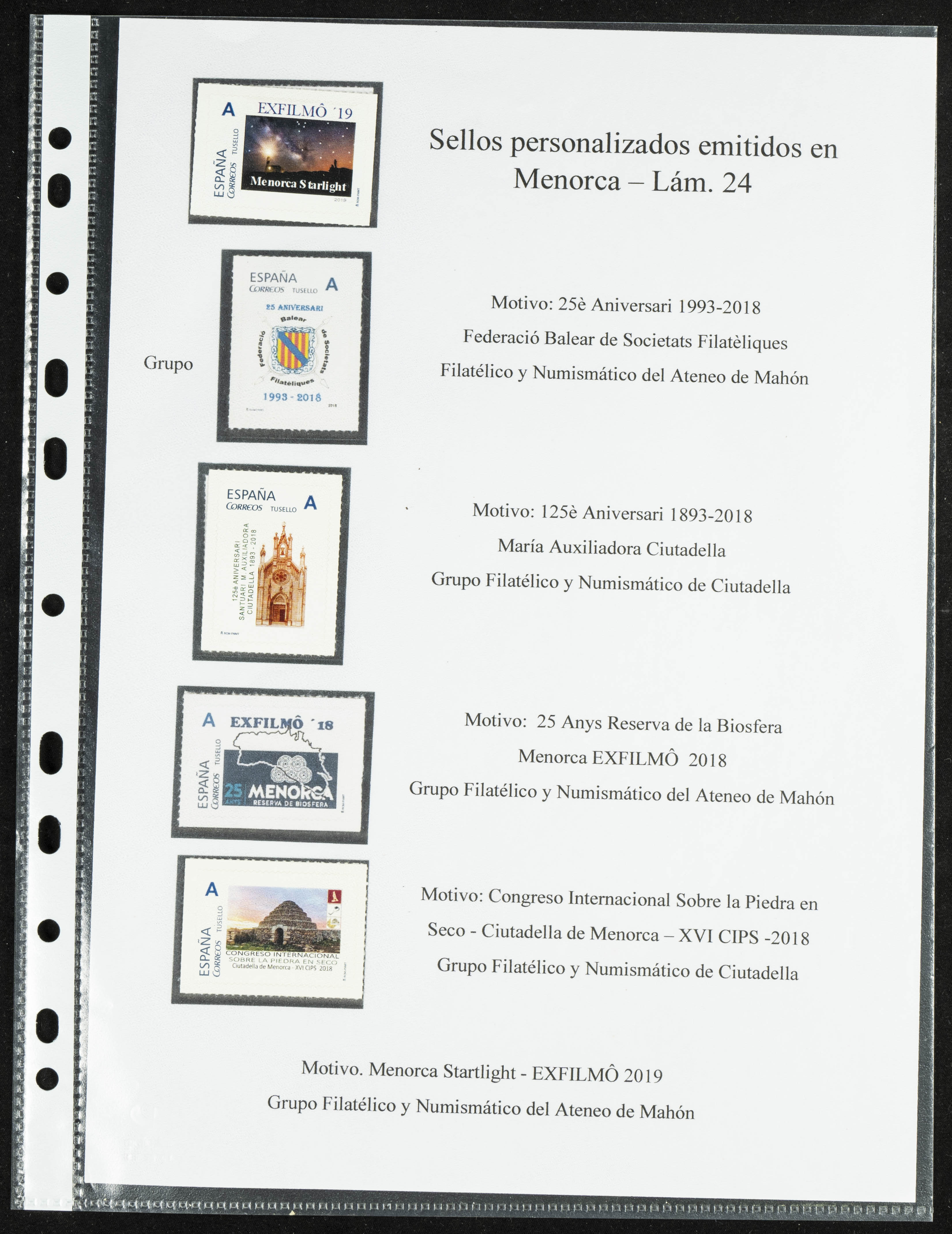 ★★(2007ca). Interesting collection of approximately 350 personalized self-adhesive stamps (Tariff A) featuring motifs and commemorations of the Balearic Islands, some with collectible photographs, issued between 2007 and 2018. (Face value: +300 Euros). TO BE EXAMINED.