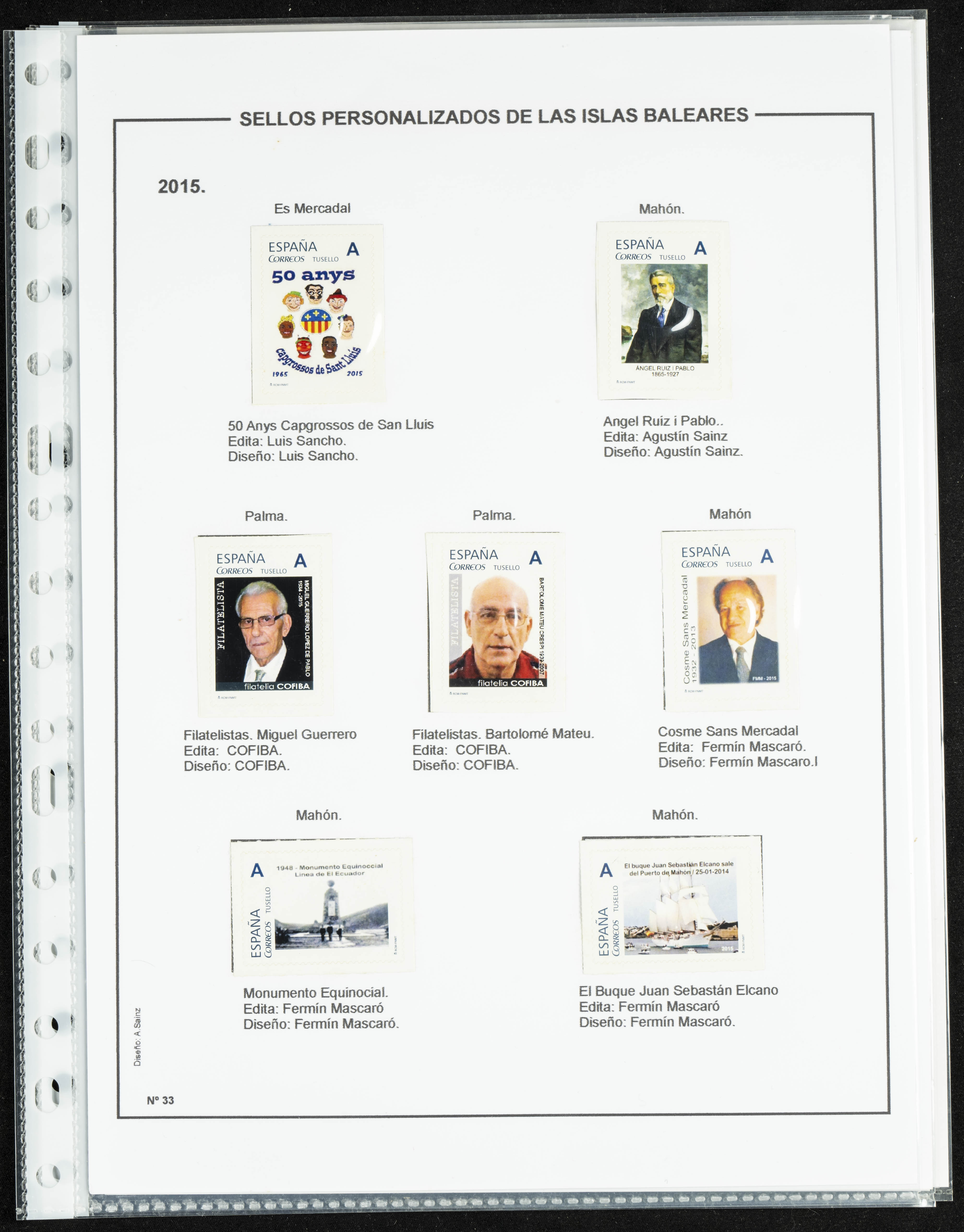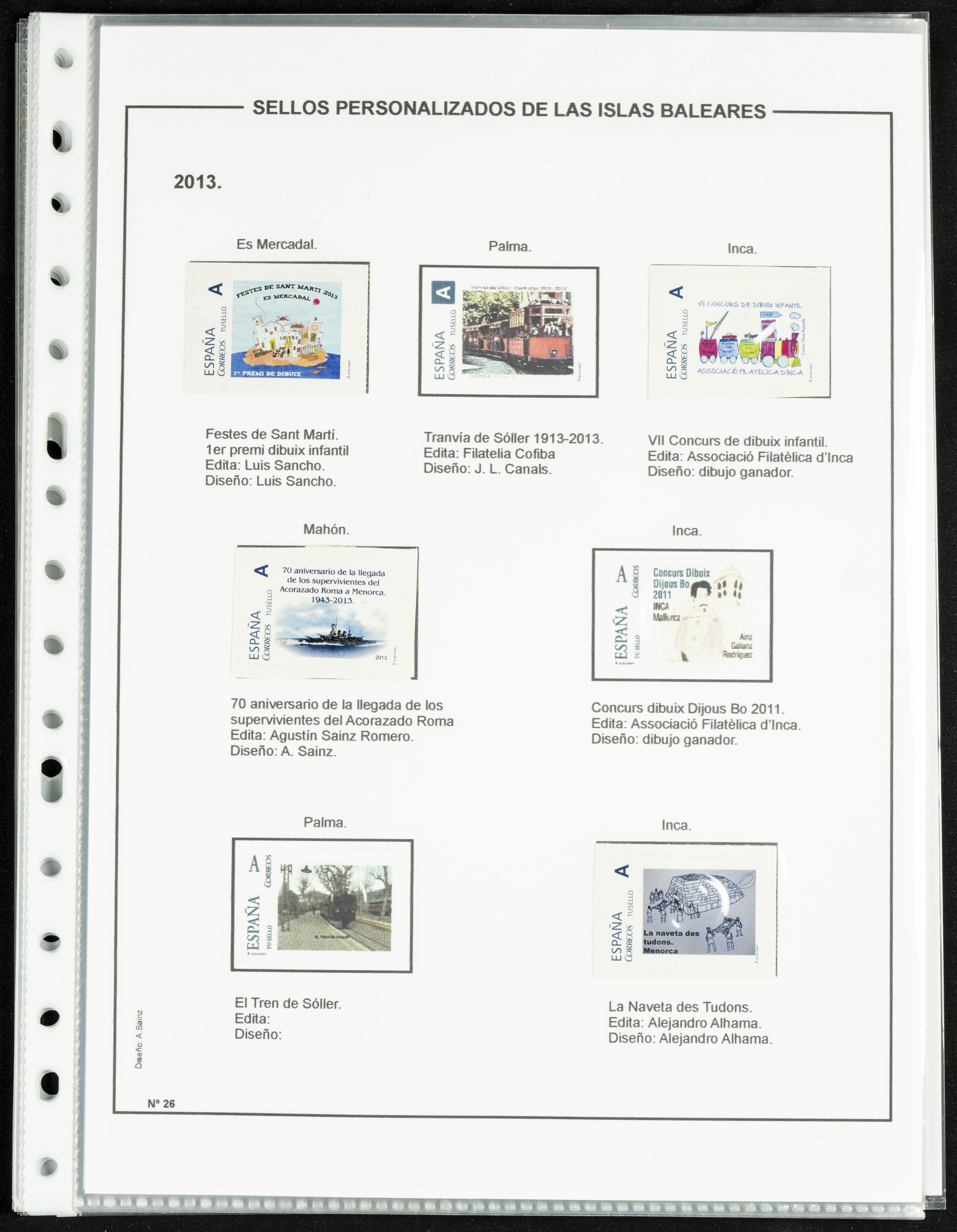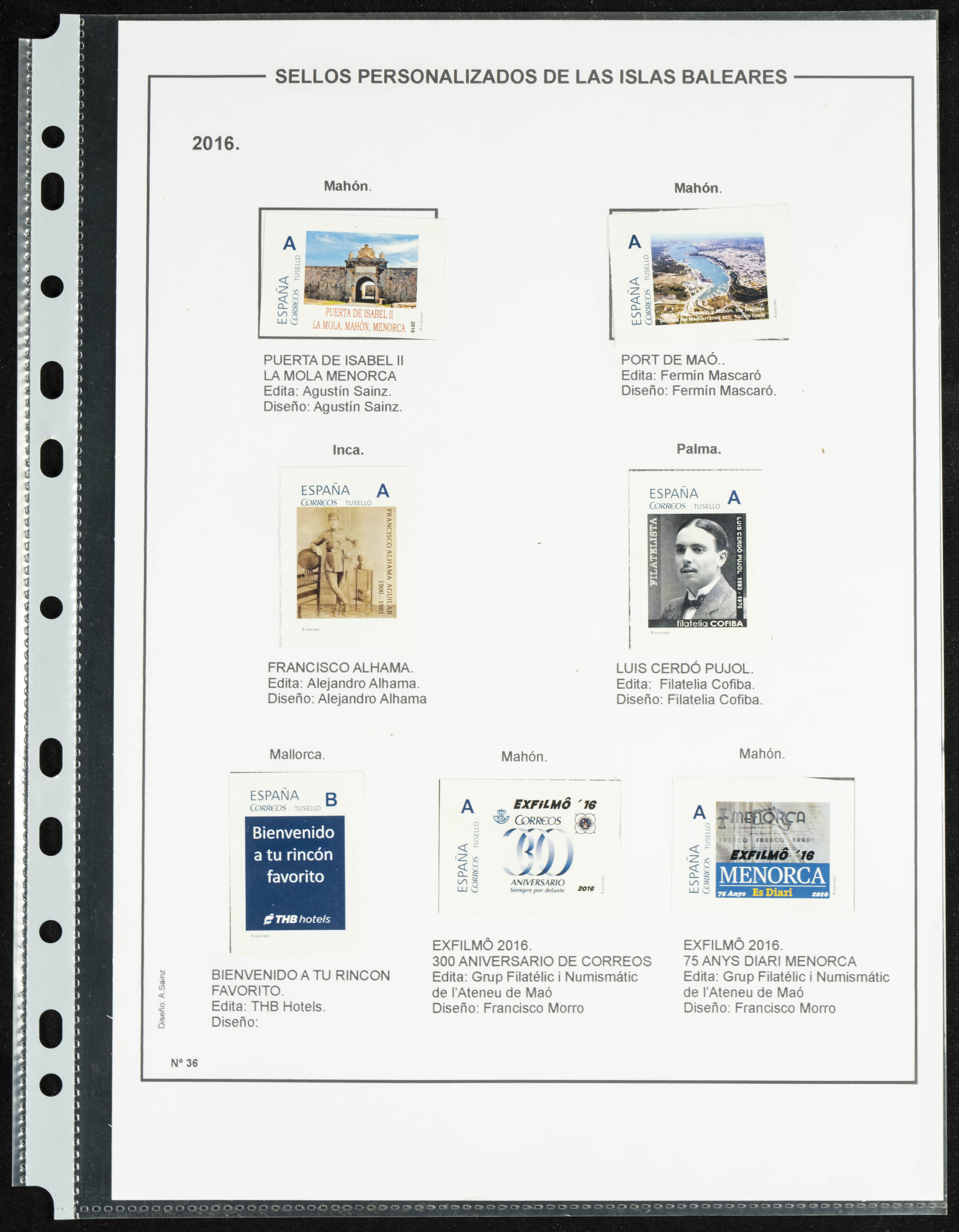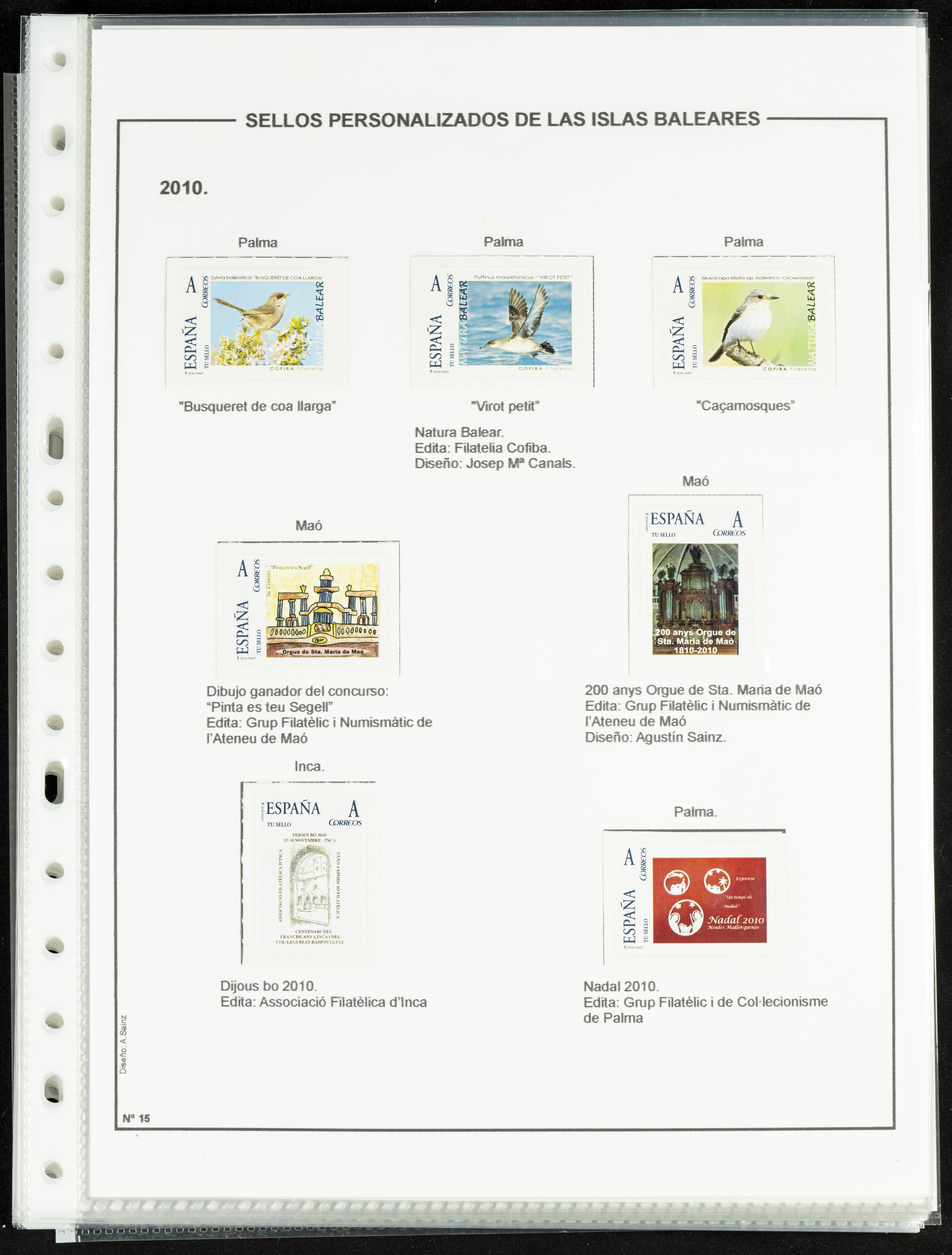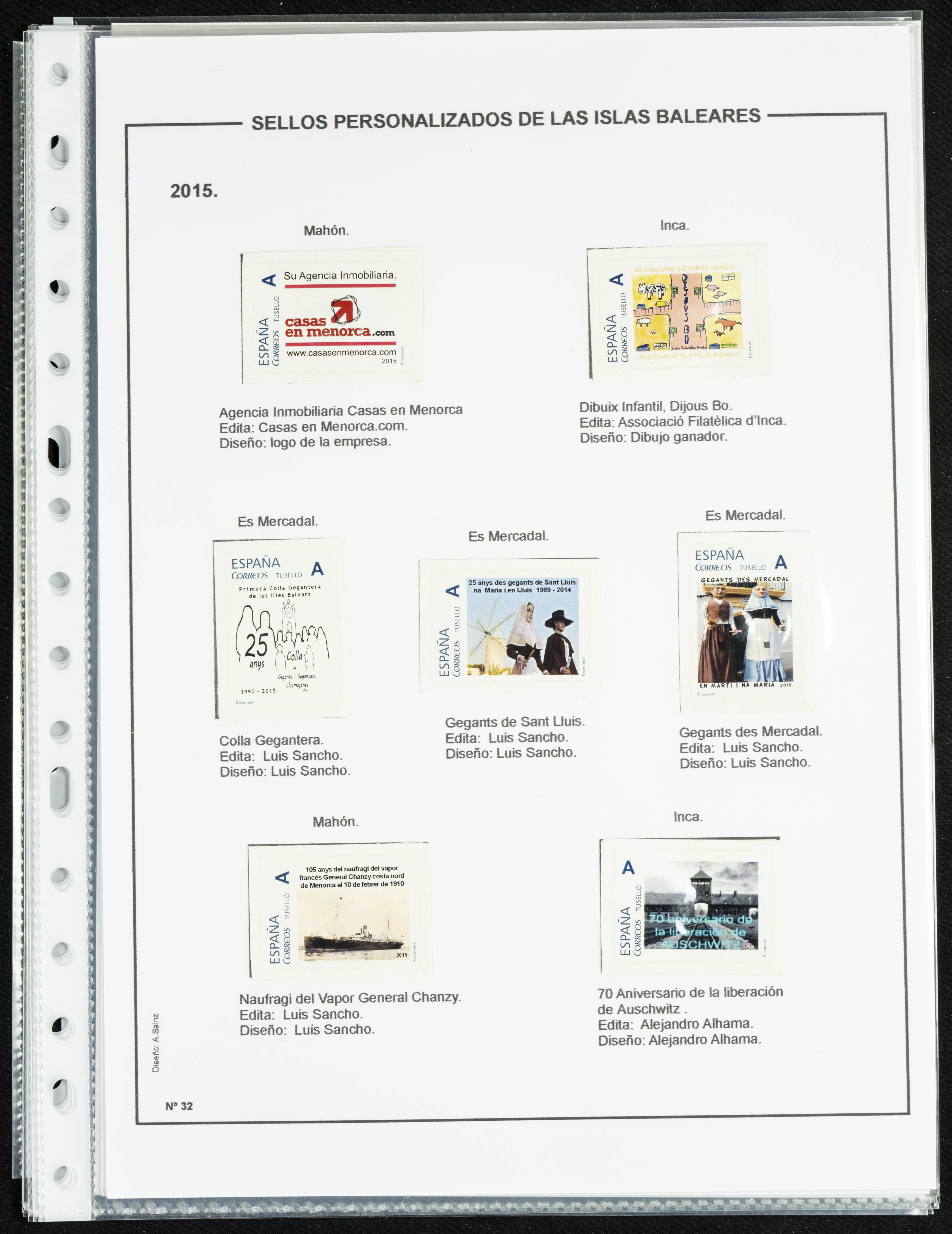 ★★(2007ca). Interesting collection of approximately 350 personalized self-adhesive stamps (Tariff A) featuring motifs and commemorations of the Balearic Islands, some with collectible photographs, issued between 2007 and 2018. (Face value: +300 Euros). TO BE EXAMINED.