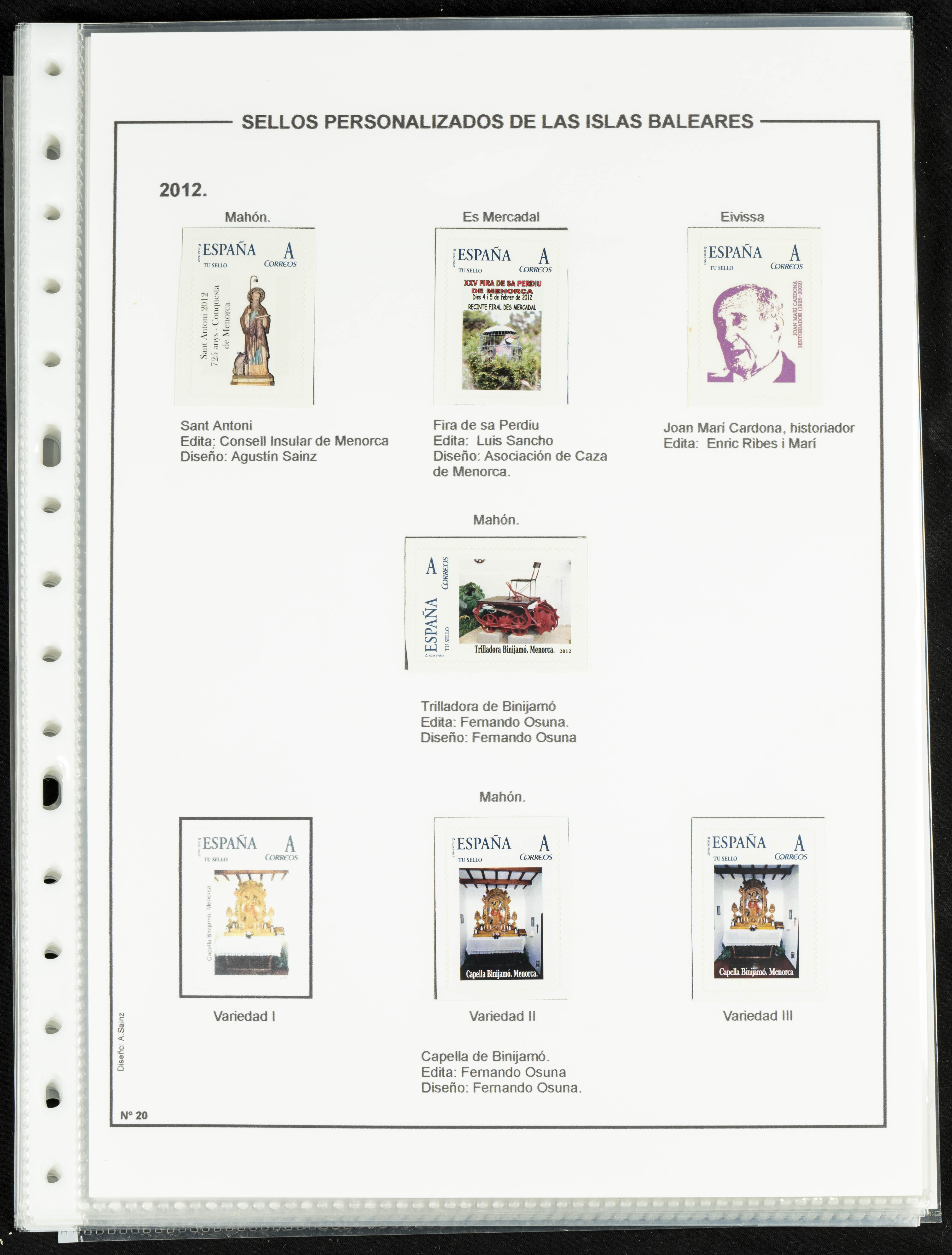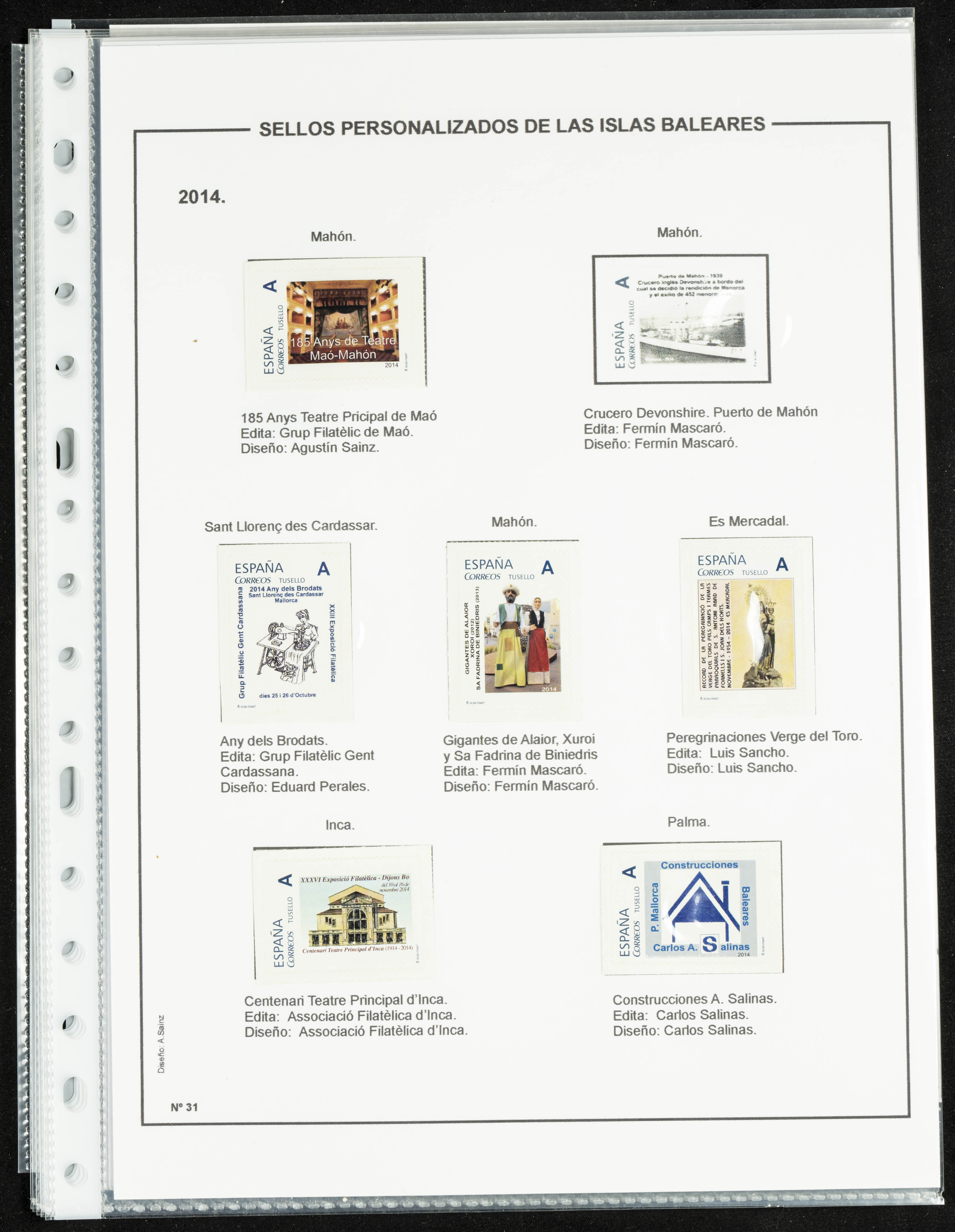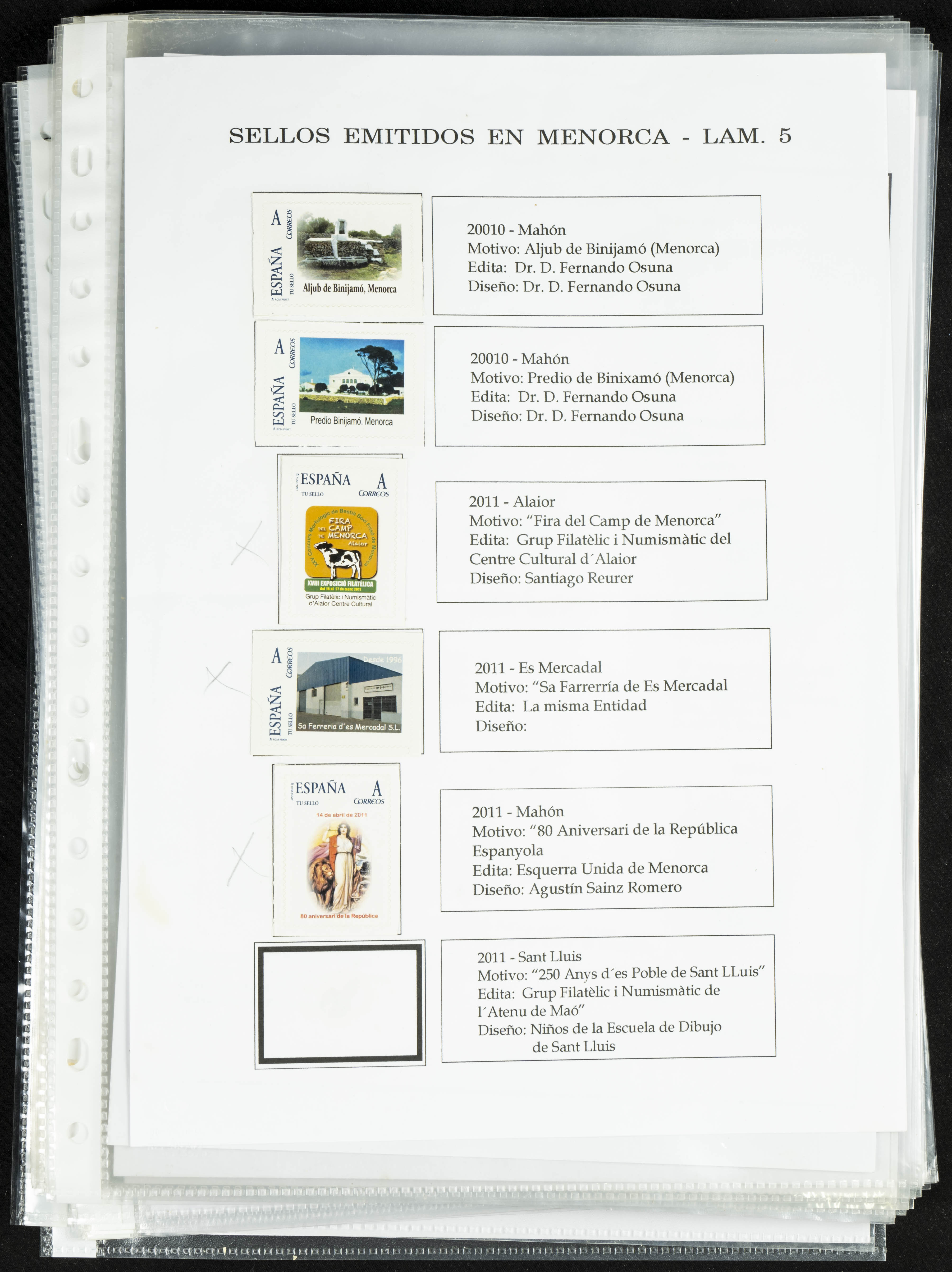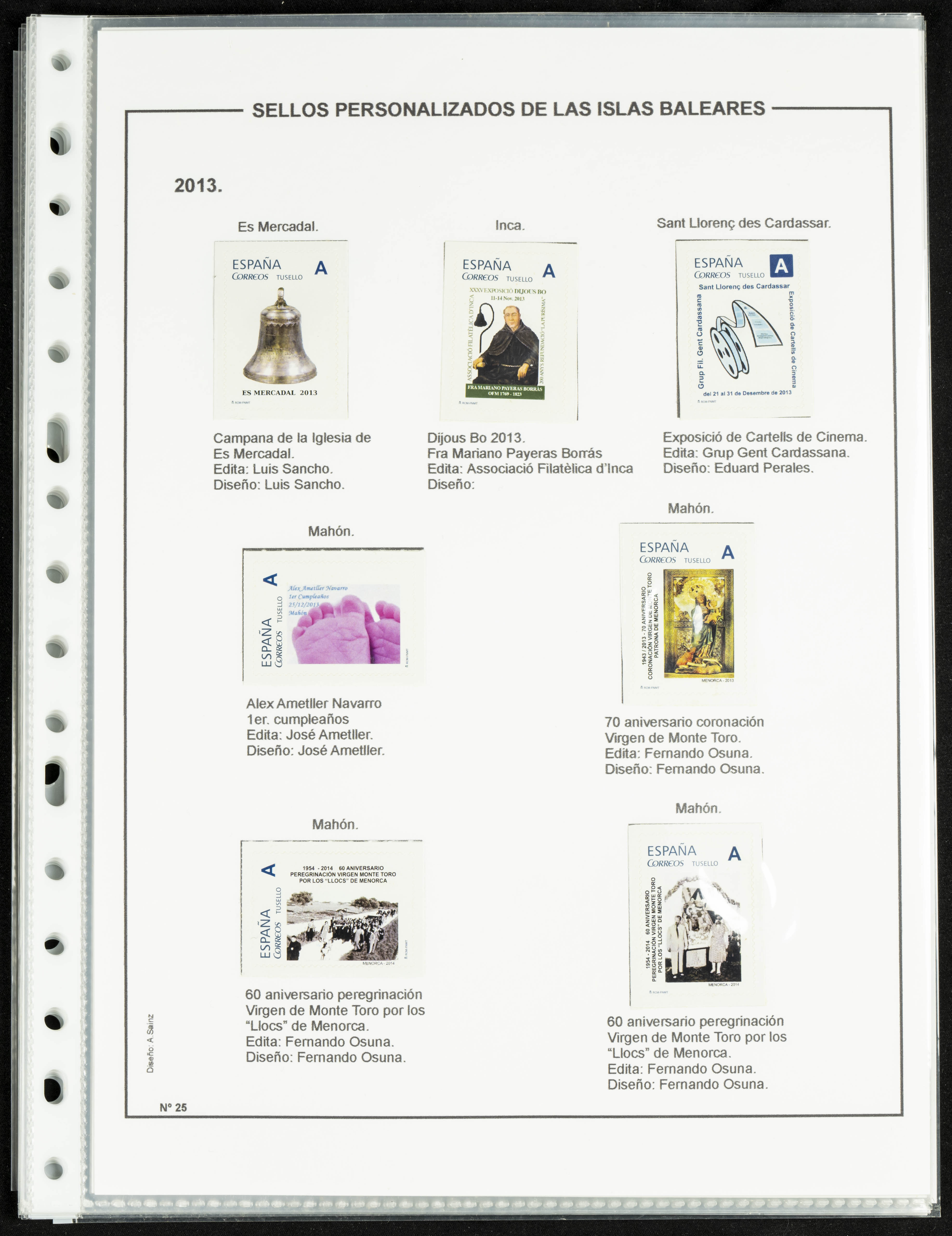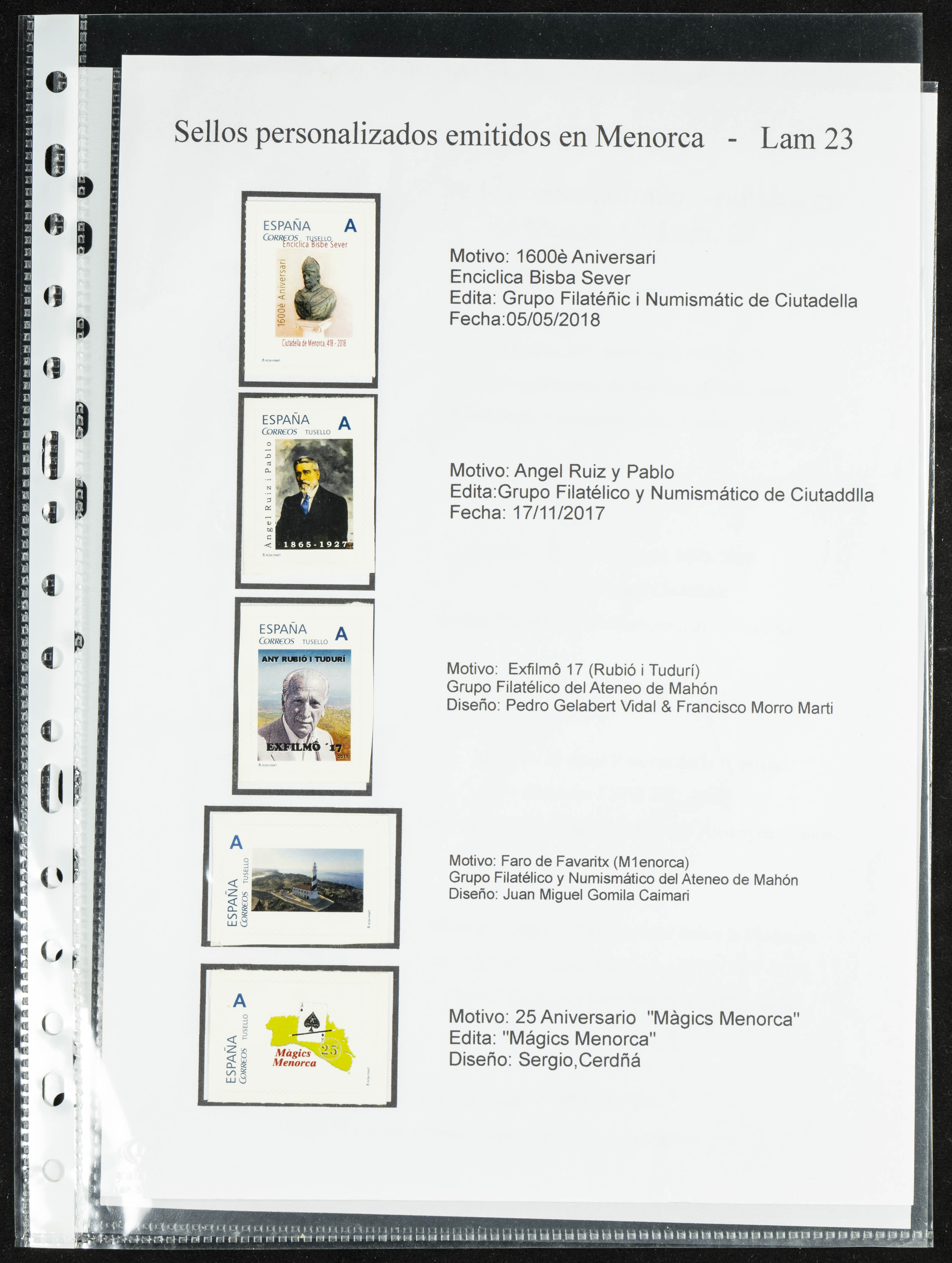★★(2007ca). Interesting collection of approximately 350 personalized self-adhesive stamps (Tariff A) featuring motifs and commemorations of the Balearic Islands, some with collectible photographs, issued between 2007 and 2018. (Face value: +300 Euros). TO BE EXAMINED.