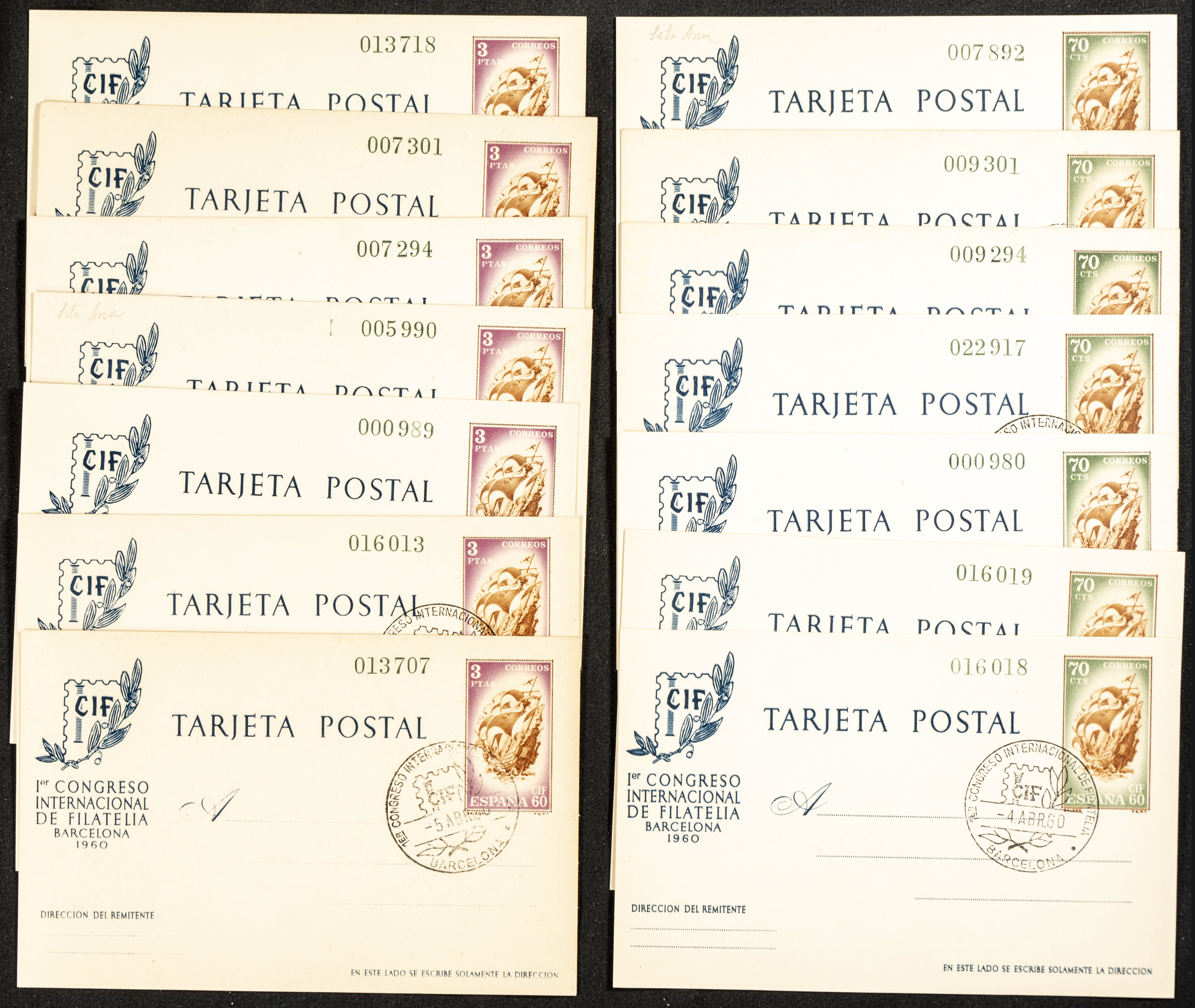 EP88/89(7). 1960. Seven complete sets of postal stationery cards. CIF (with exhibition postmarks). TO BE EXAMINED. Edifil 2026: 385 Euros
