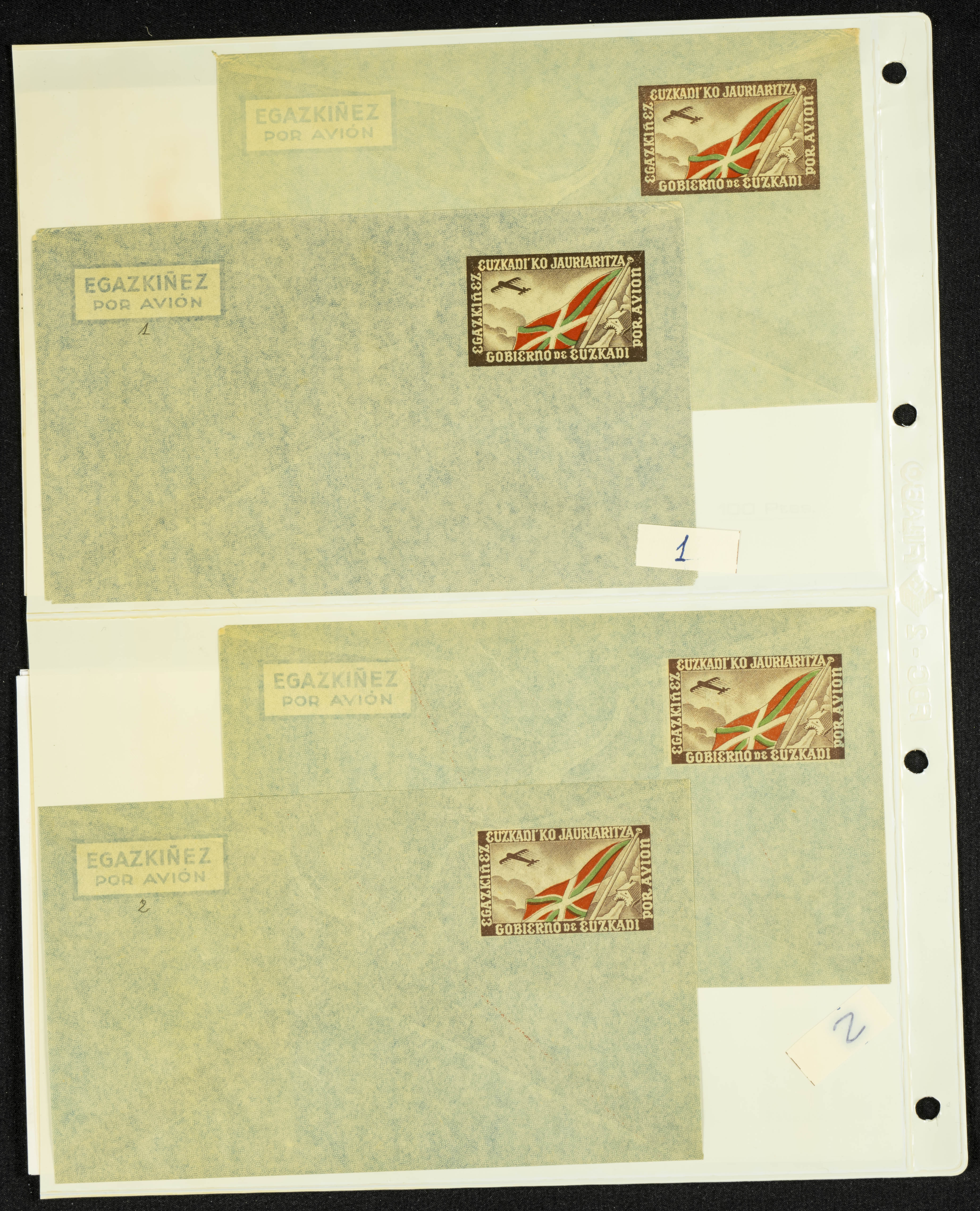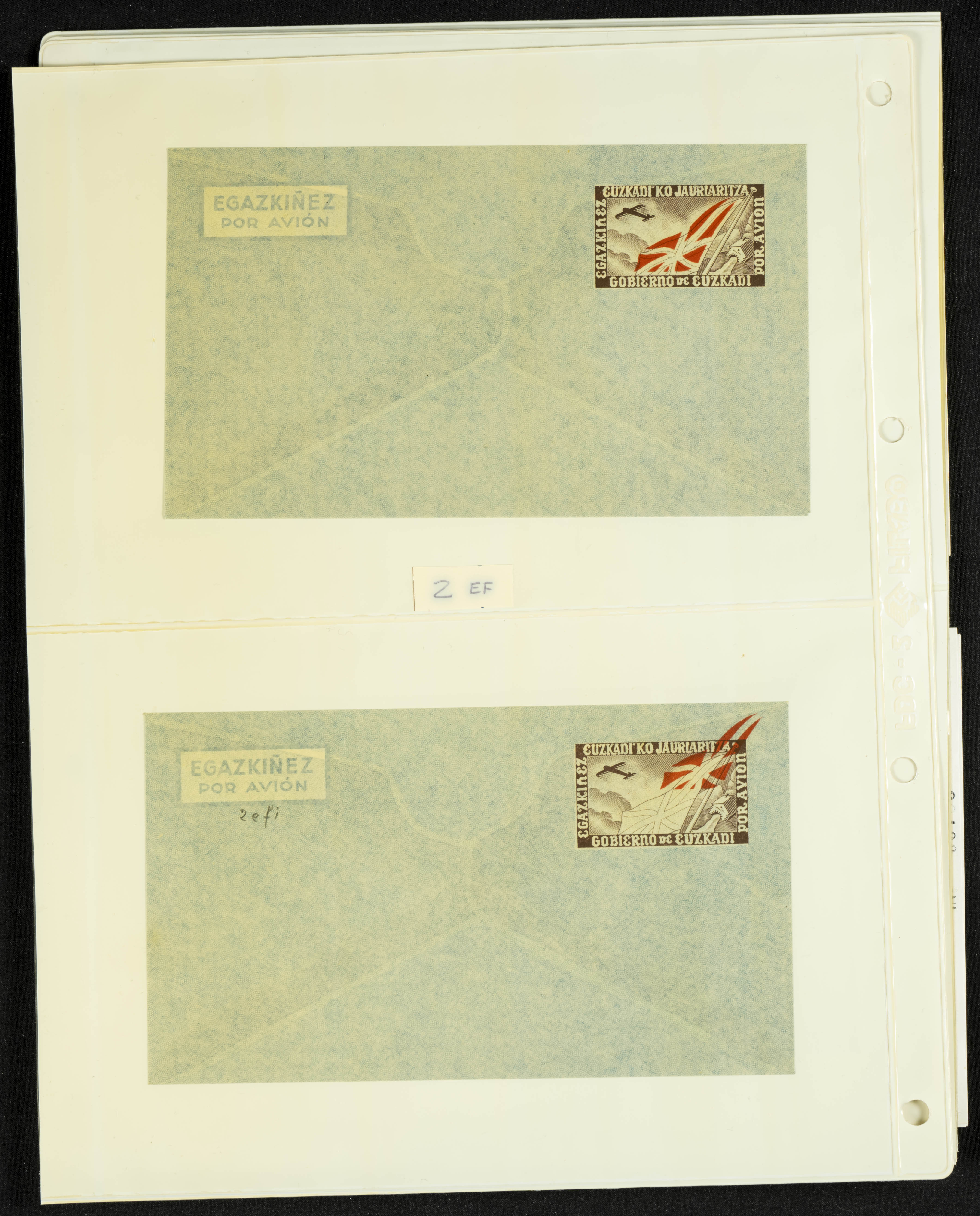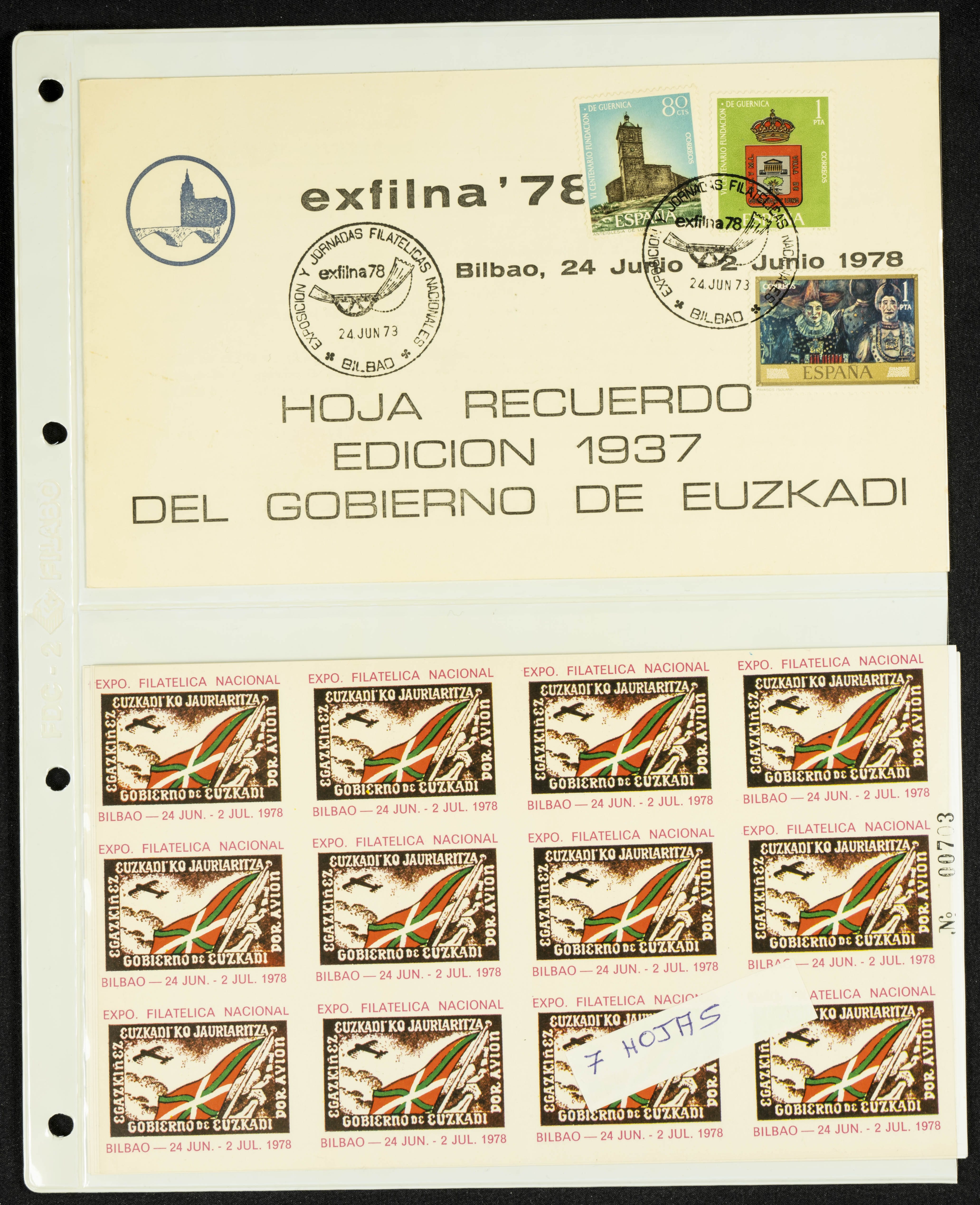 (★)/(1937ca). Set of fifteen Postal Stationery from the Government of the Basque Country, mostly mint and with different varieties, some quite spectacular, includes a souvenir sheet from 1973 and seventy-two vignettes from the Bilbao Philatelic Exhibition with images of these Stationery, as well as some First Day Covers from the King's Basic Stamp Collection. TO BE EXAMINED.