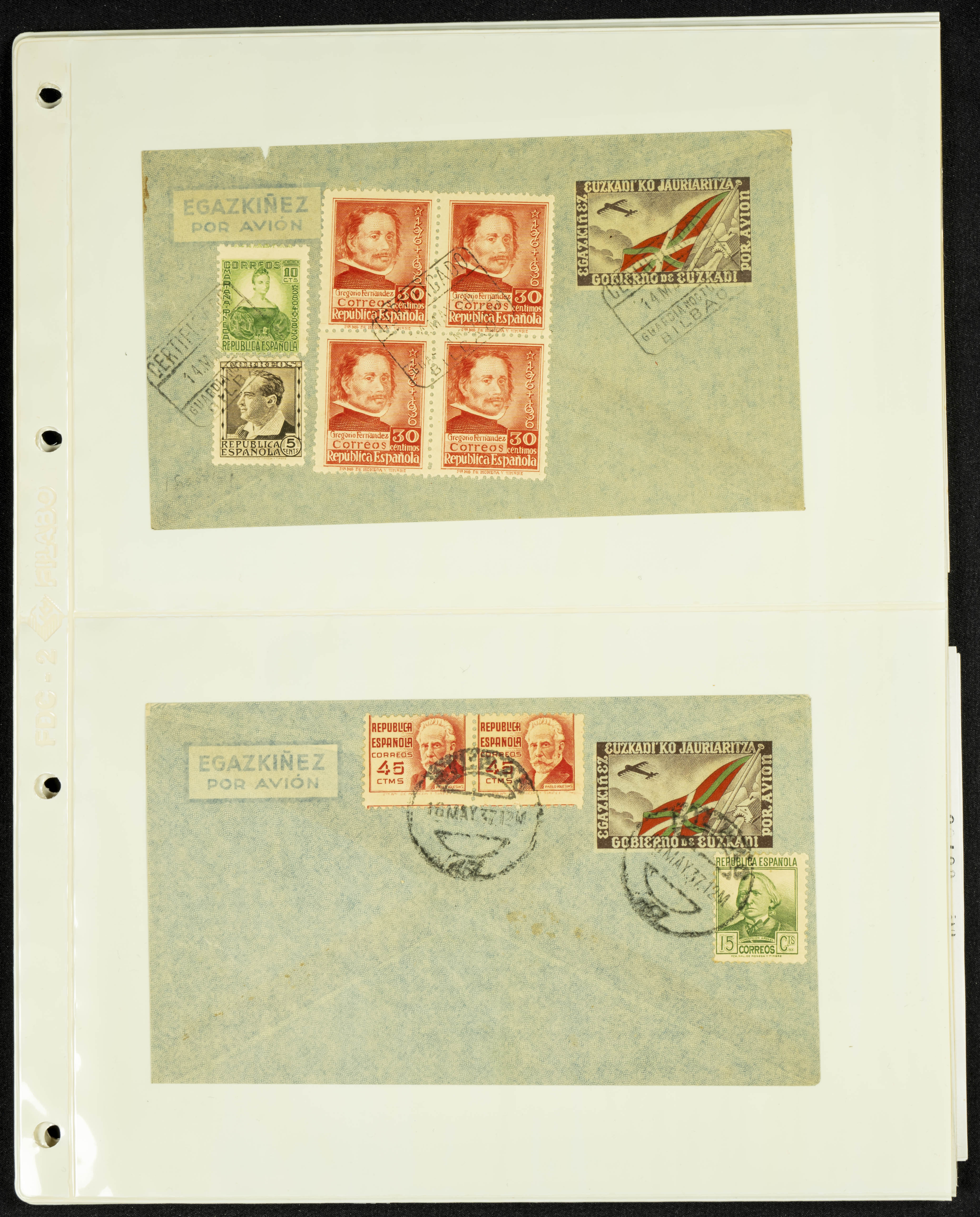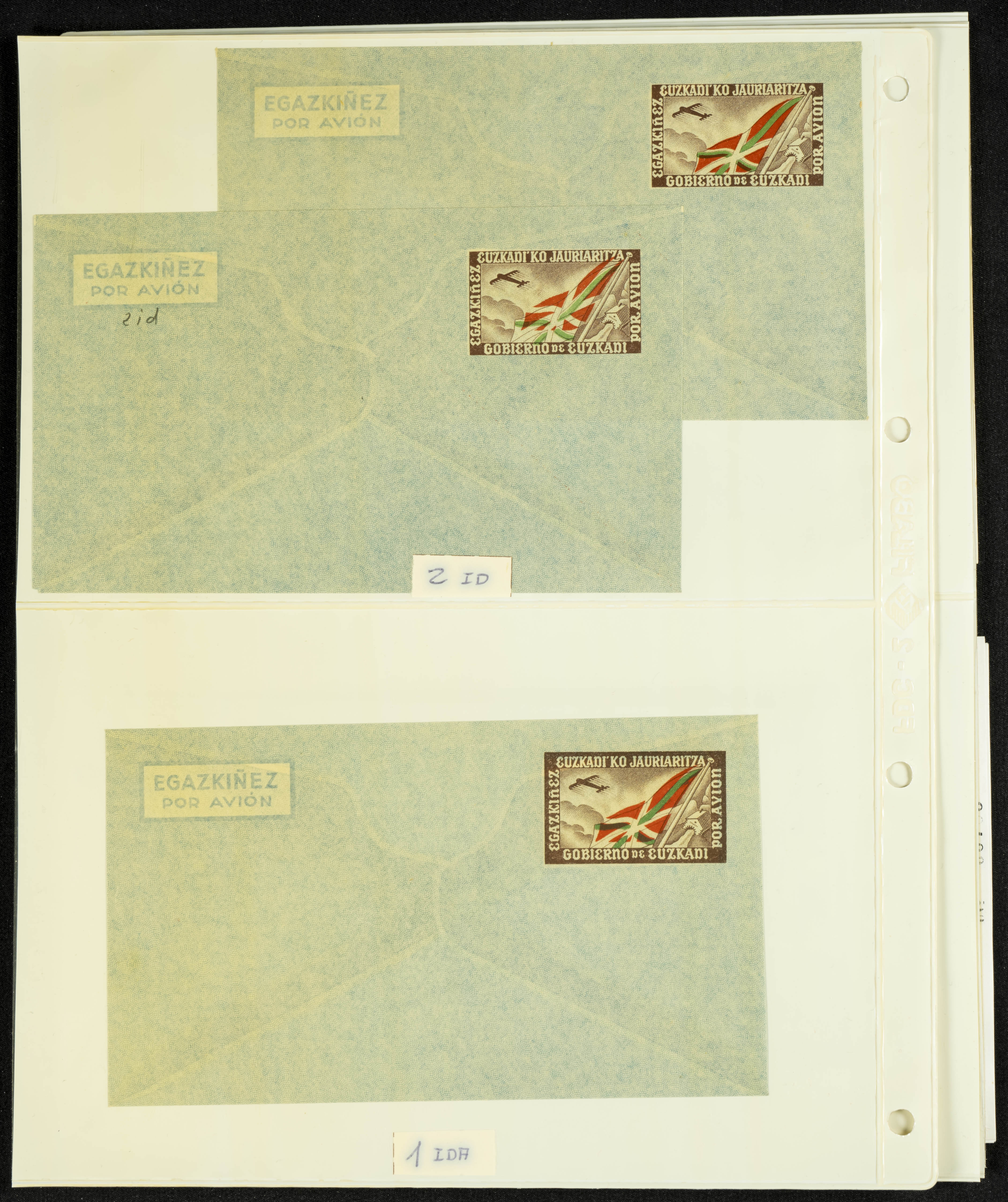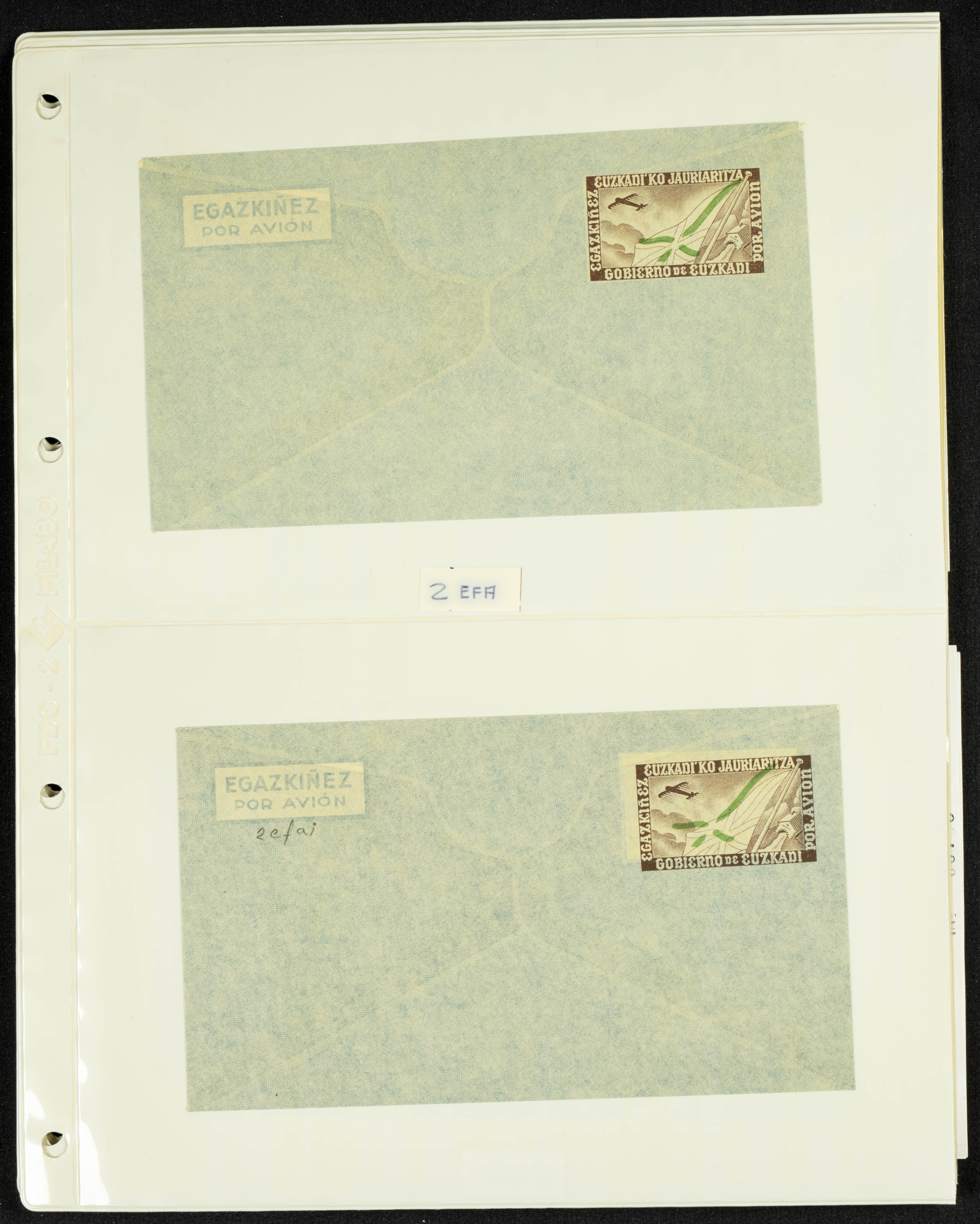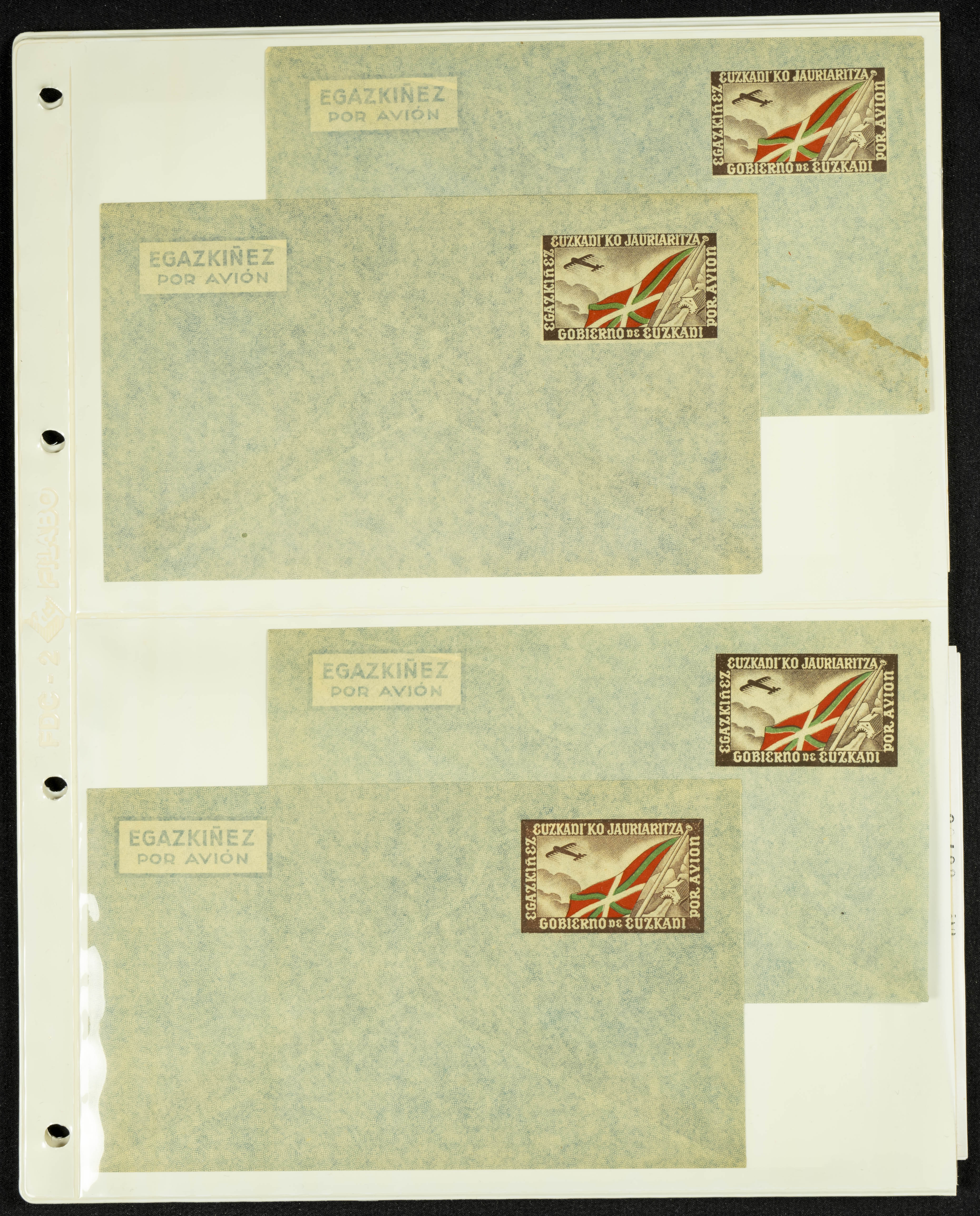 (★)/(1937ca). Set of fifteen Postal Stationery from the Government of the Basque Country, mostly mint and with different varieties, some quite spectacular, includes a souvenir sheet from 1973 and seventy-two vignettes from the Bilbao Philatelic Exhibition with images of these Stationery, as well as some First Day Covers from the King's Basic Stamp Collection. TO BE EXAMINED.