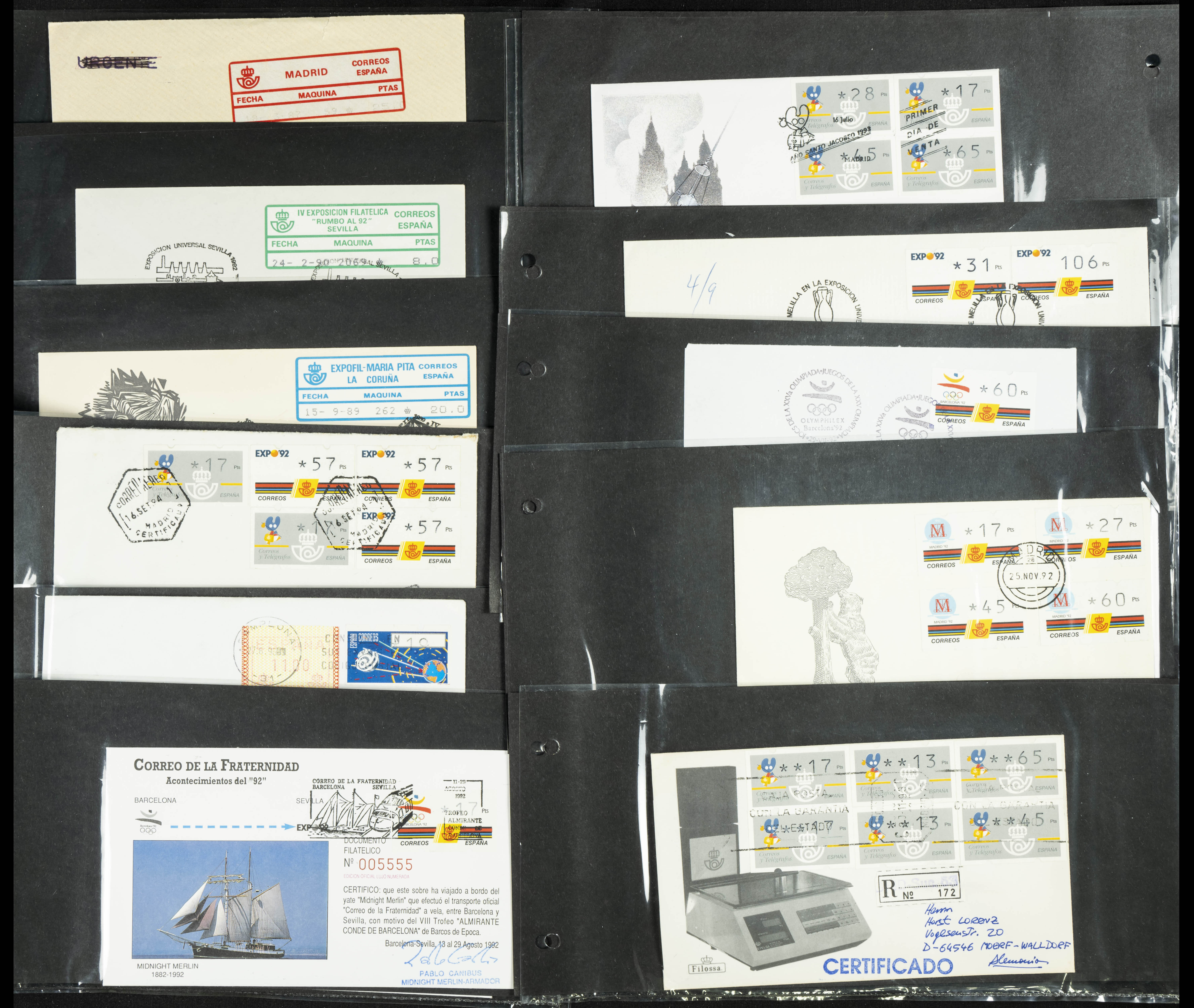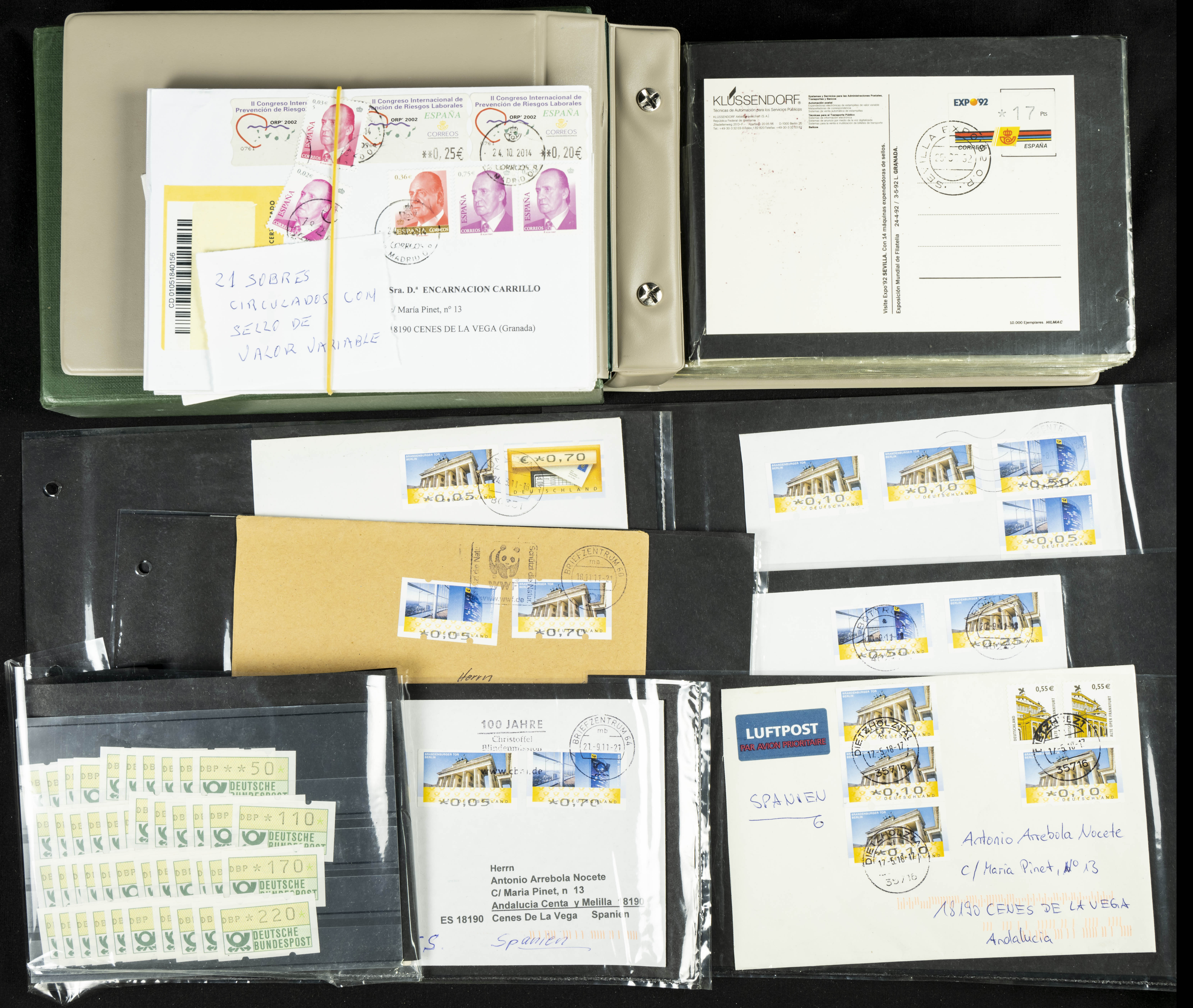 ★★/(1979ca). Collection of loose stamps and complete sets of new and used ATM postage labels of various types, including over ninety stamped letters, some foreign. TO BE EXAMINED.