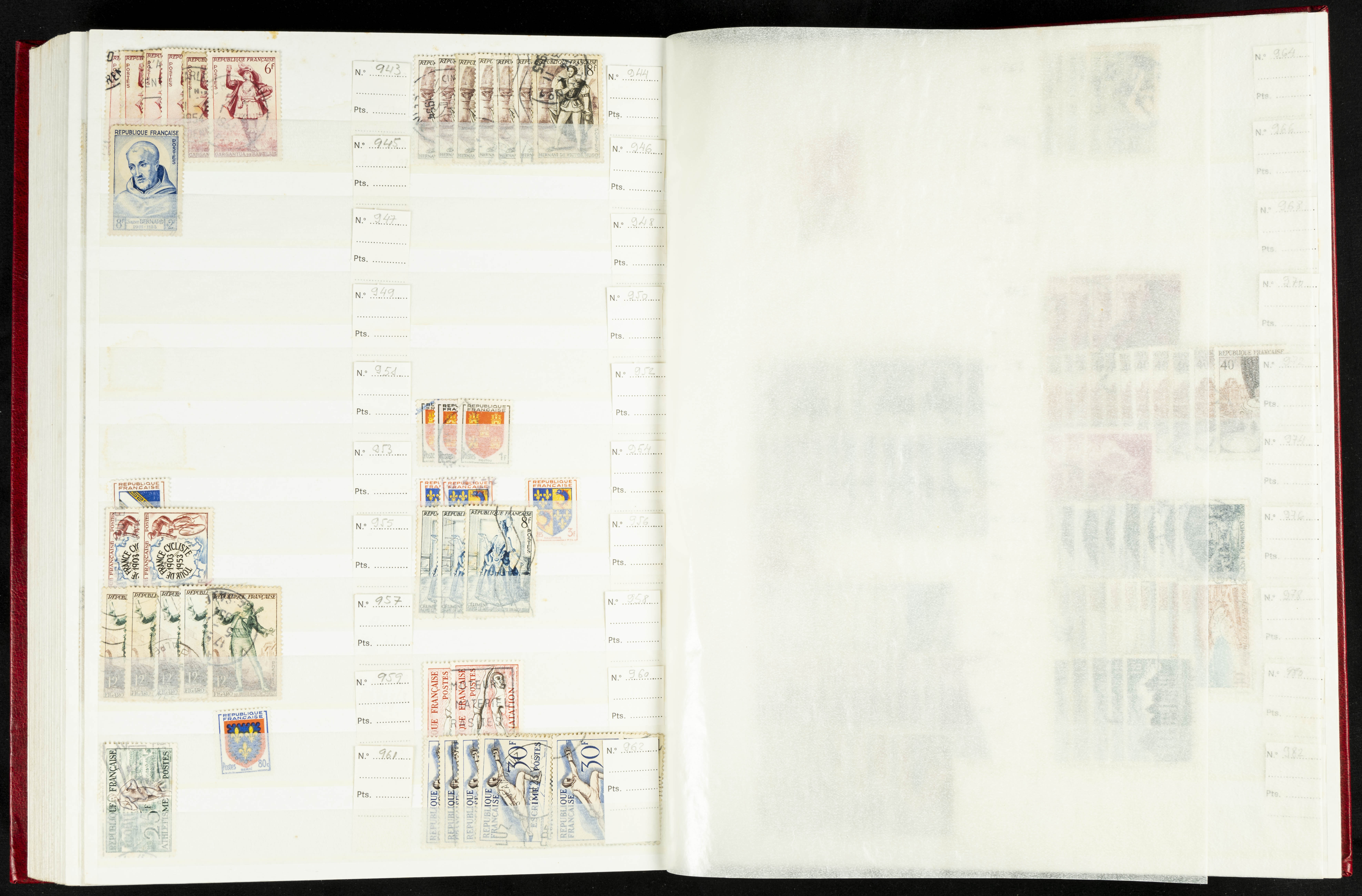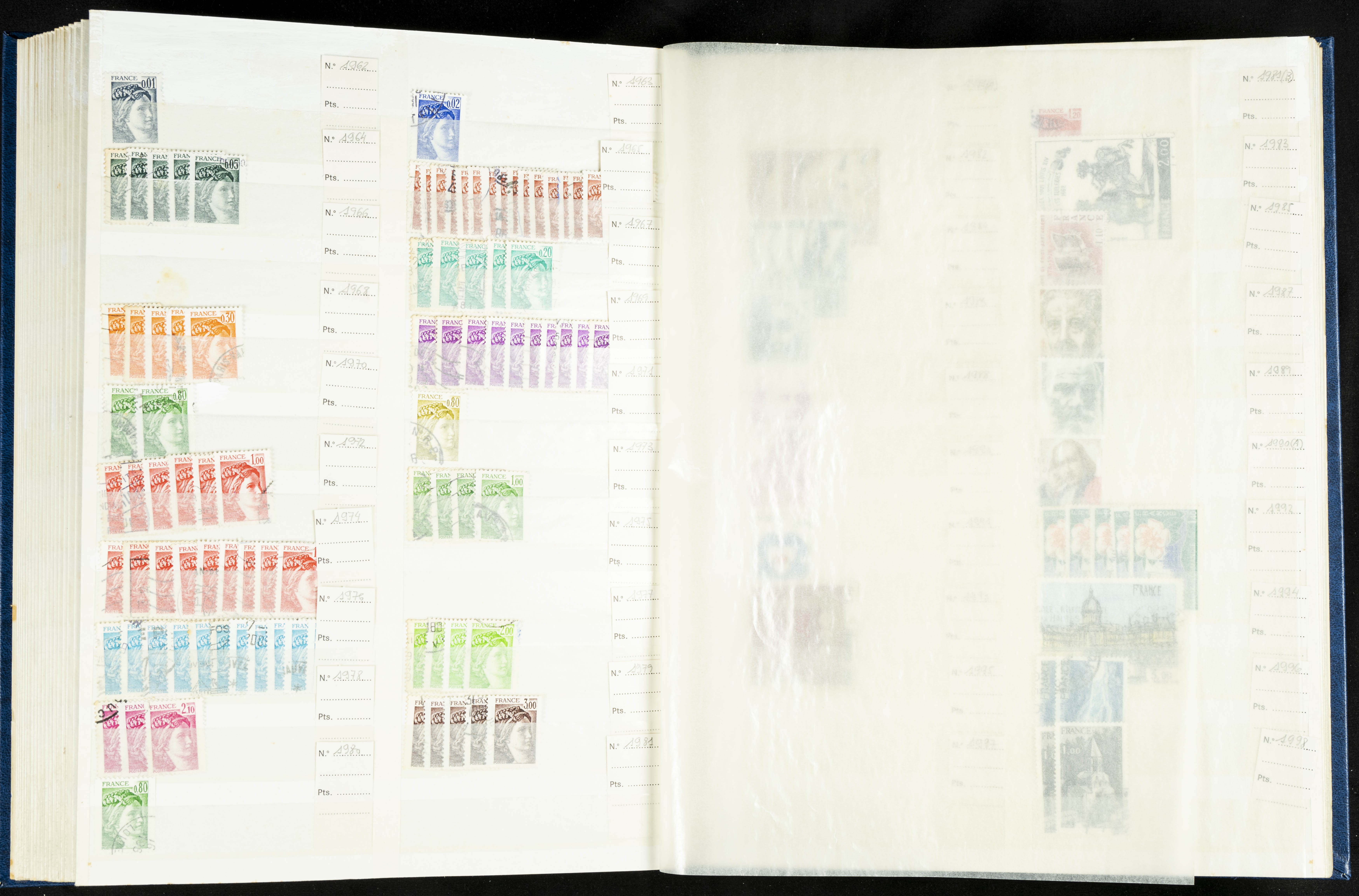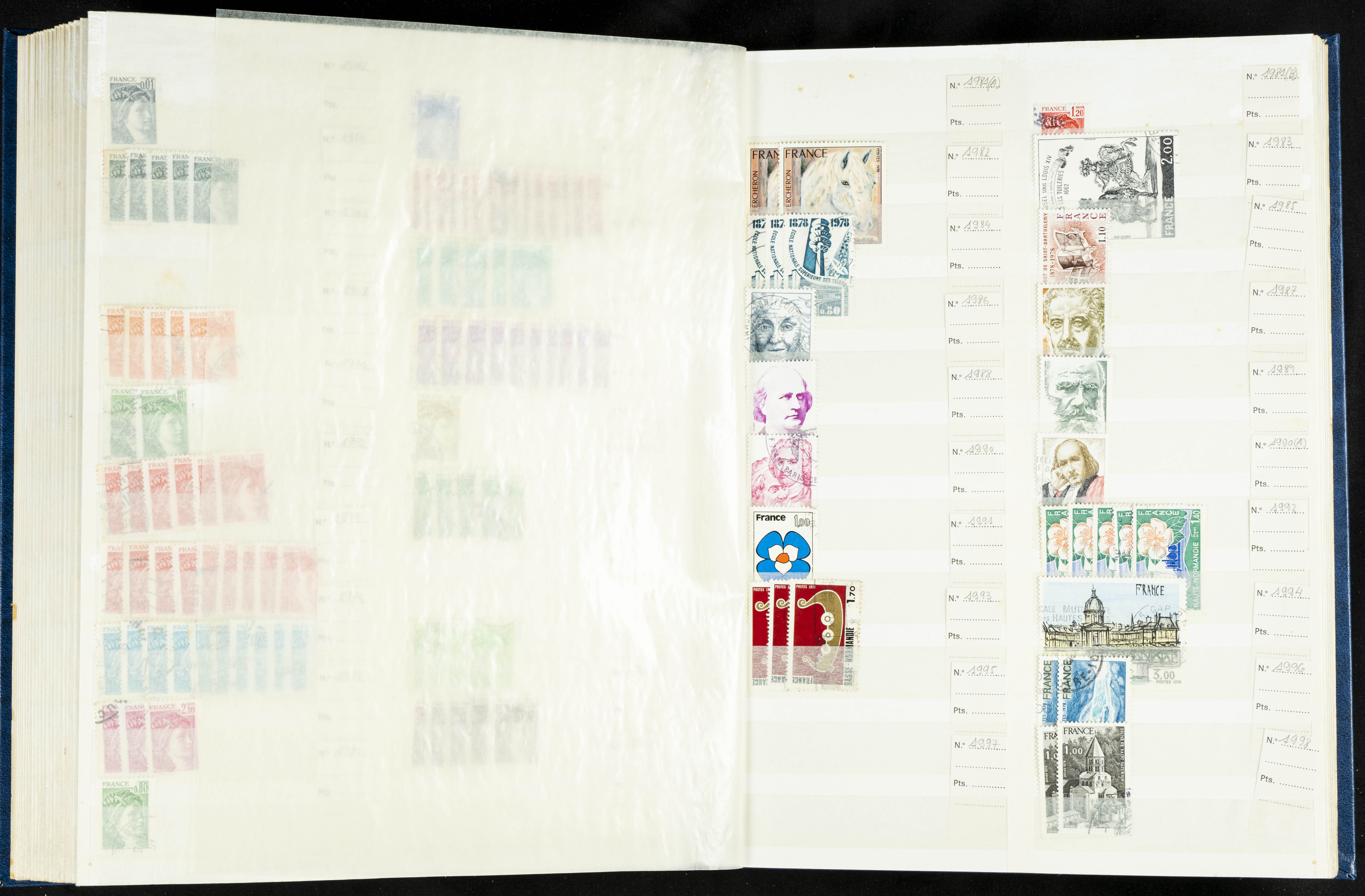 English (1860ca). Stock of complete French stamps and series from 1860 to 1998, used (mounted in albums and with the Yvert catalog number indicated). TO BE EXAMINED.