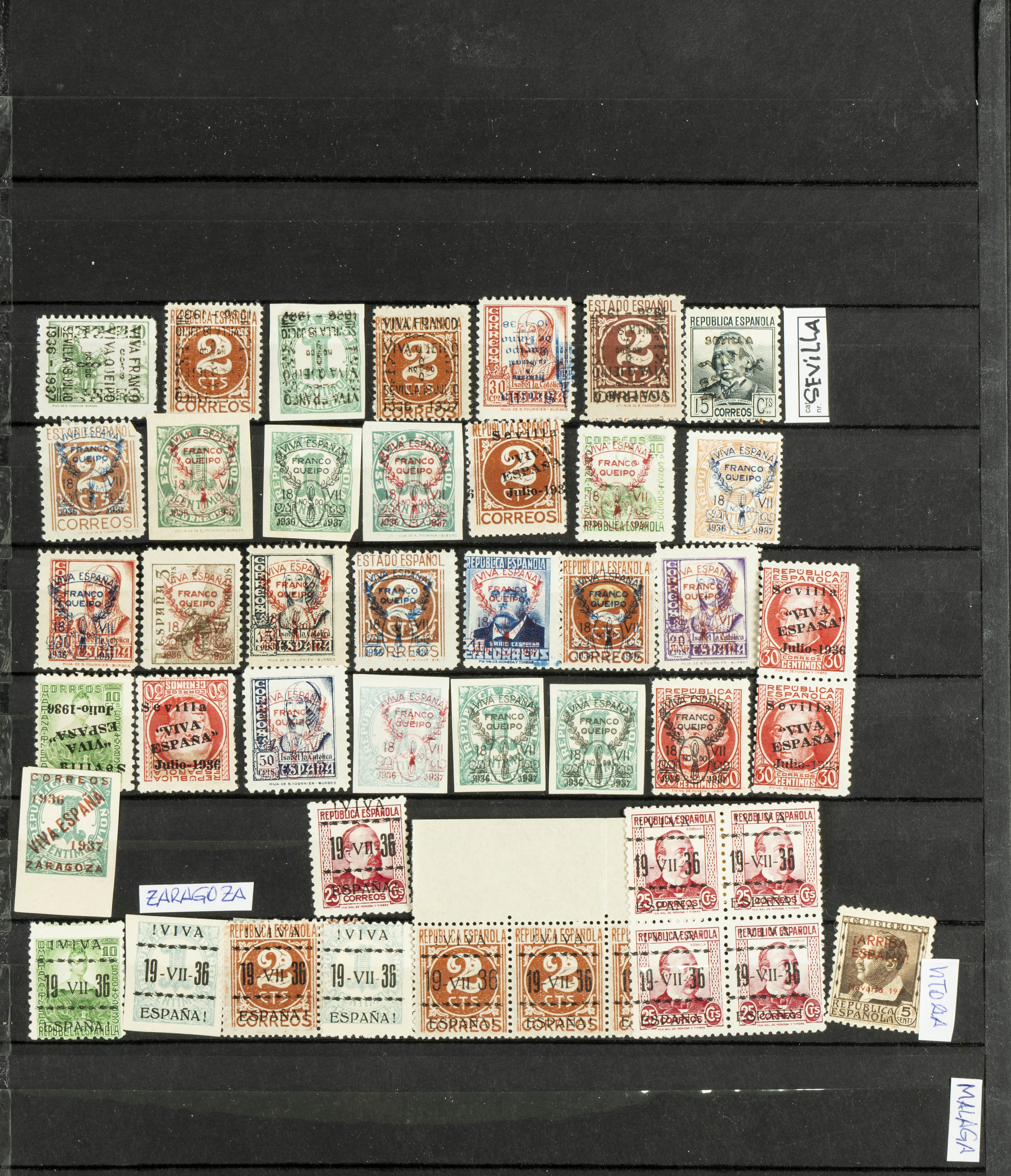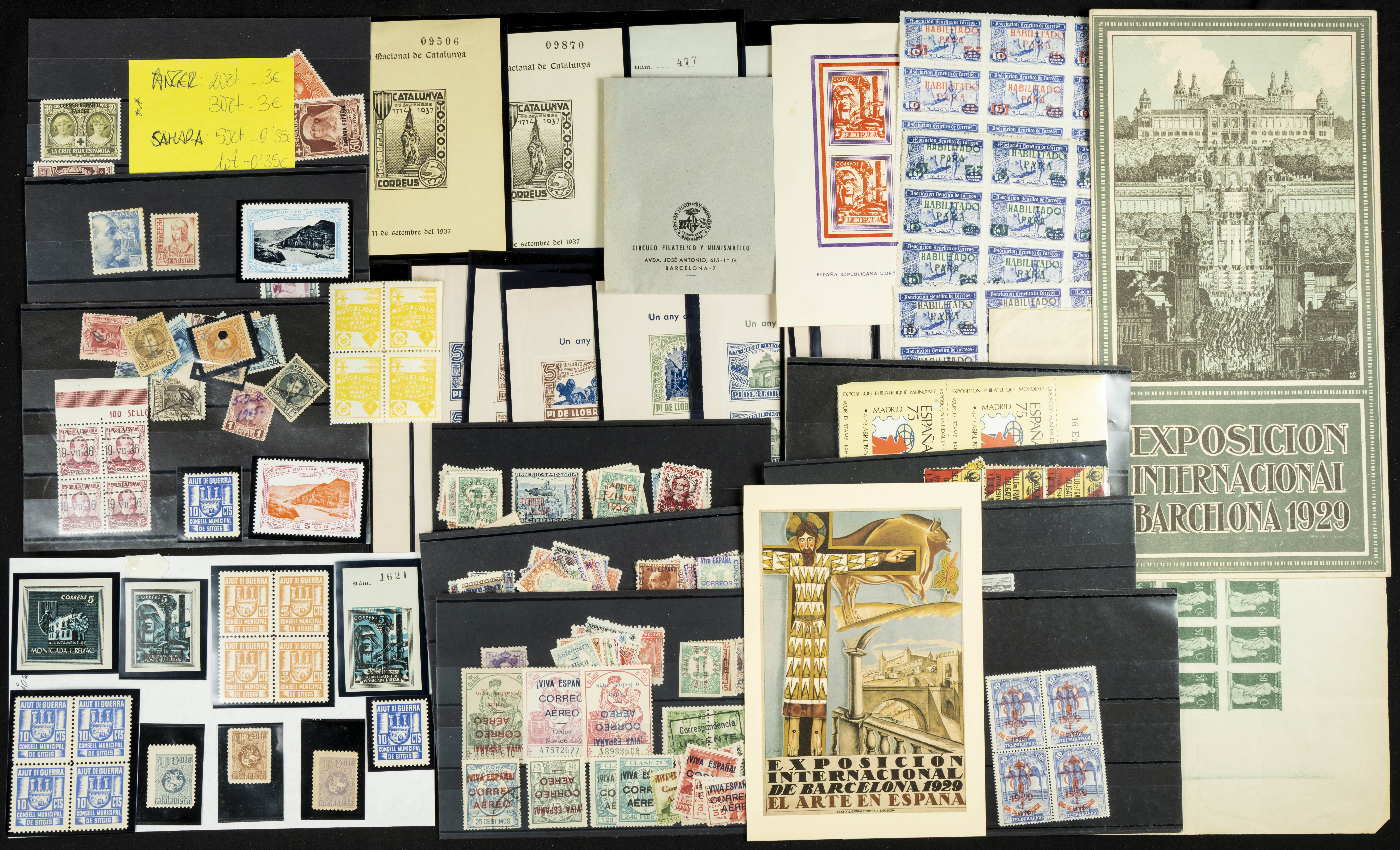 English ★/(★)(1937ca). Interesting collection of hundreds of Spanish and foreign vignettes, mostly from exhibitions and tourism, including some revenue stamps, political vignettes, stamps from patriotic issues, and some local charity stamps. TO BE EXAMINED.