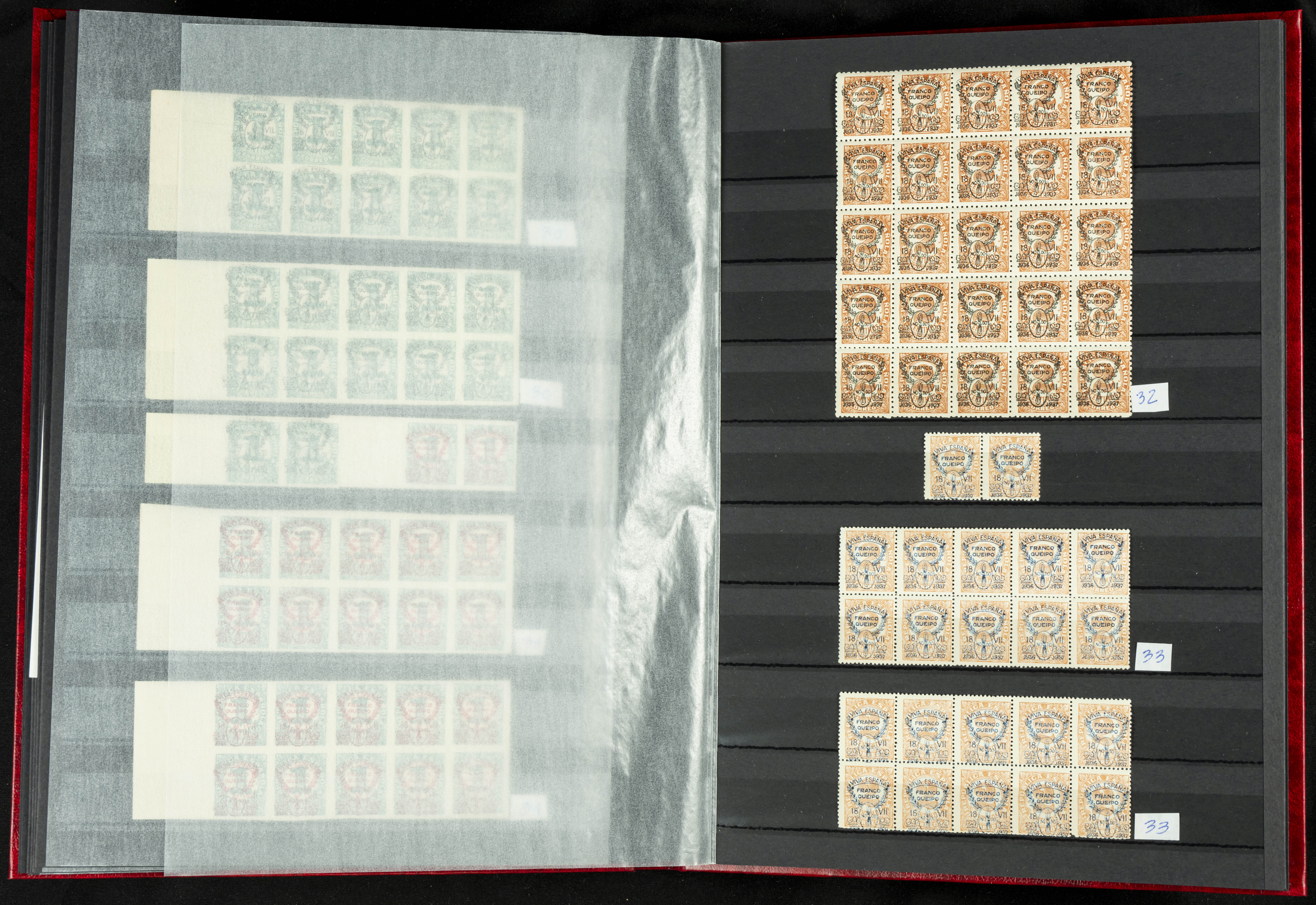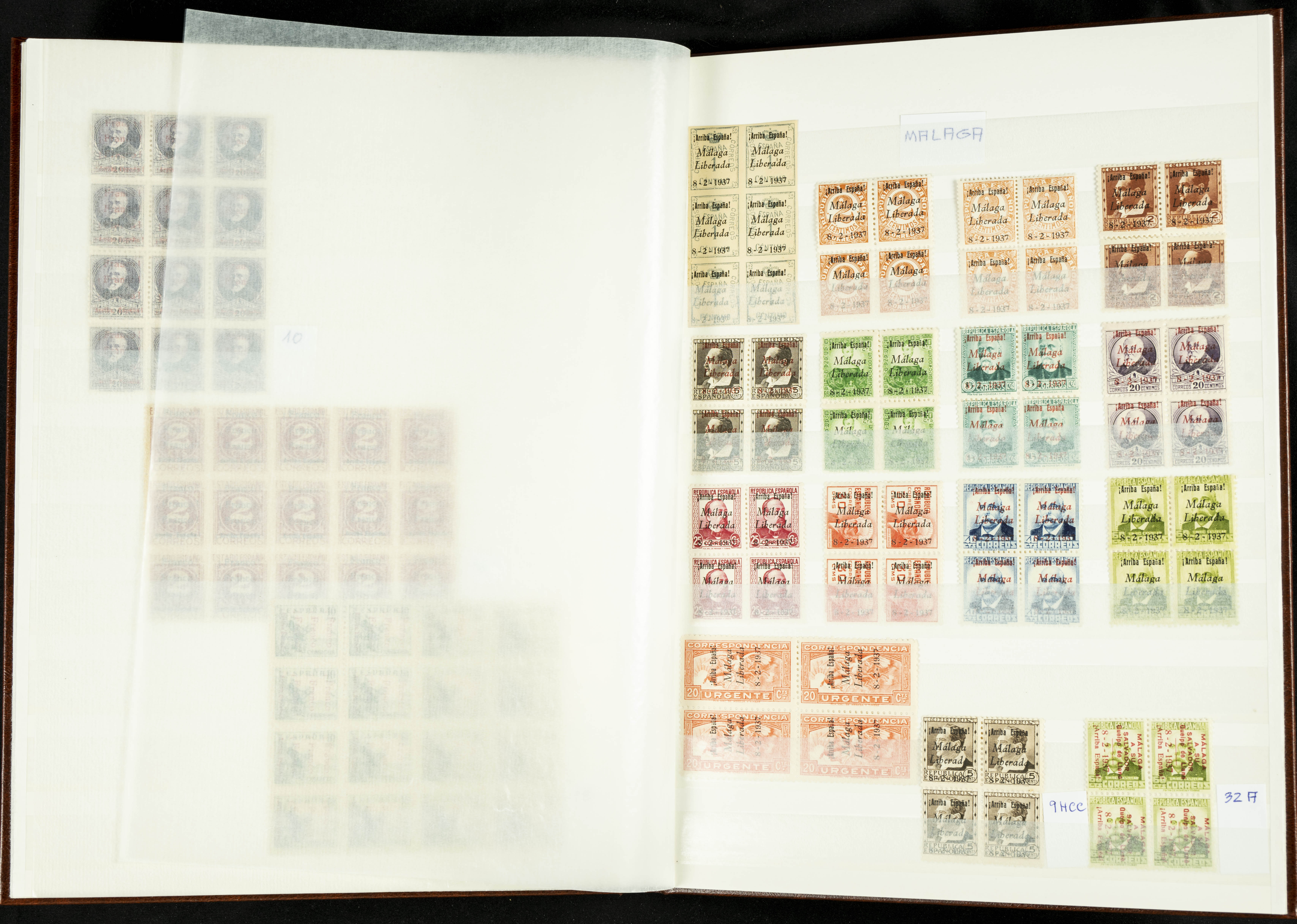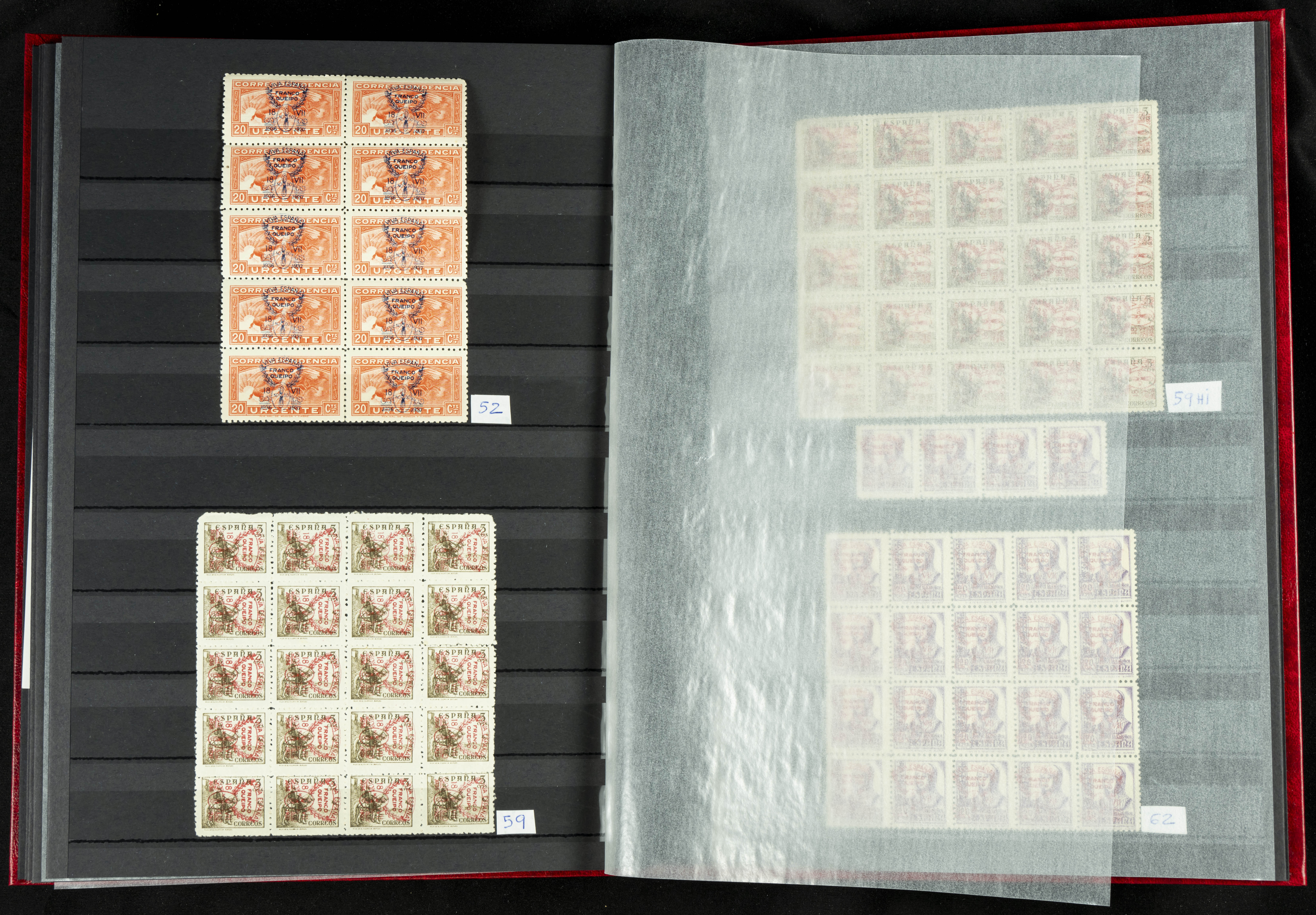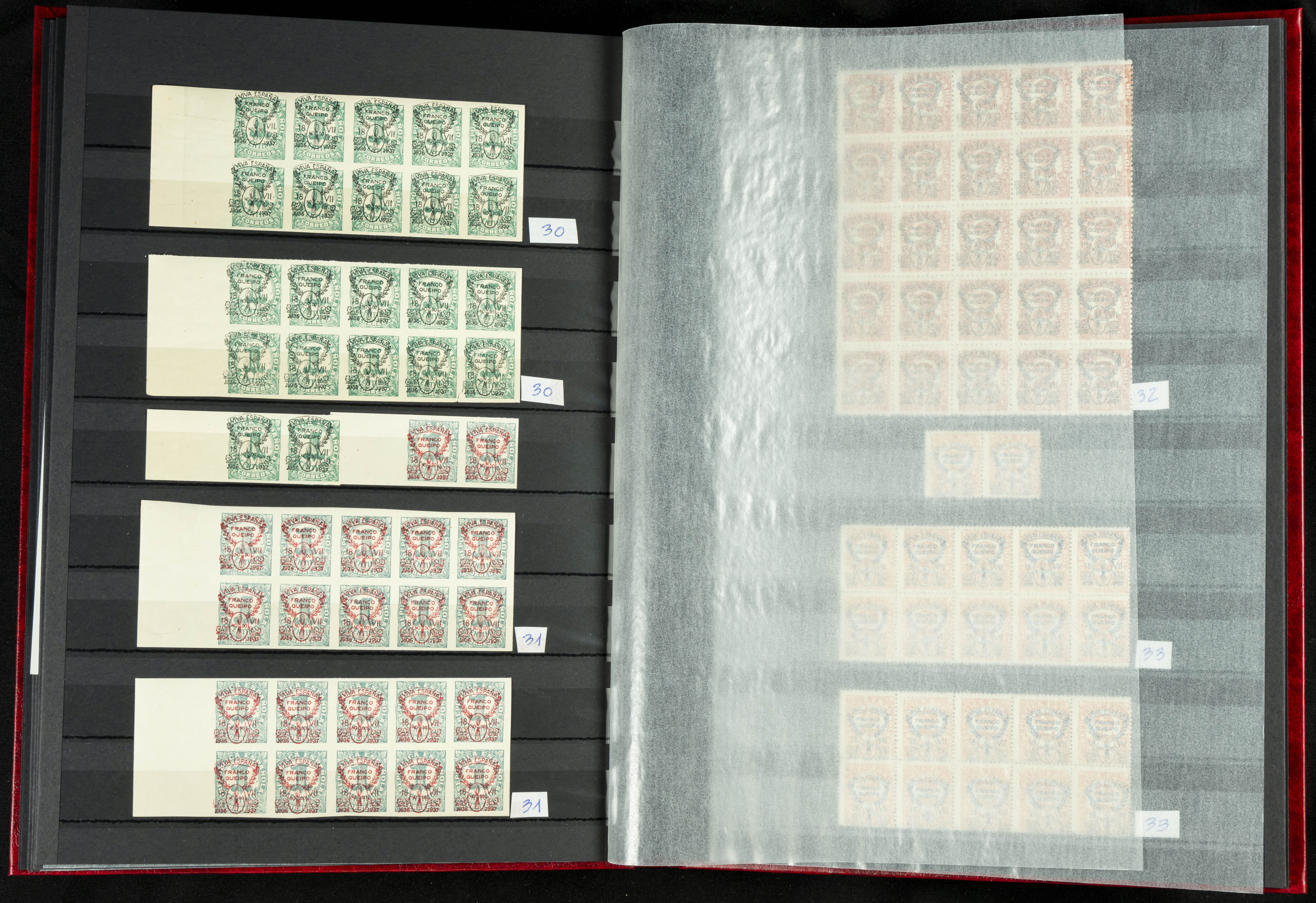 English ★★/★(1937ca). Beautiful collection of Patriotic Local Issues, in mint condition with and without hinges, including varieties, large blocks, etc. (various certificates included). TO BE EXAMINED.