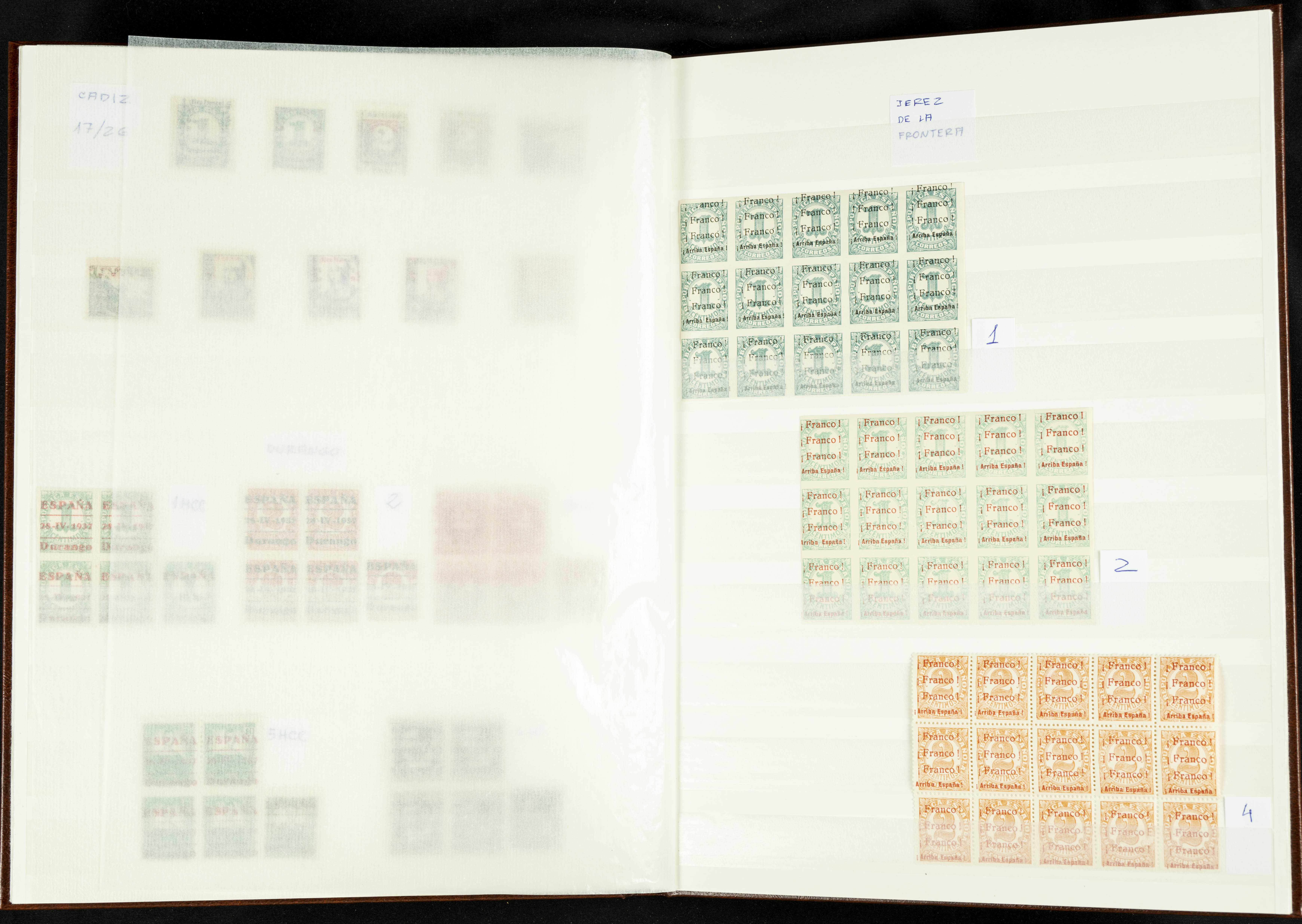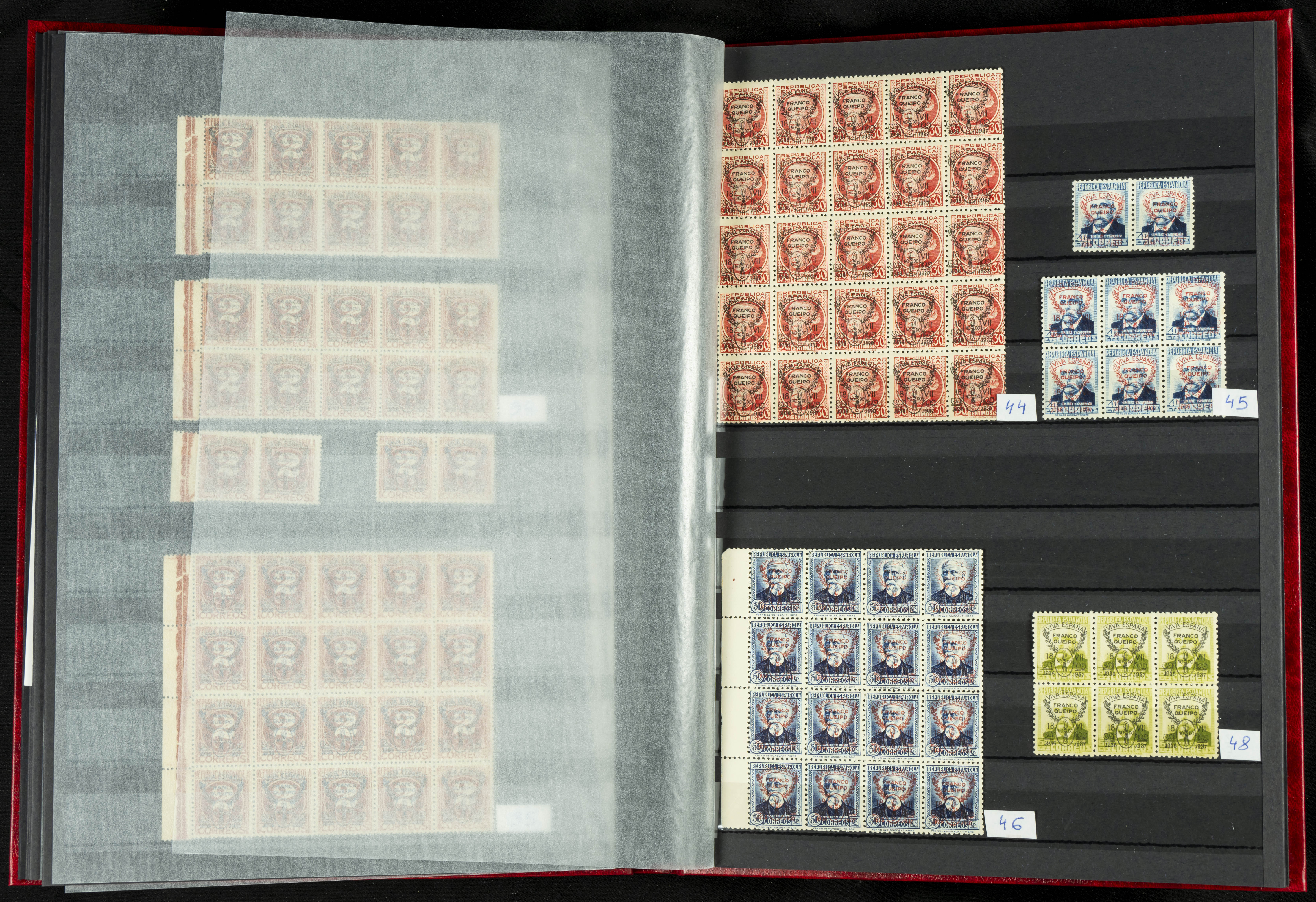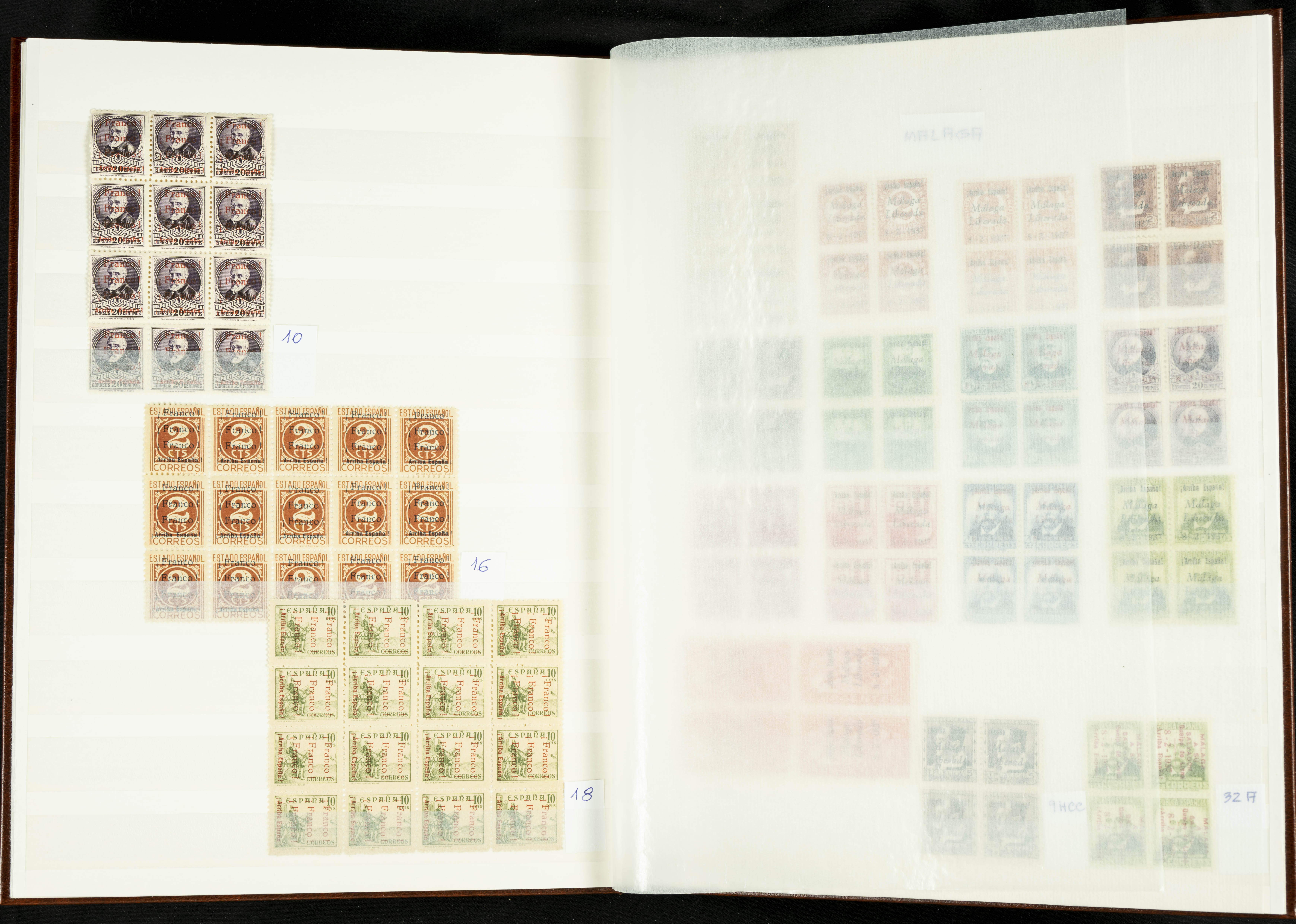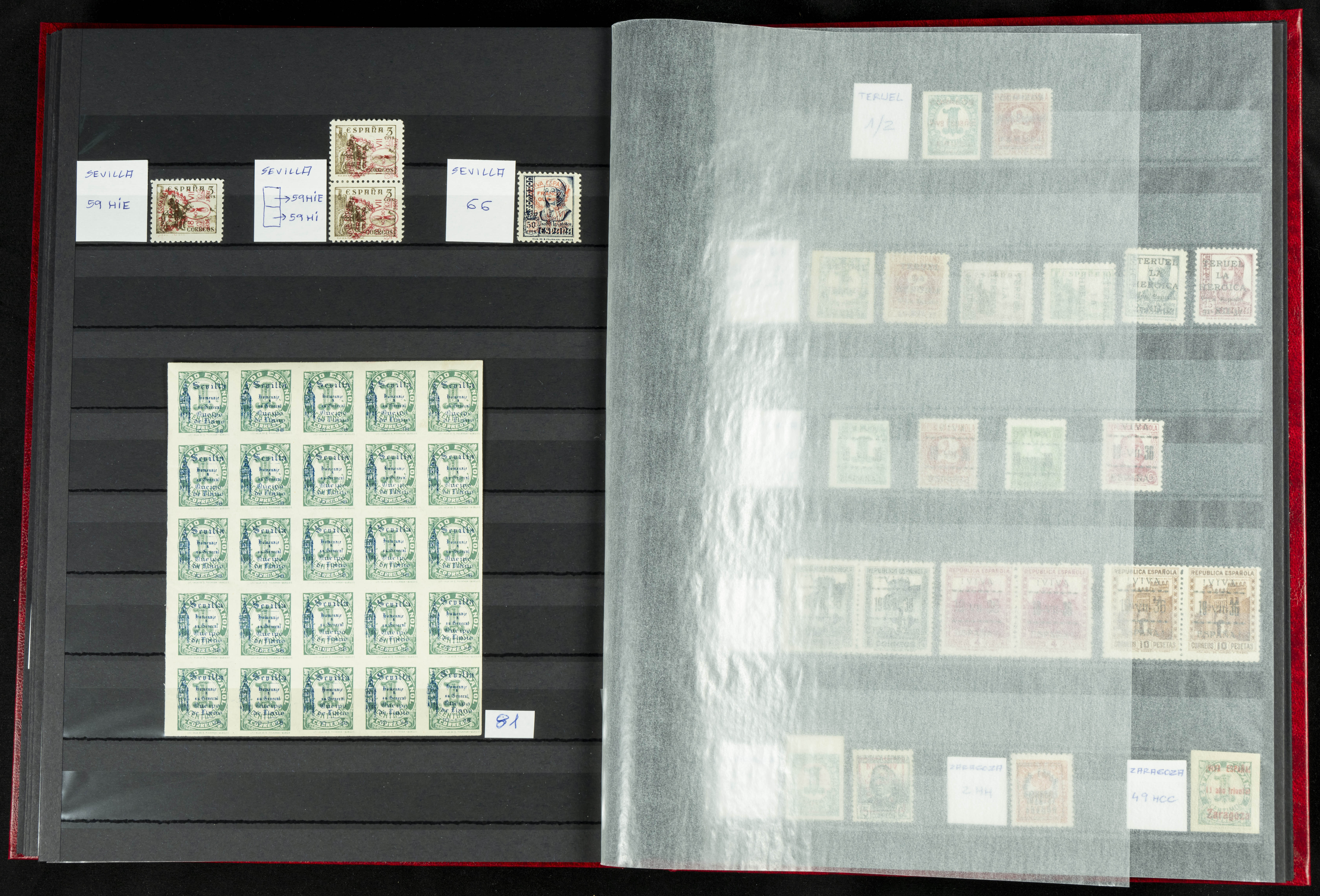 English ★★/★(1937ca). Beautiful collection of Patriotic Local Issues, in mint condition with and without hinges, including varieties, large blocks, etc. (various certificates included). TO BE EXAMINED.