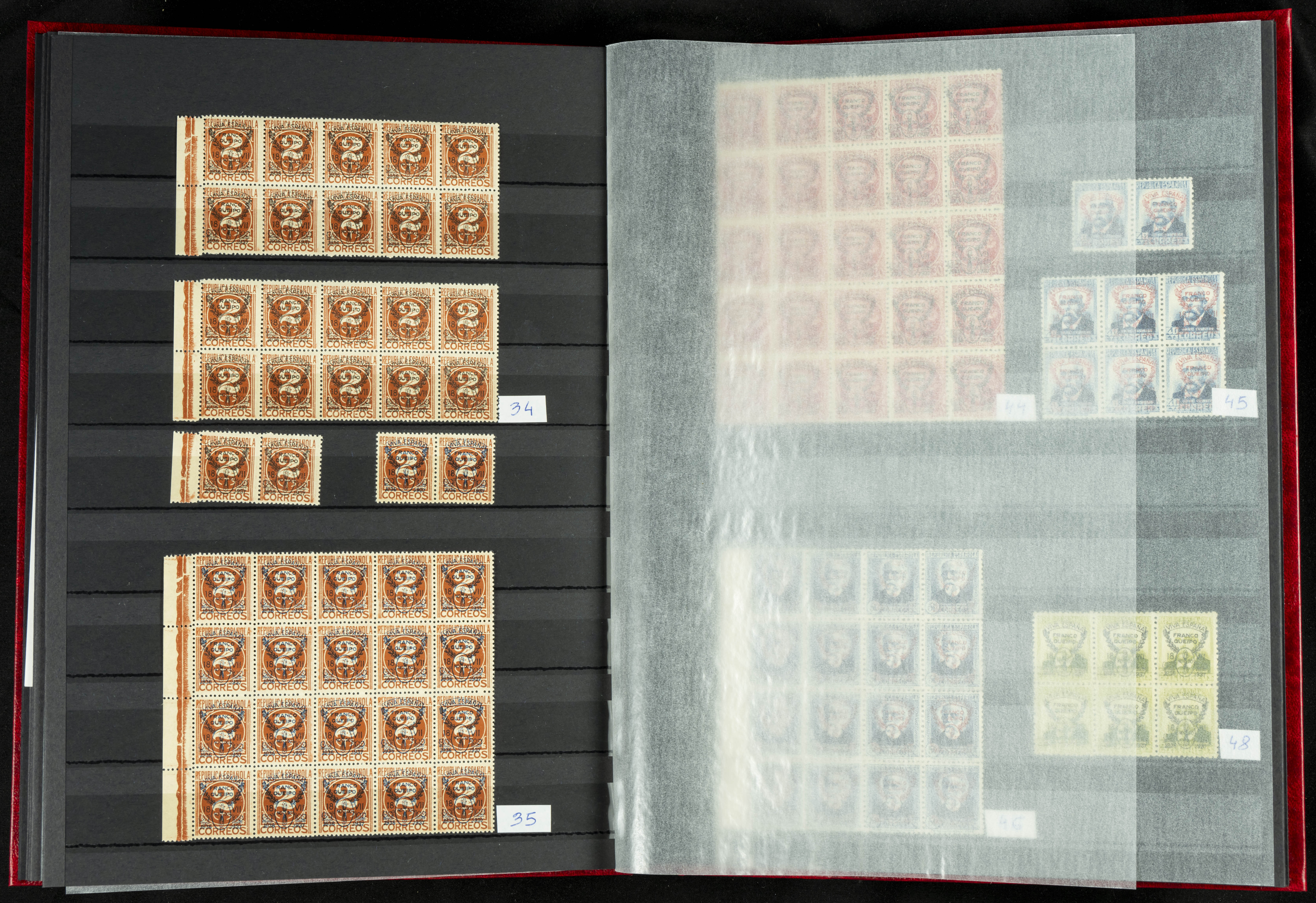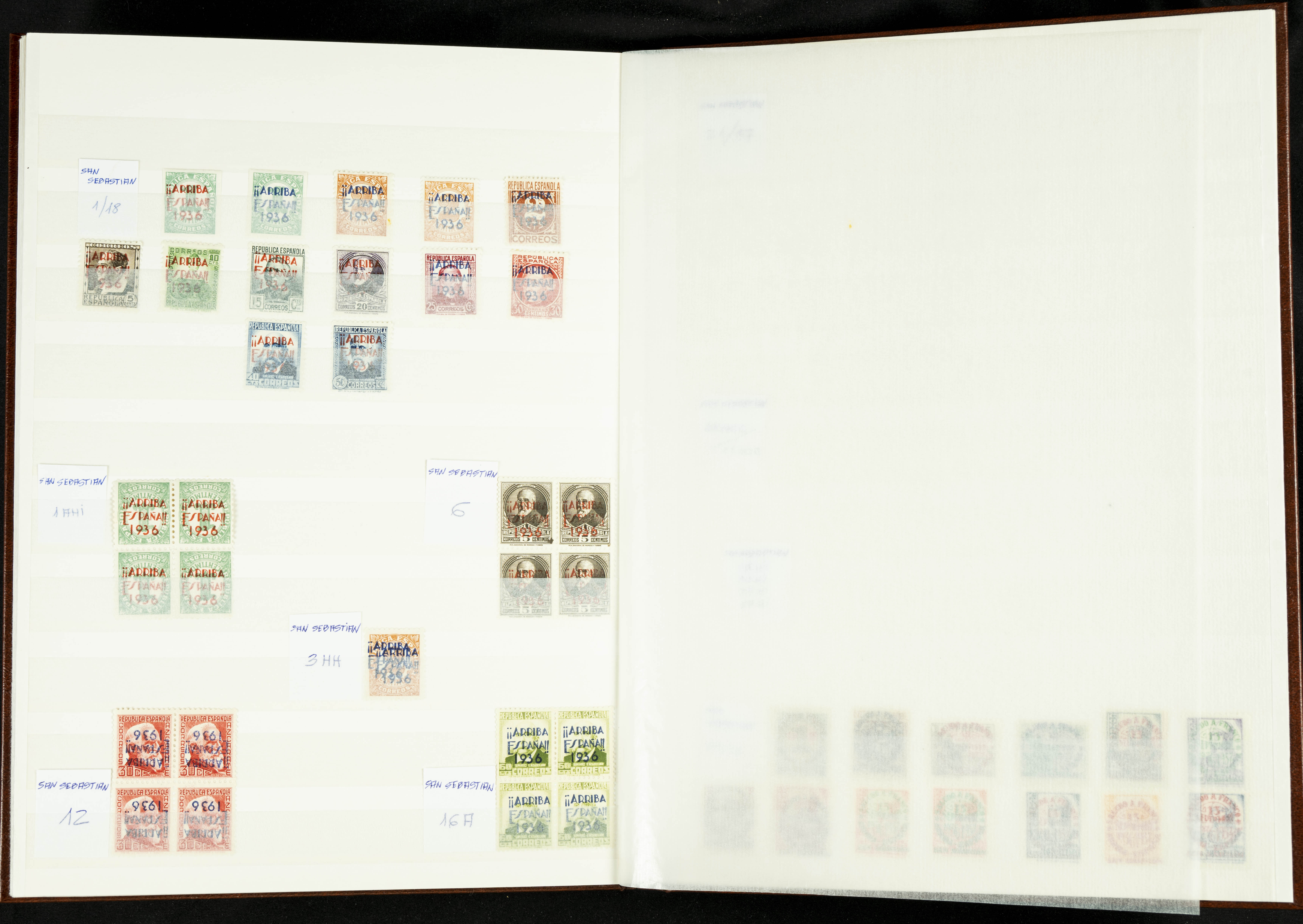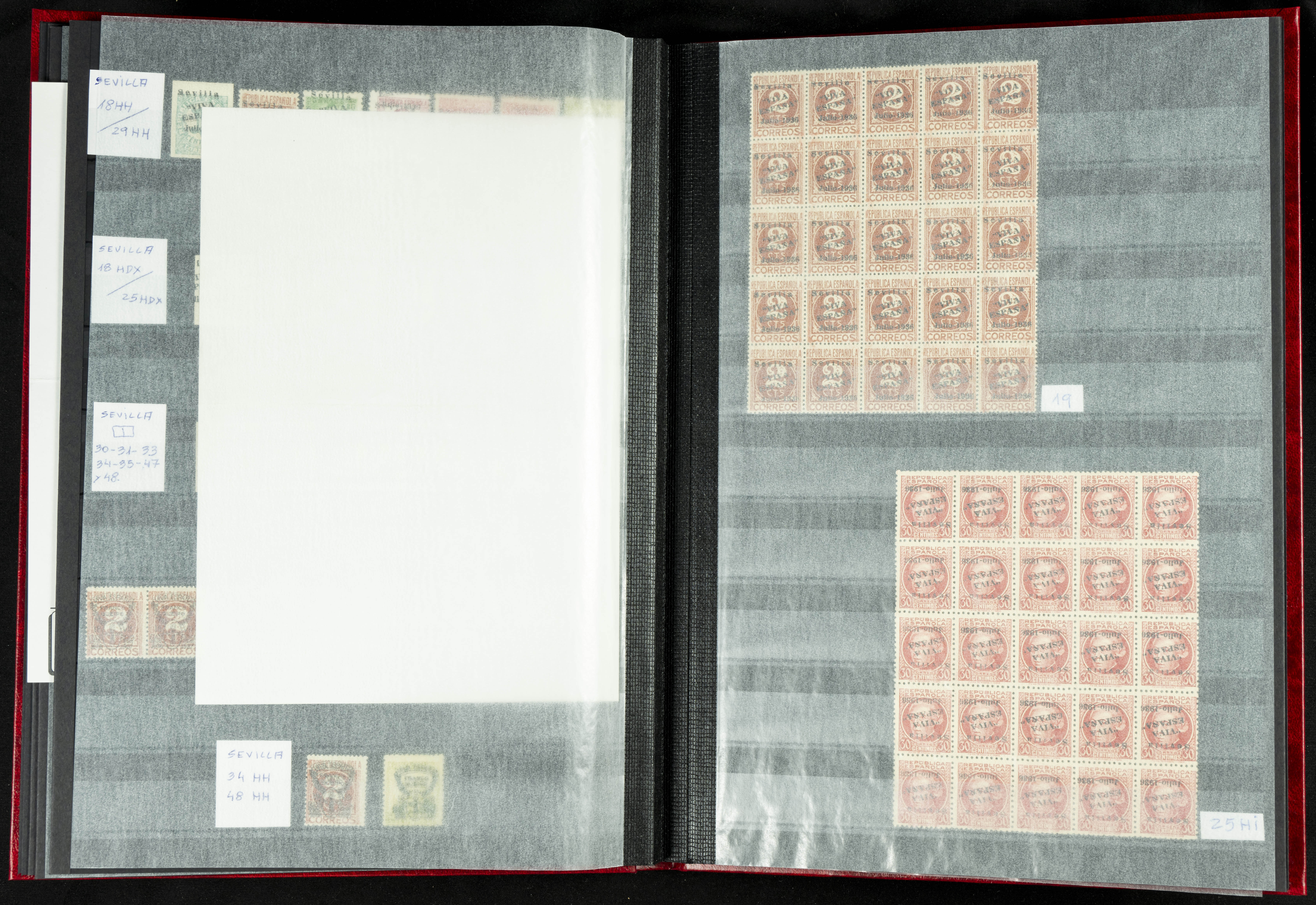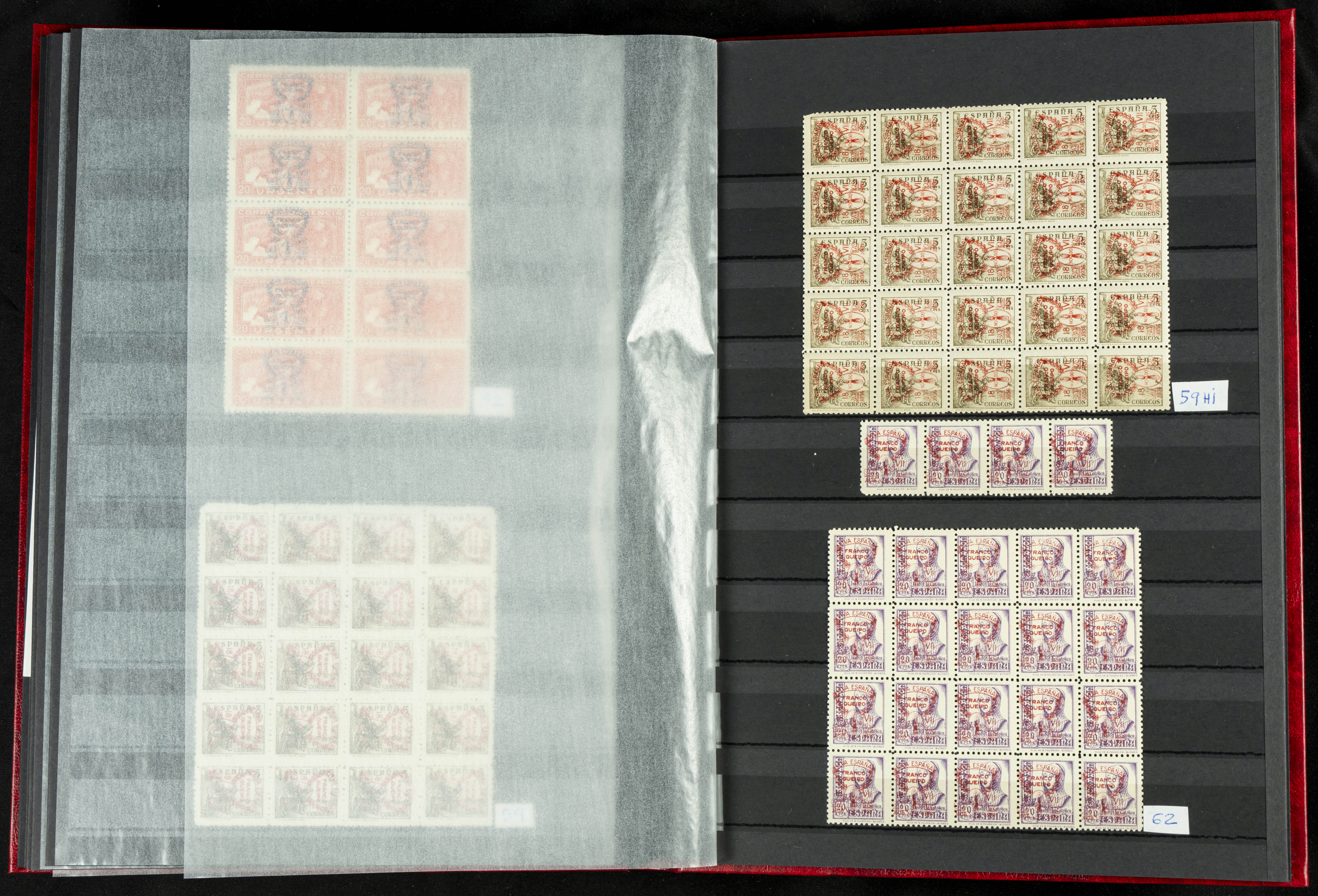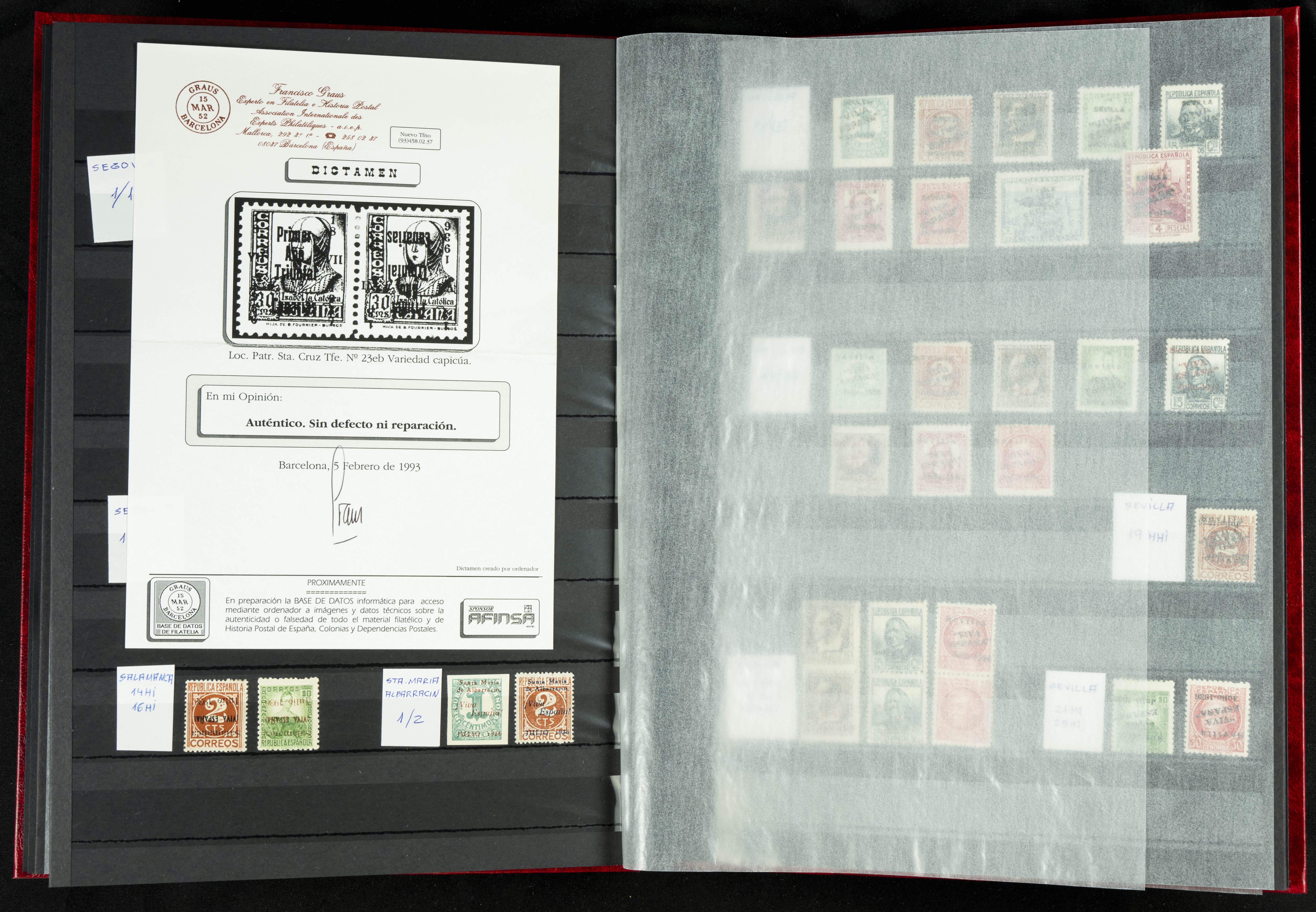 English ★★/★(1937ca). Beautiful collection of Patriotic Local Issues, in mint condition with and without hinges, including varieties, large blocks, etc. (various certificates included). TO BE EXAMINED.