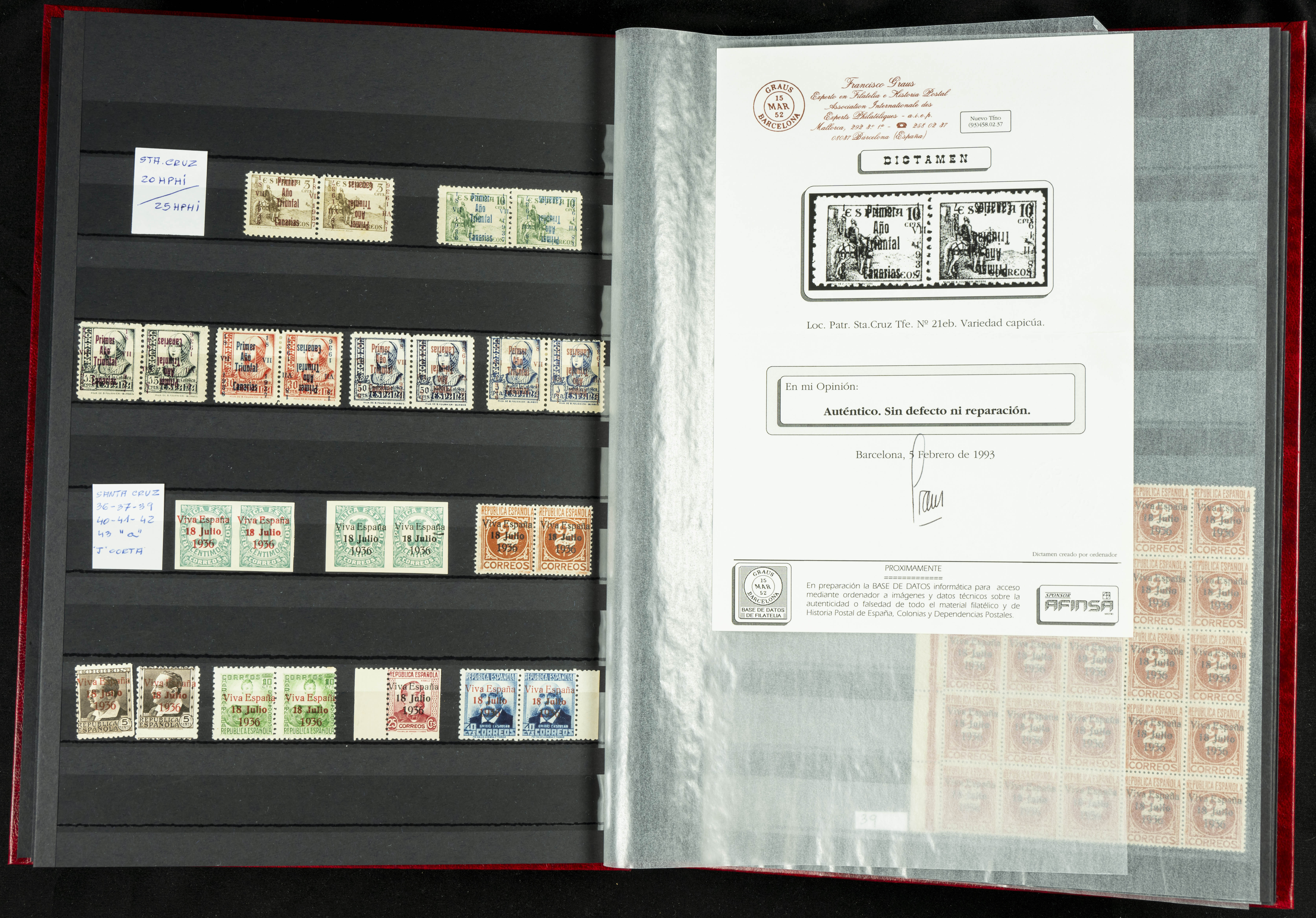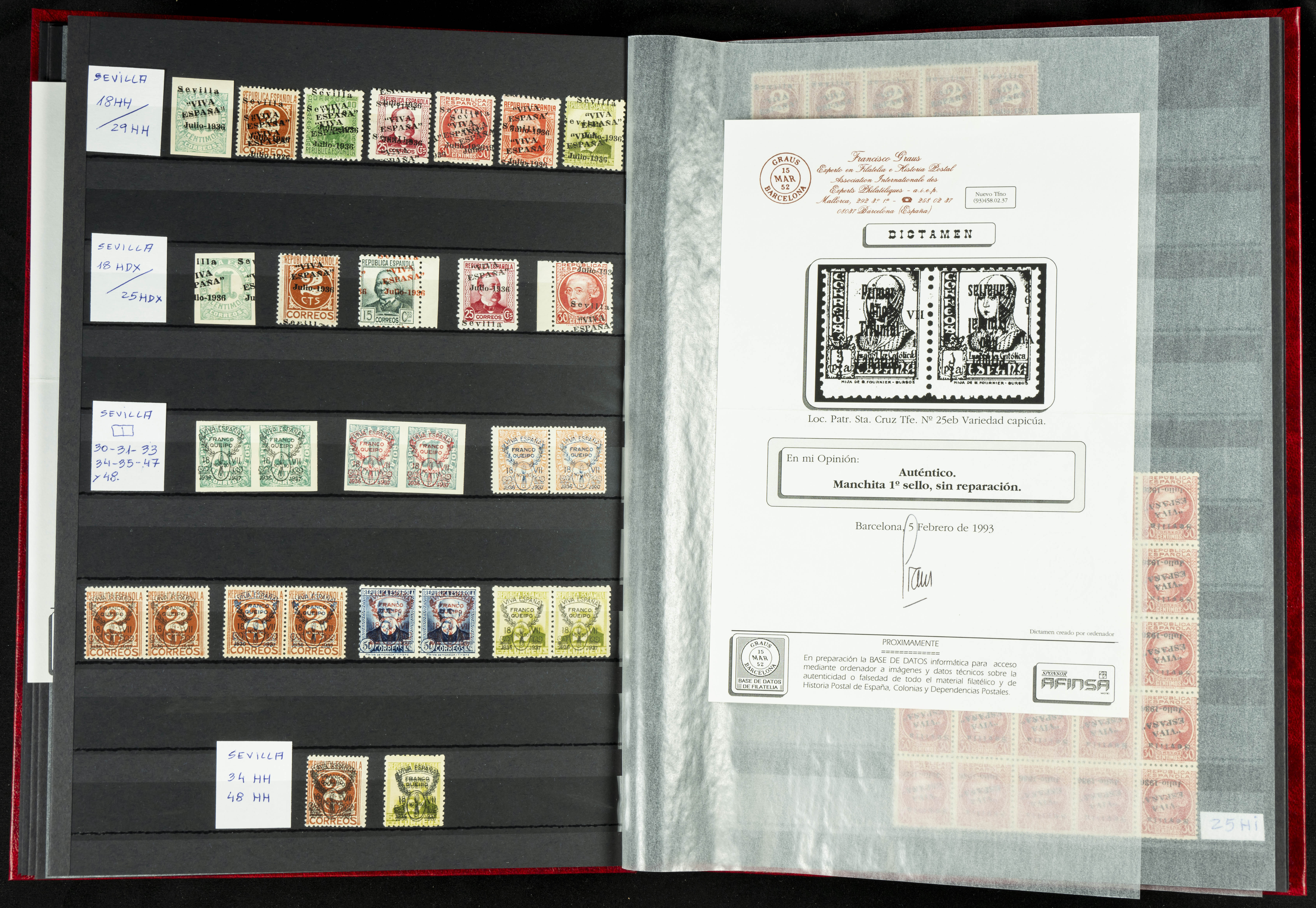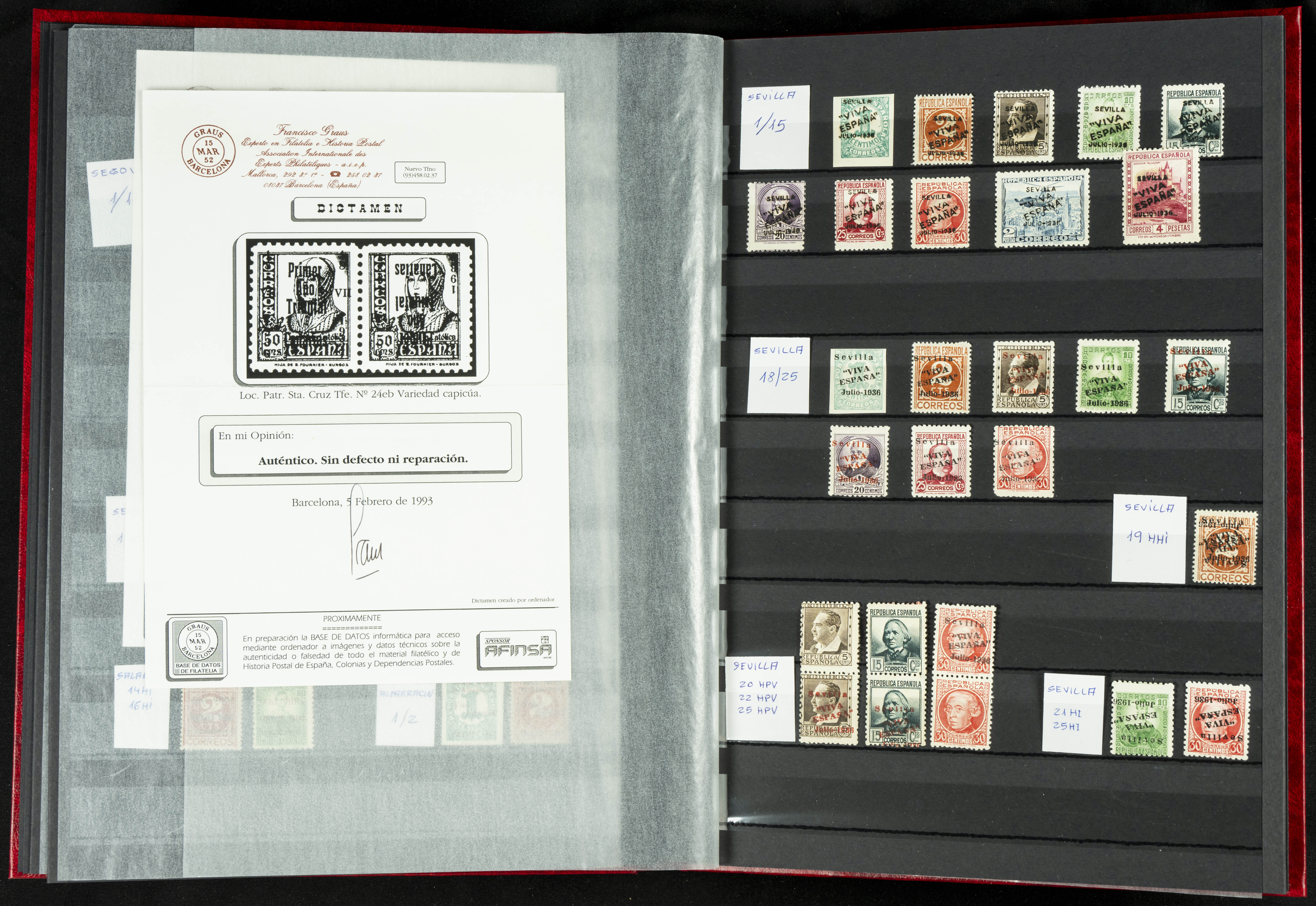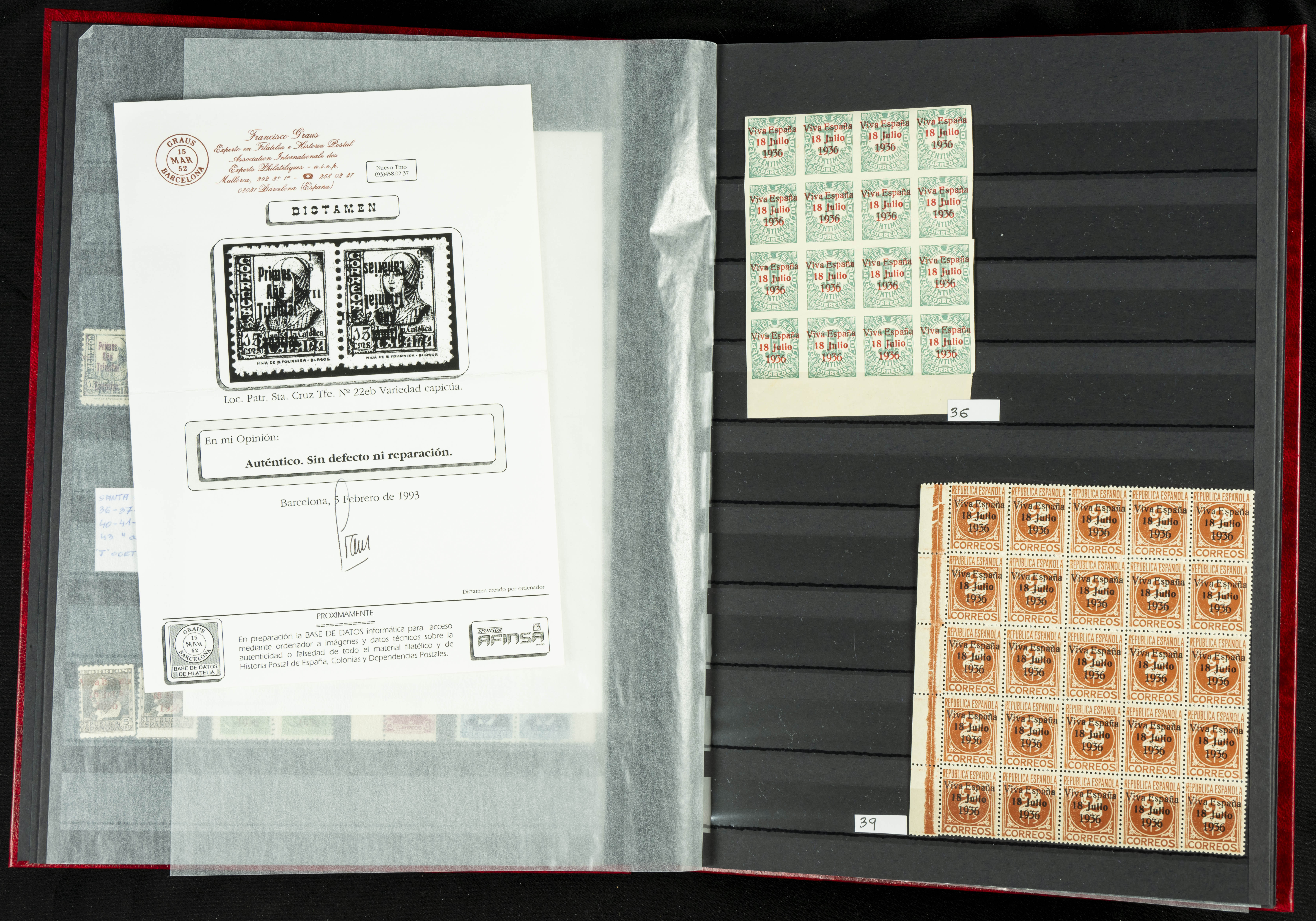 English ★★/★(1937ca). Beautiful collection of Patriotic Local Issues, in mint condition with and without hinges, including varieties, large blocks, etc. (various certificates included). TO BE EXAMINED.