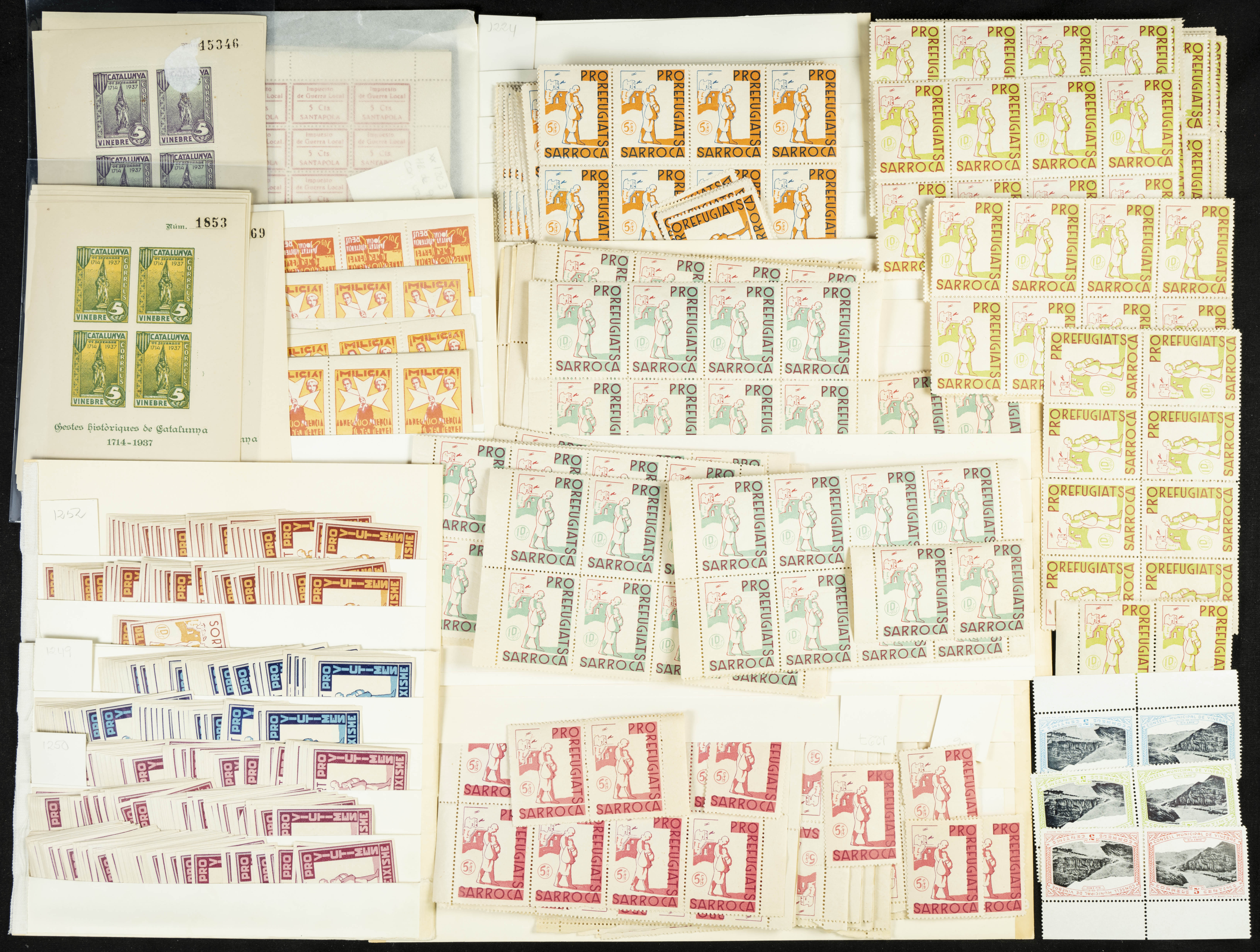 ★★/★(1936ca). Collection of hundreds of local charity stamps from various towns (Sarroca, Santa Pola, Roda, Sort, Santiago de la Espada, Sarral, Vinebre, Villanueva, Villacarlos, Vall de Vaó, Tortosa and Teulada), in mint condition and with numerous duplicates, including some varieties. TO BE EXAMINED.