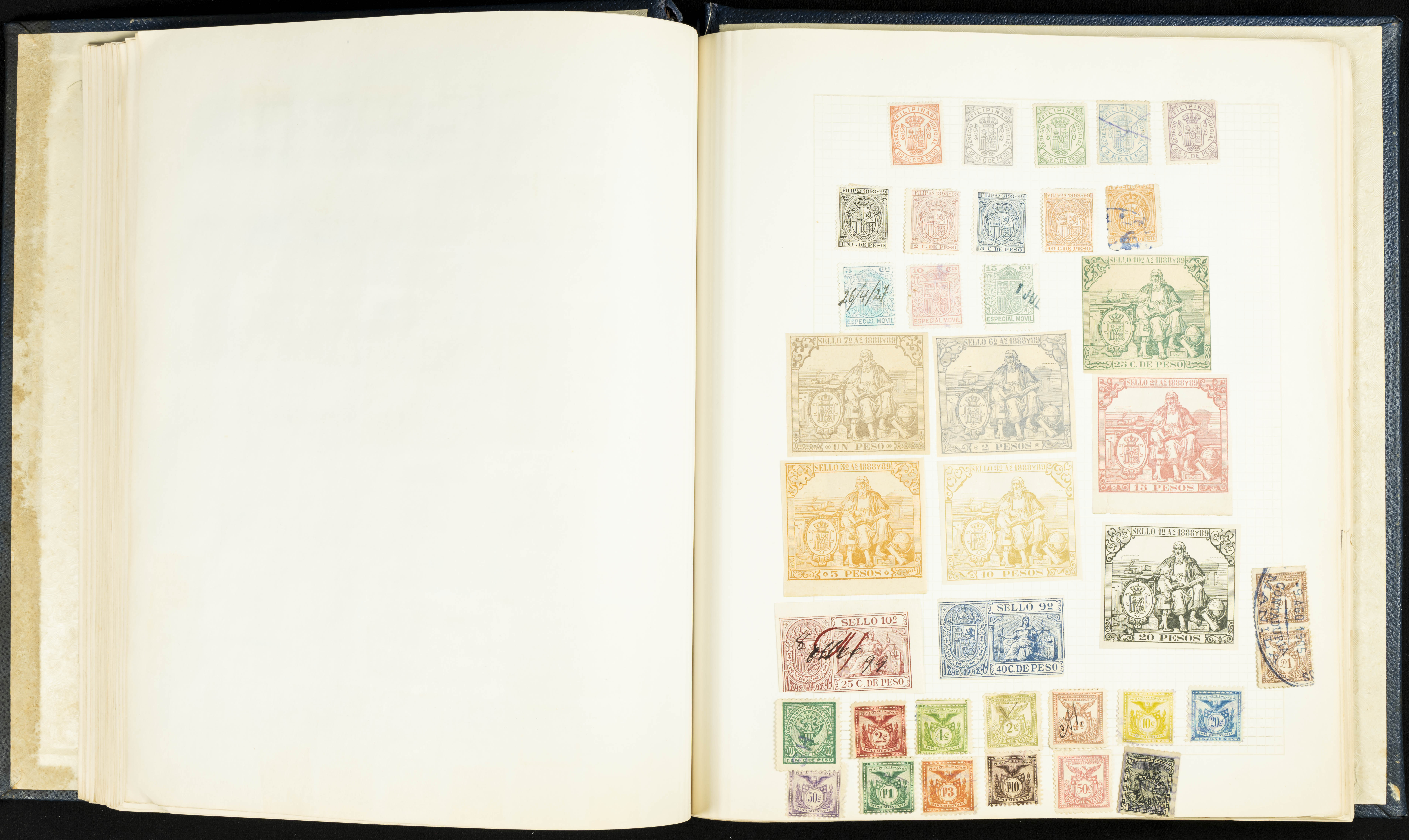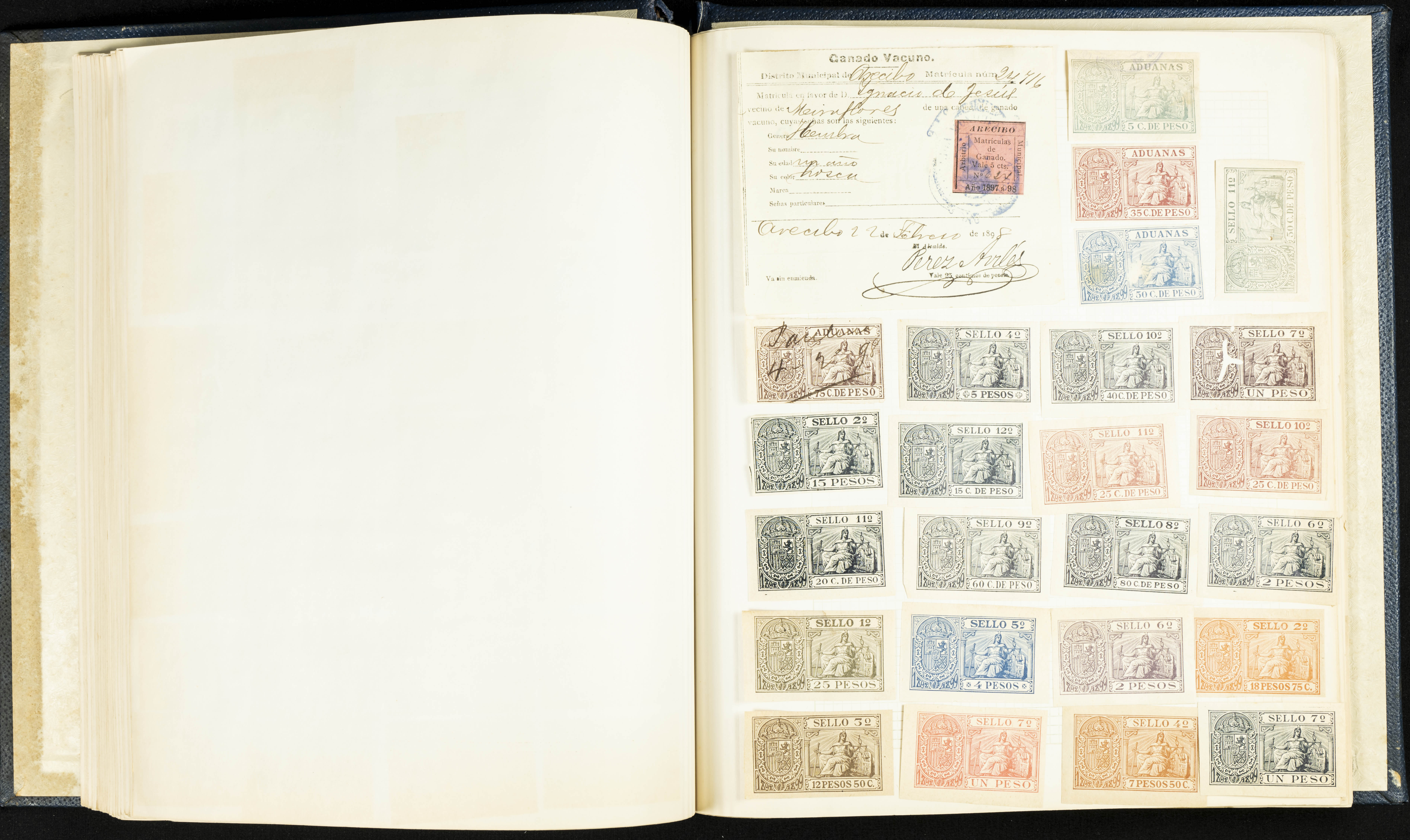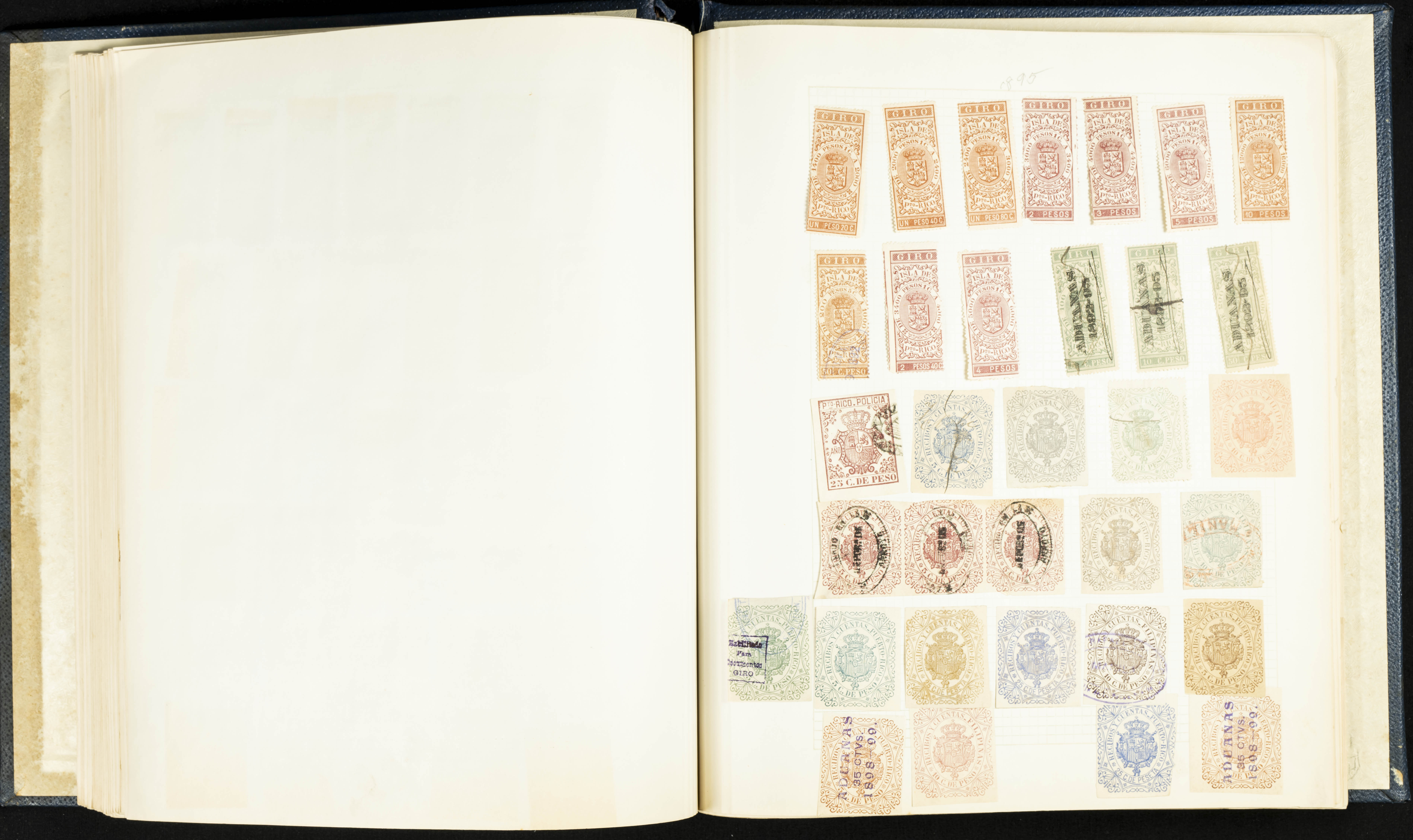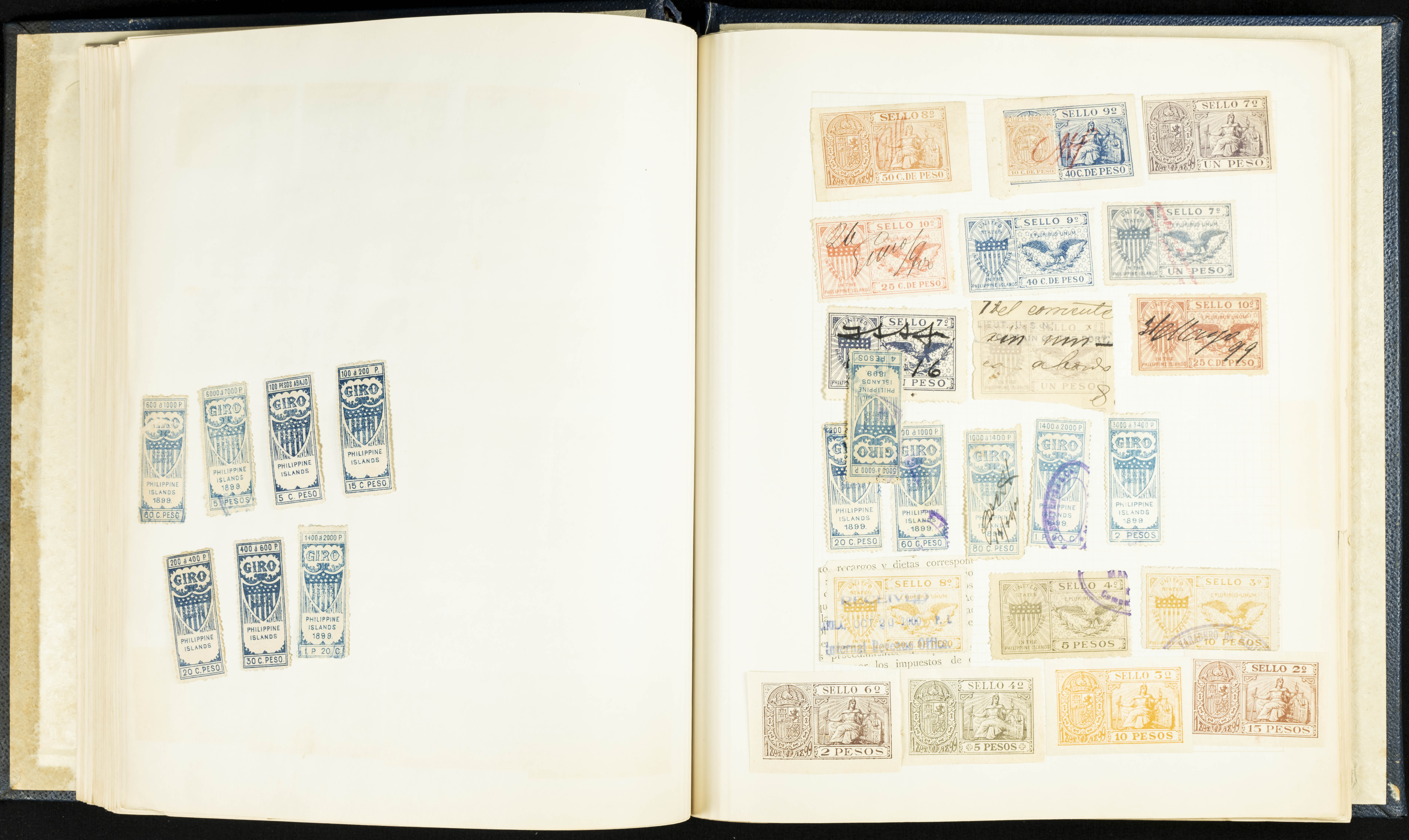 English ★/(1866ca). Interesting collection of revenue stamps from 1866 to 1898, including those from Cuba, the Philippines, and Puerto Rico, both mint and used, representing most sections as well as some from after the Spanish period. FOR EXAMINATION.