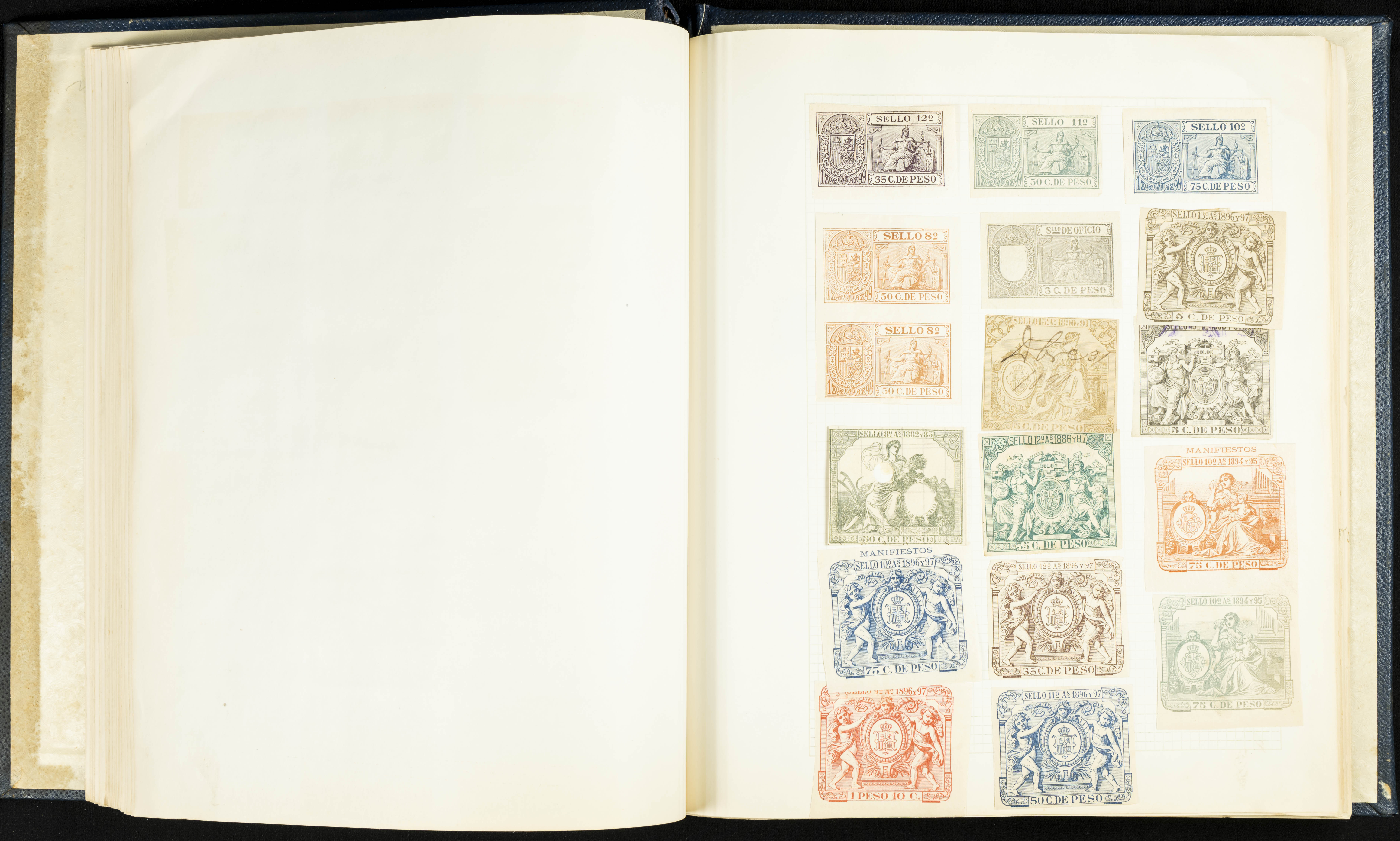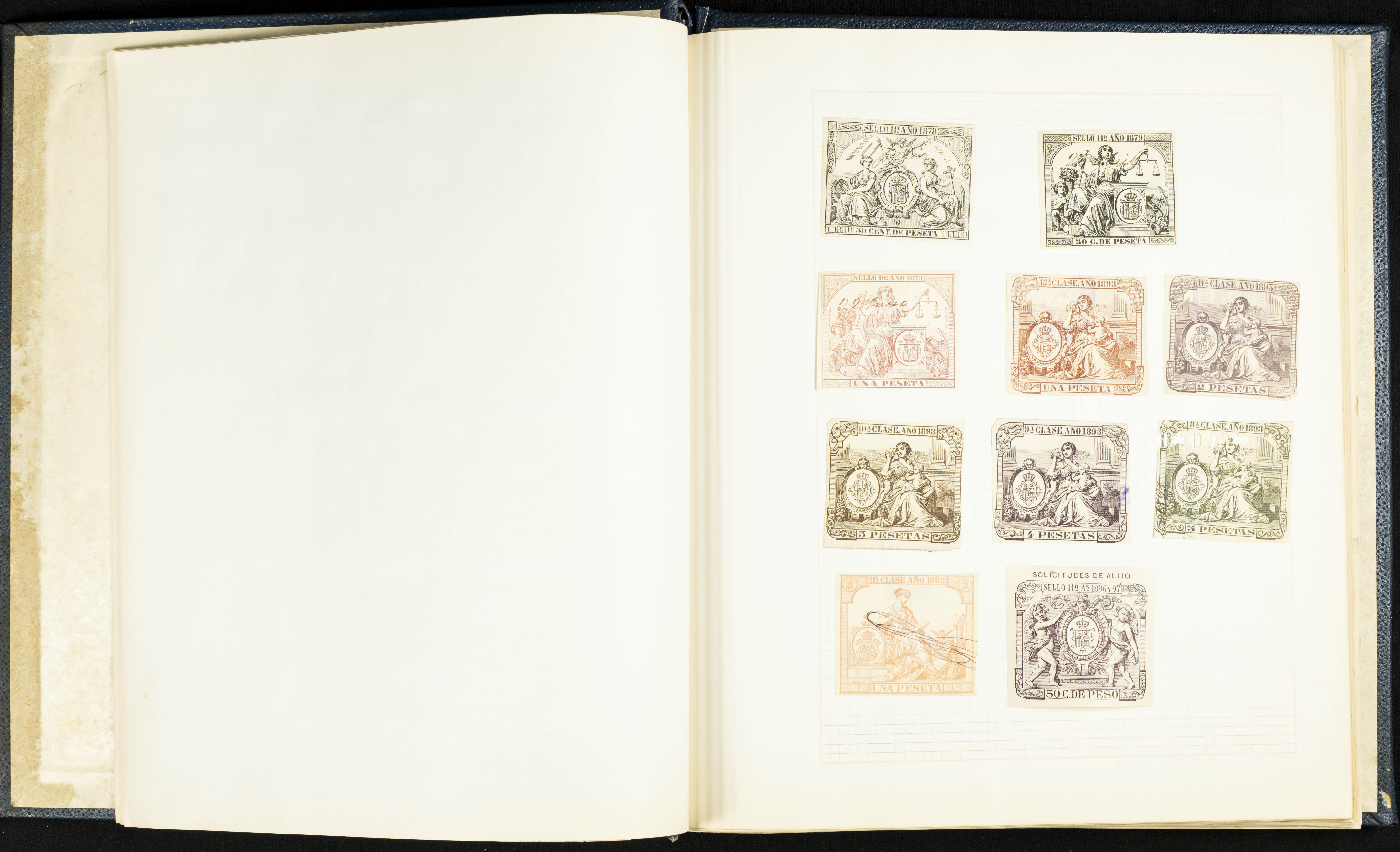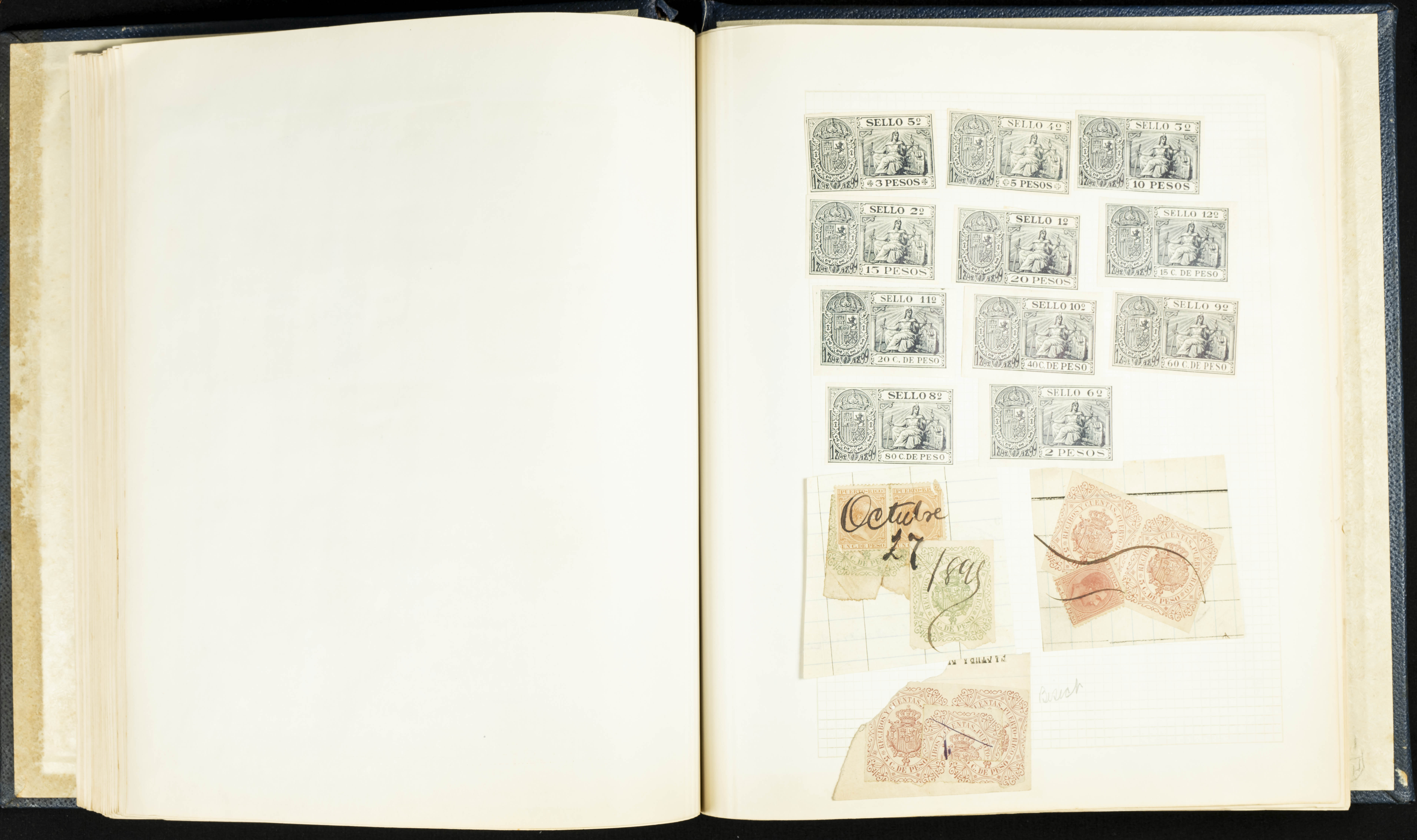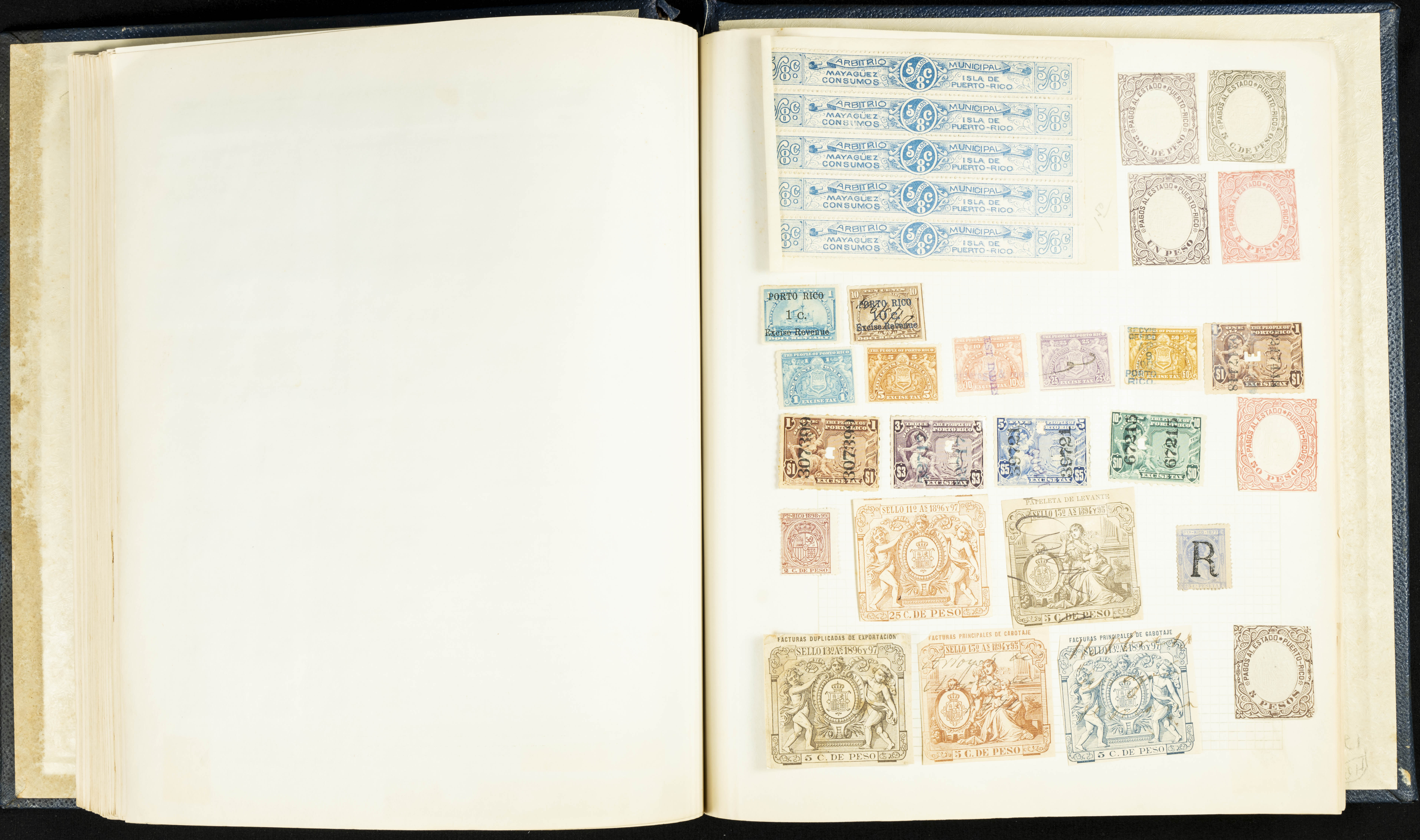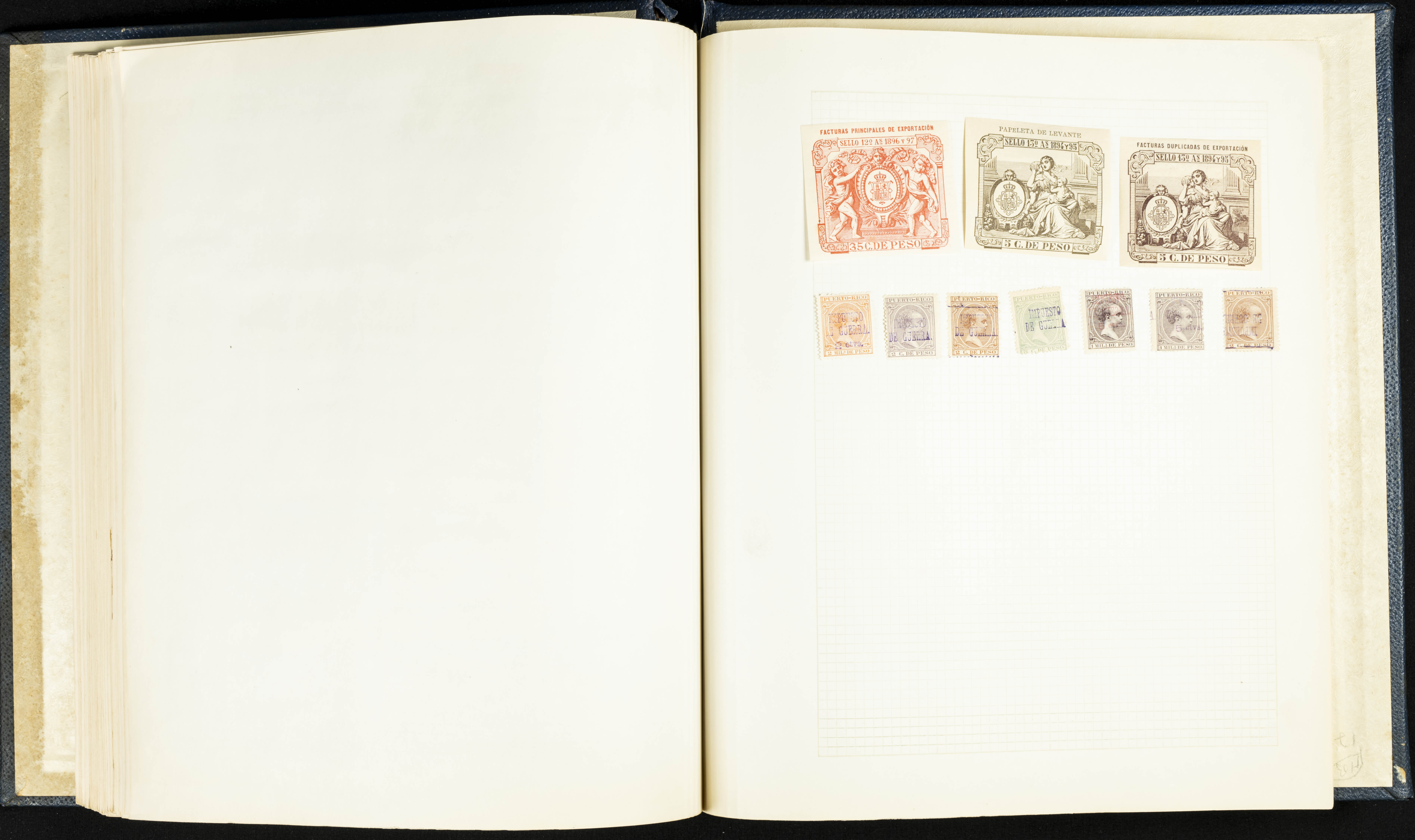 English ★/(1866ca). Interesting collection of revenue stamps from 1866 to 1898, including those from Cuba, the Philippines, and Puerto Rico, both mint and used, representing most sections as well as some from after the Spanish period. FOR EXAMINATION.