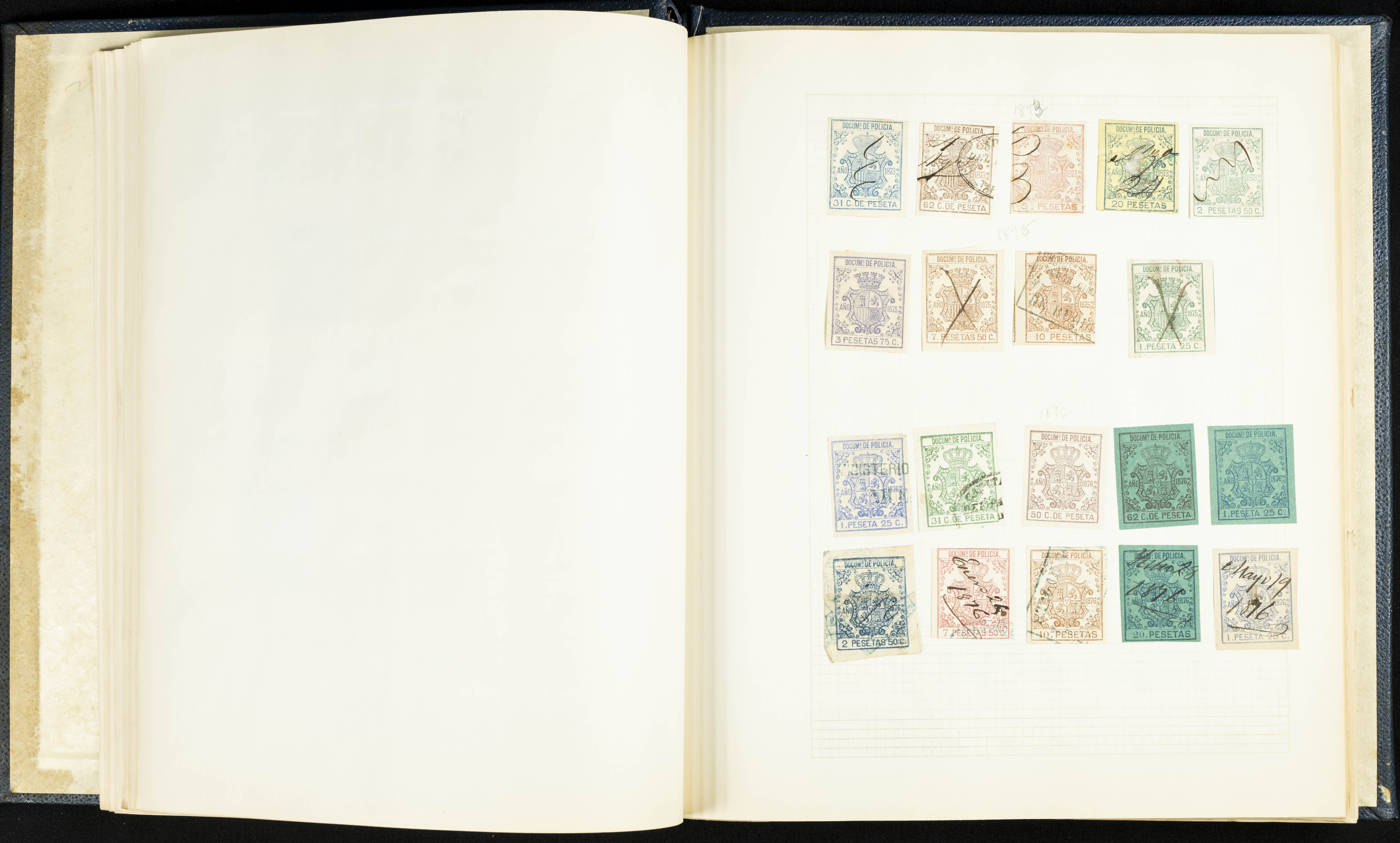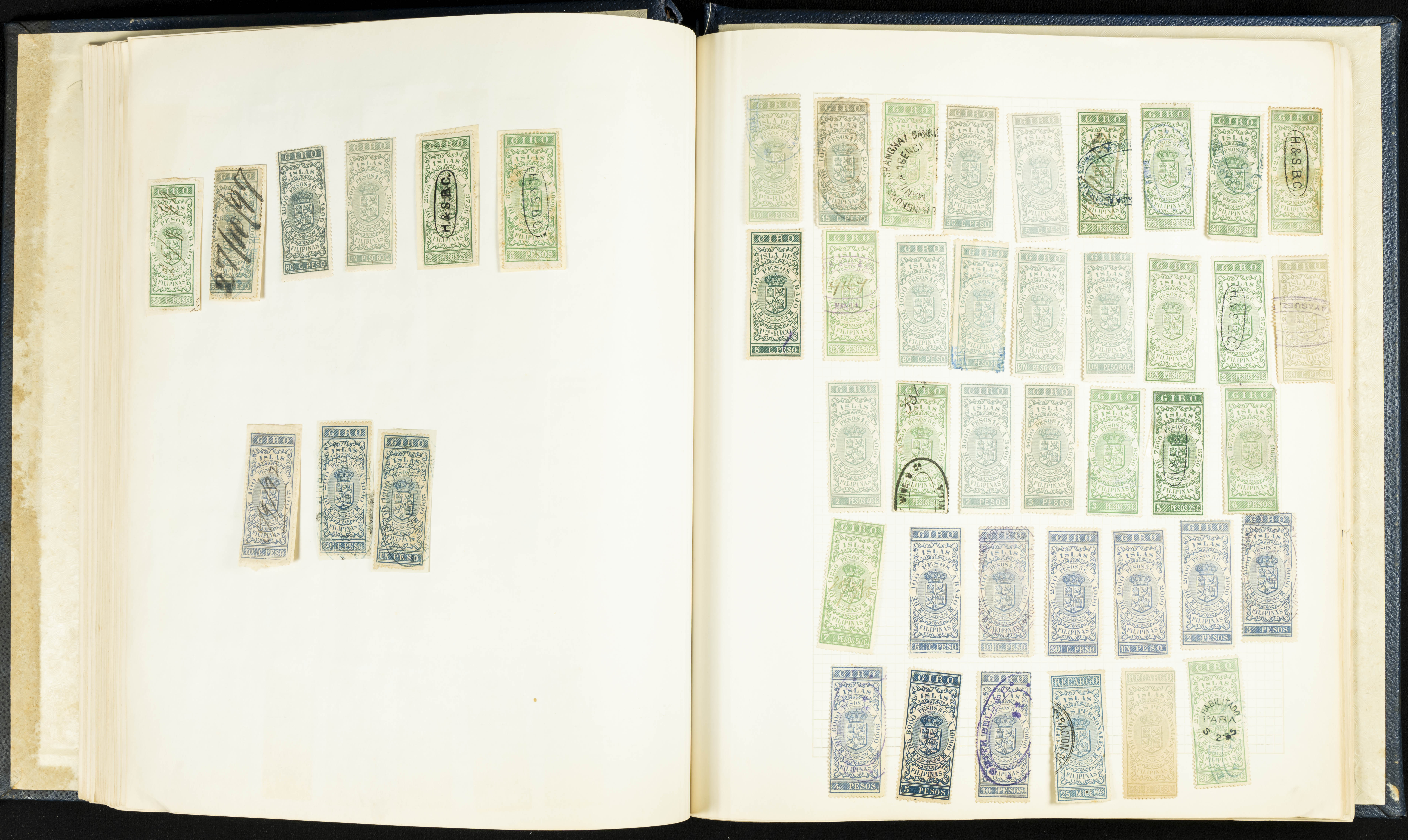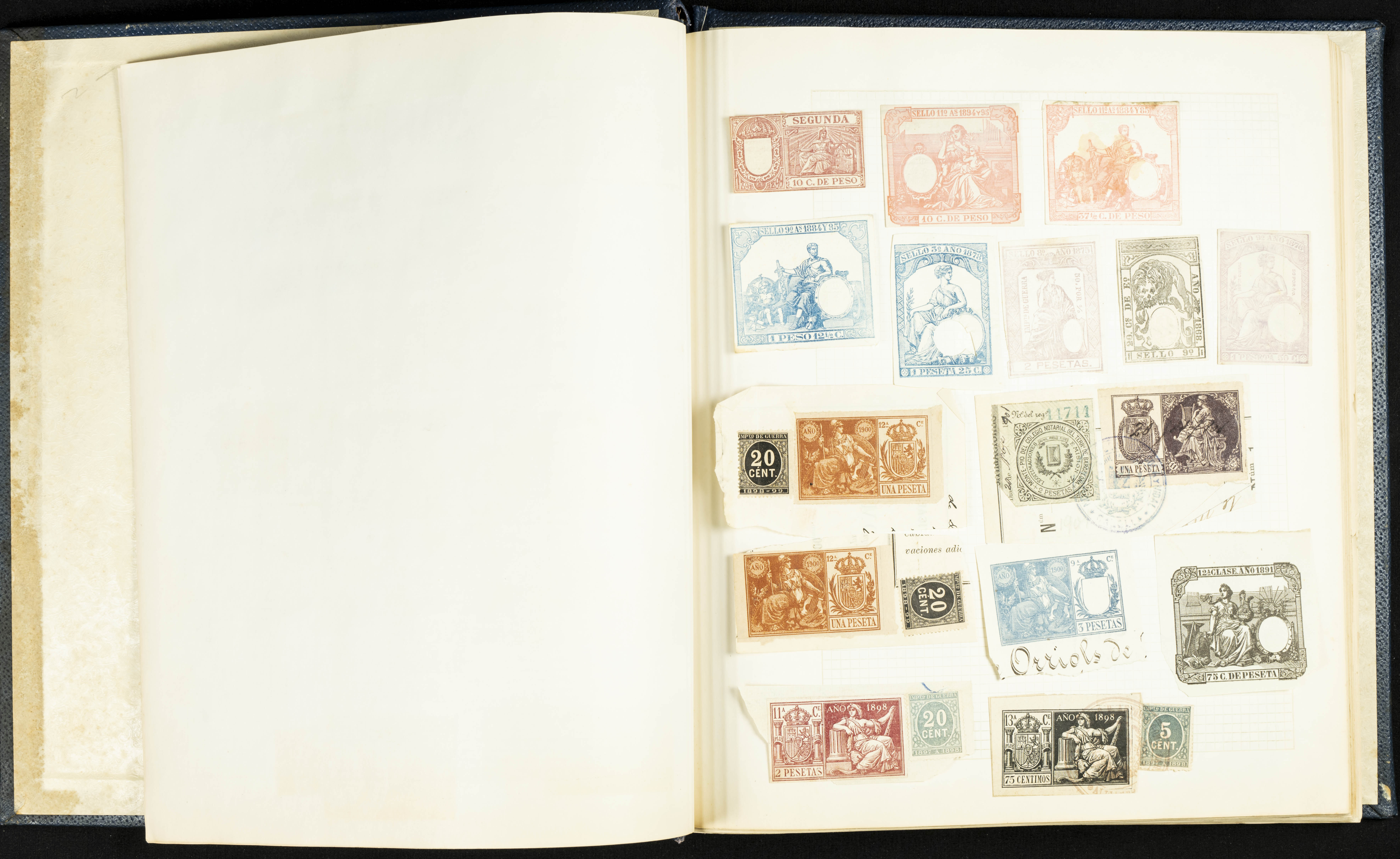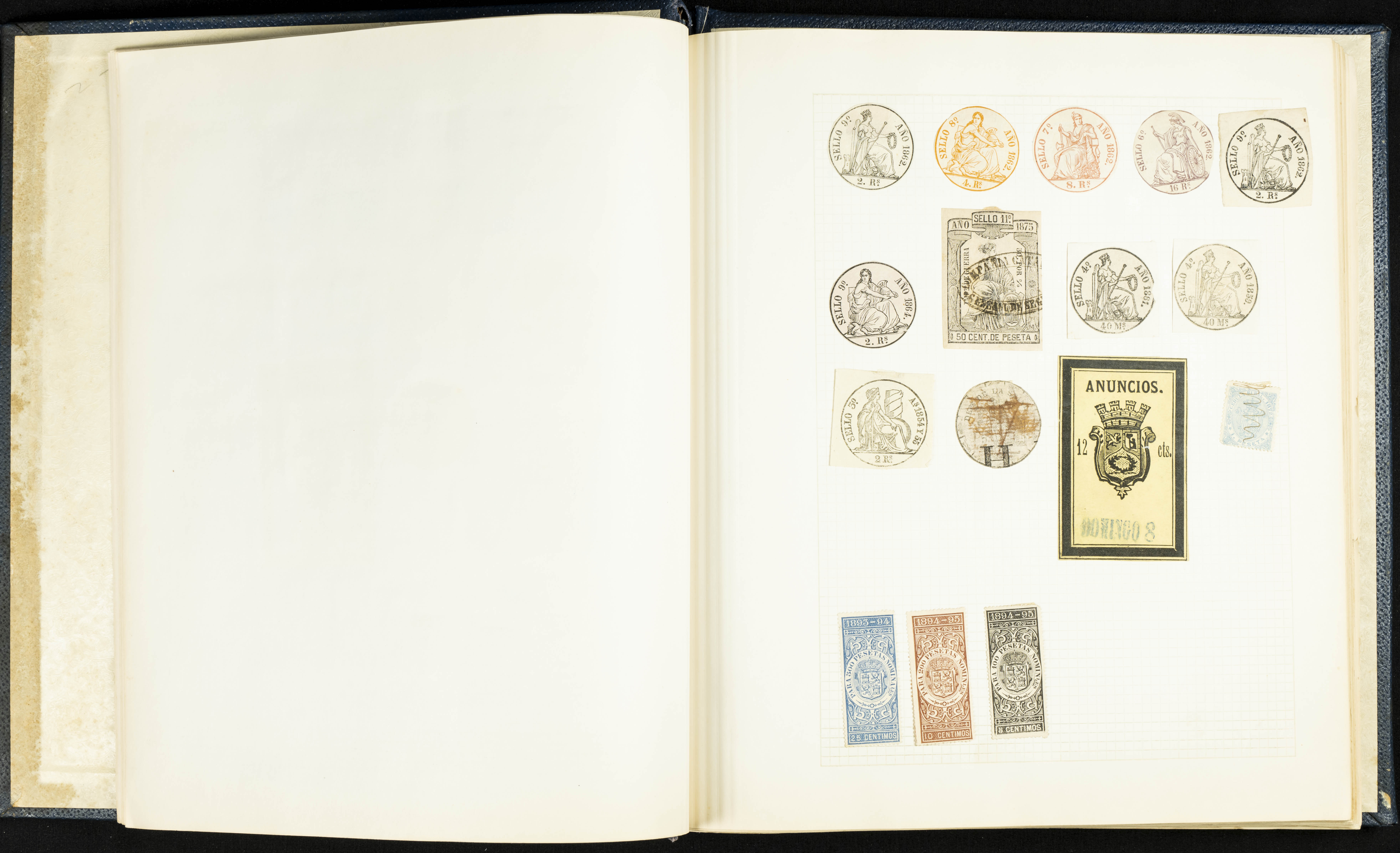 English ★/(1866ca). Interesting collection of revenue stamps from 1866 to 1898, including those from Cuba, the Philippines, and Puerto Rico, both mint and used, representing most sections as well as some from after the Spanish period. FOR EXAMINATION.