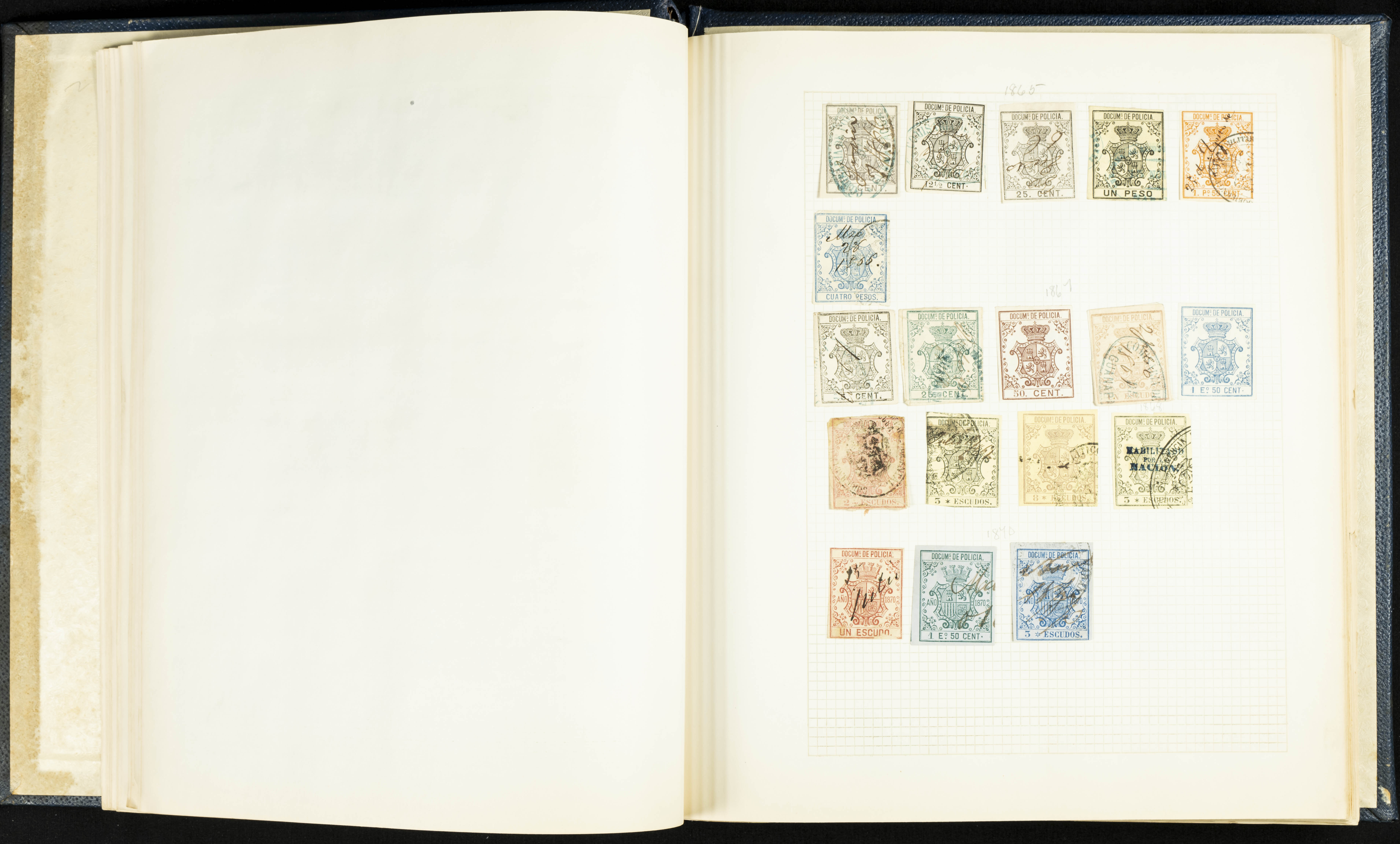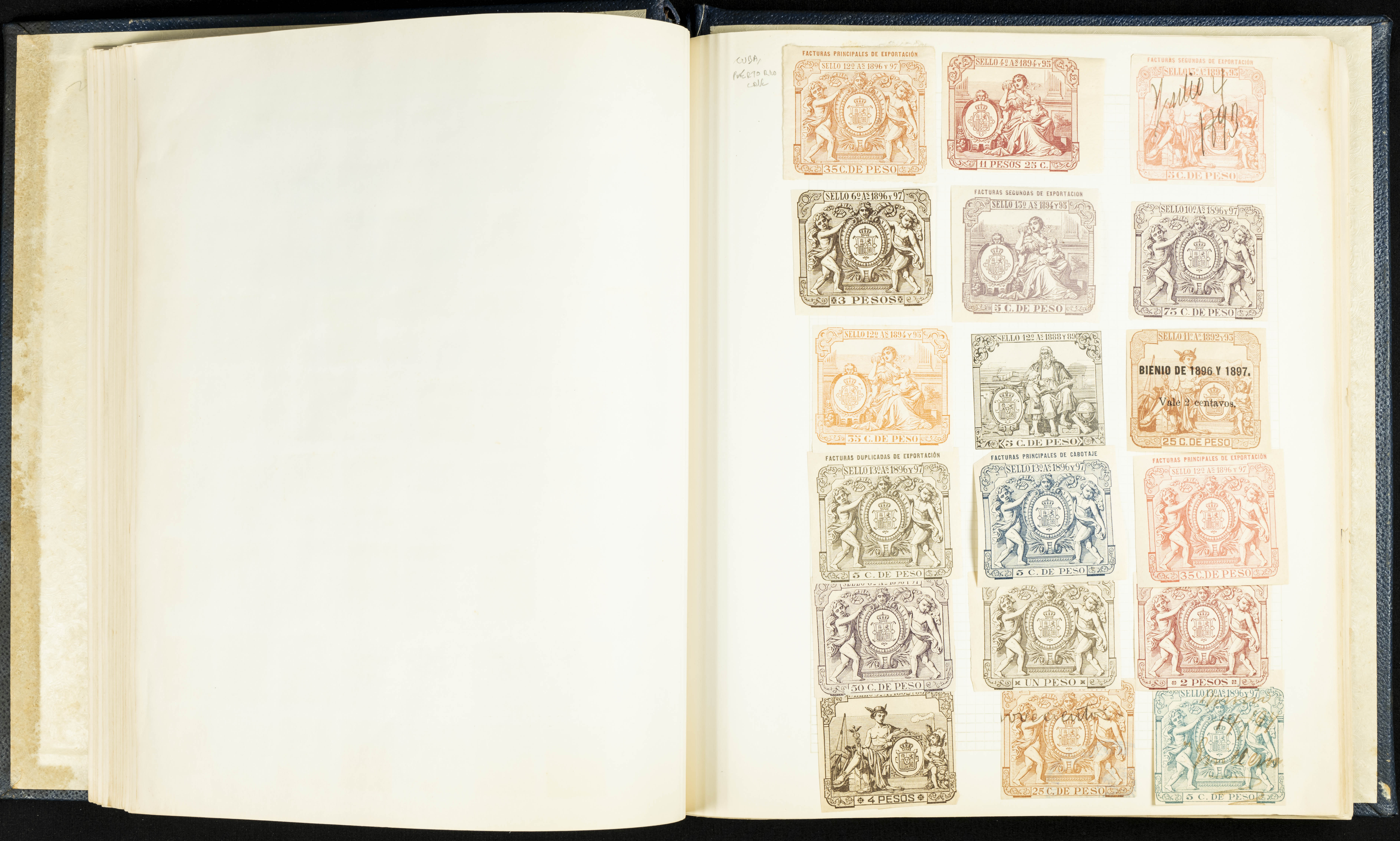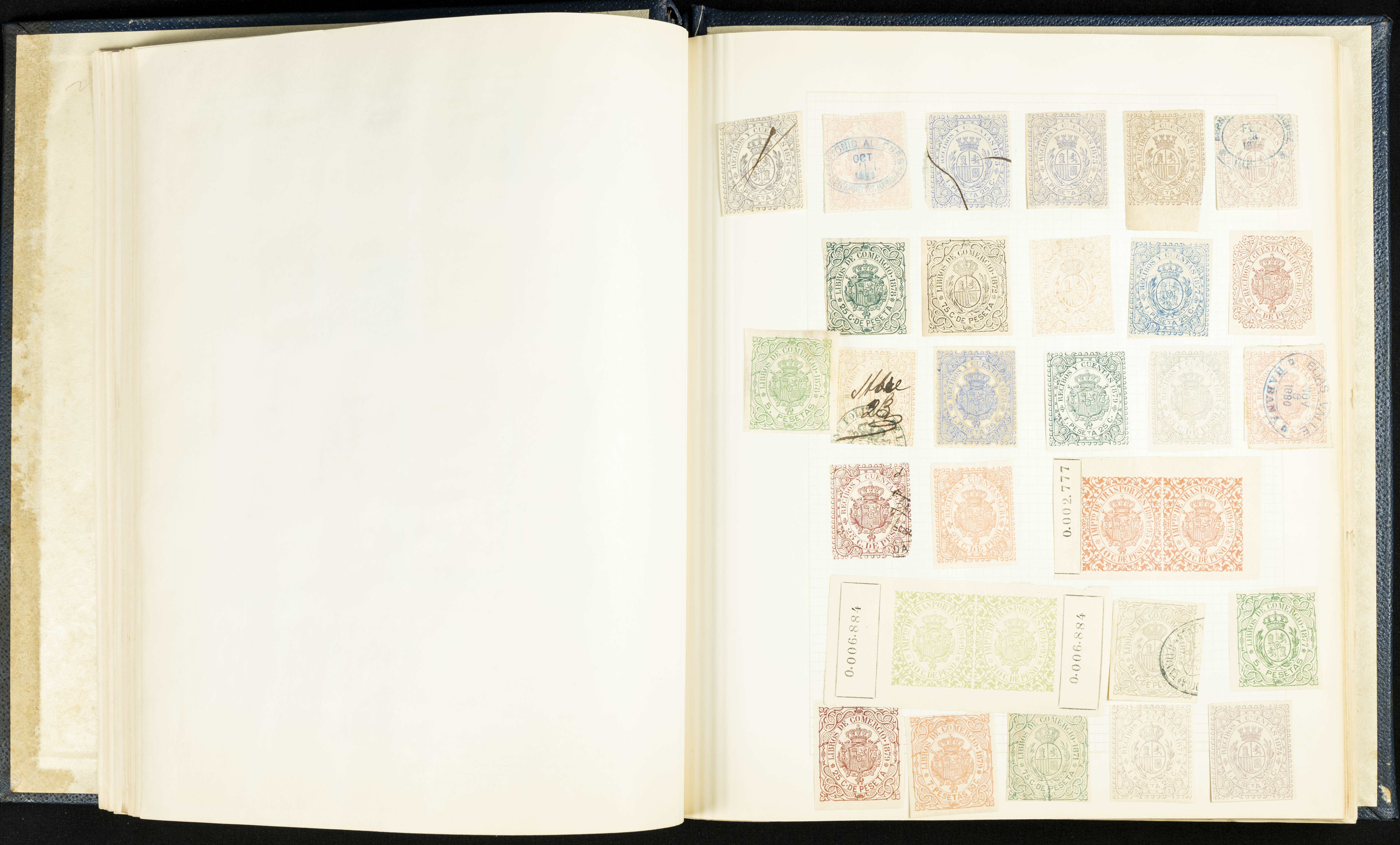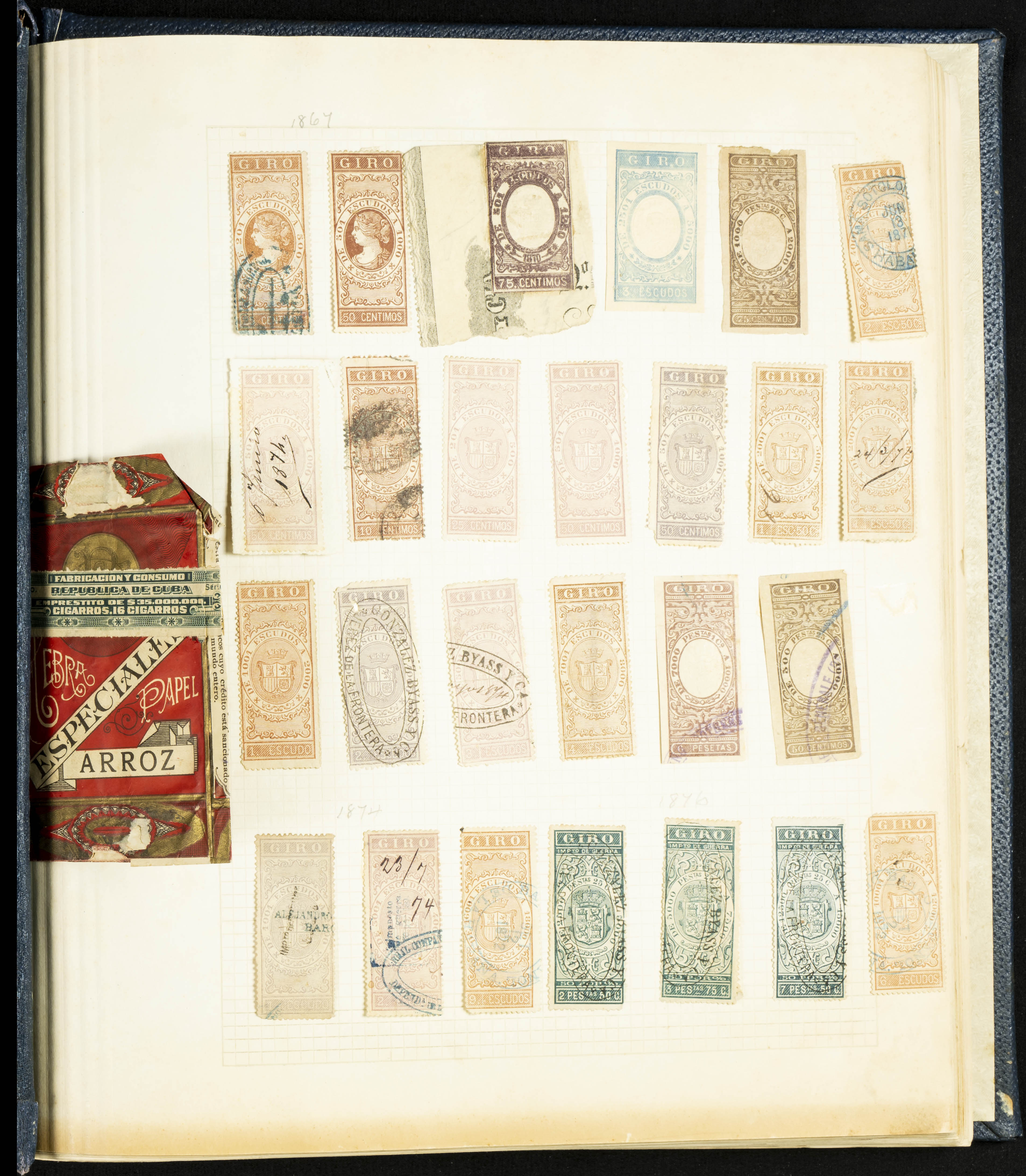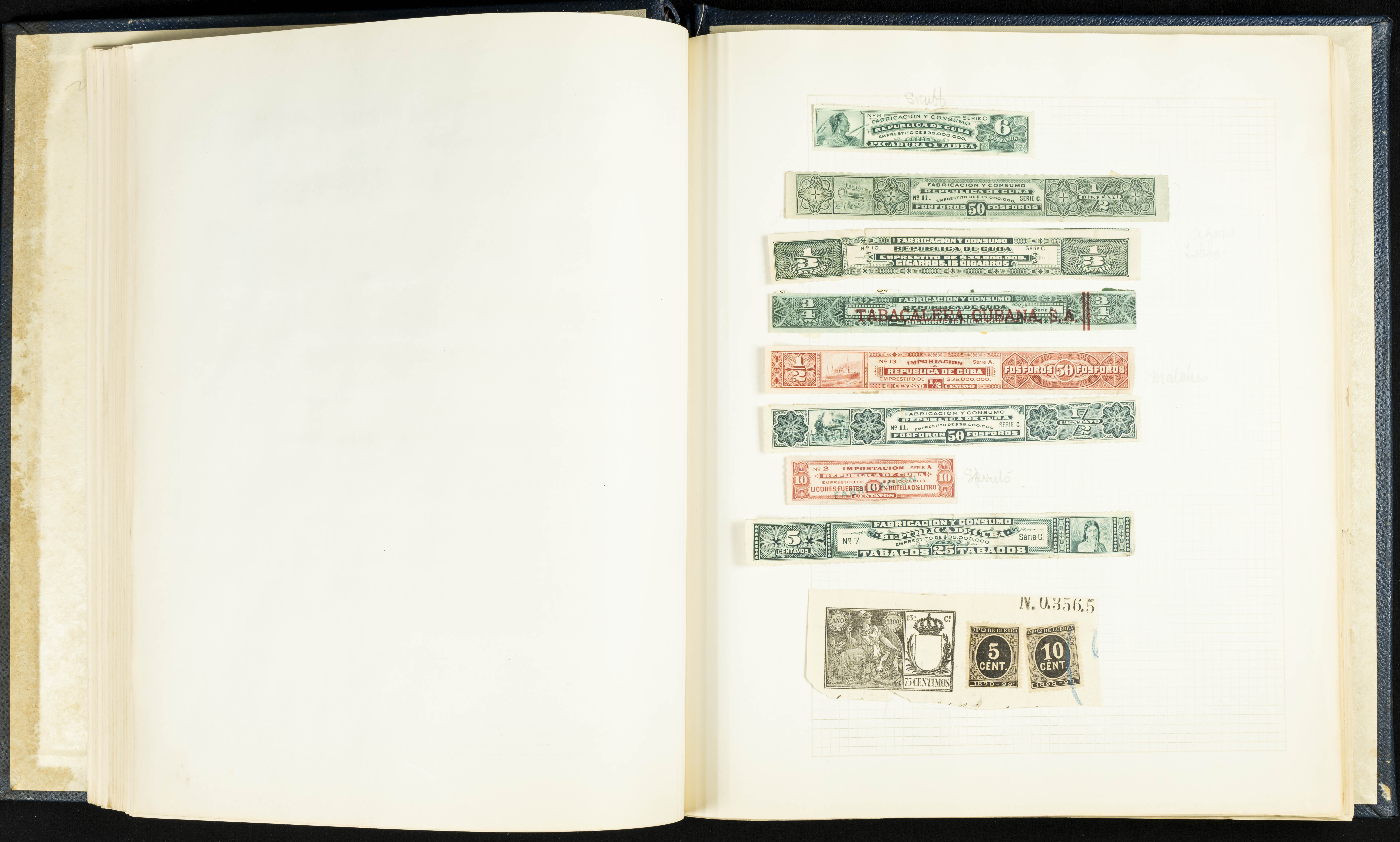 English ★/(1866ca). Interesting collection of revenue stamps from 1866 to 1898, including those from Cuba, the Philippines, and Puerto Rico, both mint and used, representing most sections as well as some from after the Spanish period. FOR EXAMINATION.