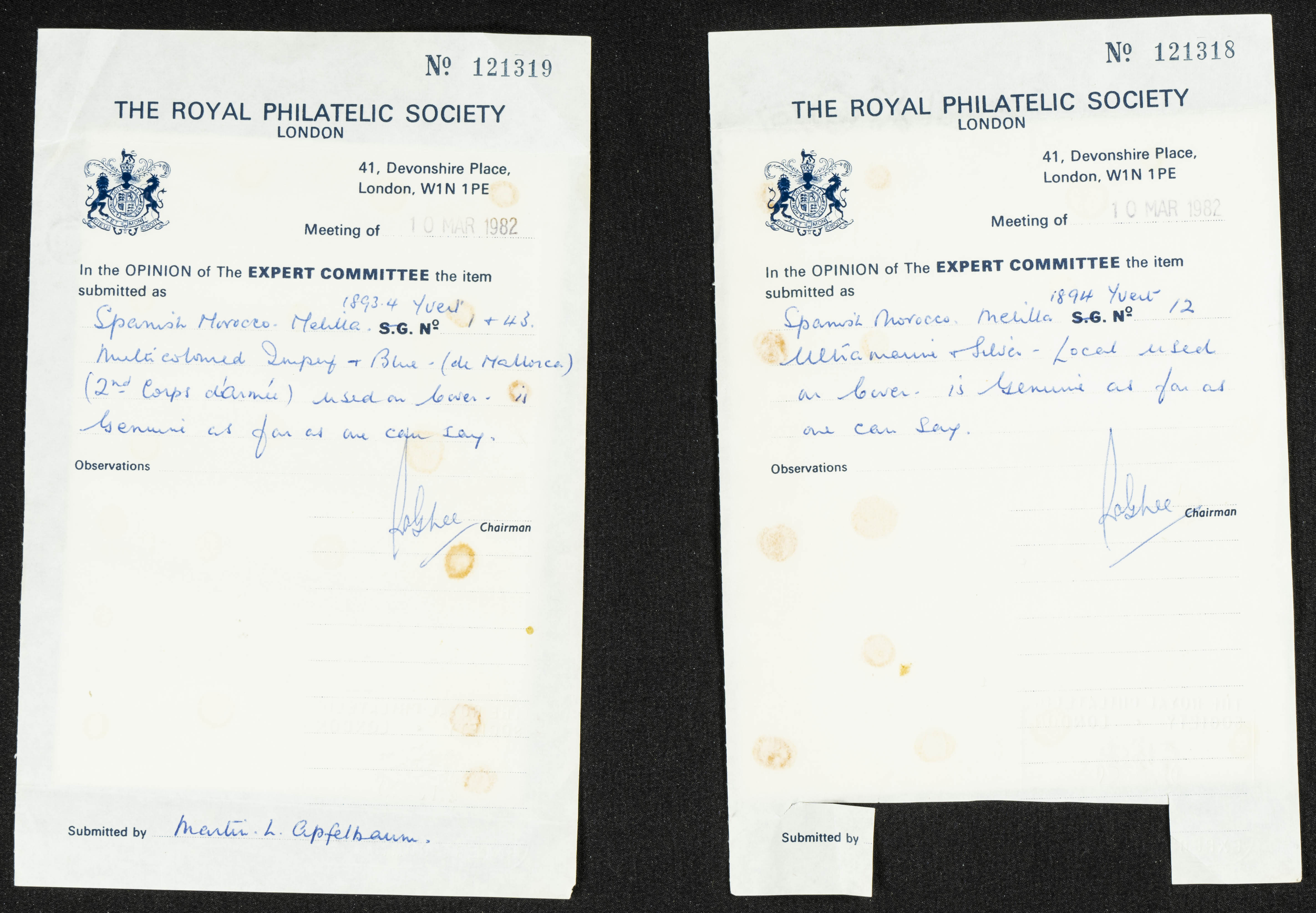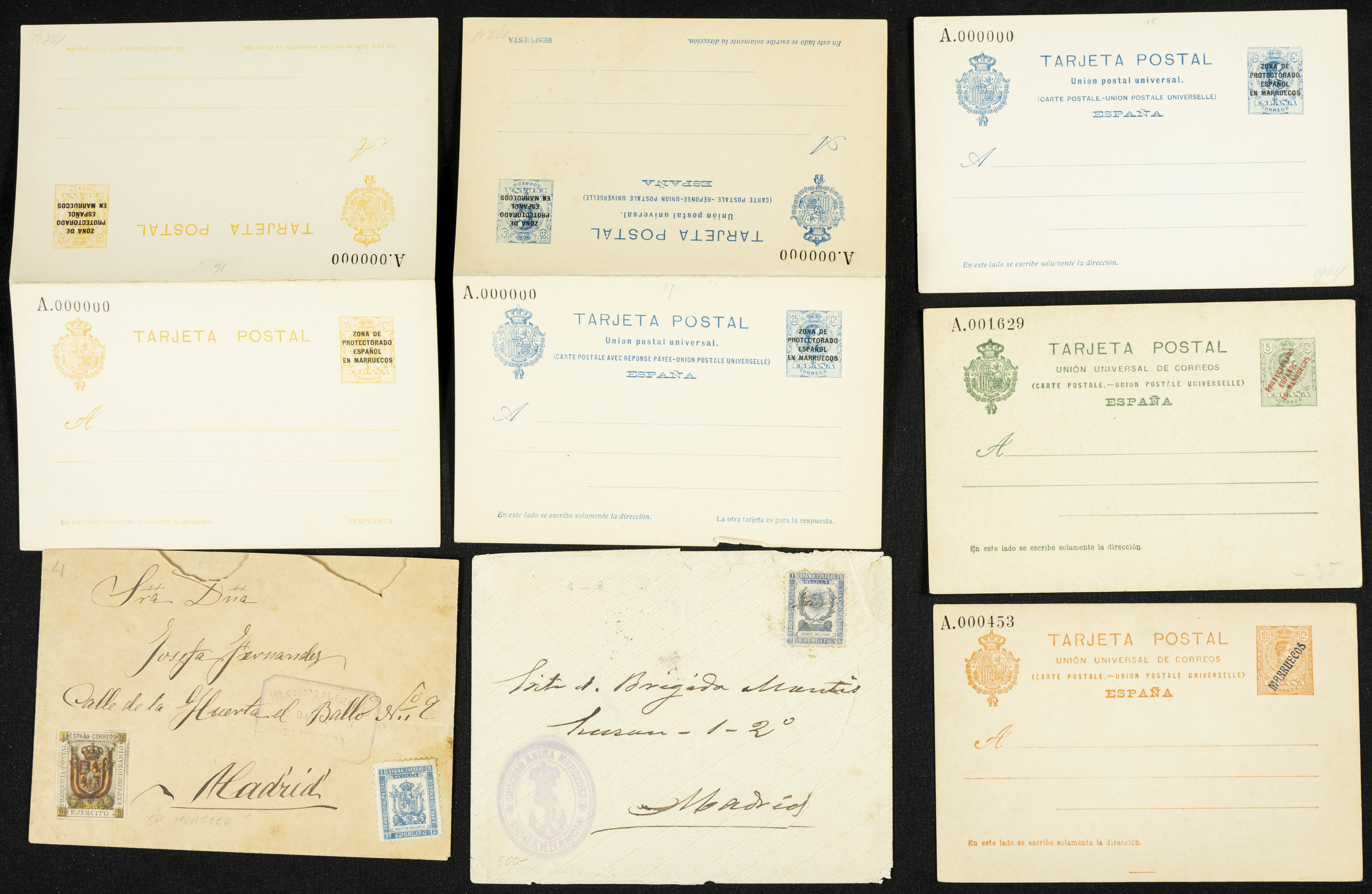 (1894ca). Set of more than seven letters and postal stationery cards (all from Morocco) between 1894 and 1915, mint and postmarked. TO BE EXAMINED.