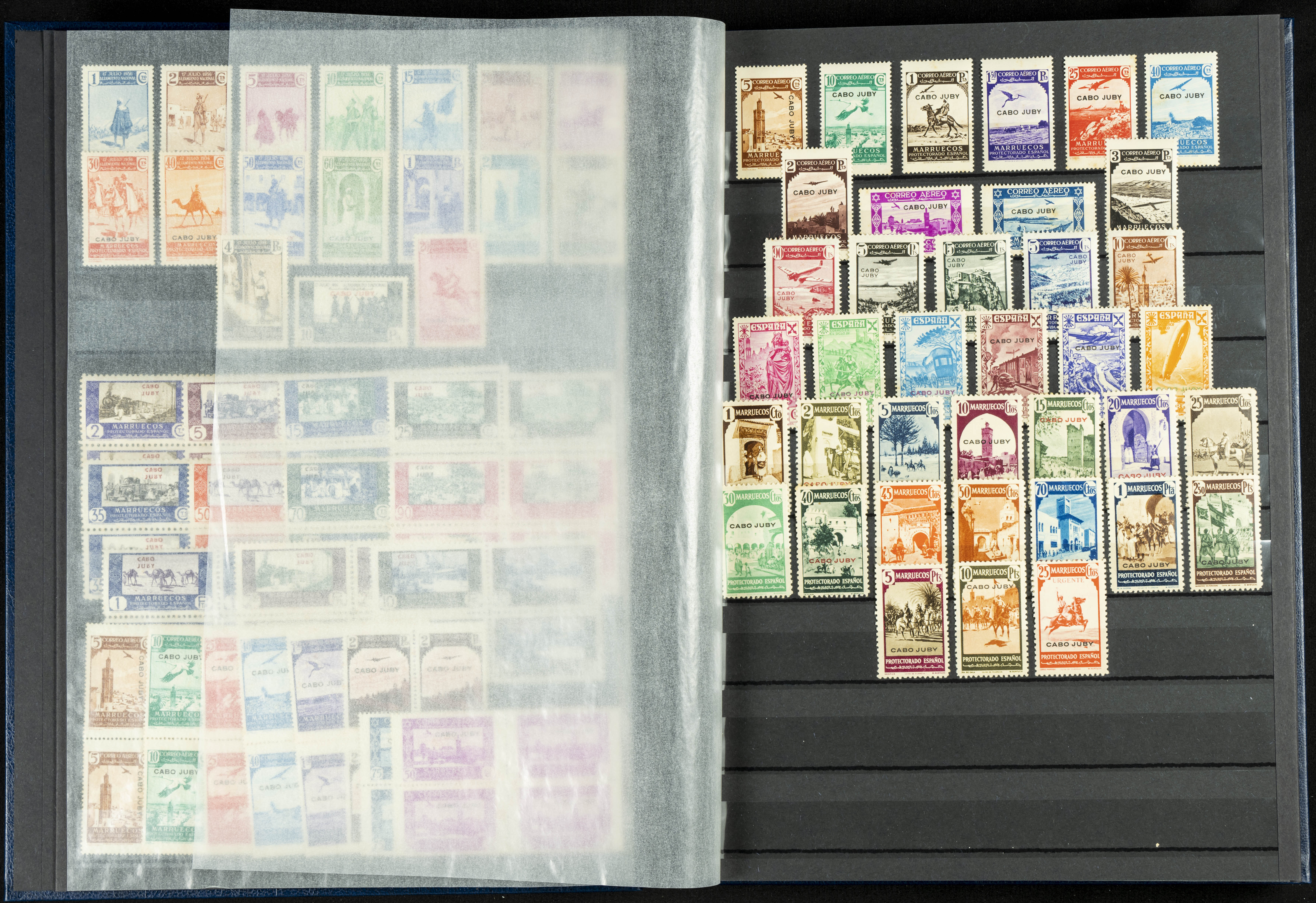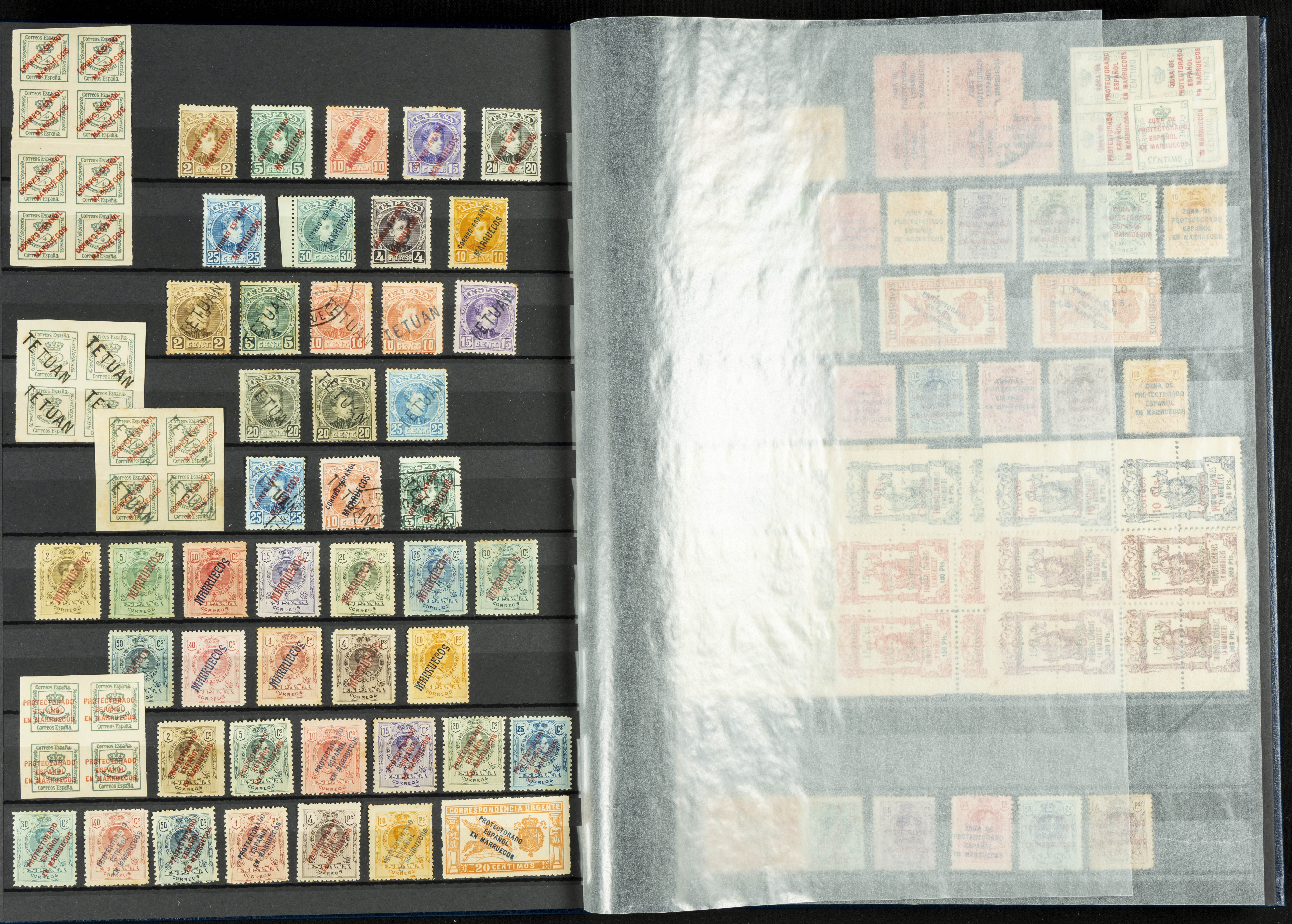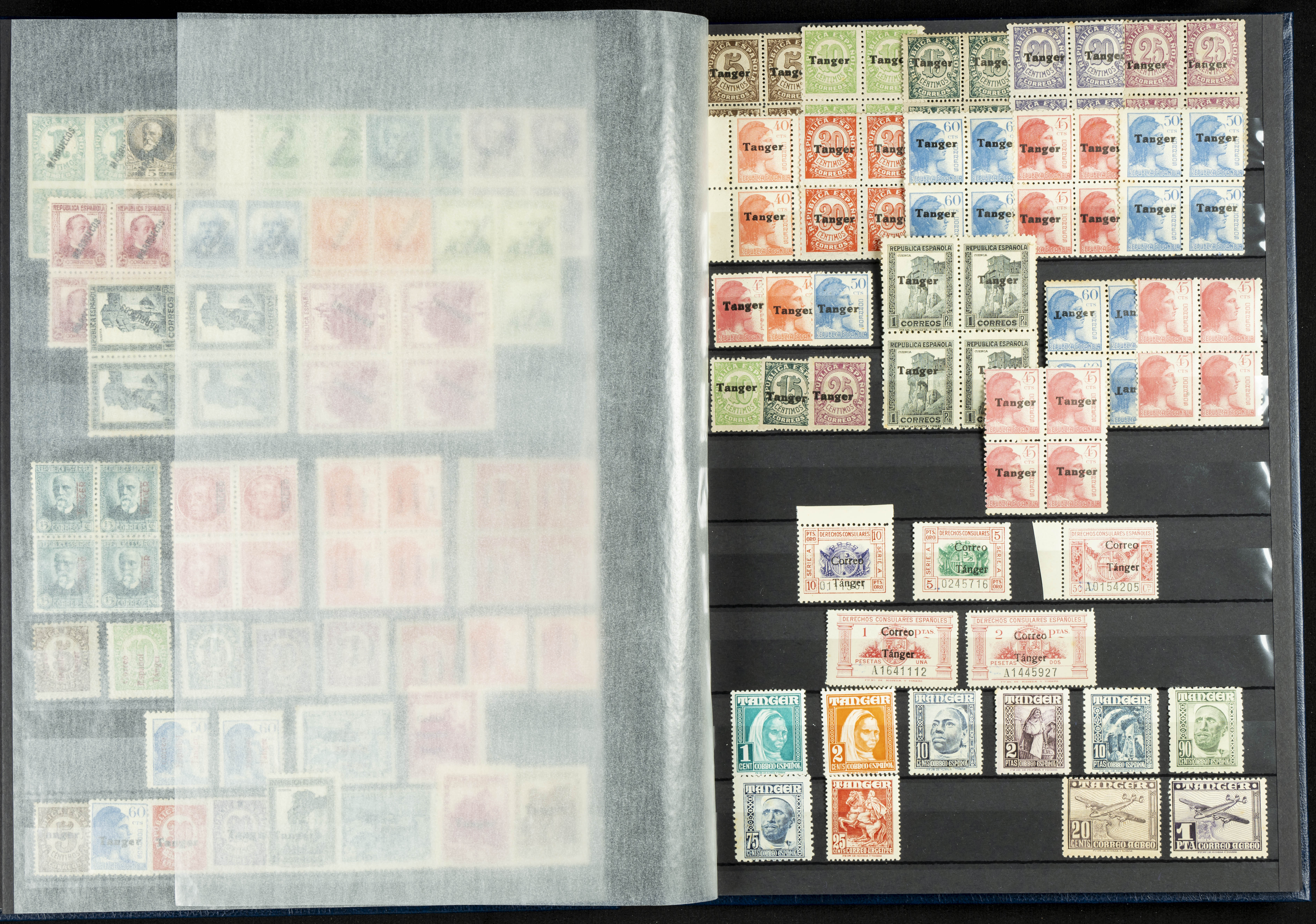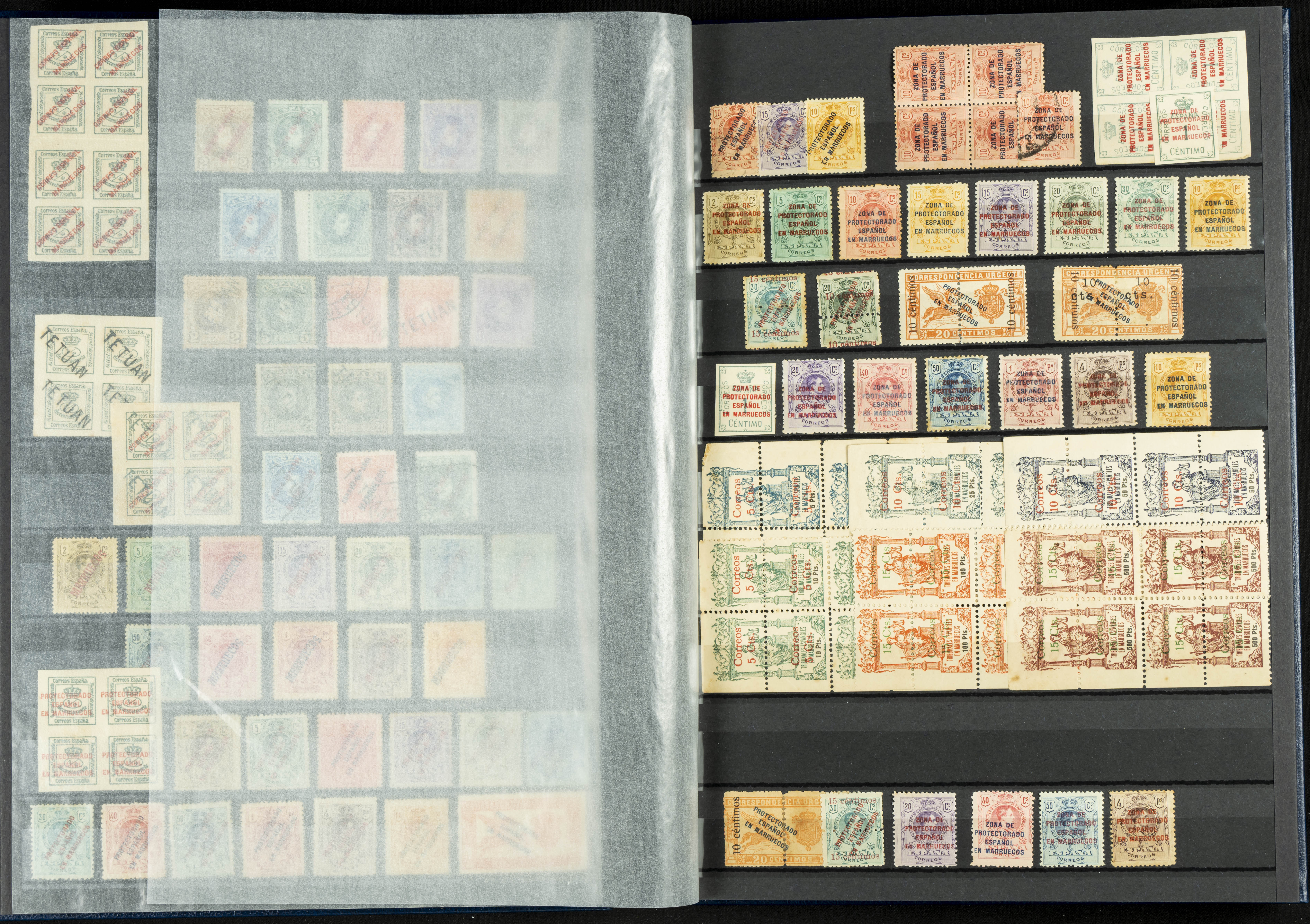 English ★(1903ca). A very interesting collection of Moroccan stamps from 1903 to 1956, in mint condition (some used), with many complete sets of four, especially from the later period. It includes stamps and series from Cape Juby and Tangier, as well as some modern series from Ifni and the Sahara. Extremely high catalog value. A must-see.