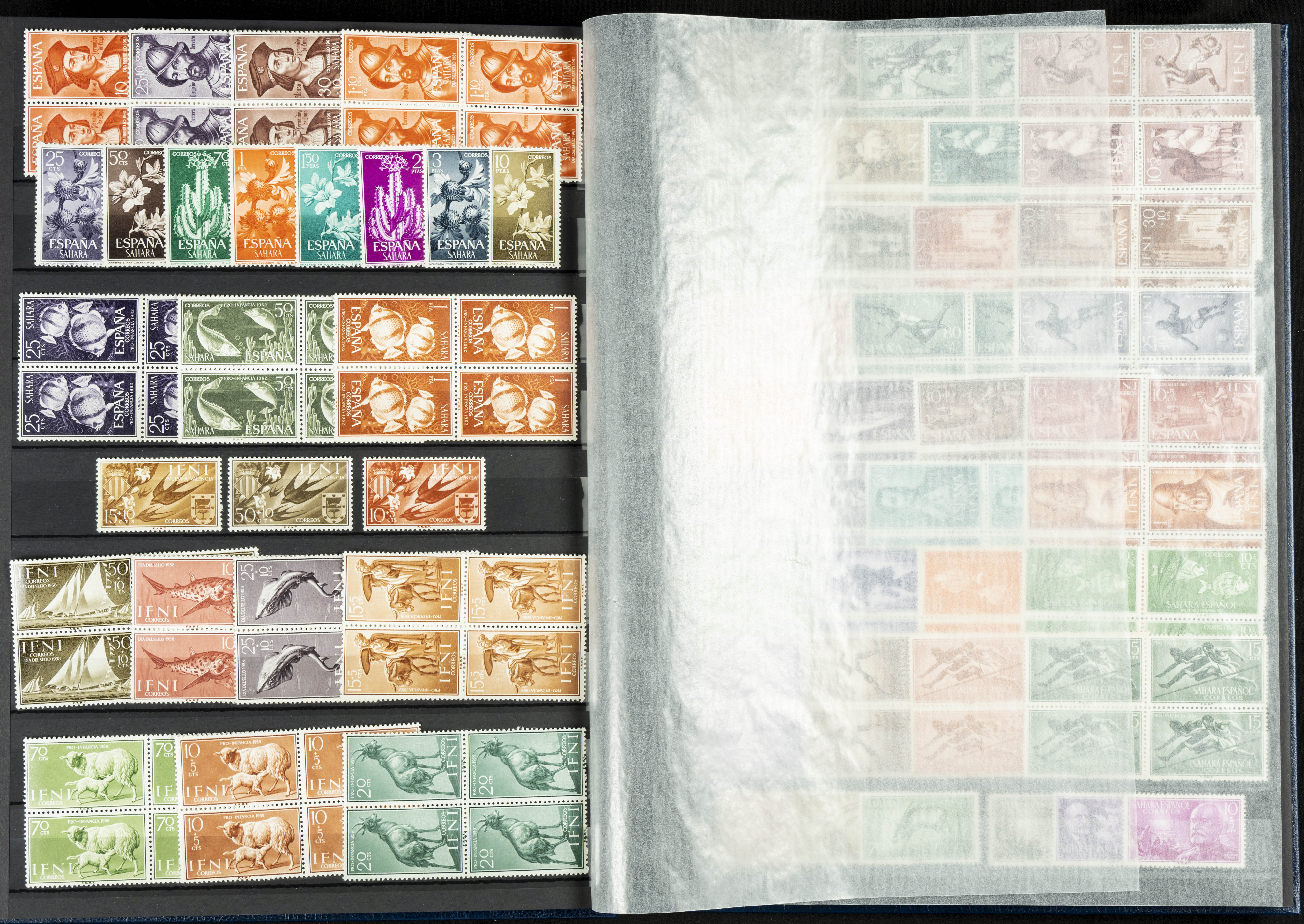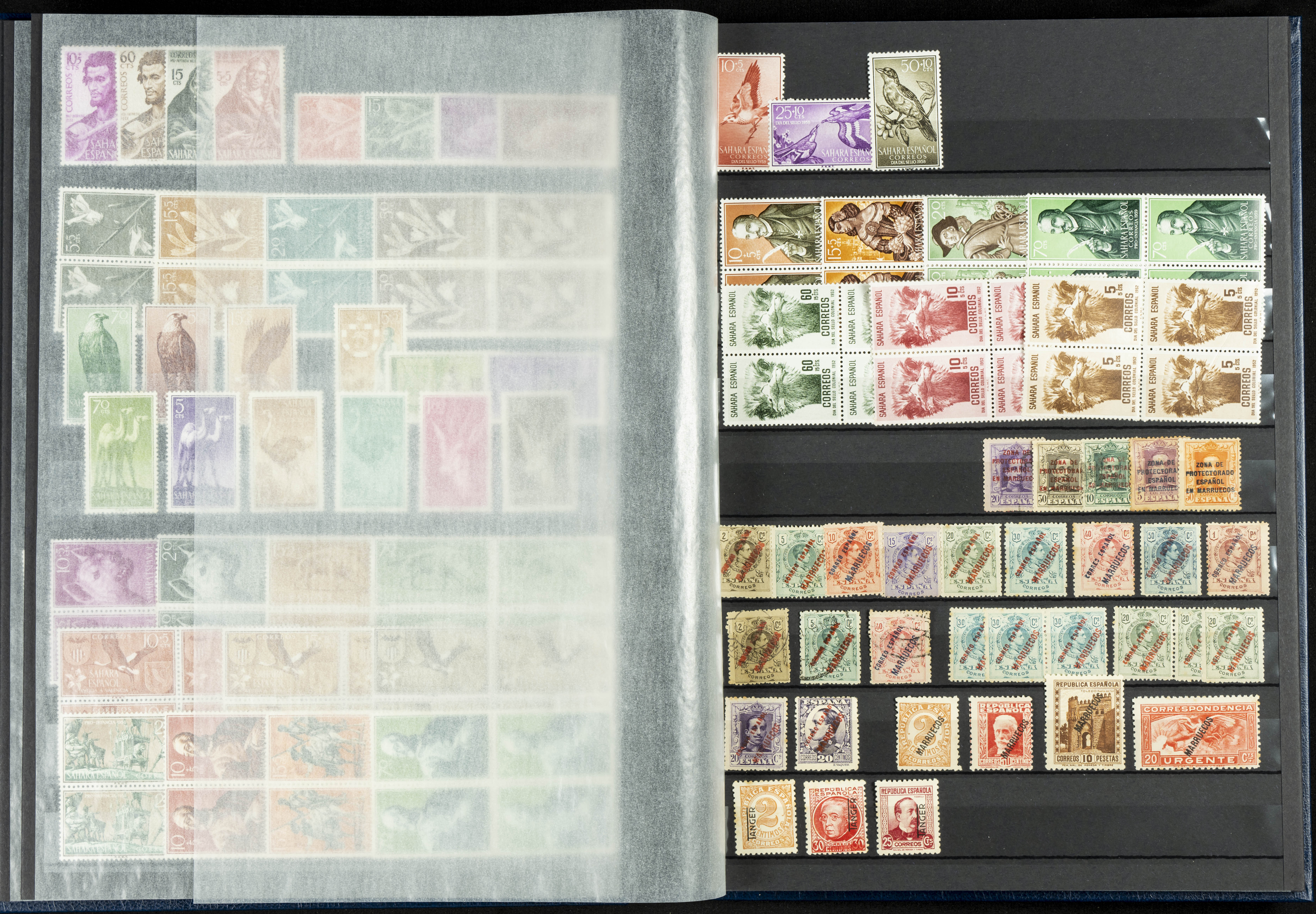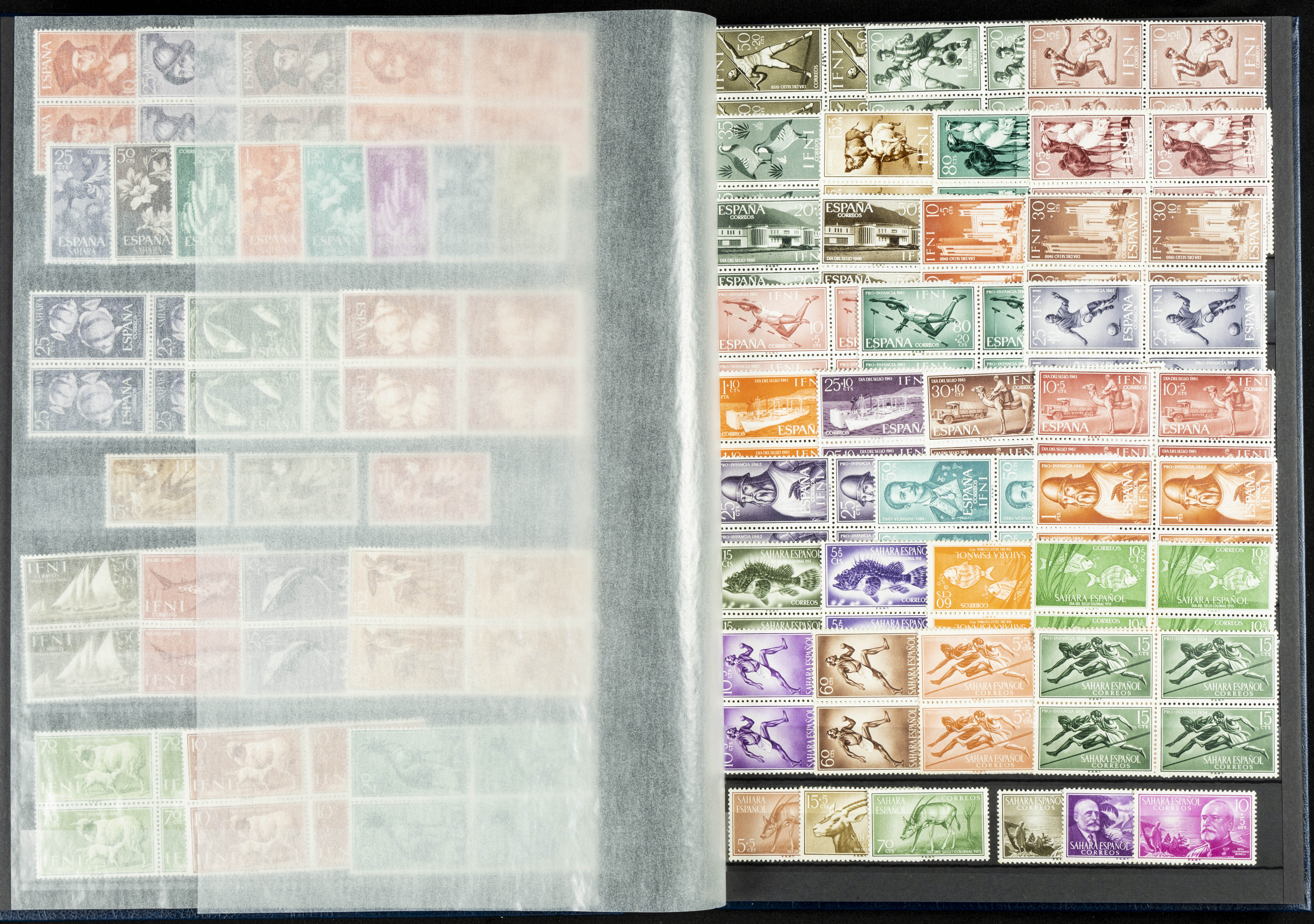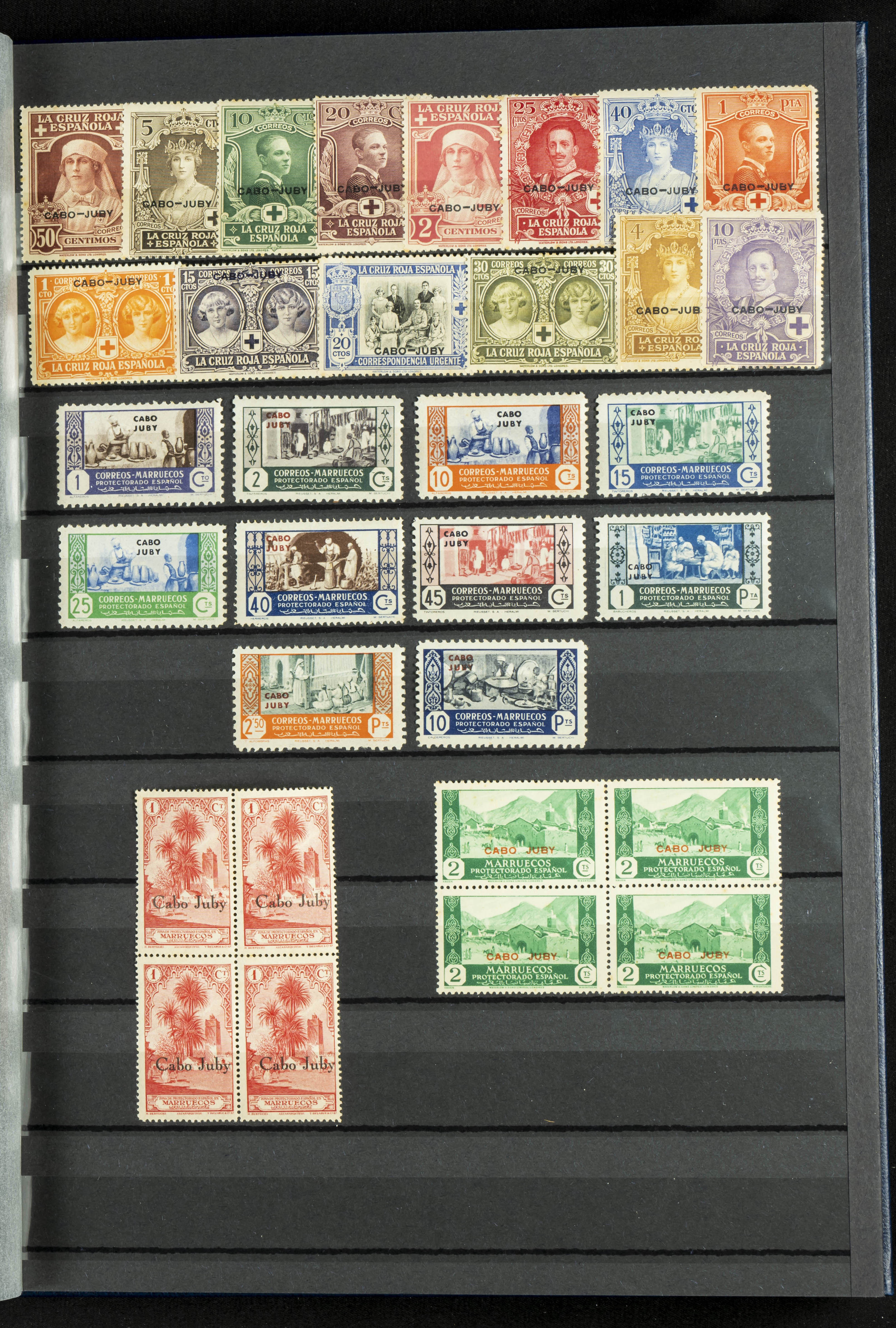 English ★(1903ca). A very interesting collection of Moroccan stamps from 1903 to 1956, in mint condition (some used), with many complete sets of four, especially from the later period. It includes stamps and series from Cape Juby and Tangier, as well as some modern series from Ifni and the Sahara. Extremely high catalog value. A must-see.