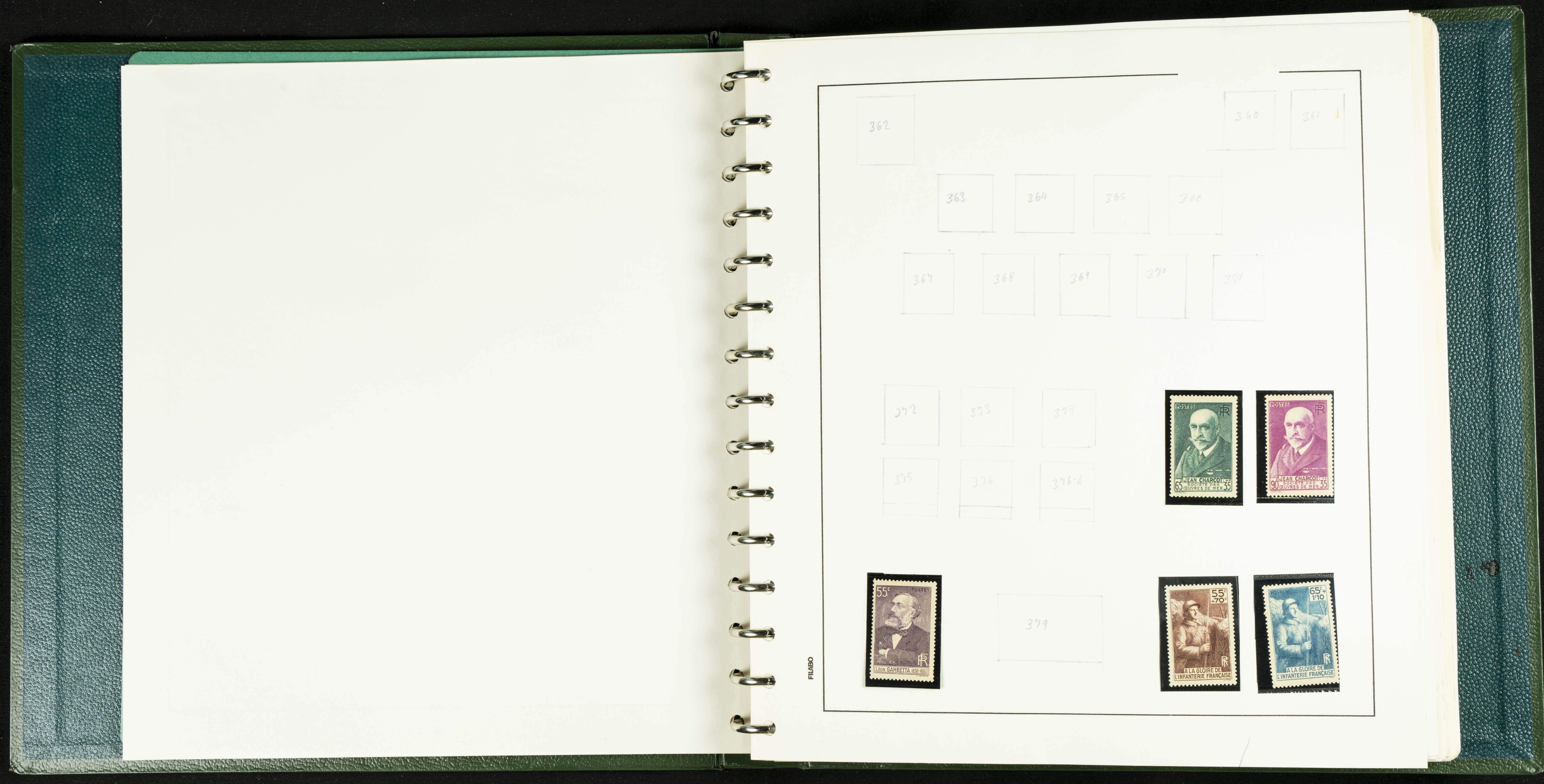 ★★/★(1937ca). Very complete collection of French stamps from 1937 to 1985, in mint condition, and most from 1940 onwards without hinges. Includes an album of used stamps from 1920 to 1980. HIGH CATALOG VALUE. TO BE EXAMINED.