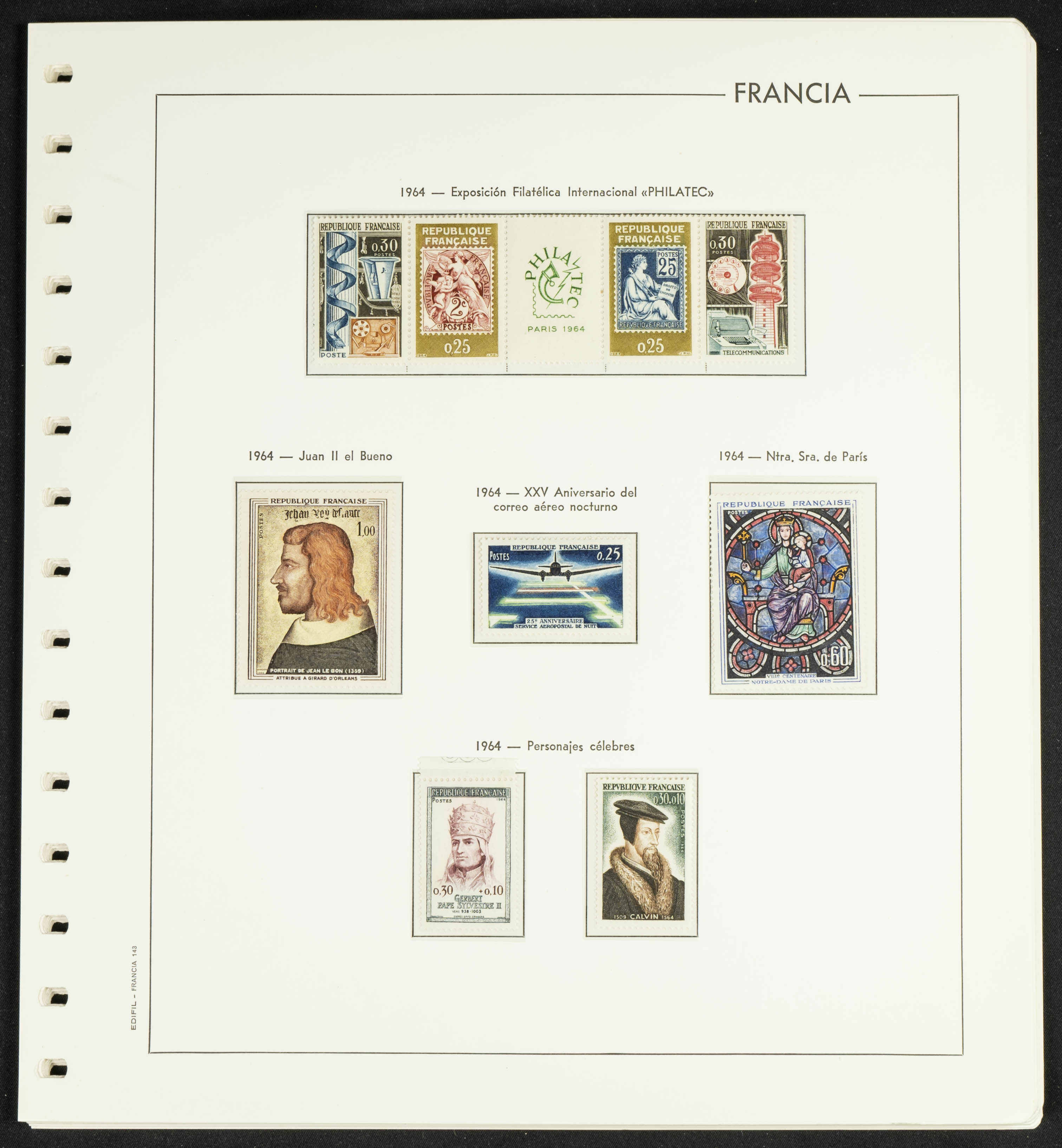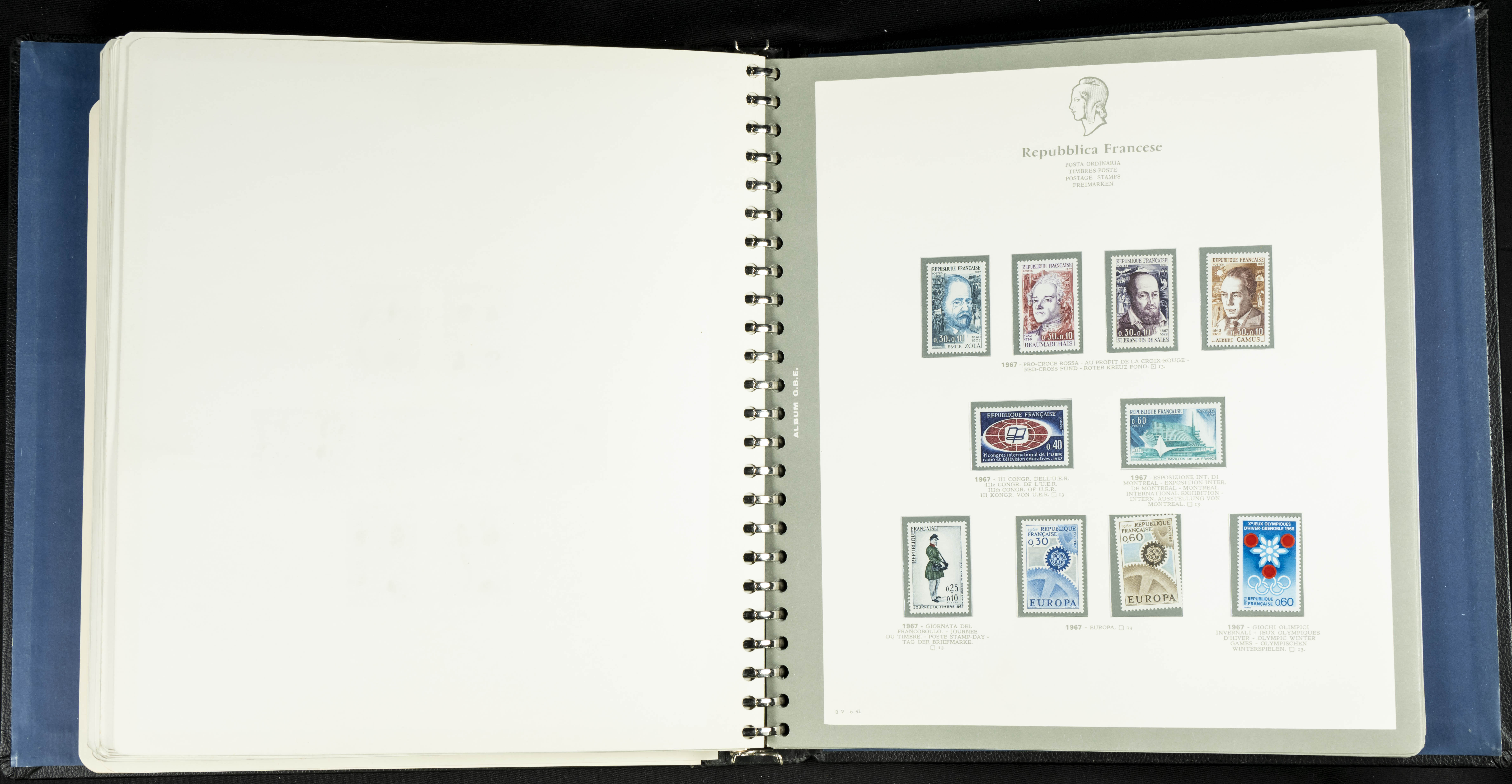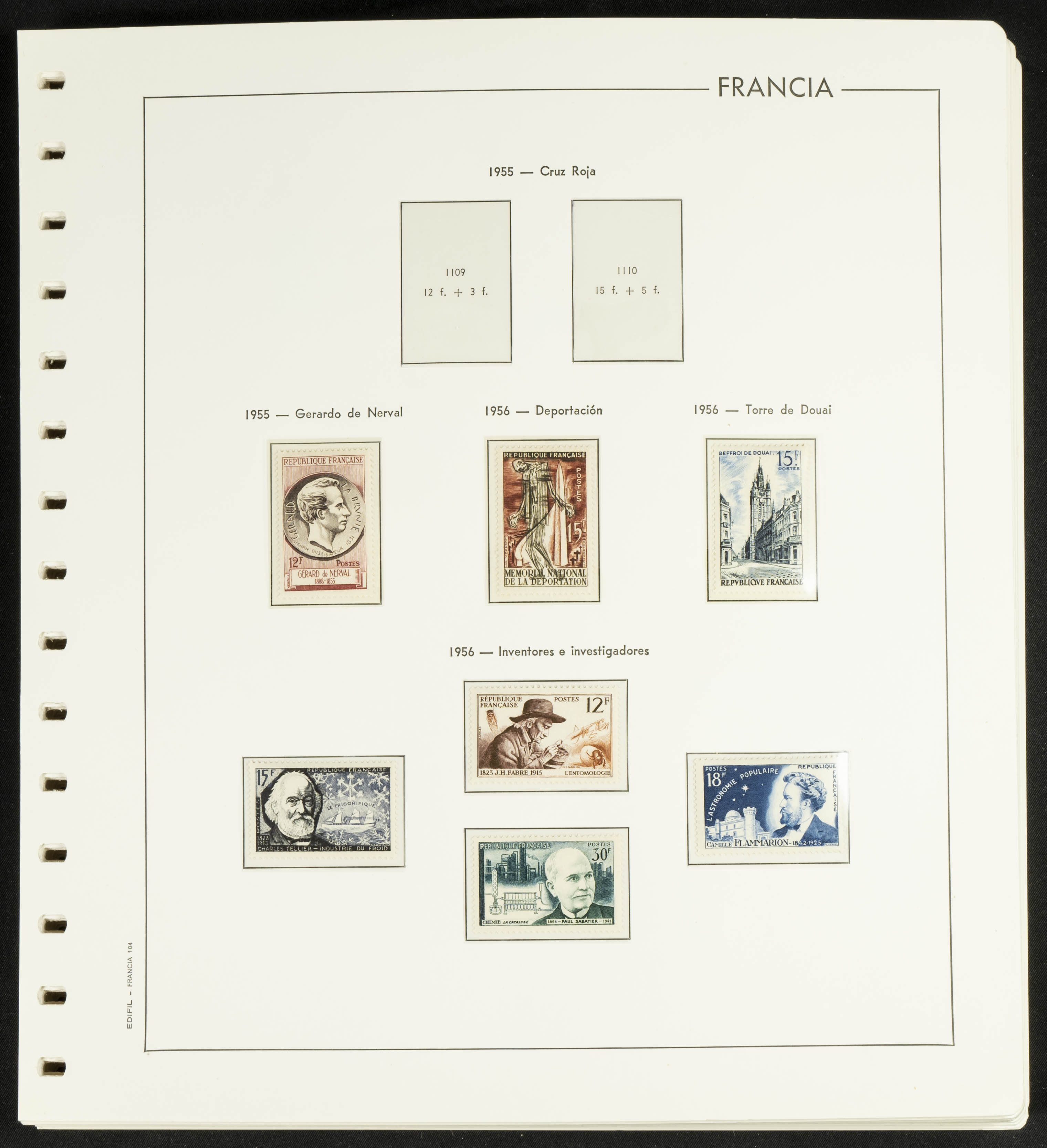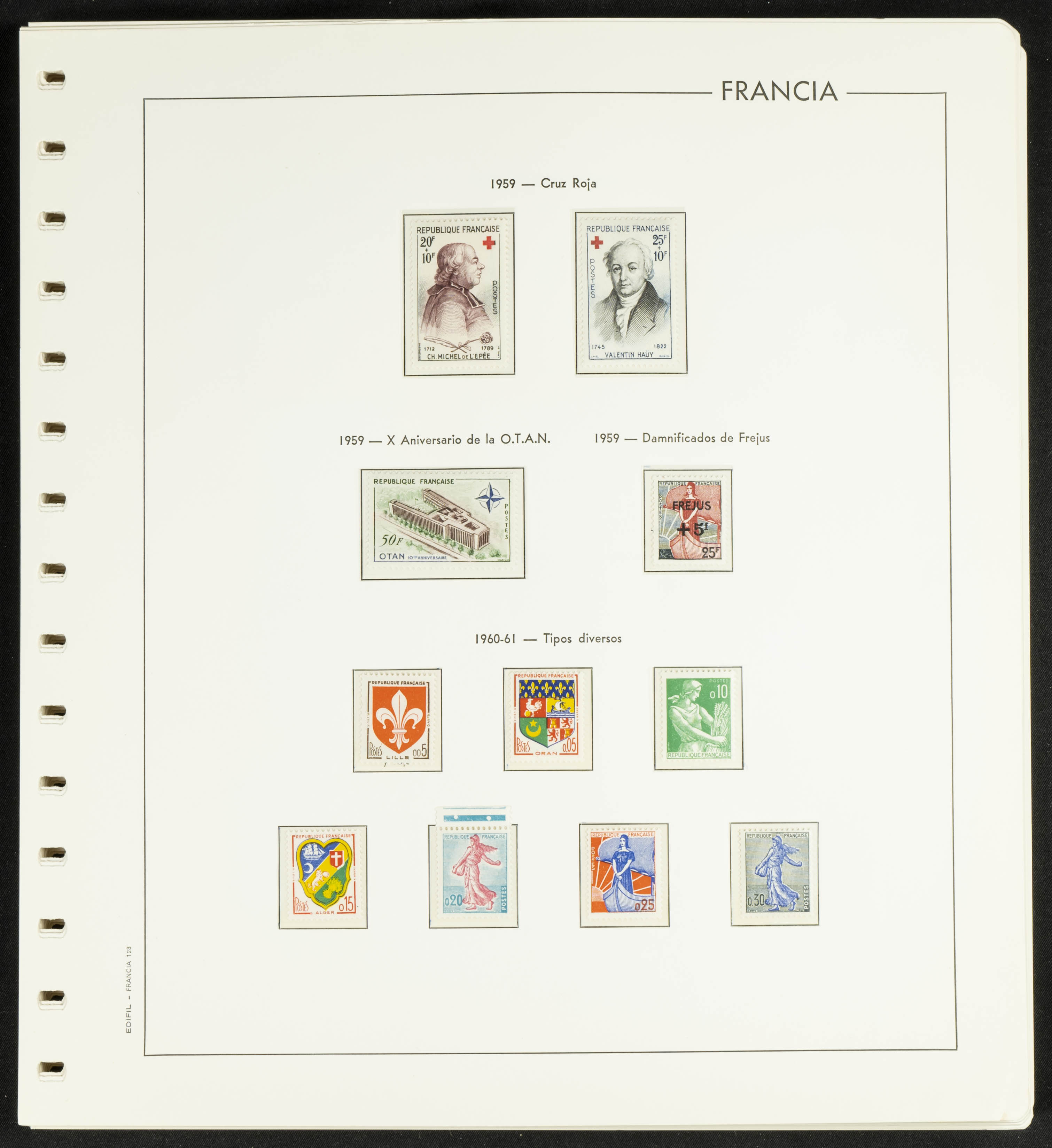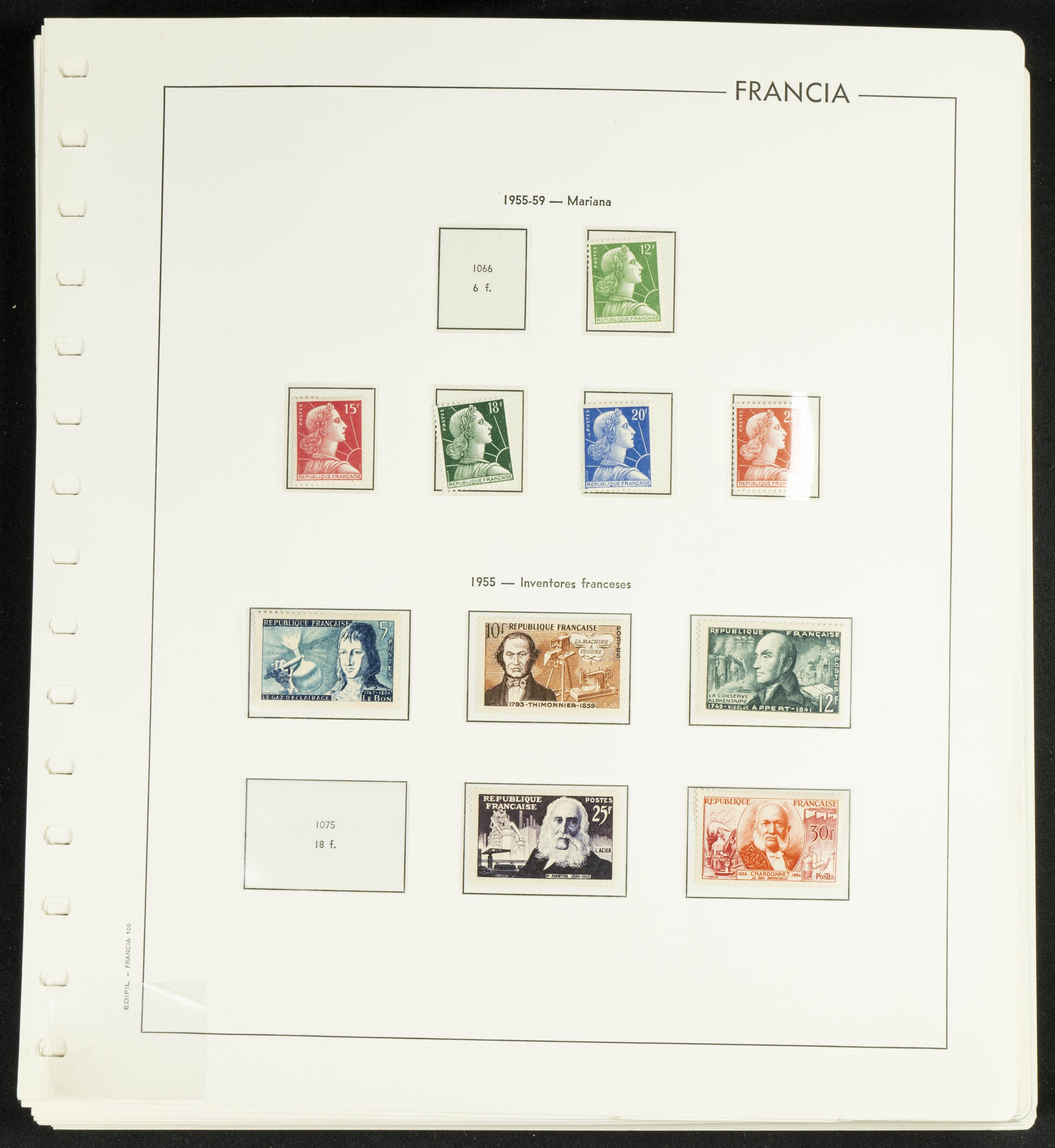 English ★★/★(1951ca). Interesting collection of French stamps from 1951 to 1988, in mint condition and mostly without hinges, some practically complete and others with some missing stamps, all in albums of various types. TO BE EXAMINED. Yvert 2024: +4,500 Euros