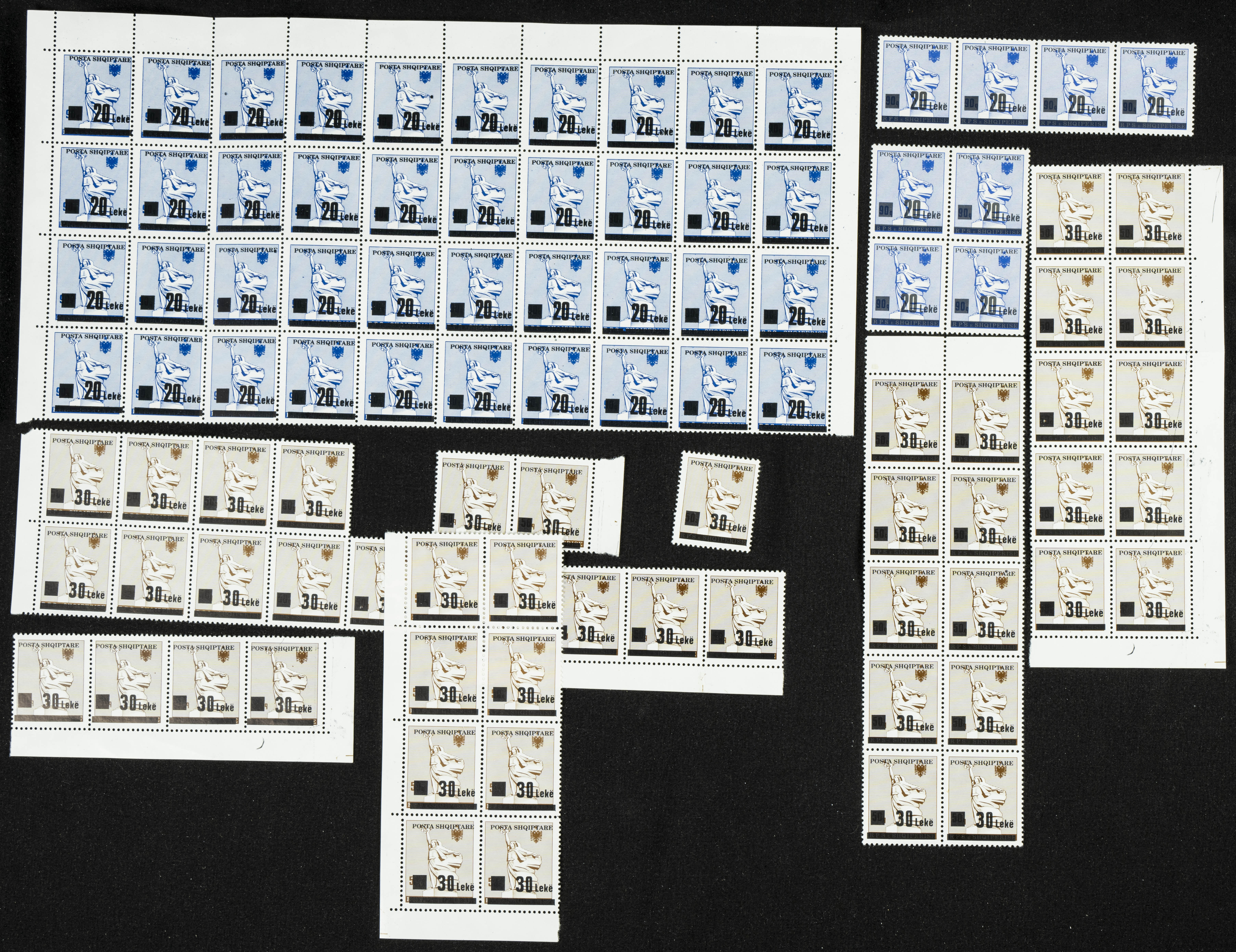 Yvert 2293/97(48). 1993. Set of forty-eight complete series of Albanian overprinted 1993 stamps, in mint condition. To be examined. Yvert 2022: 576 Euros