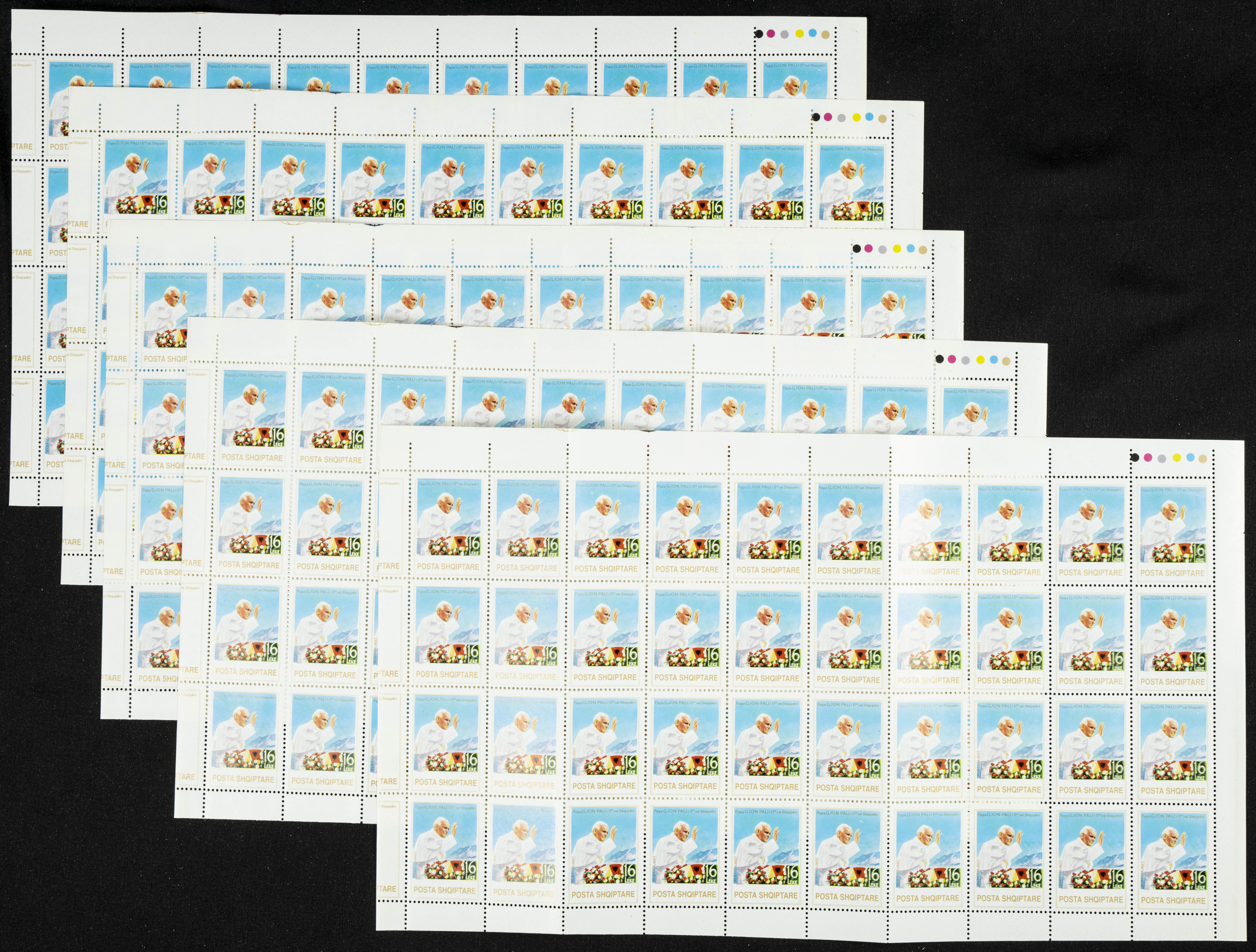 English Yvert 2298(200). 1993. Set of two hundred Albanian stamps, JOHN PAUL II 1992, mint condition. TO BE EXAMINED. Yvert 2022: 500 Euros