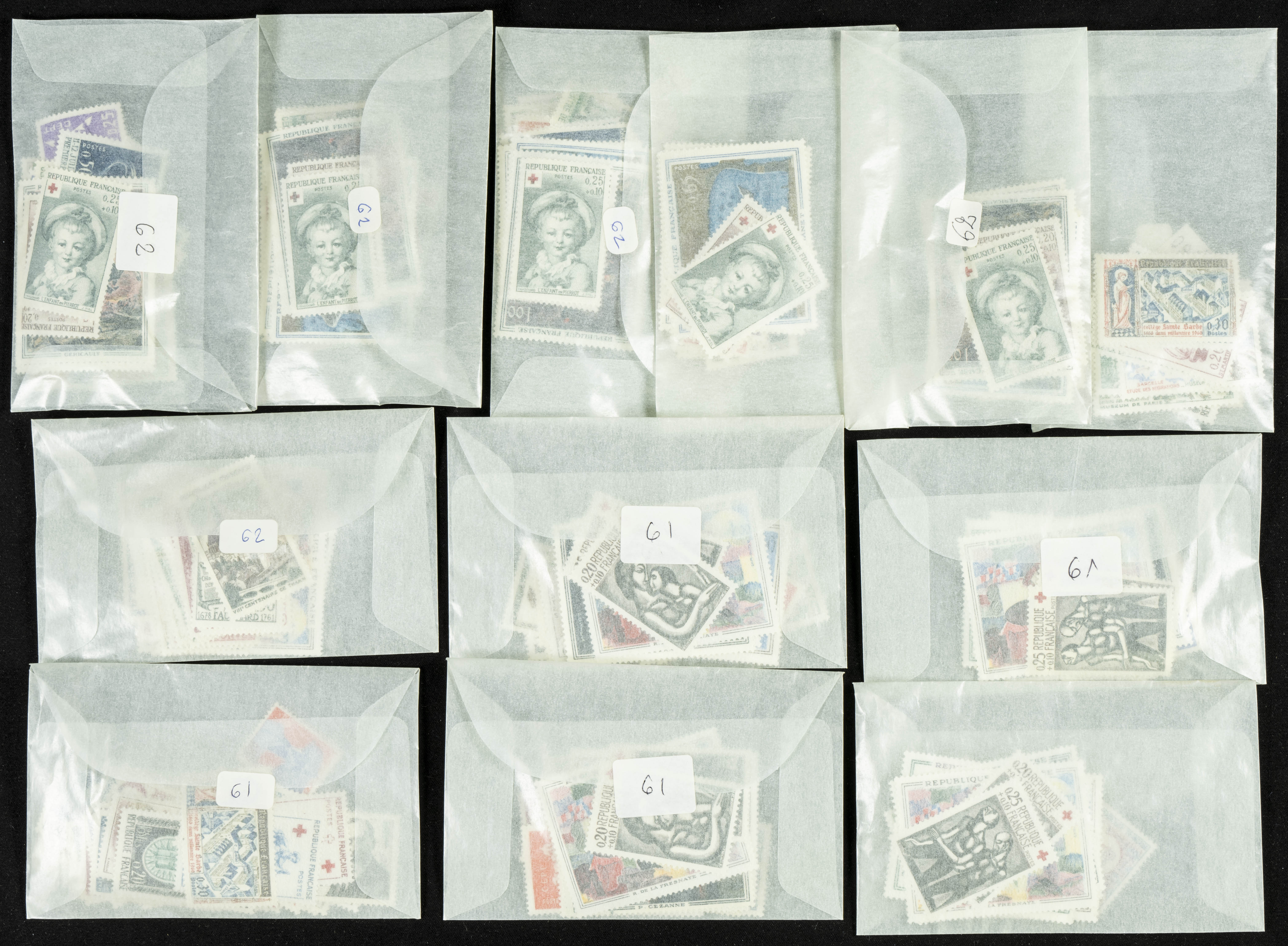 English Yvert 1281/24(6), 1325/67(6). 1961. Set of six complete years (ordinary postage stamps only) France 1961 and 1962, mint condition. TO BE EXAMINED. Yvert 2026: 726 Euros