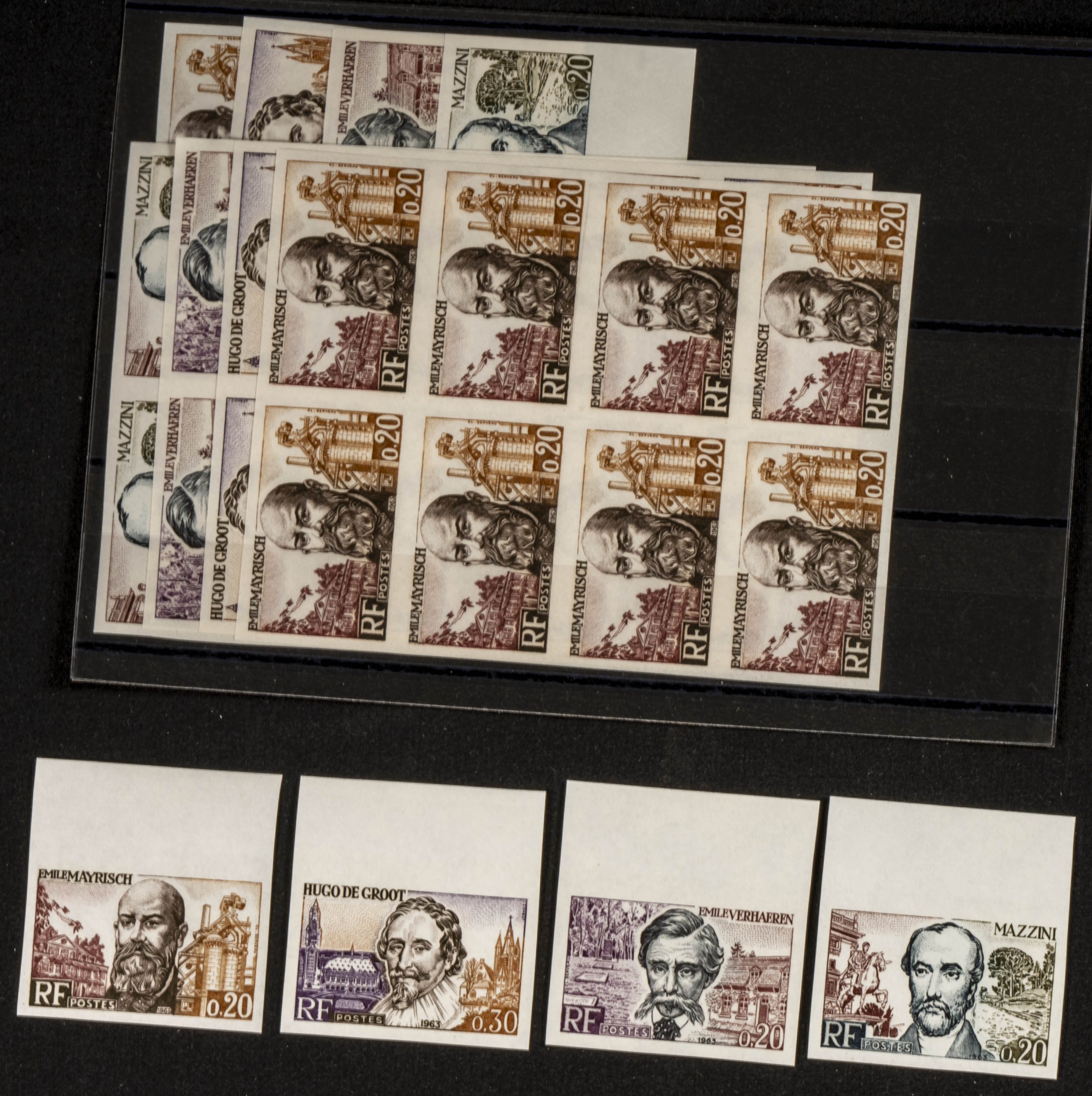 English ★★Yvert 1383/85(10). 1963. Set of ten complete series (except for the 20 ct value) of Personalities of France 1963 and UNPERFORATED. TO BE EXAMINED.
