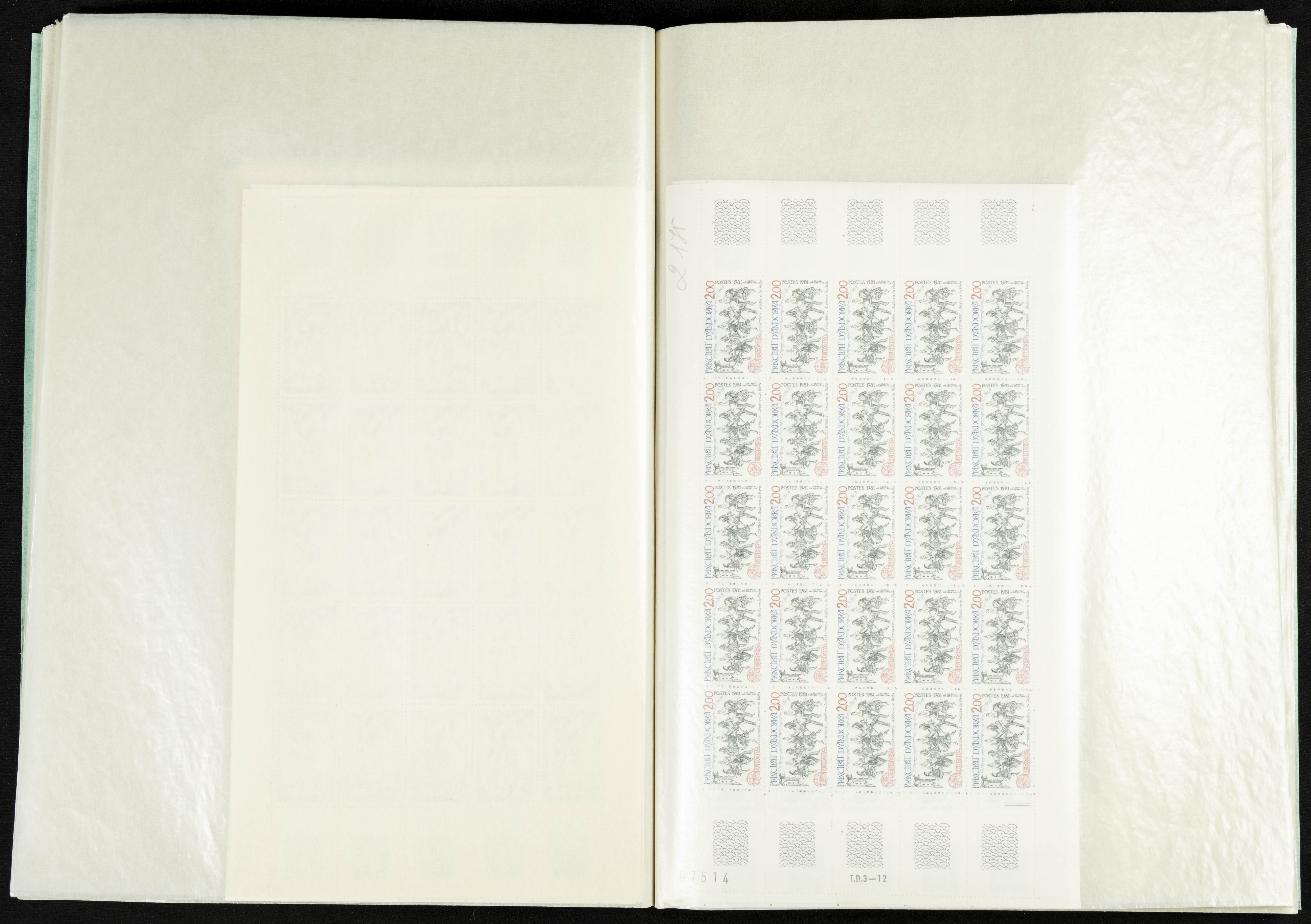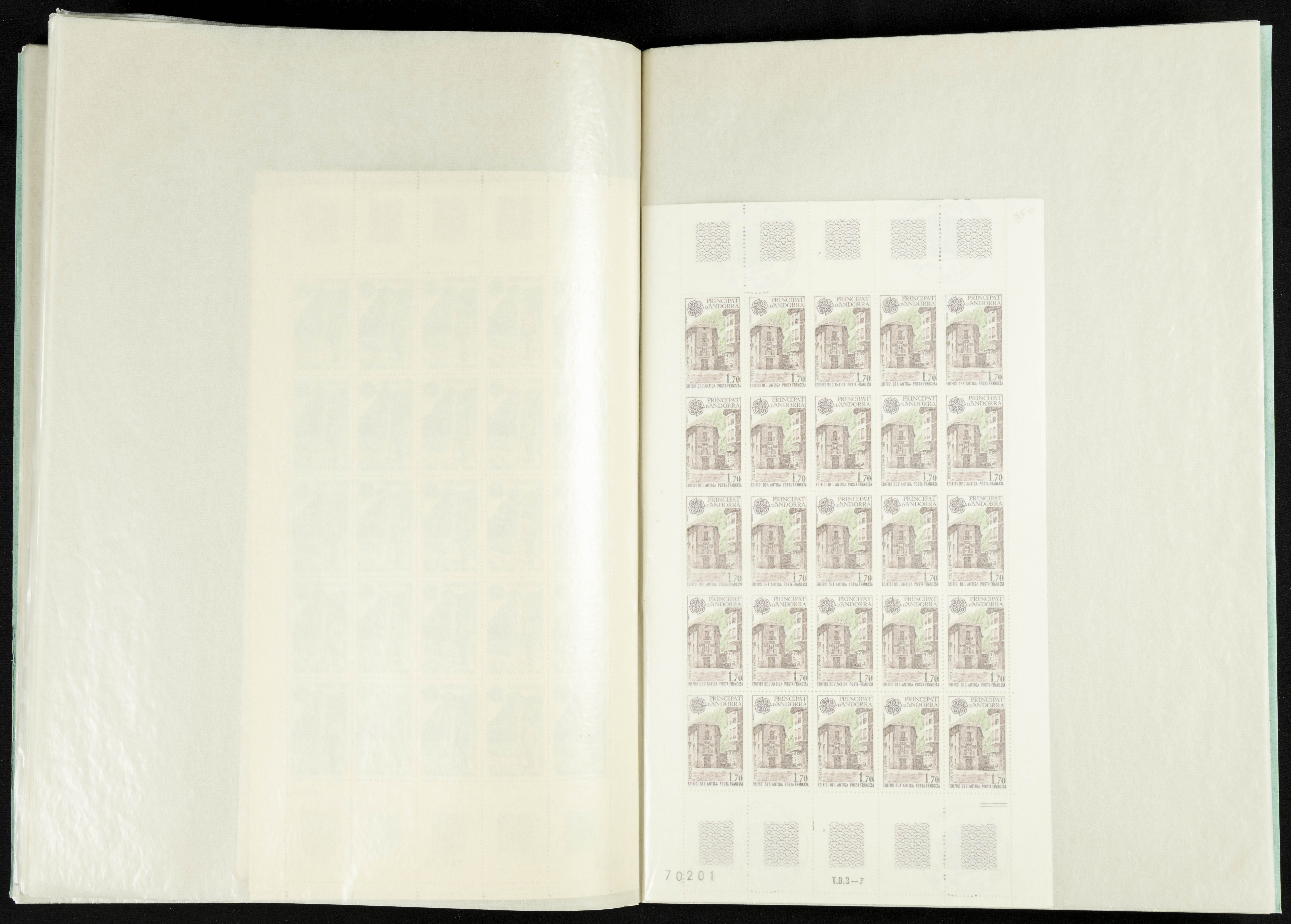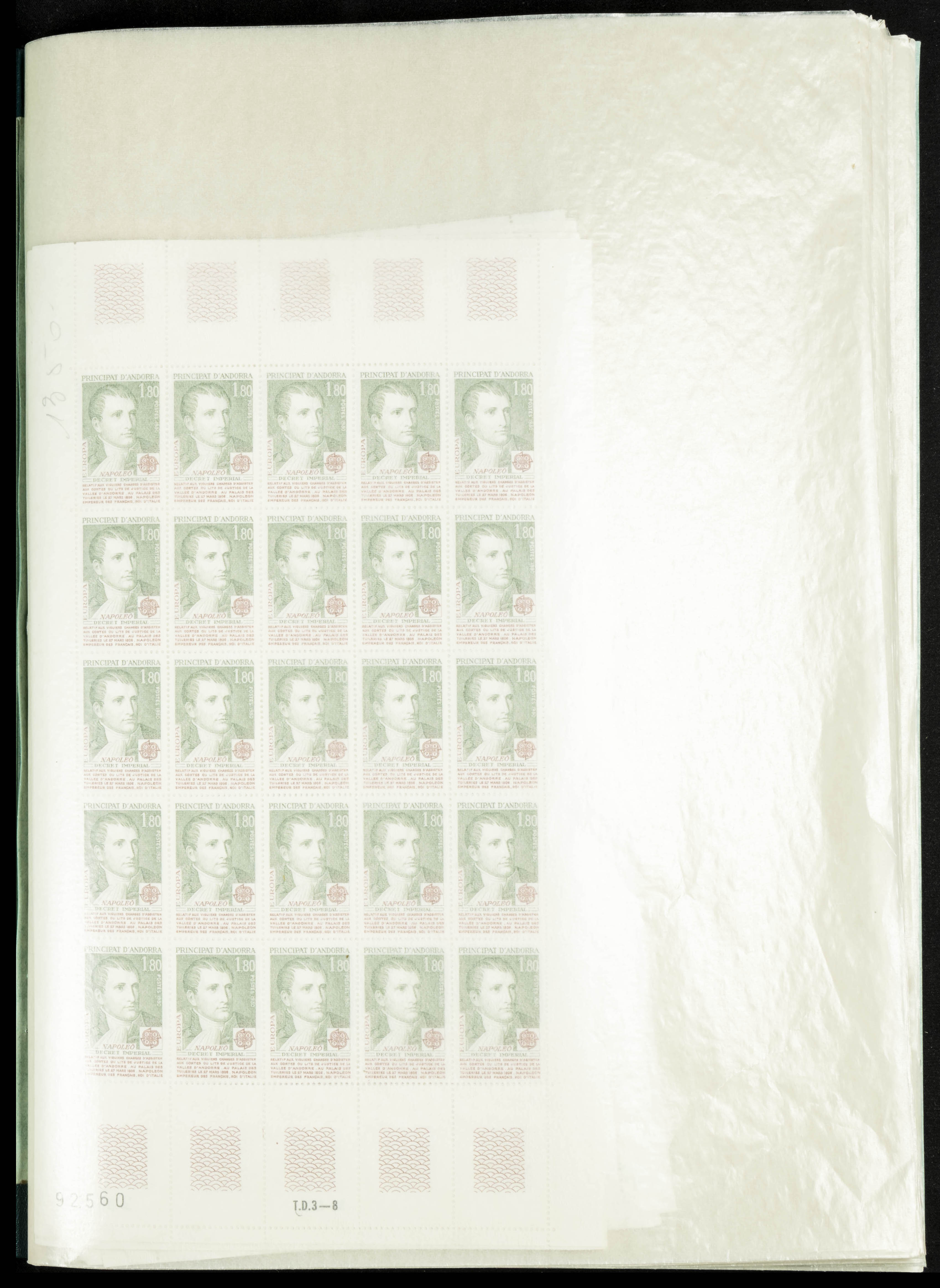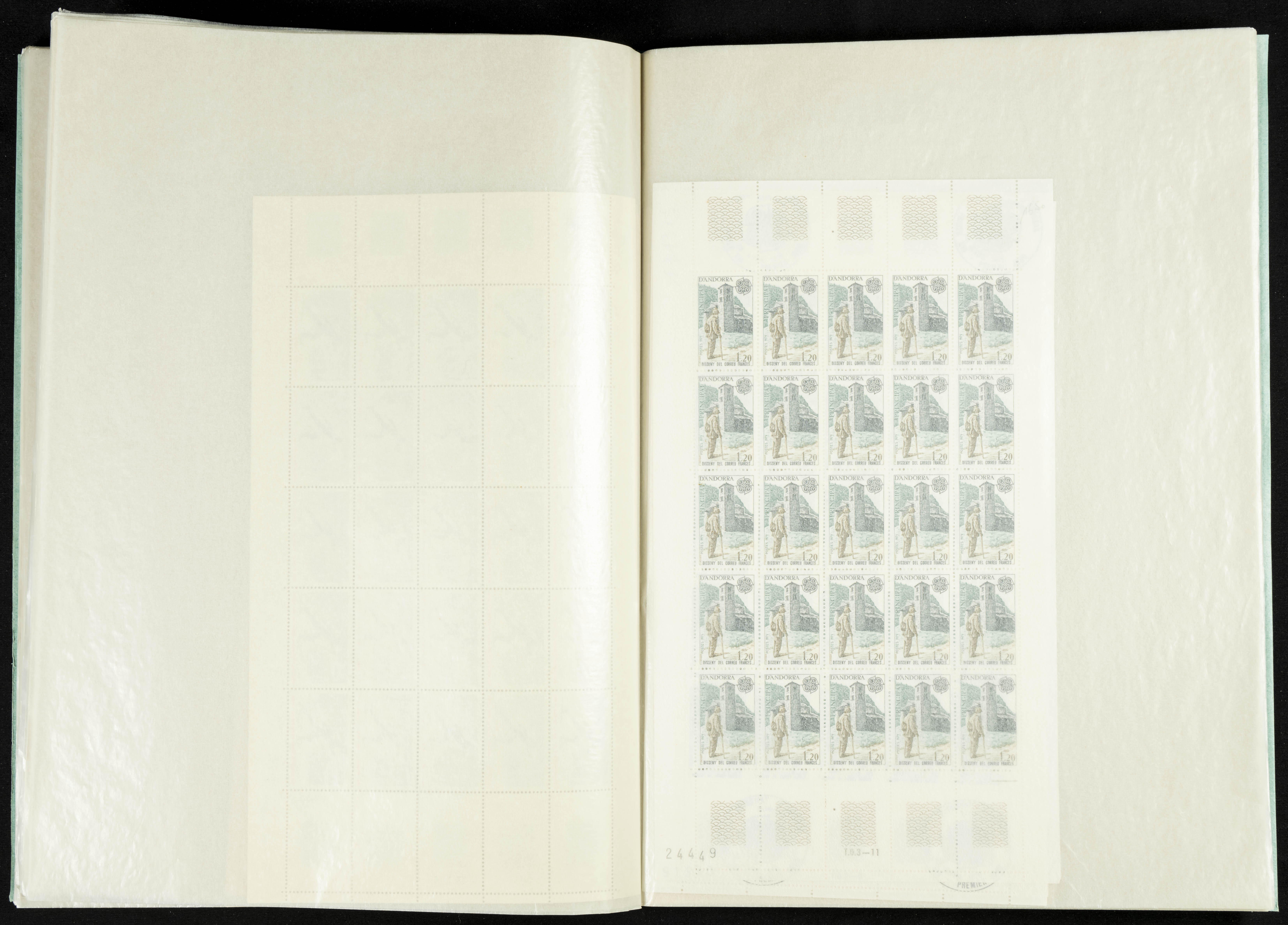 English ★★(1979ca). Complete set of sheets of French Andorran stamps from 1979 to 1983, mint condition, in quantities ranging from twenty-five to one hundred and ten sets of each (list attached). TO BE EXAMINED. Yvert 2026: +5,300 Euros