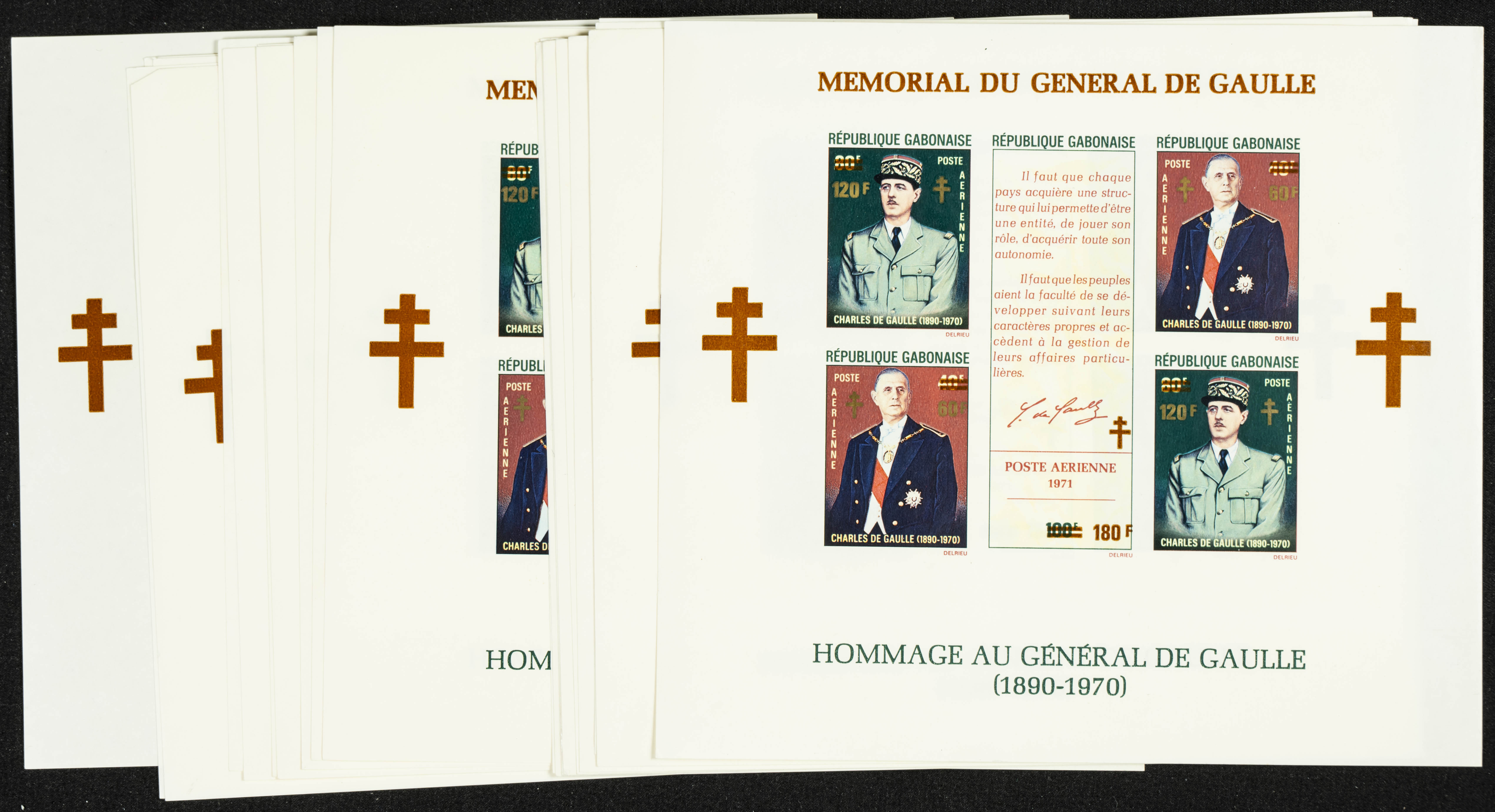 English ★★Yvert HB20(23). 1972. Set of twenty-three imperforate CHARLES DE GAULLE 1972 pad sheets from Gabon, in mint condition. TO BE EXAMINED.