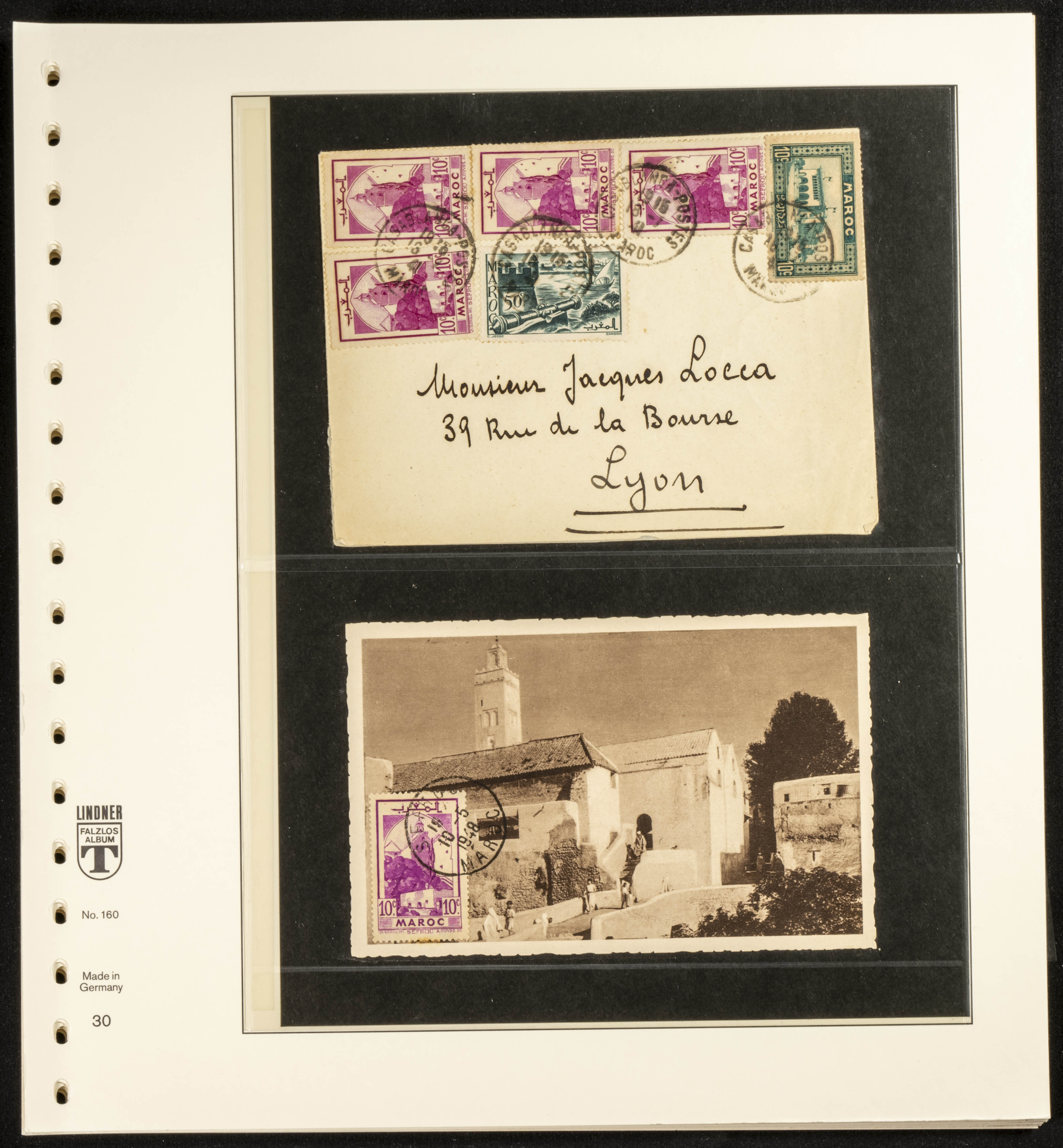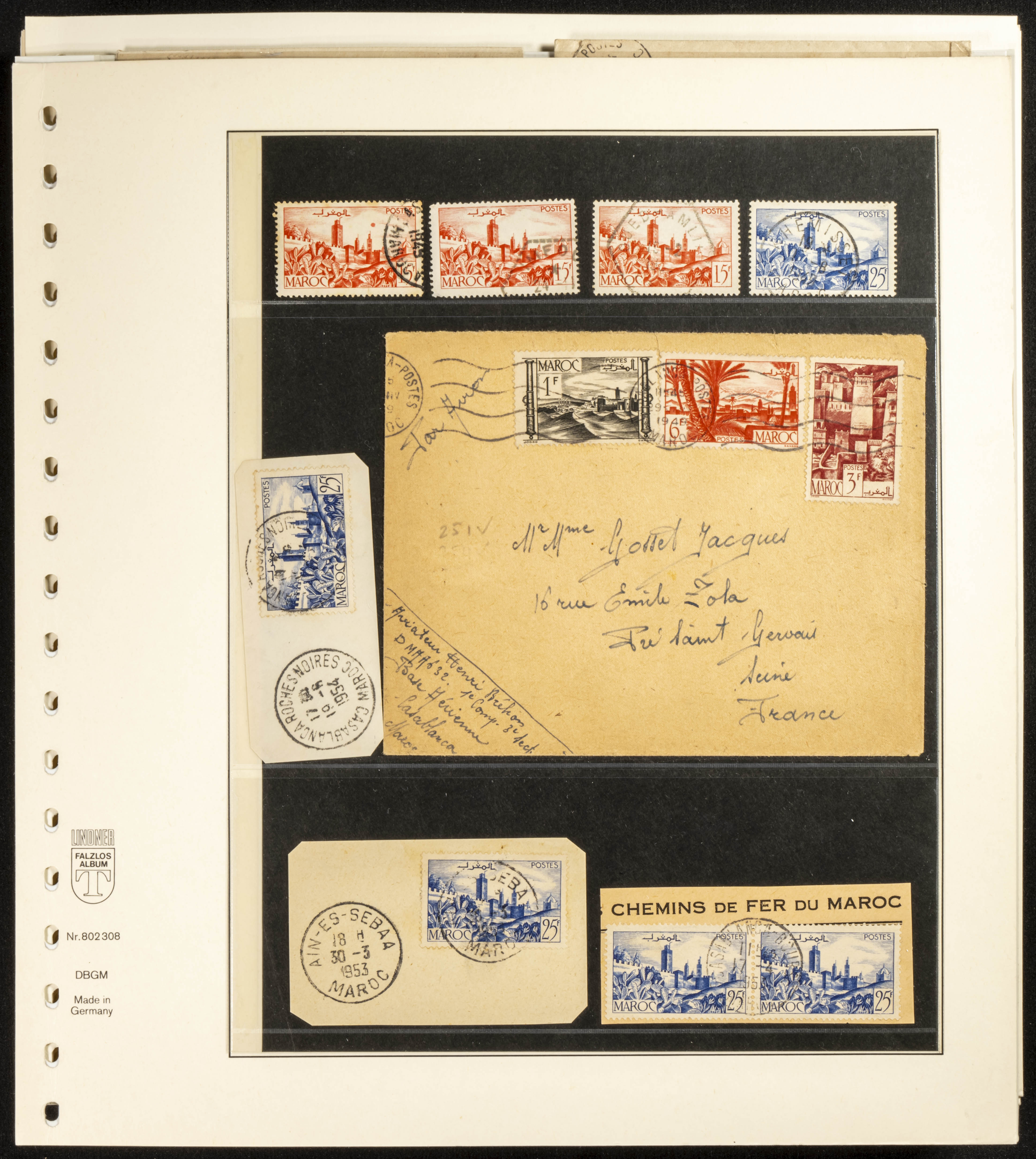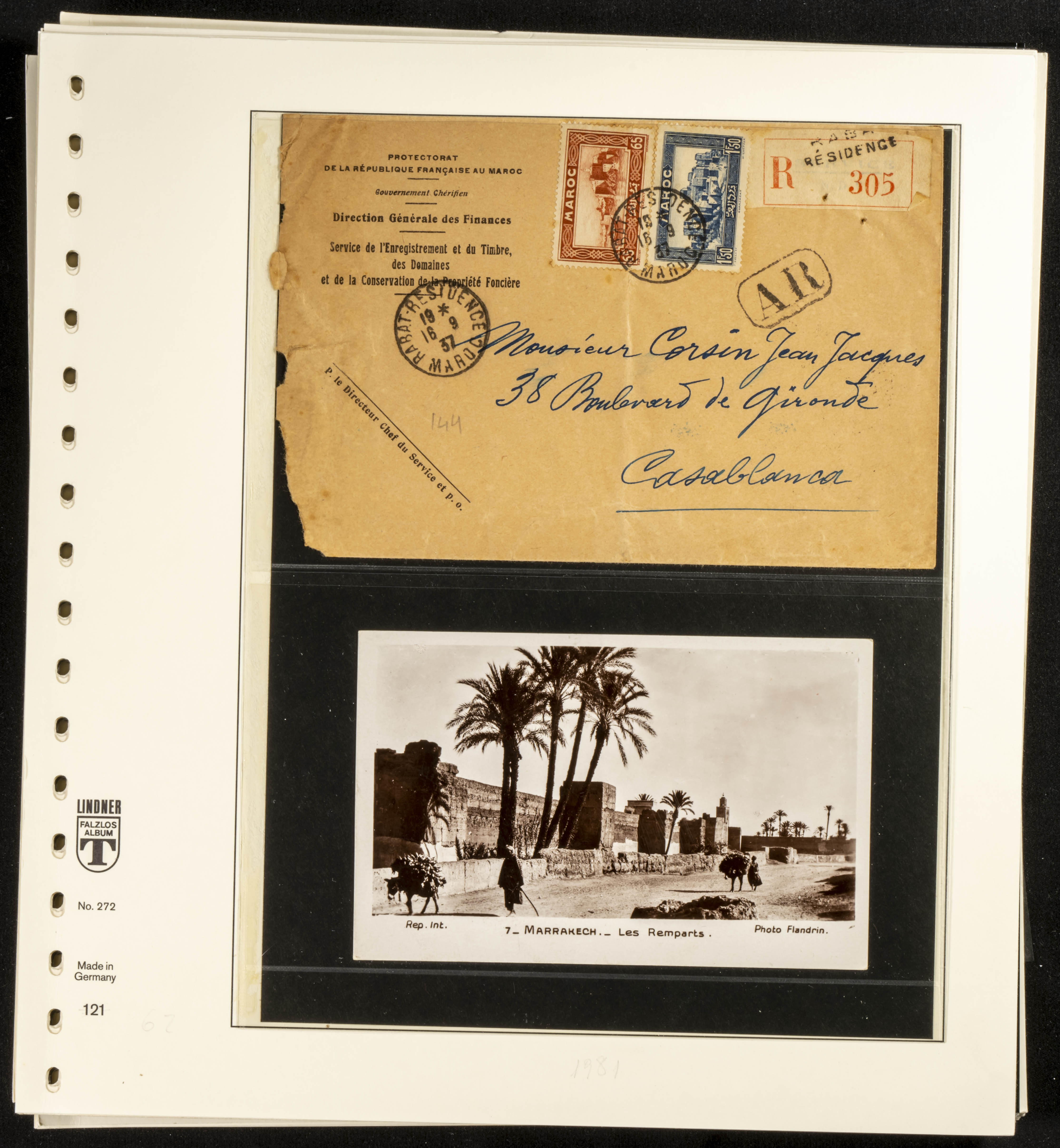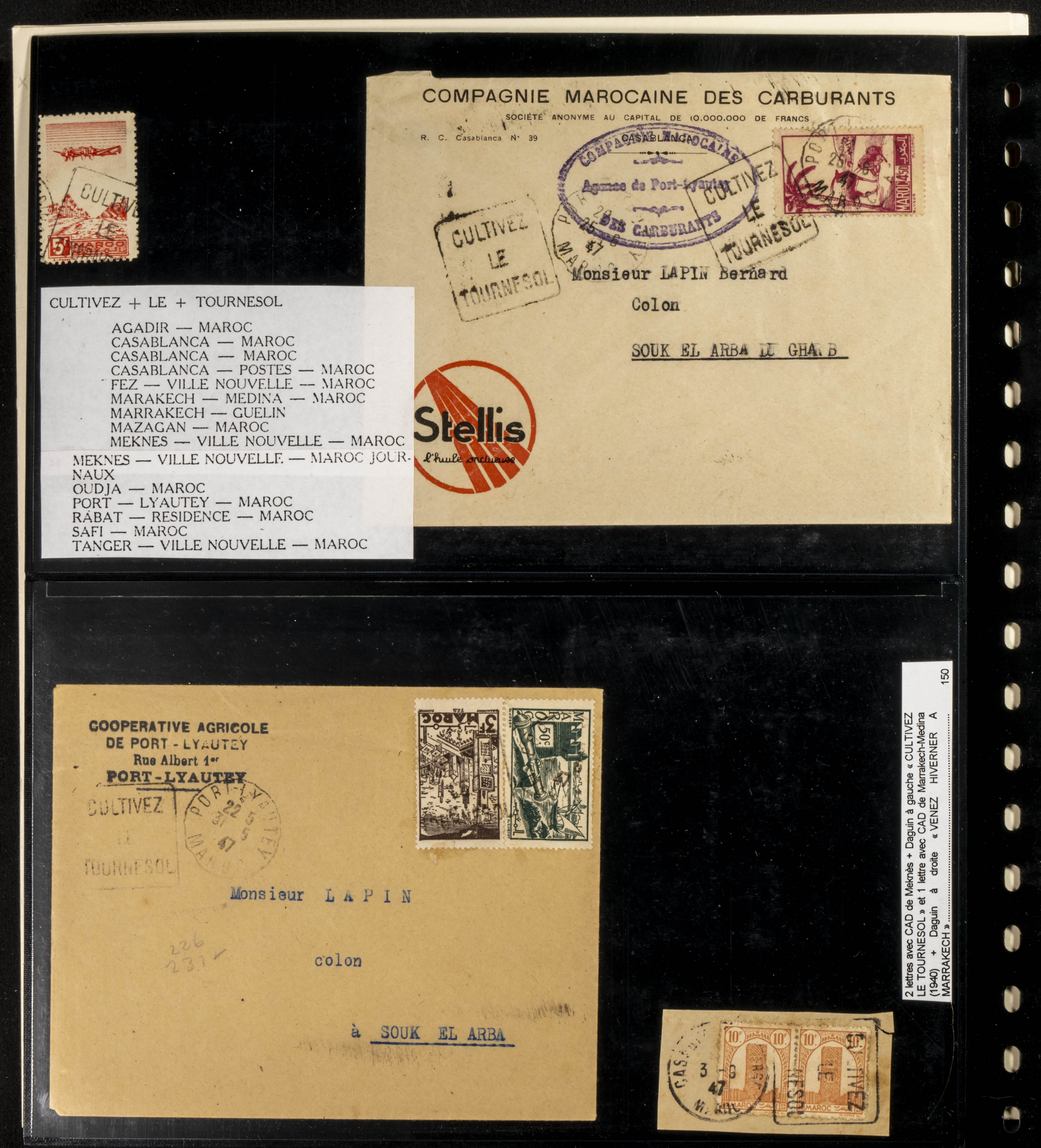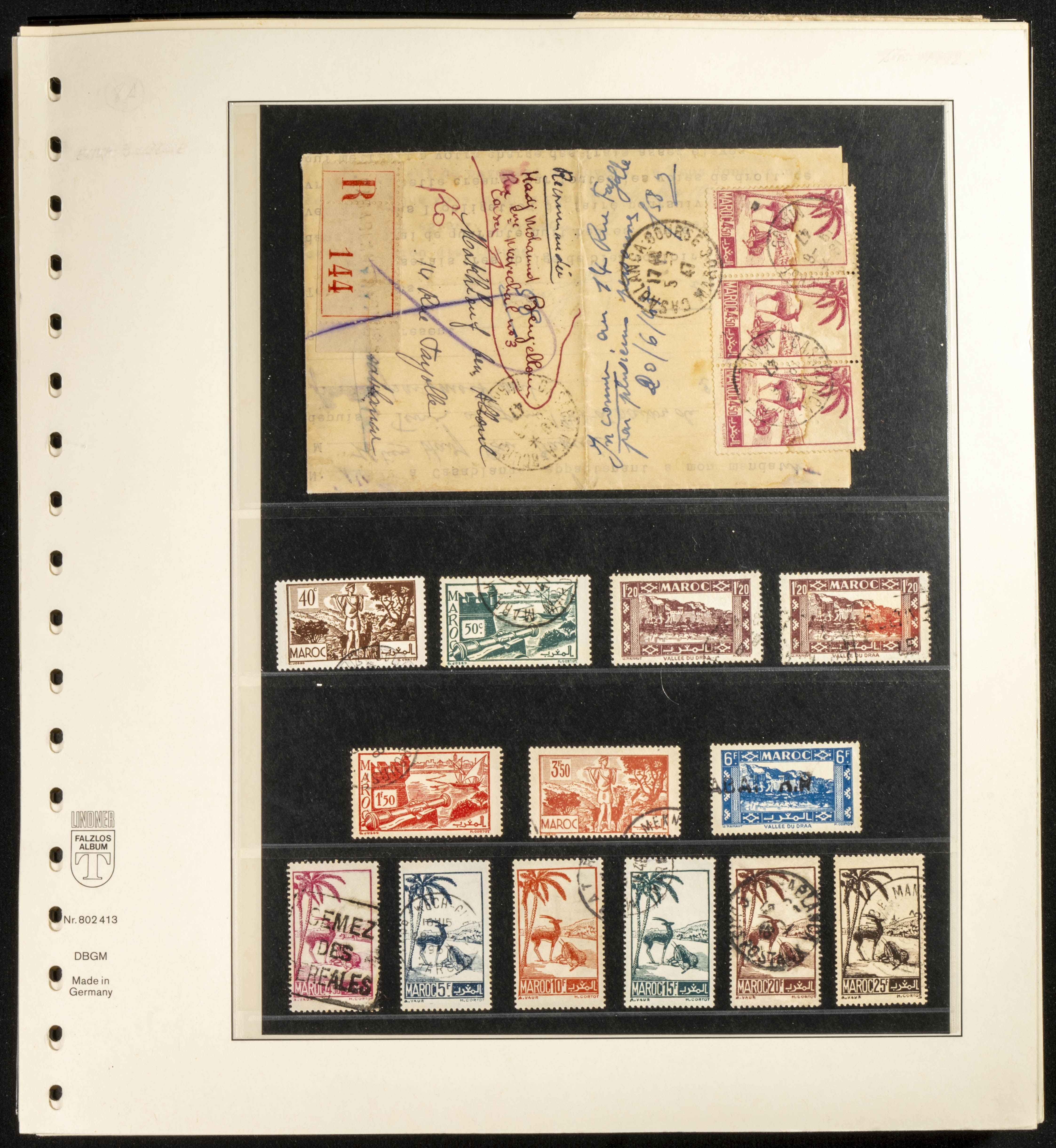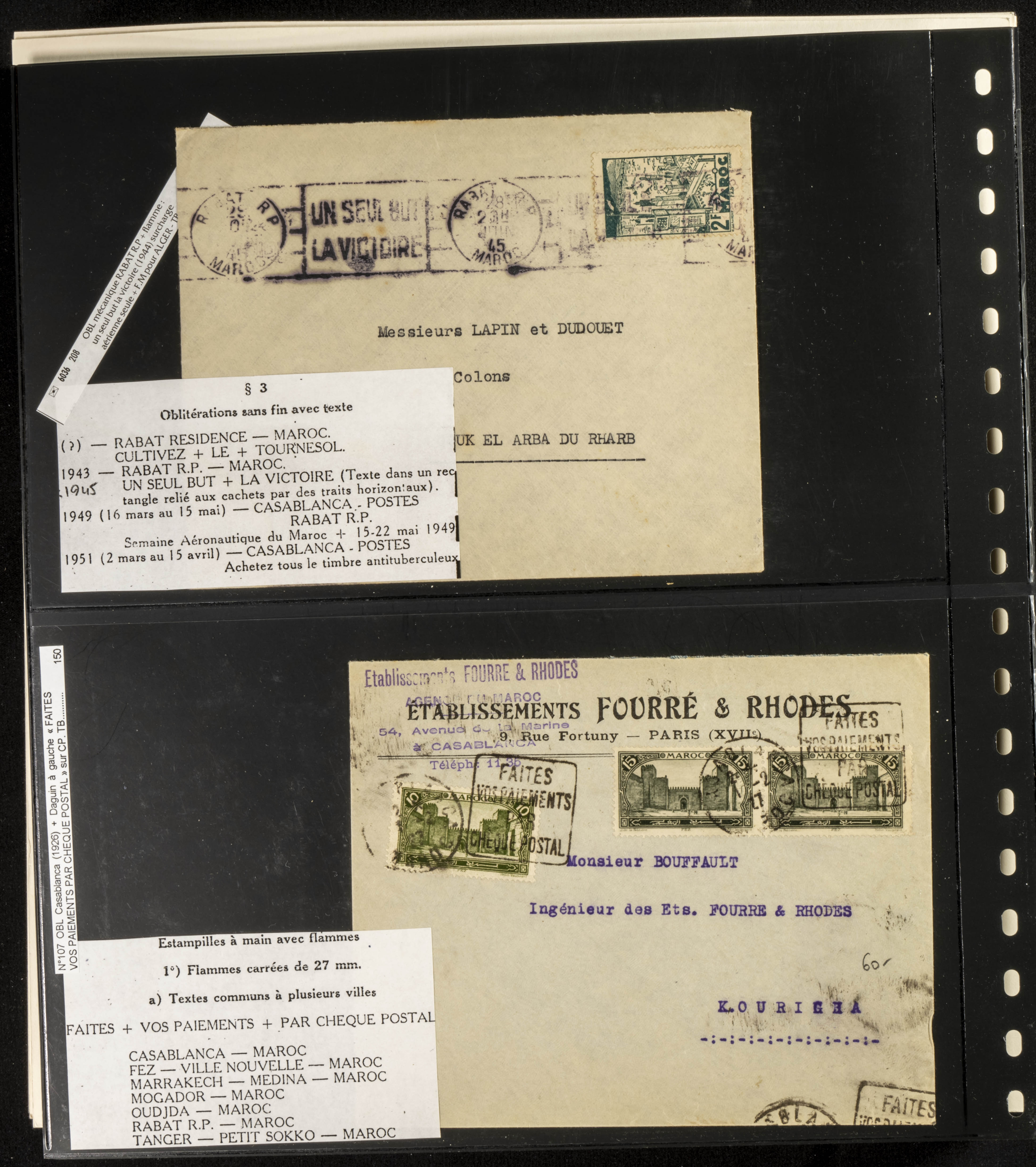 (circa 1891). Spectacular collection of used loose stamps and Postal History of French Morocco between 1891 and 1957. Includes early issues of French stamps with Moroccan postmarks, hundreds of circulated letters and postcards, some sent by registered mail, many with varied letterheads and unusual postage, hundreds of stamps with diverse postmarks (organized by issue alongside the letters), machine-printed postage, airmail, etc. EXAMINATION IS ESSENTIAL.