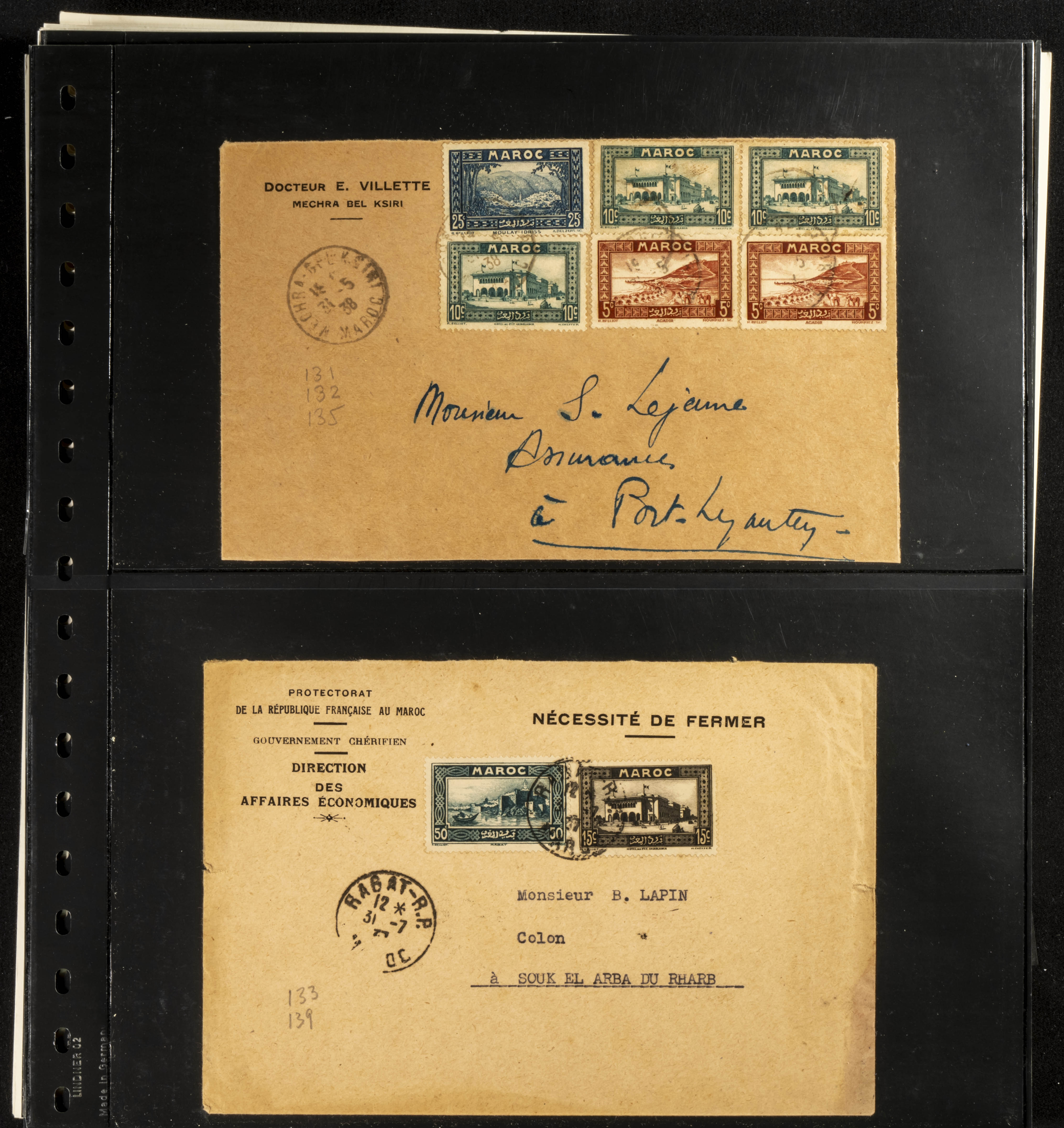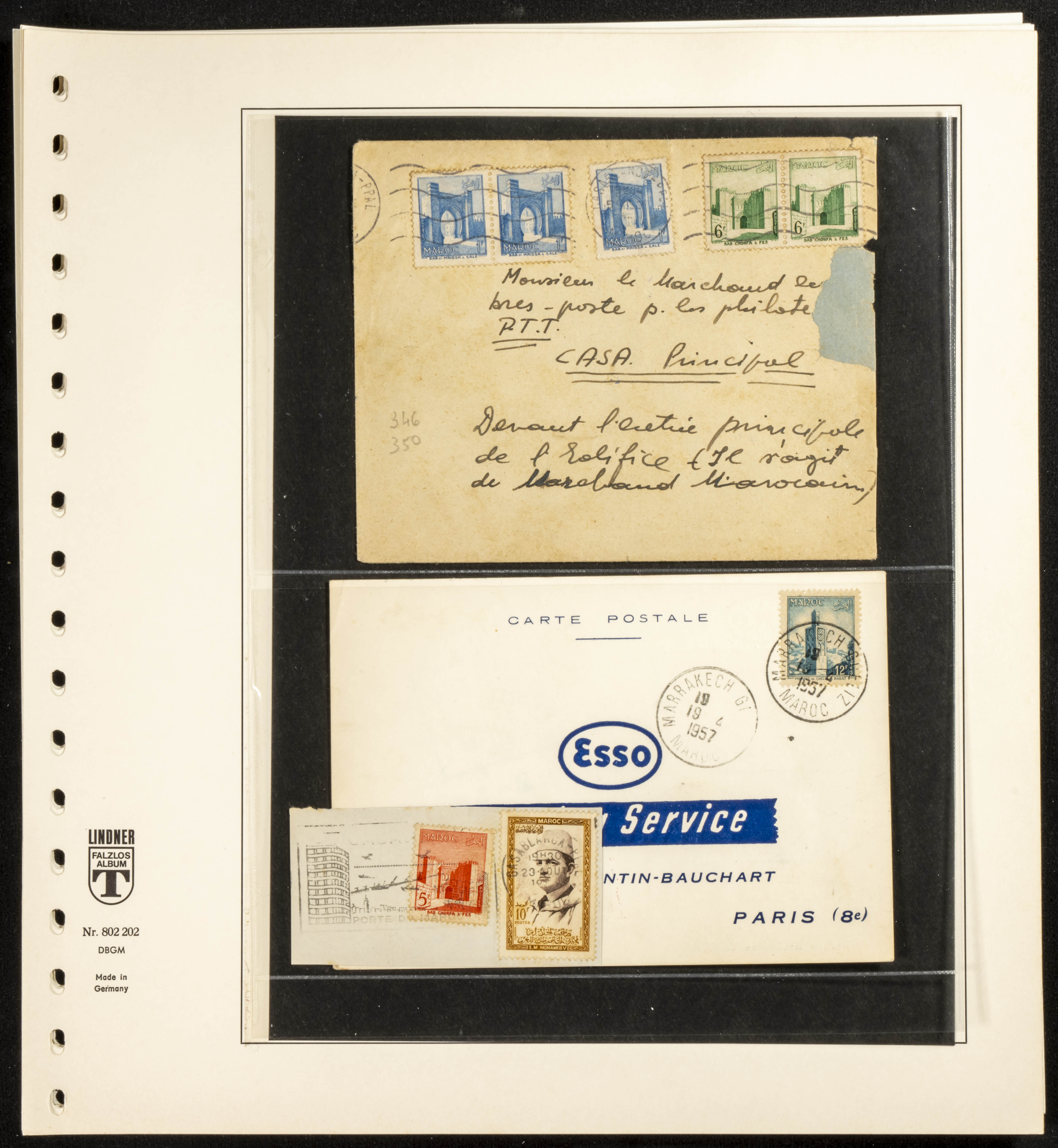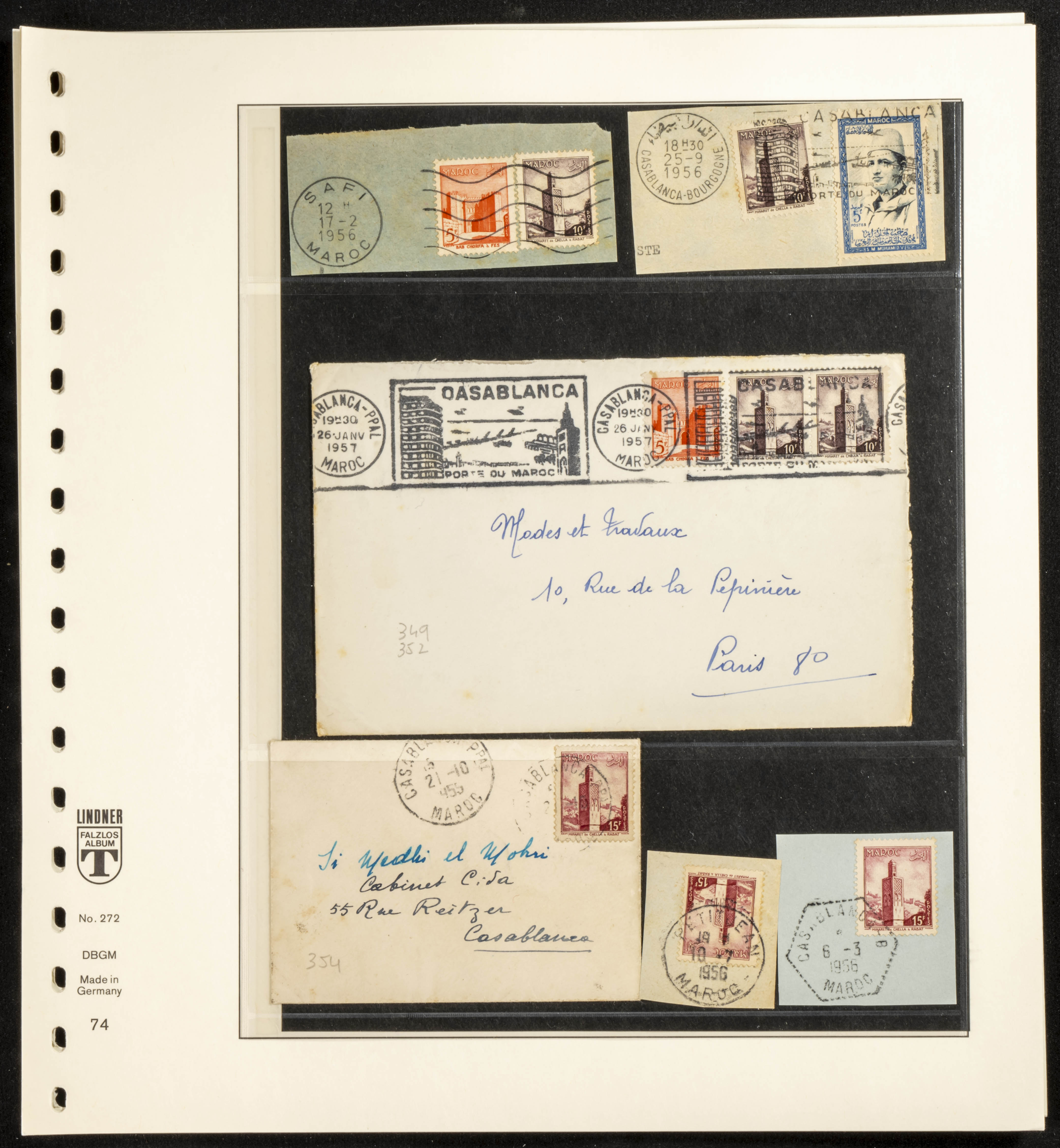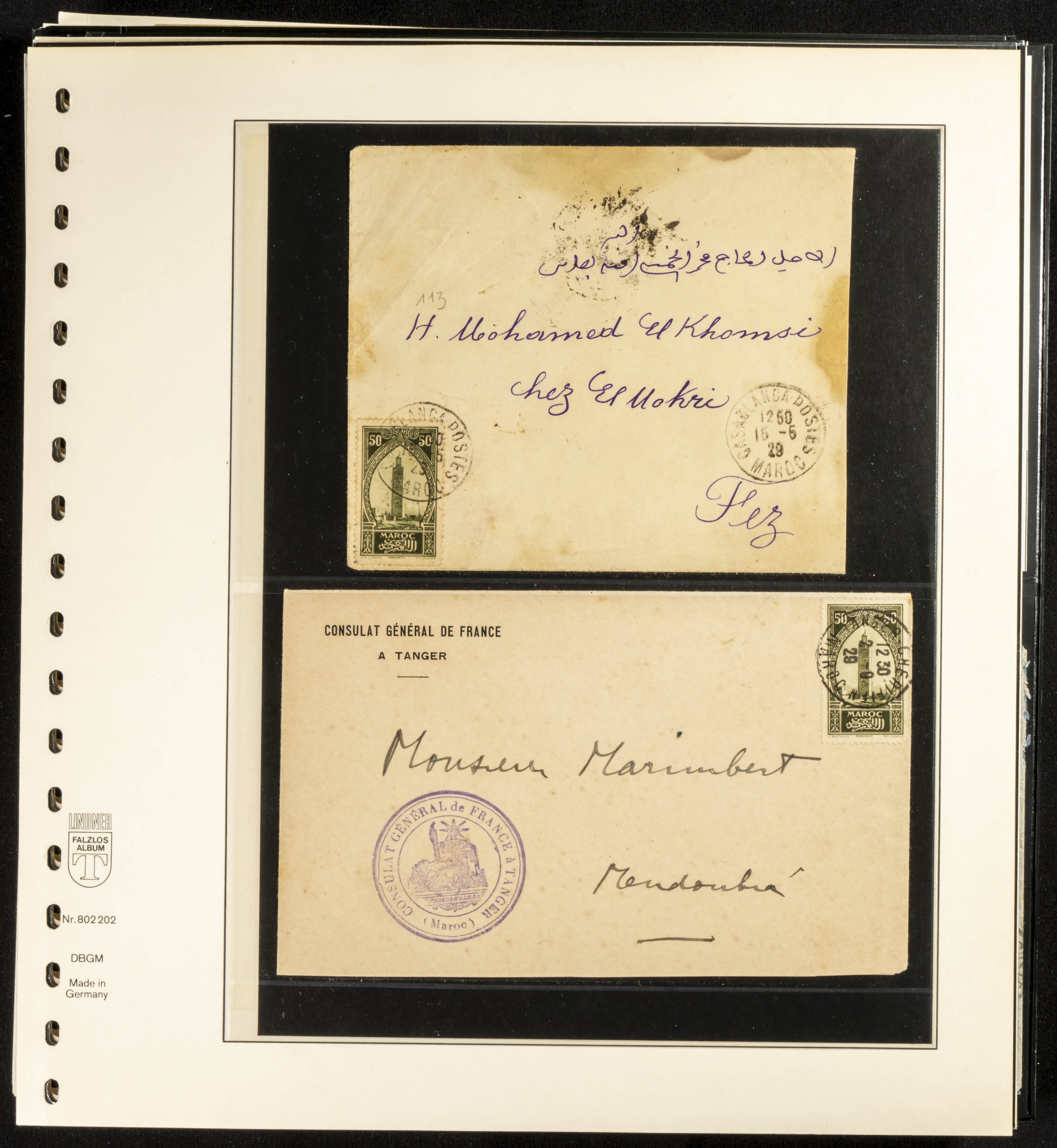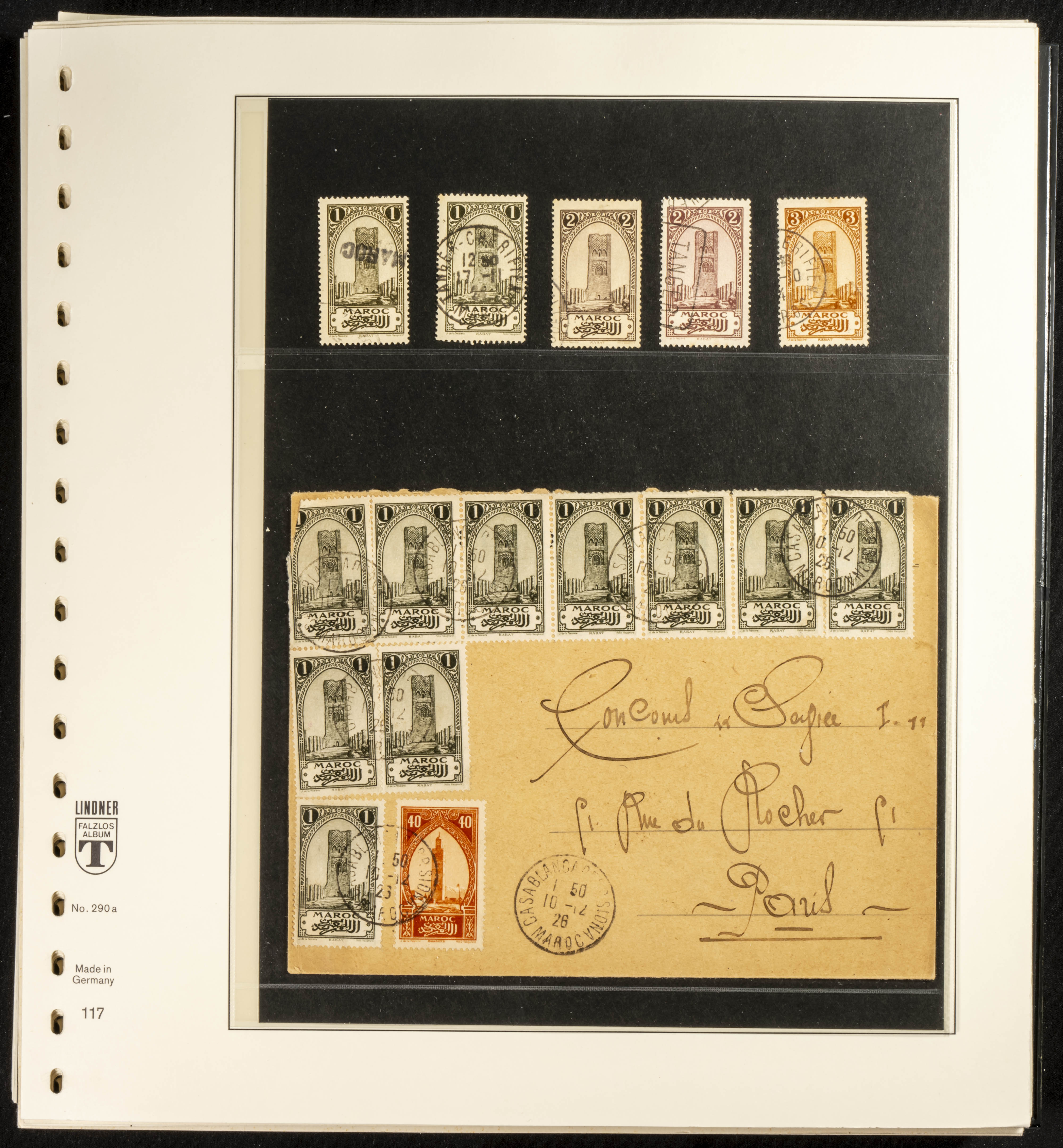 (circa 1891). Spectacular collection of used loose stamps and Postal History of French Morocco between 1891 and 1957. Includes early issues of French stamps with Moroccan postmarks, hundreds of circulated letters and postcards, some sent by registered mail, many with varied letterheads and unusual postage, hundreds of stamps with diverse postmarks (organized by issue alongside the letters), machine-printed postage, airmail, etc. EXAMINATION IS ESSENTIAL.