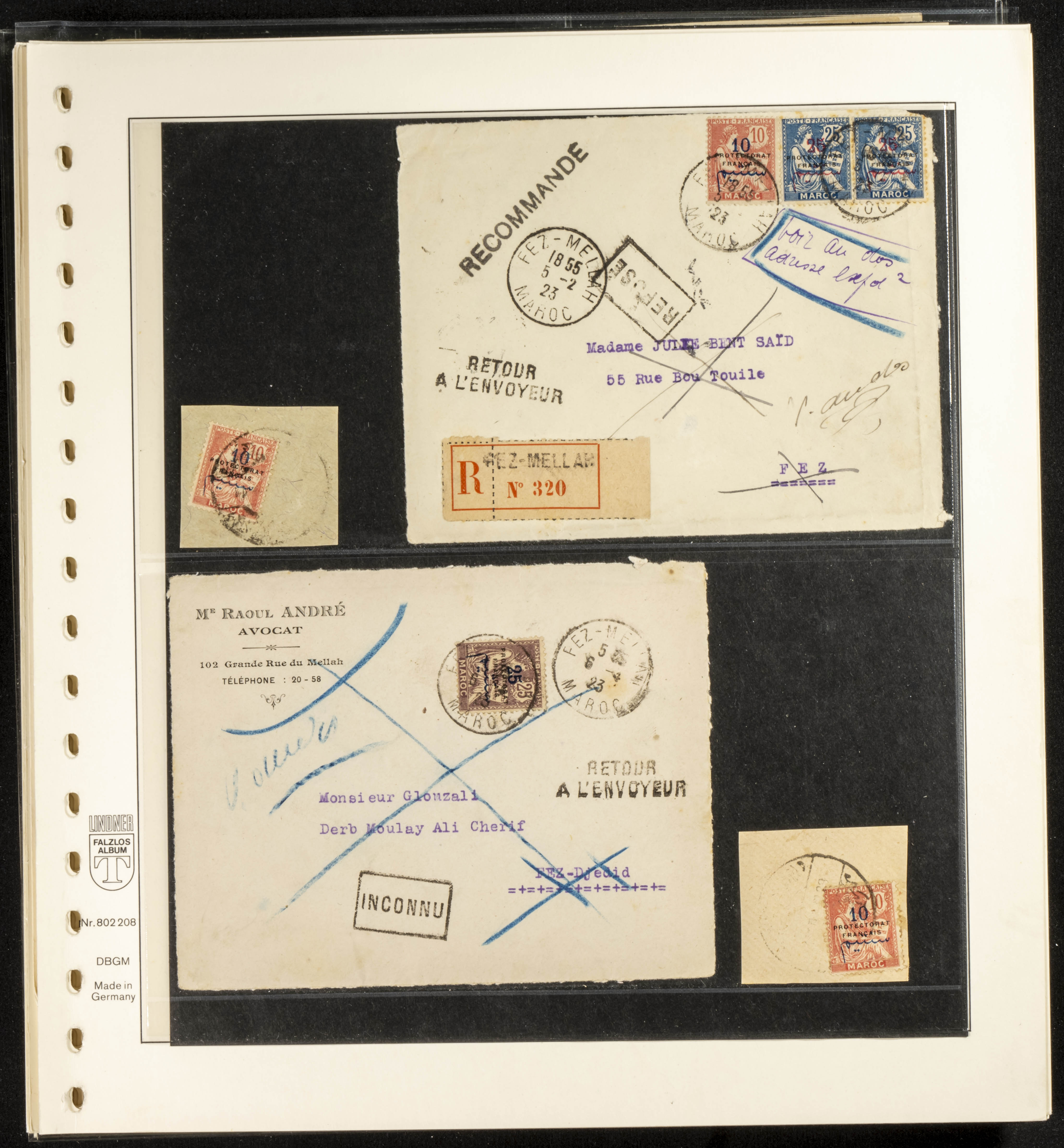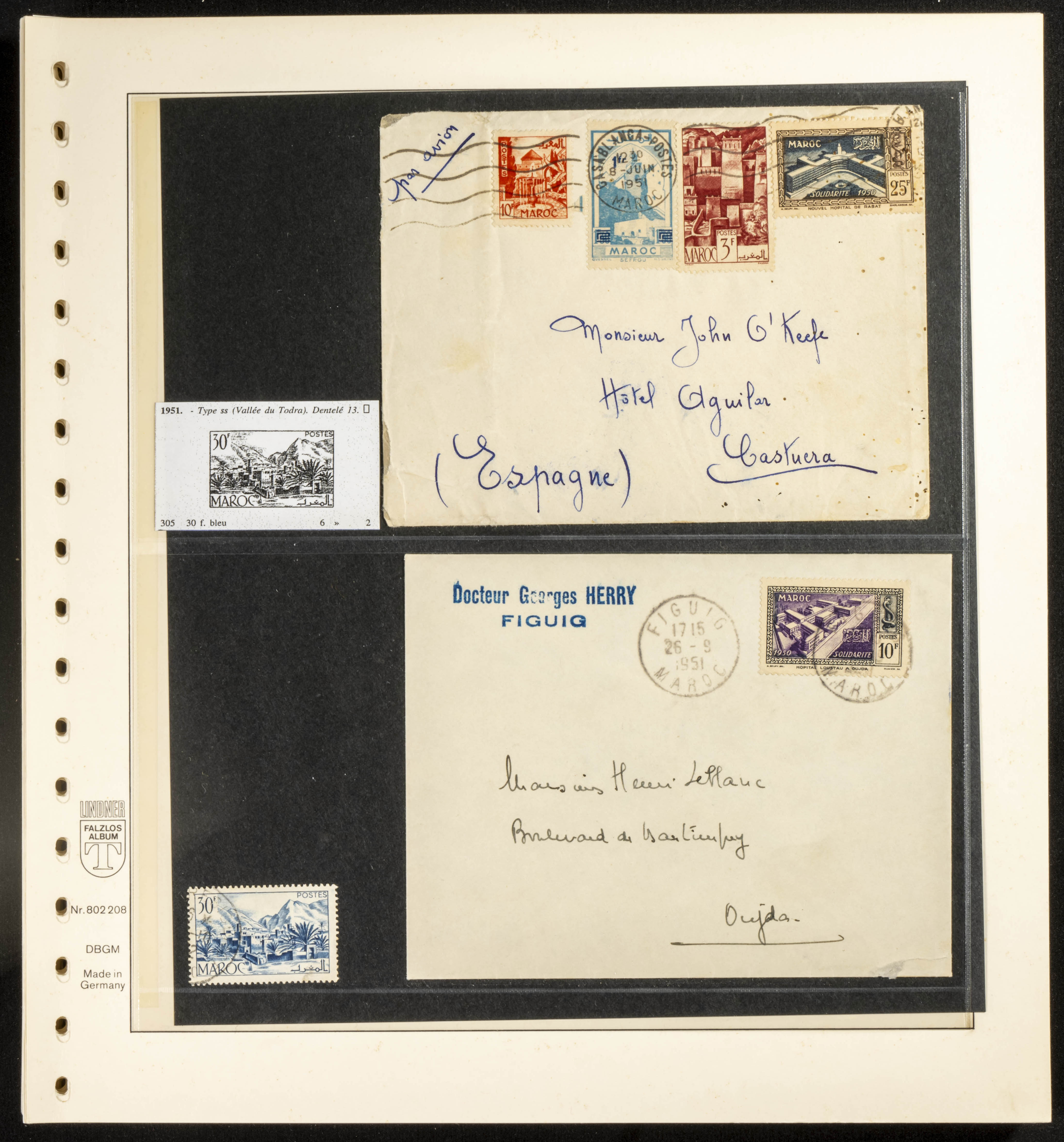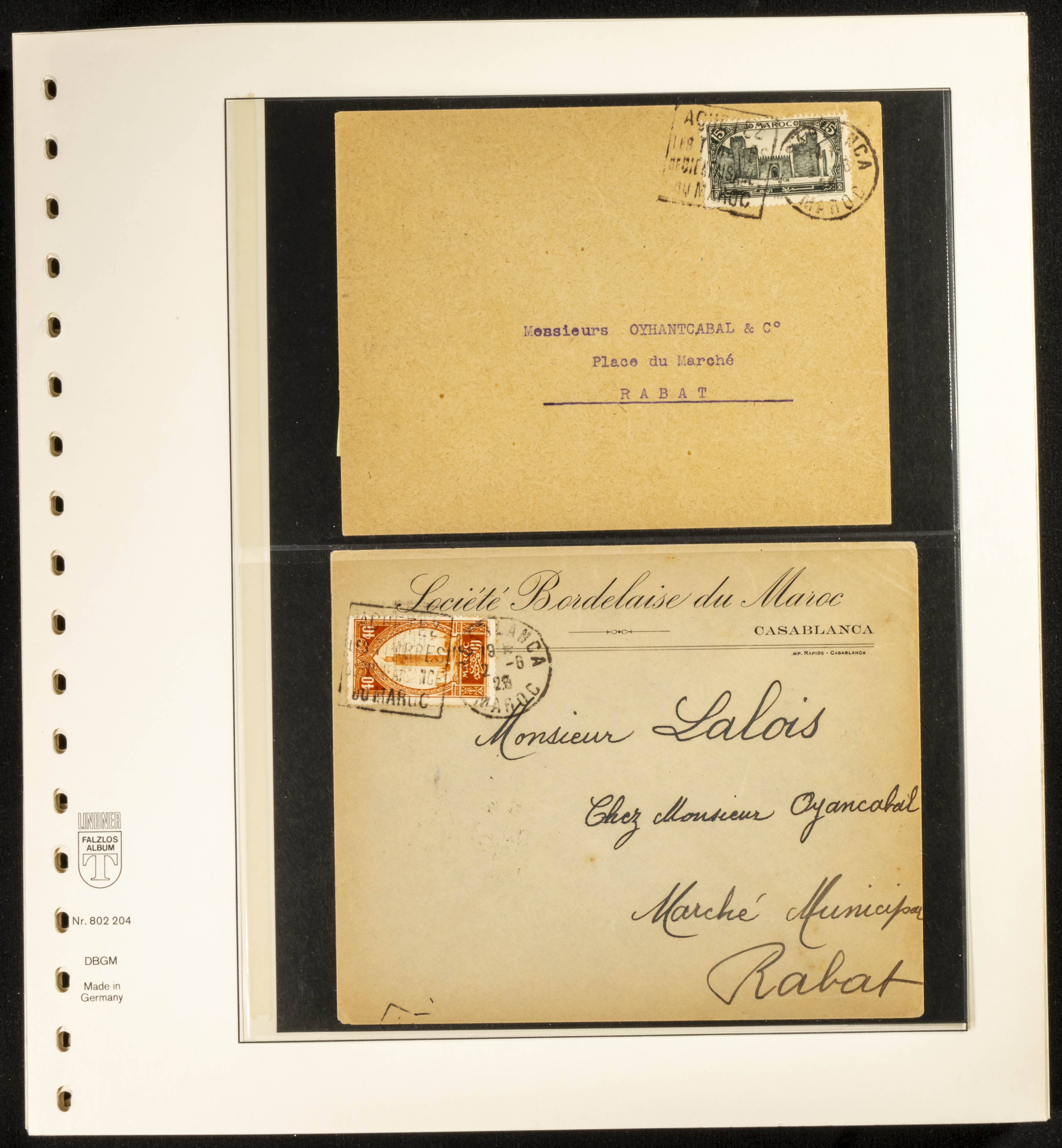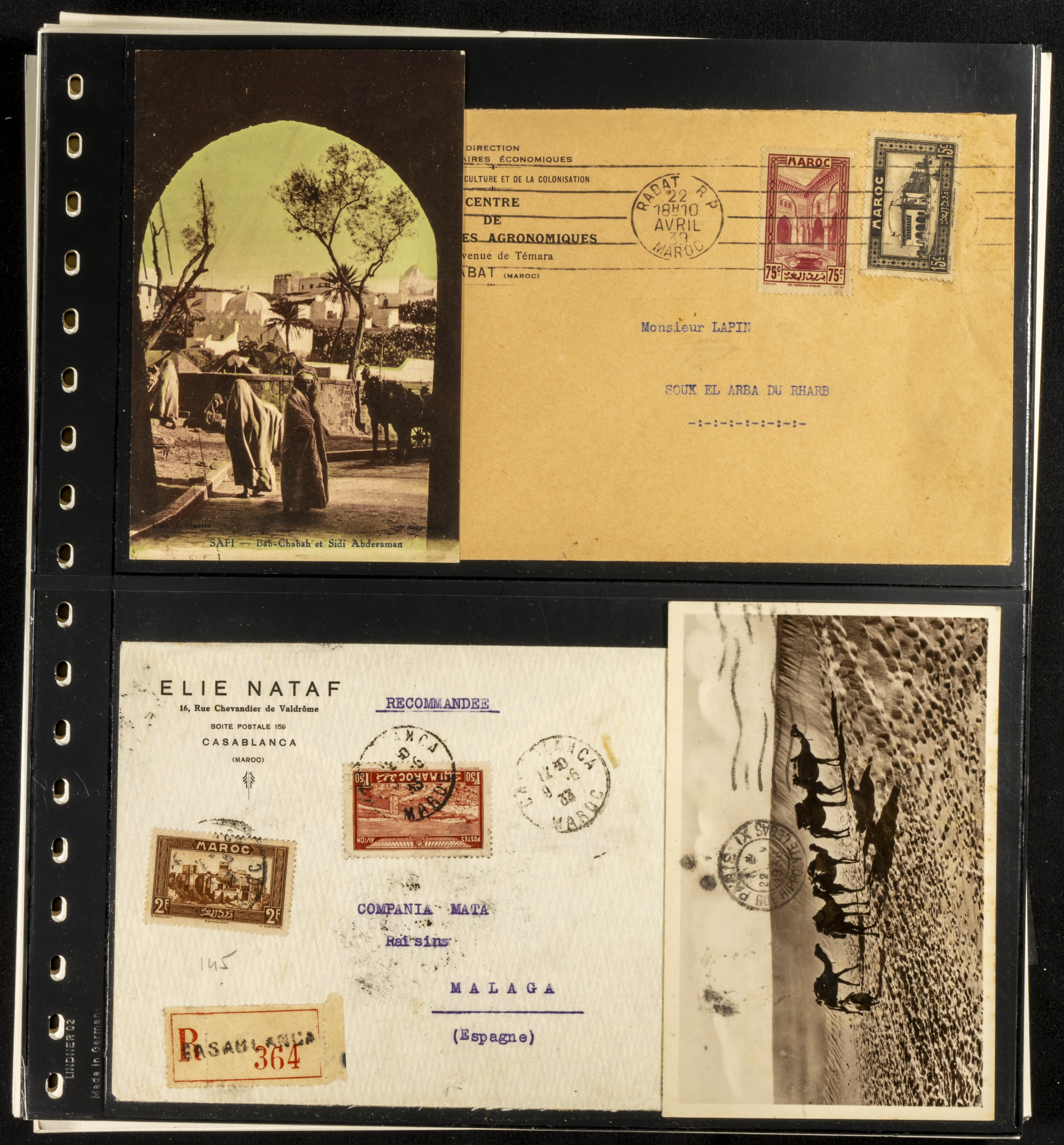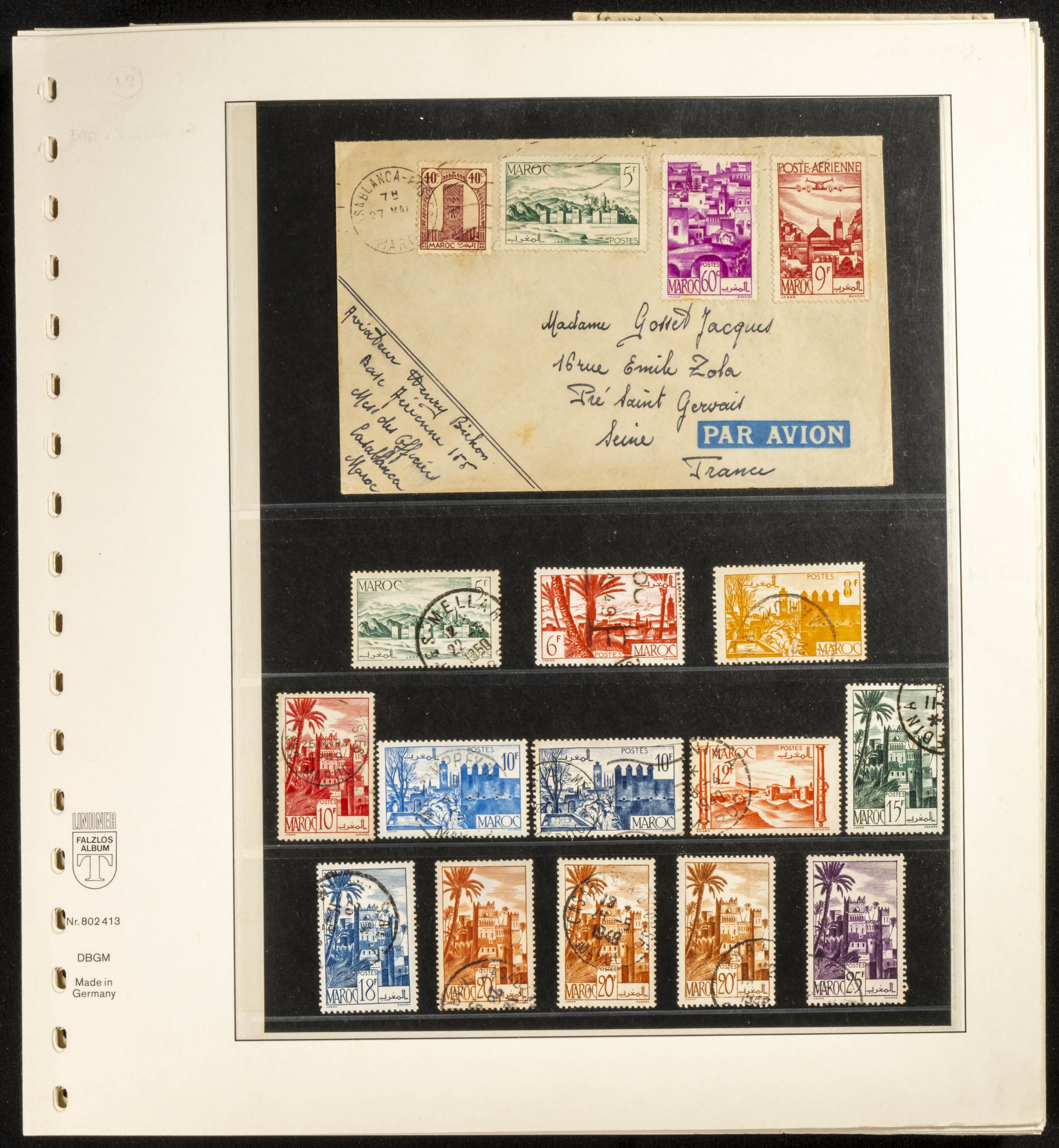 (circa 1891). Spectacular collection of used loose stamps and Postal History of French Morocco between 1891 and 1957. Includes early issues of French stamps with Moroccan postmarks, hundreds of circulated letters and postcards, some sent by registered mail, many with varied letterheads and unusual postage, hundreds of stamps with diverse postmarks (organized by issue alongside the letters), machine-printed postage, airmail, etc. EXAMINATION IS ESSENTIAL.