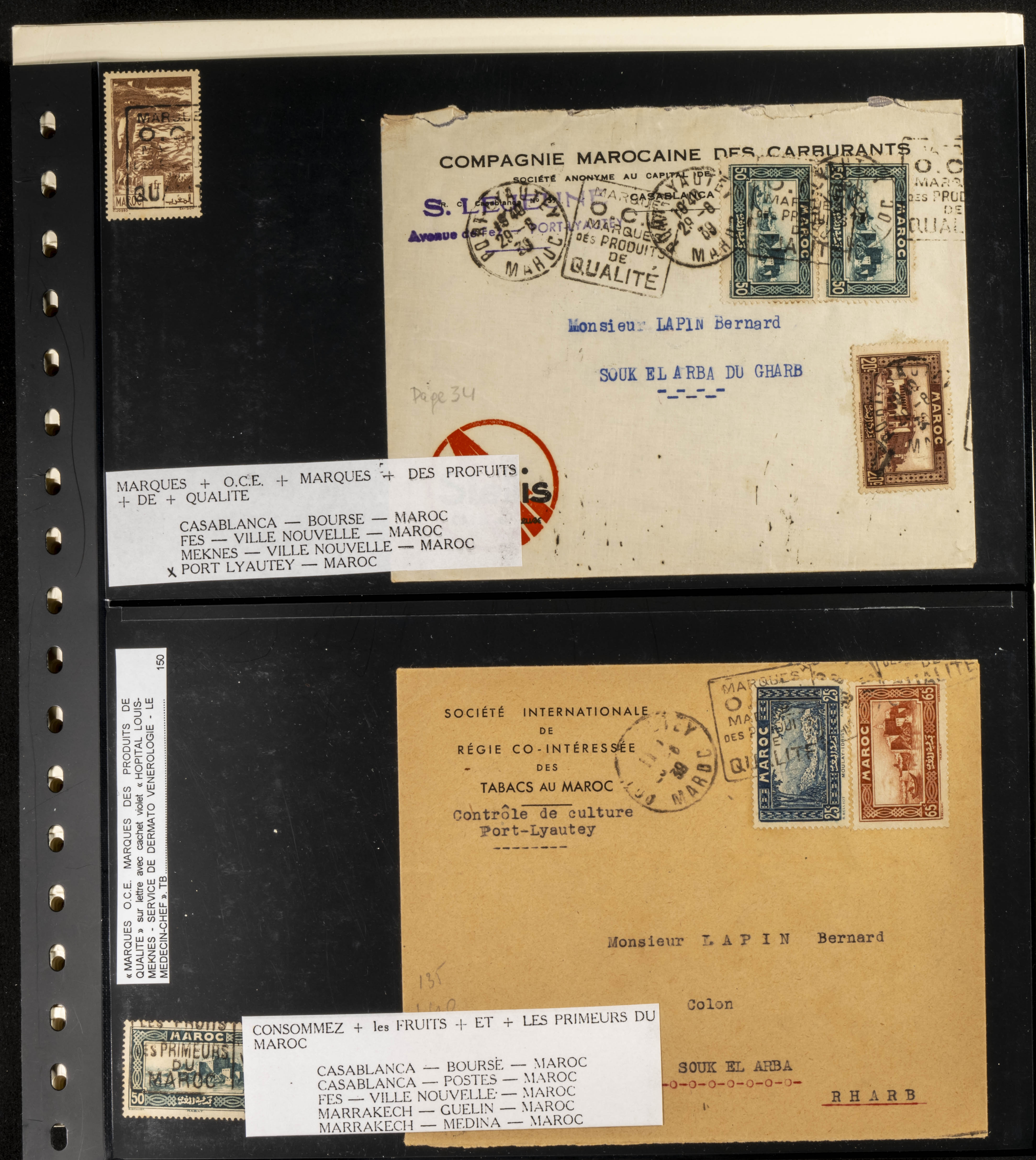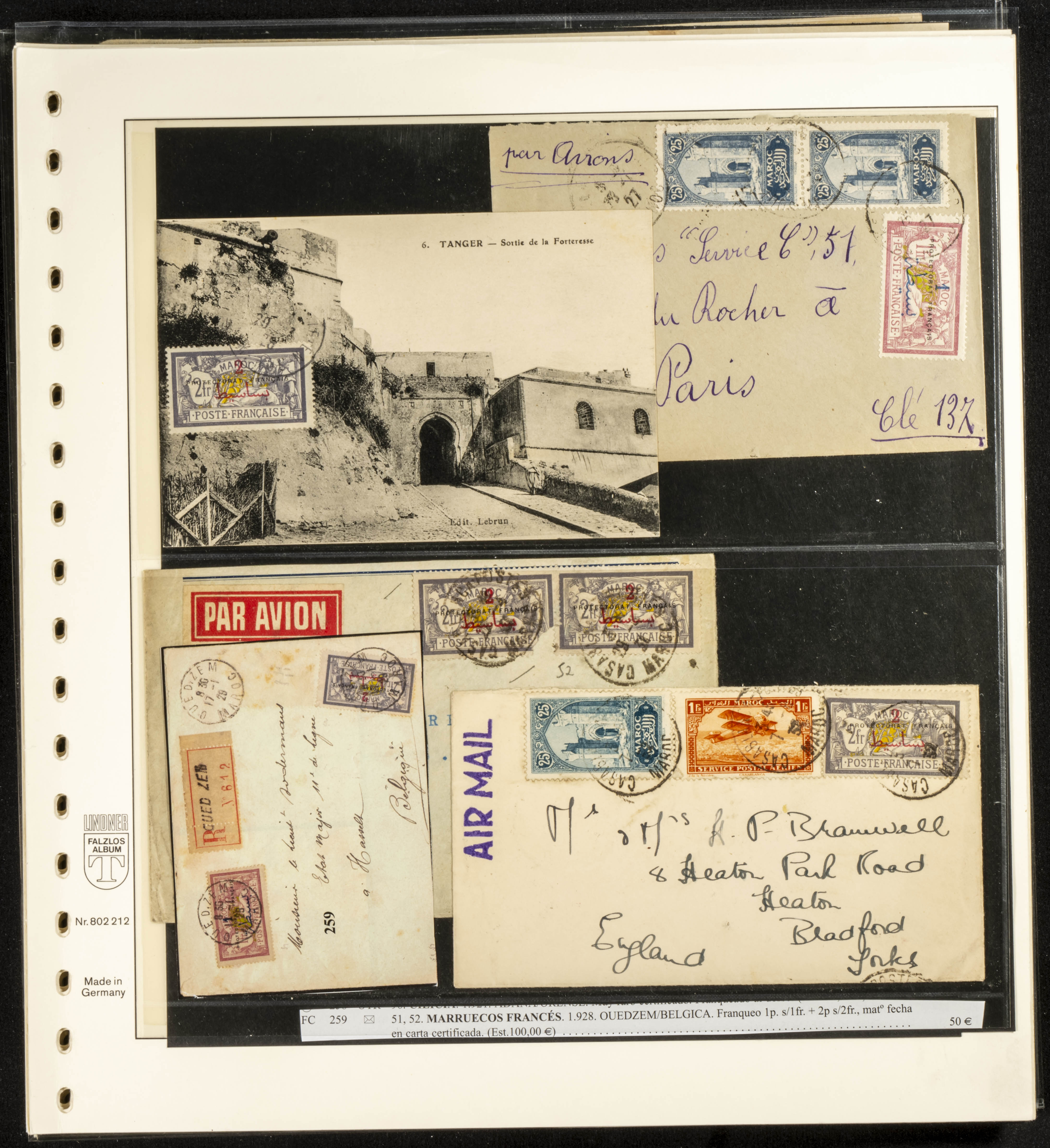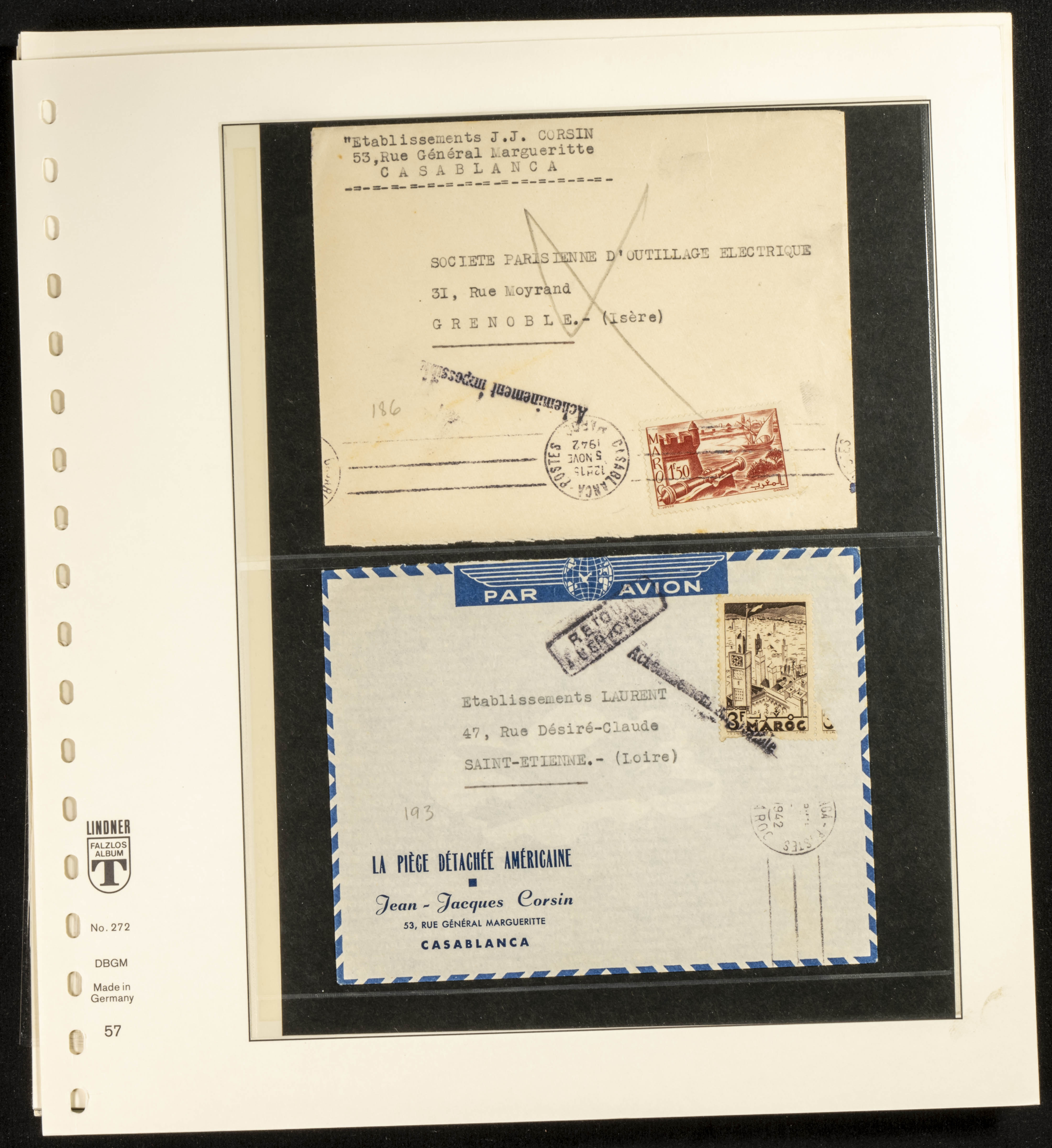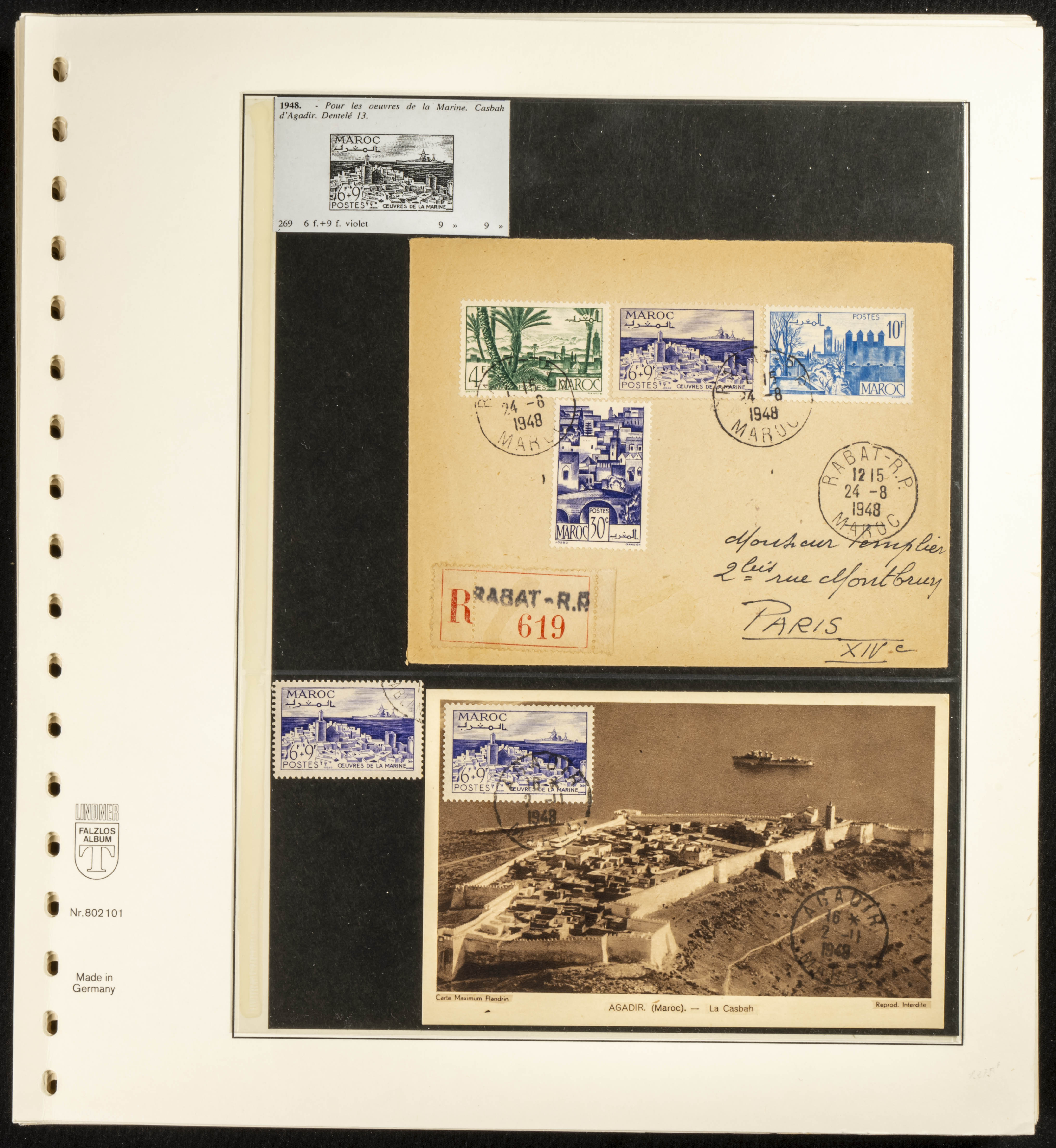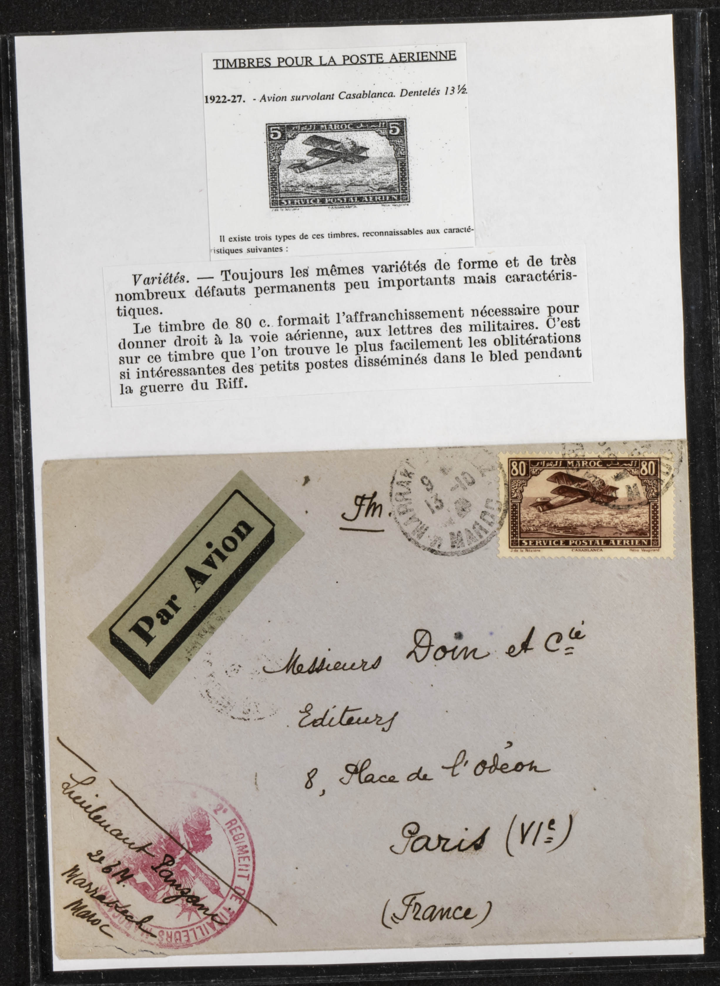 (circa 1891). Spectacular collection of used loose stamps and Postal History of French Morocco between 1891 and 1957. Includes early issues of French stamps with Moroccan postmarks, hundreds of circulated letters and postcards, some sent by registered mail, many with varied letterheads and unusual postage, hundreds of stamps with diverse postmarks (organized by issue alongside the letters), machine-printed postage, airmail, etc. EXAMINATION IS ESSENTIAL.